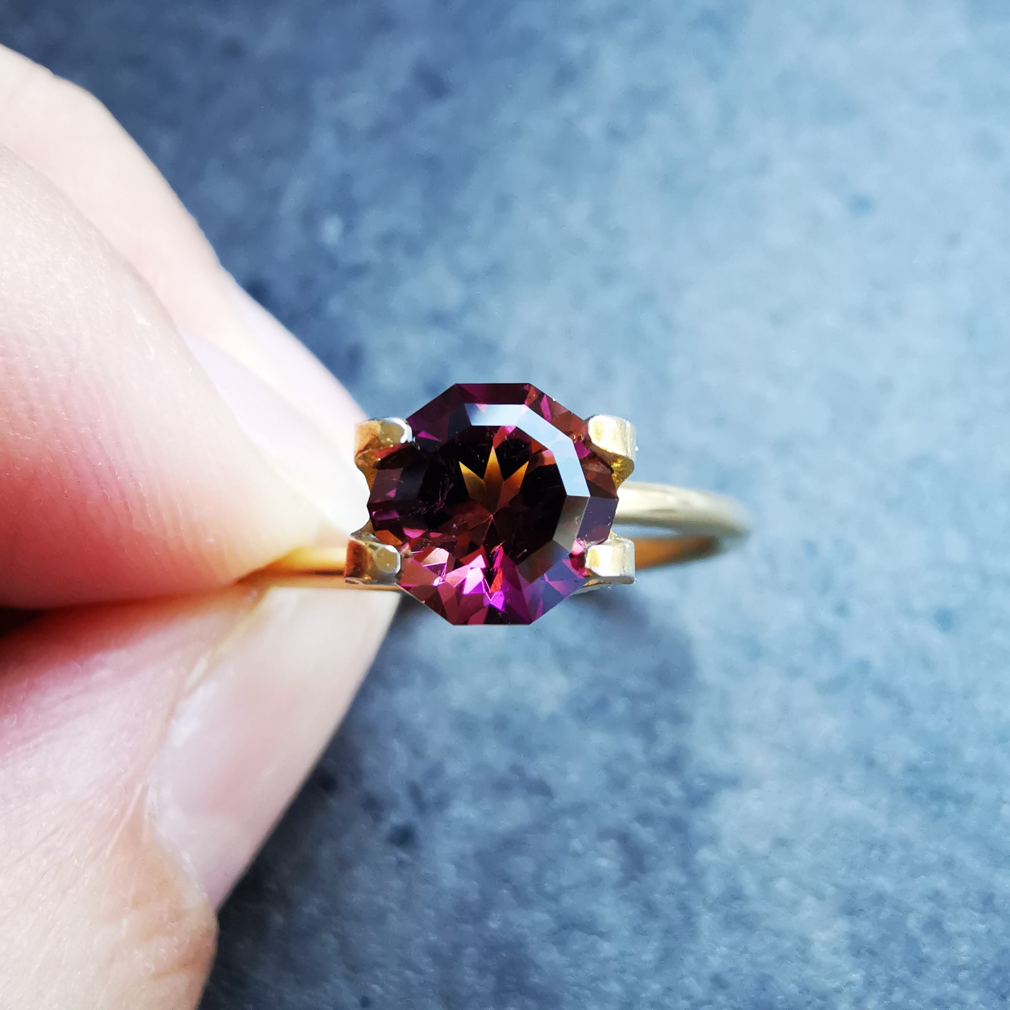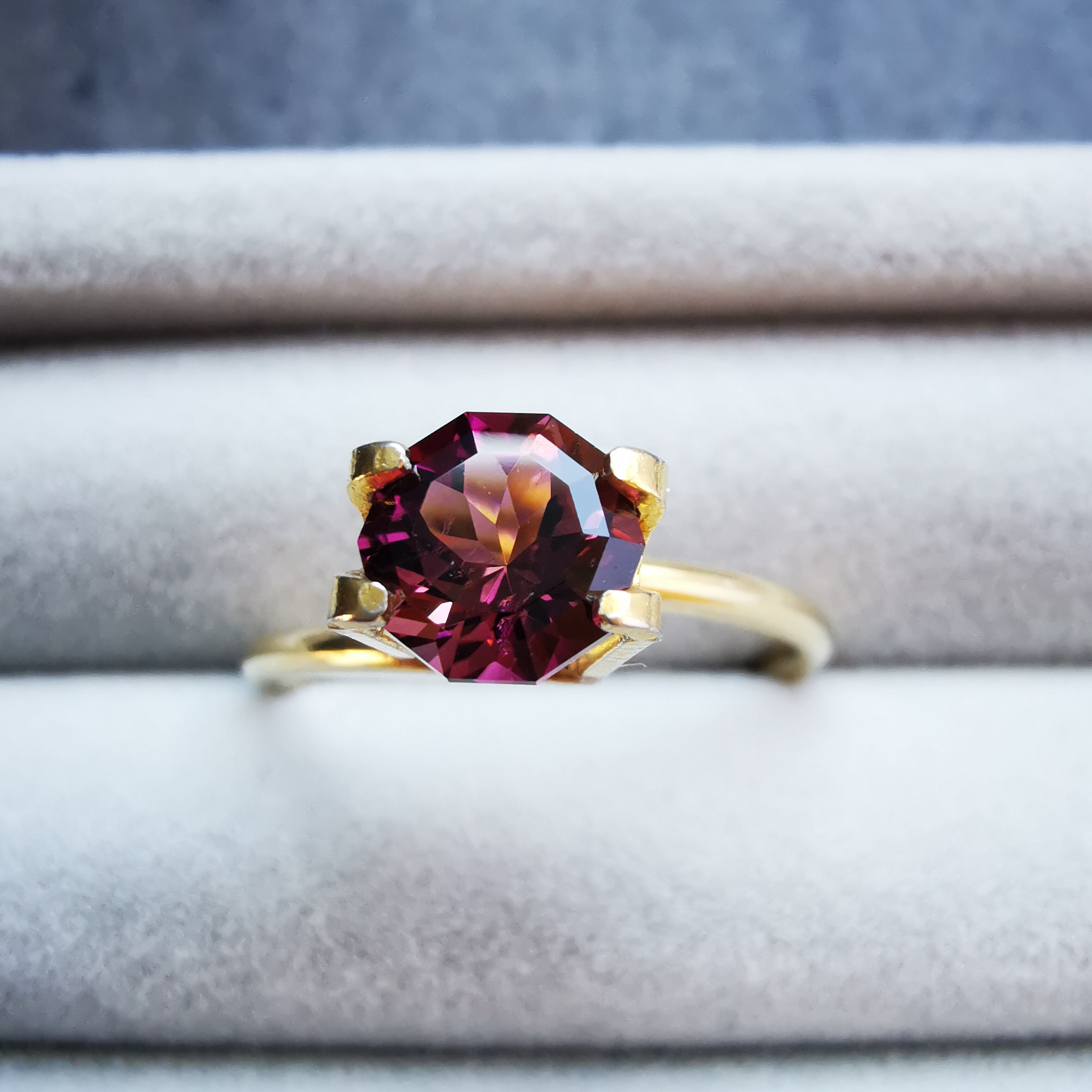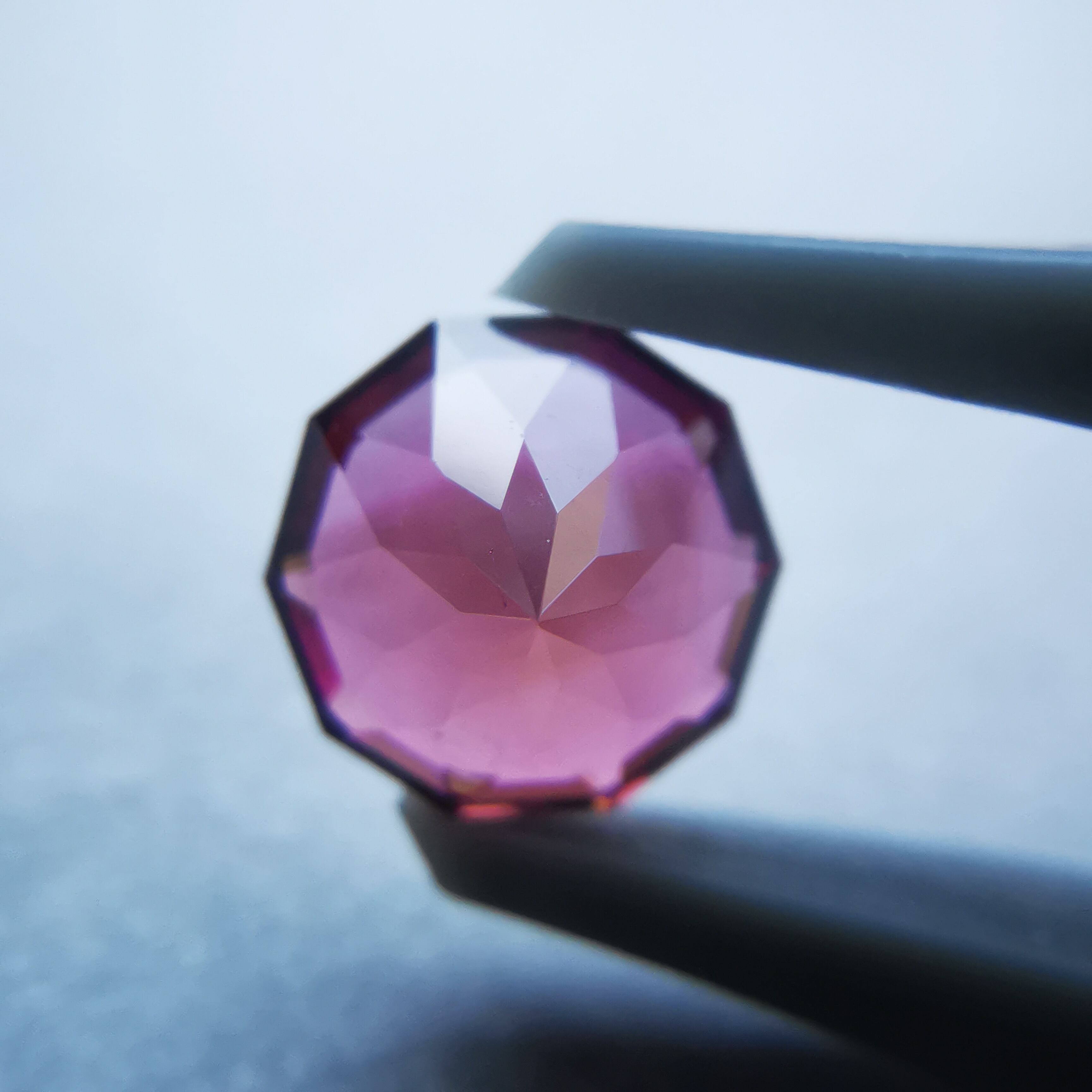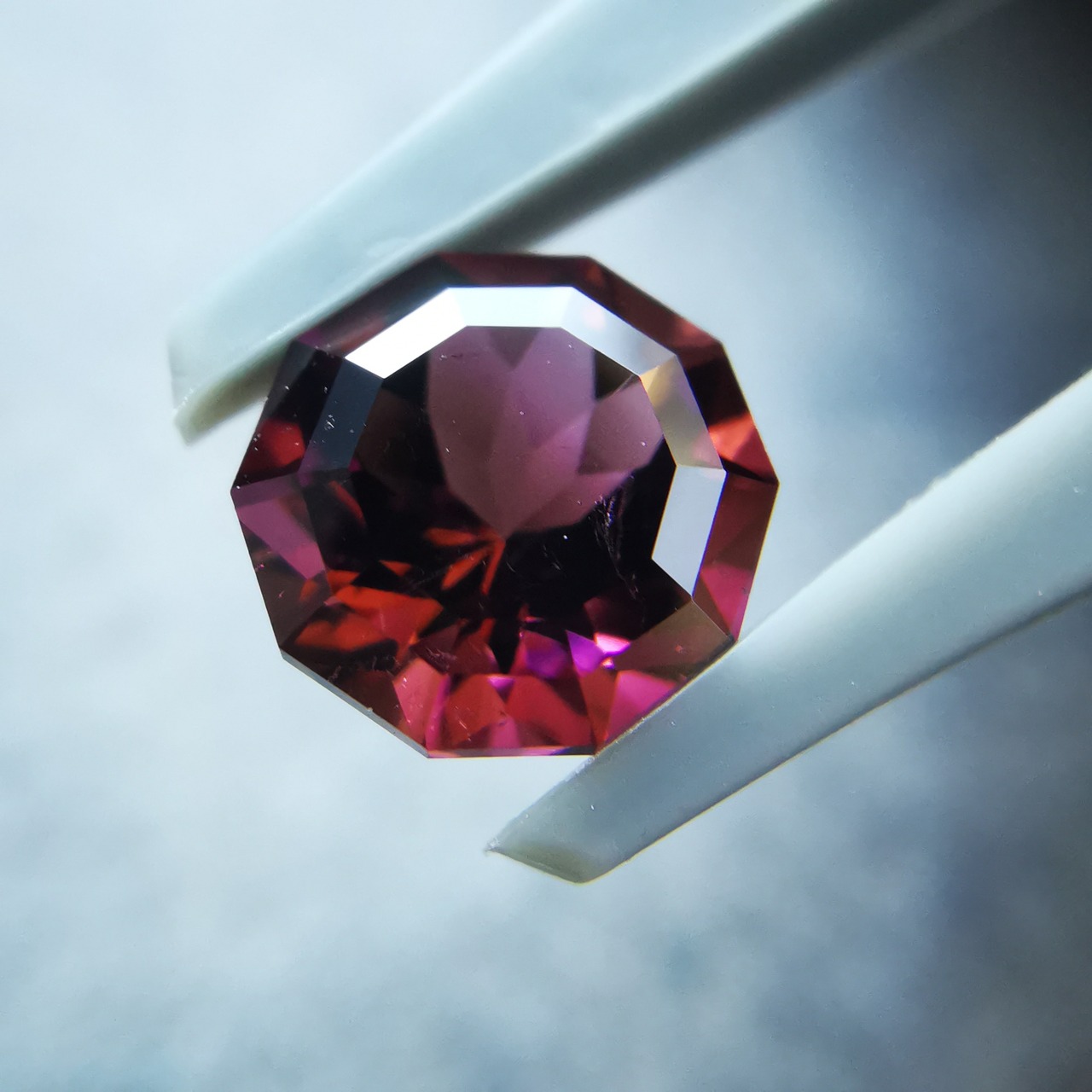 パープルピンクに、オレンジブラウン、ごくごくわずかに緑みも感じる秋色のトルマリンです。