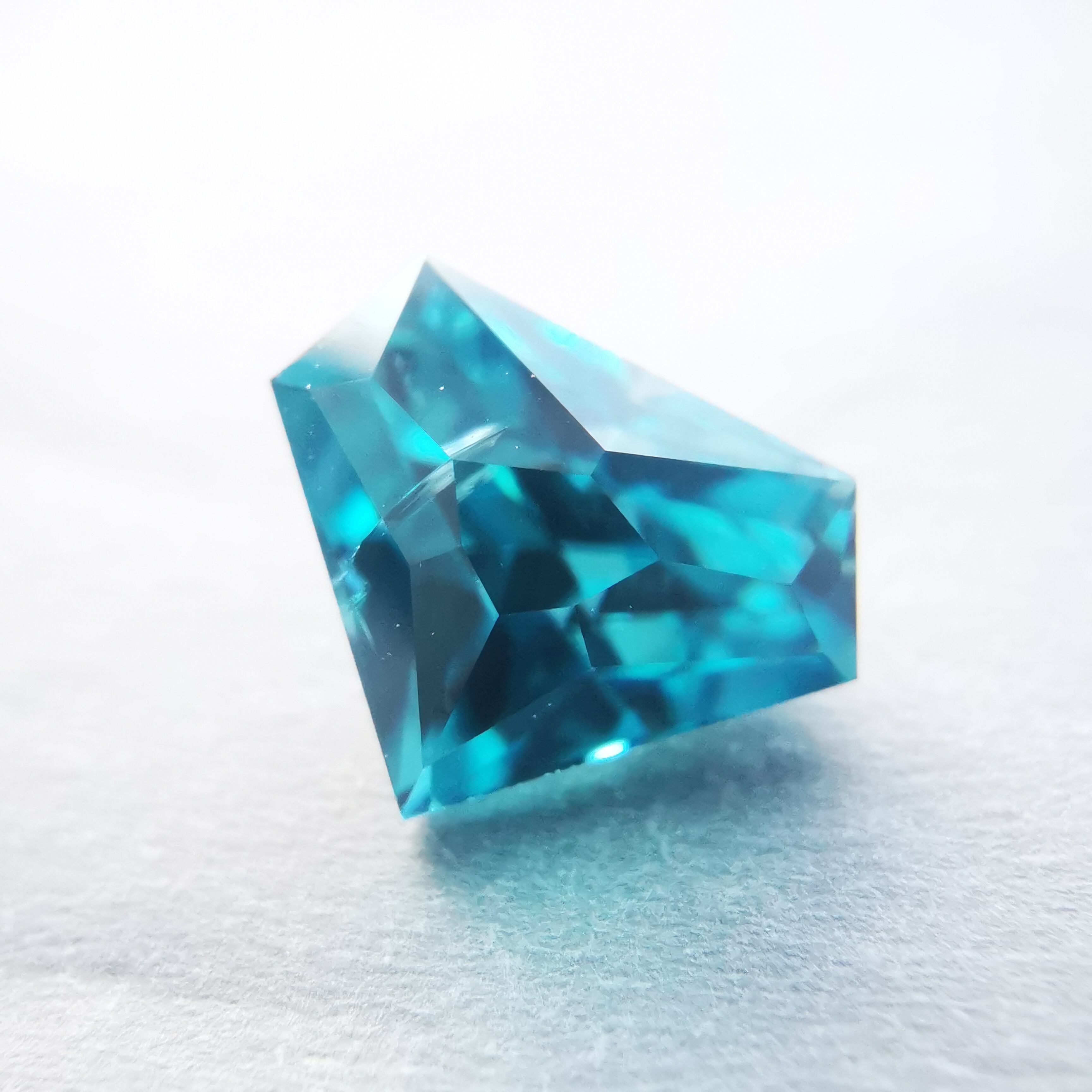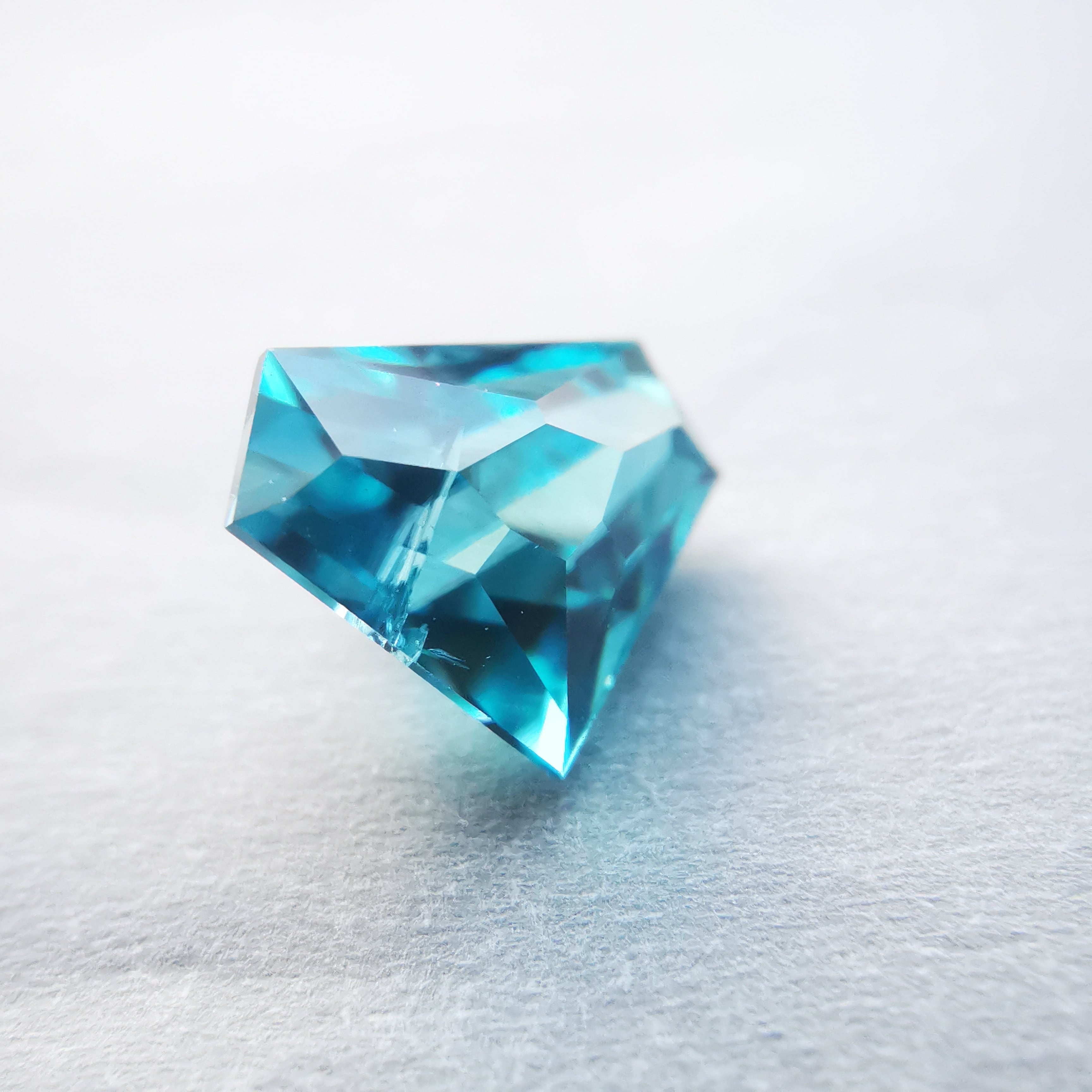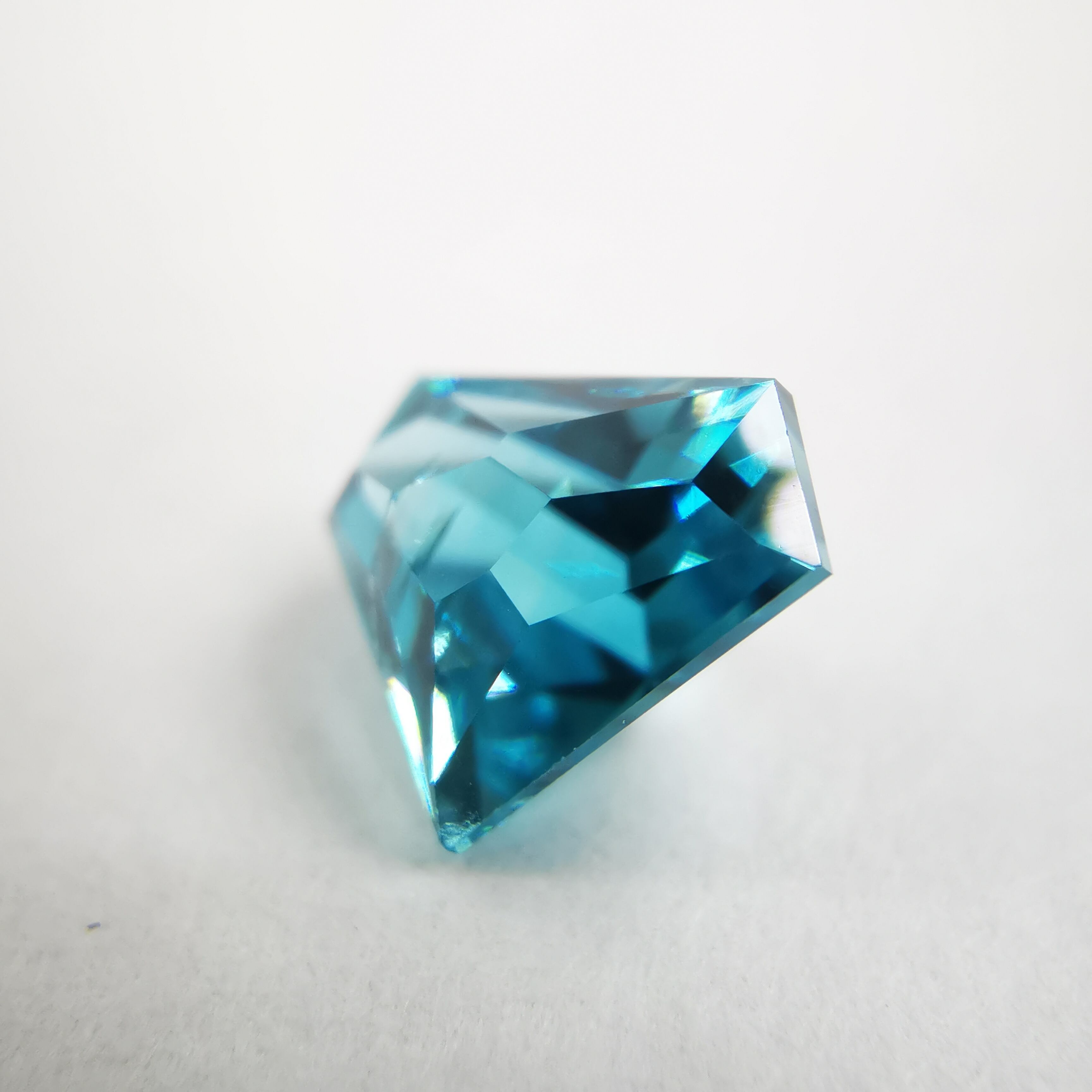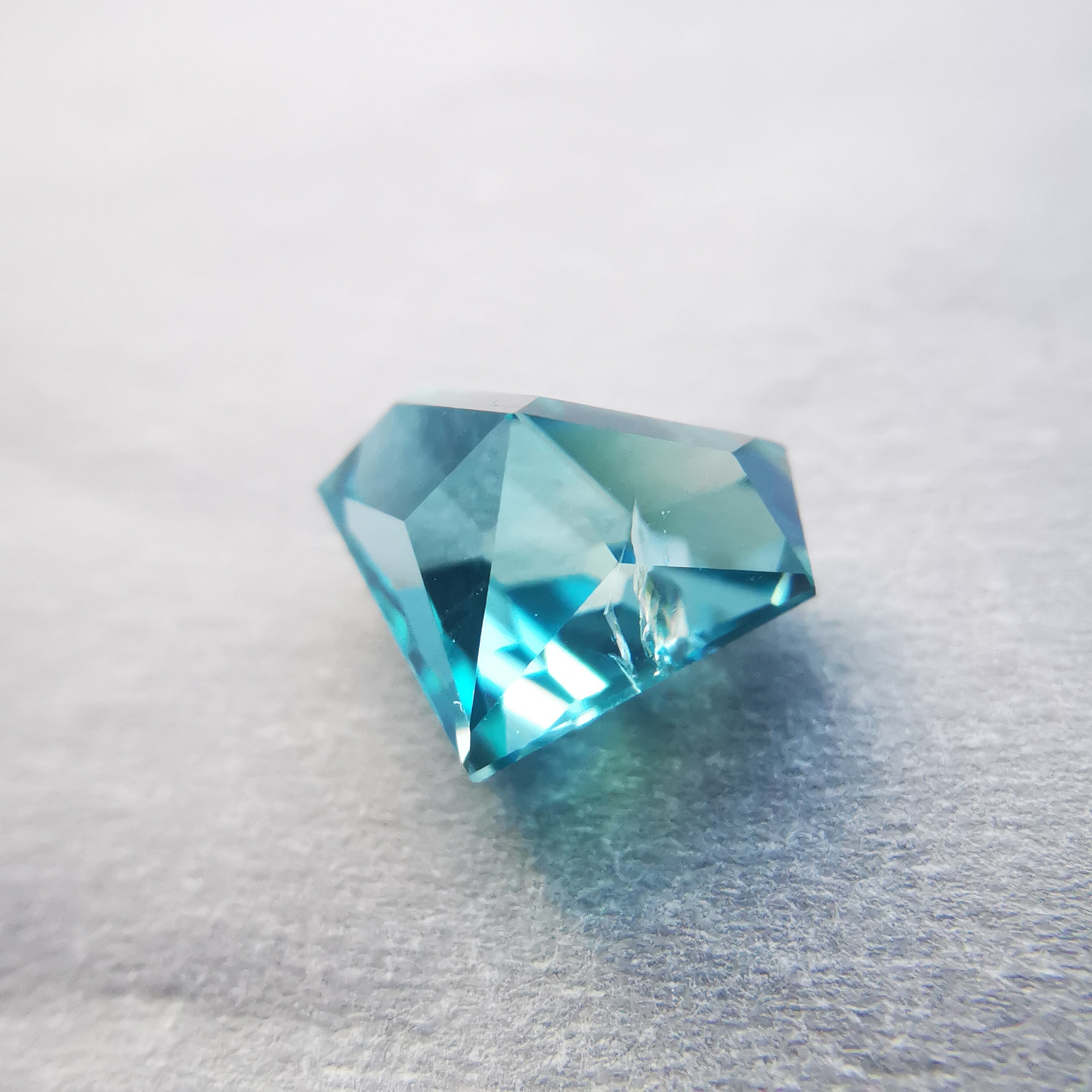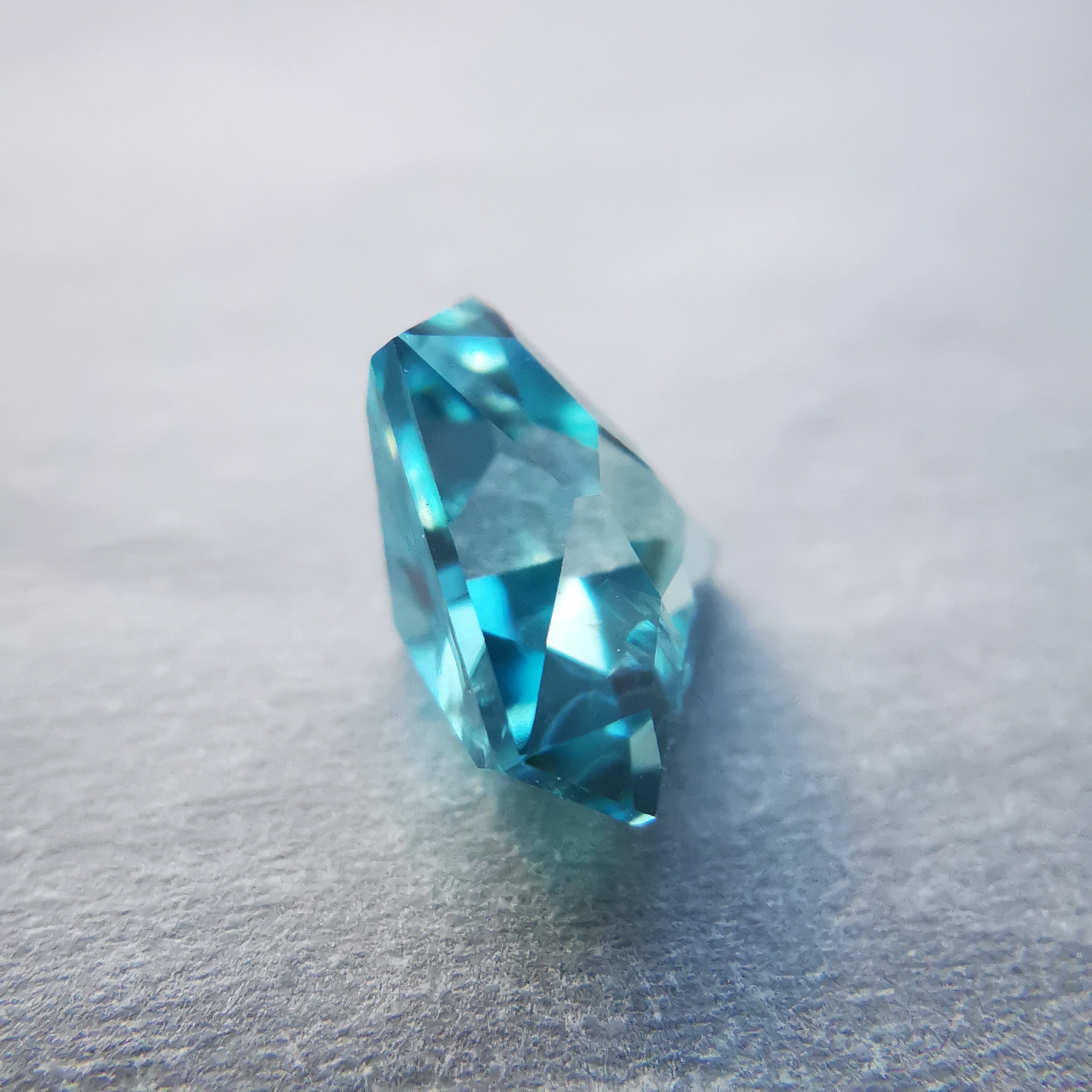 鮮やかな緑みの青、浅葱色のブルージルコンです。