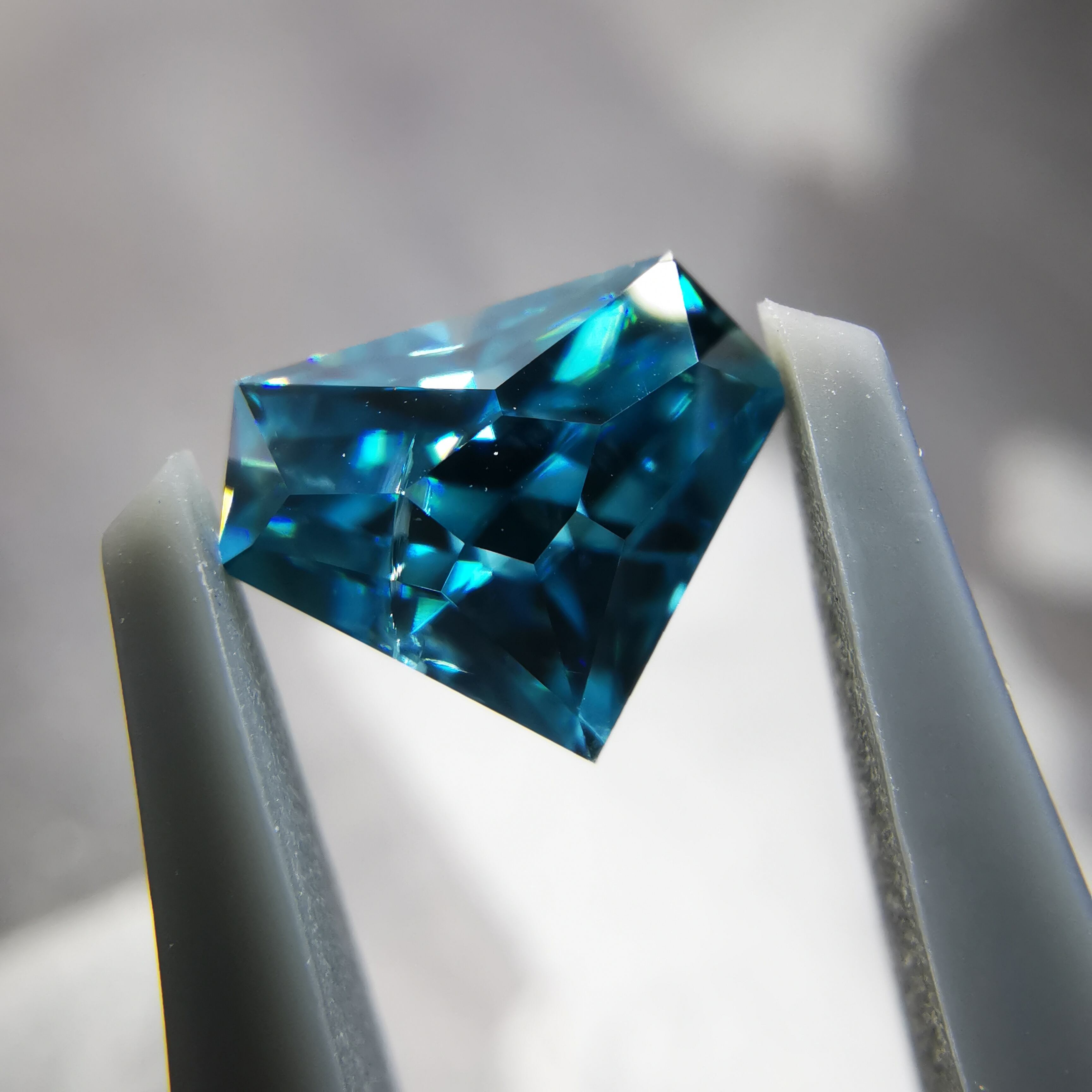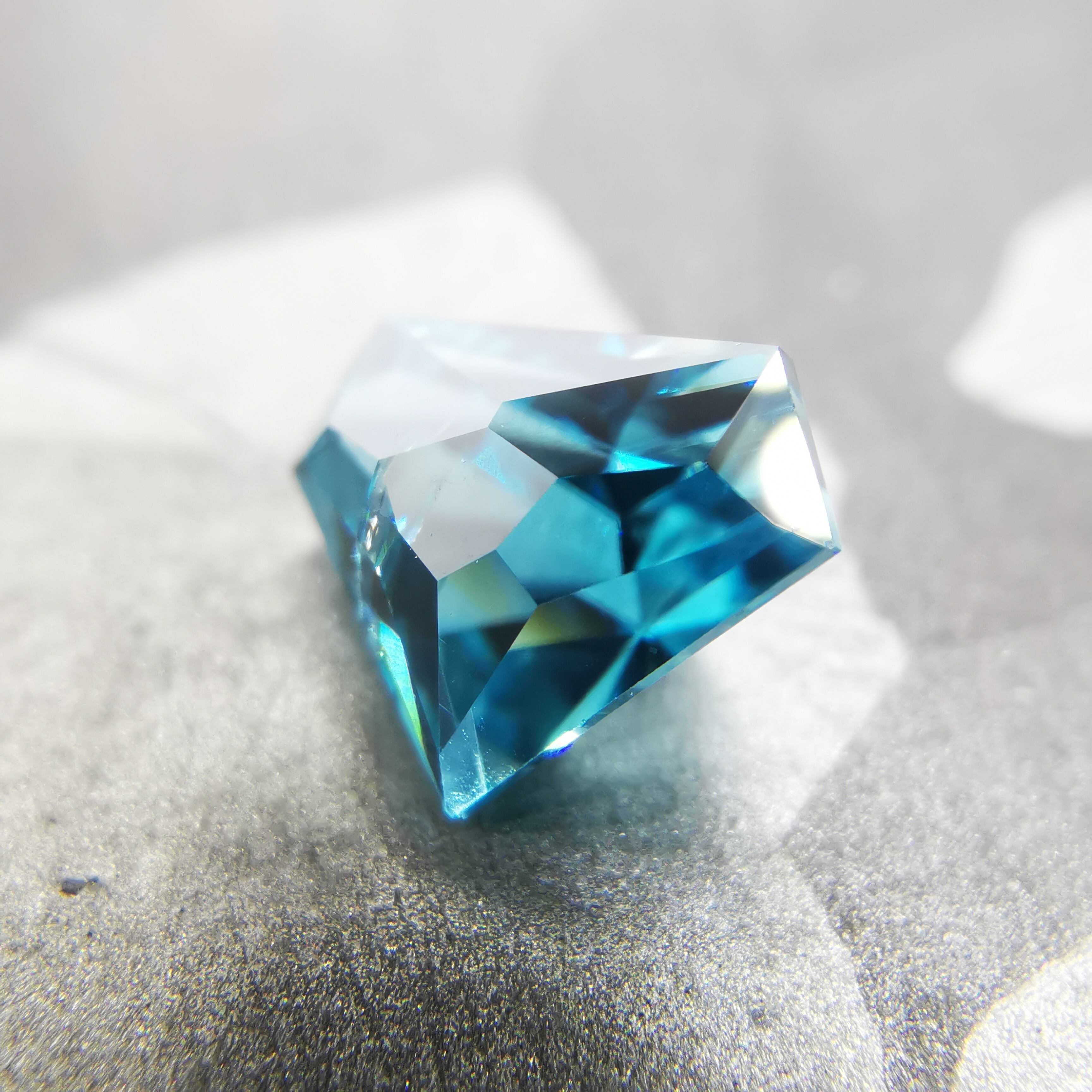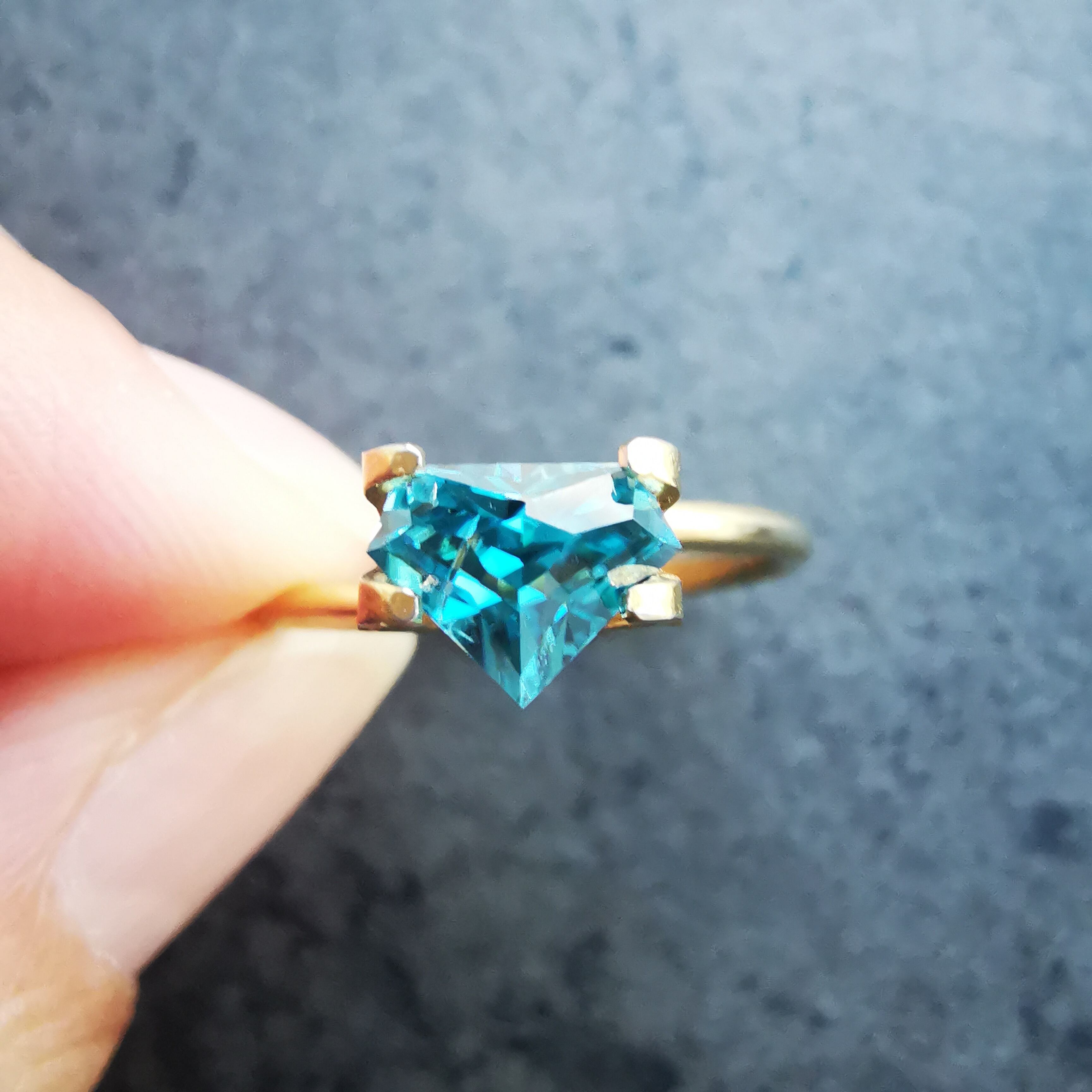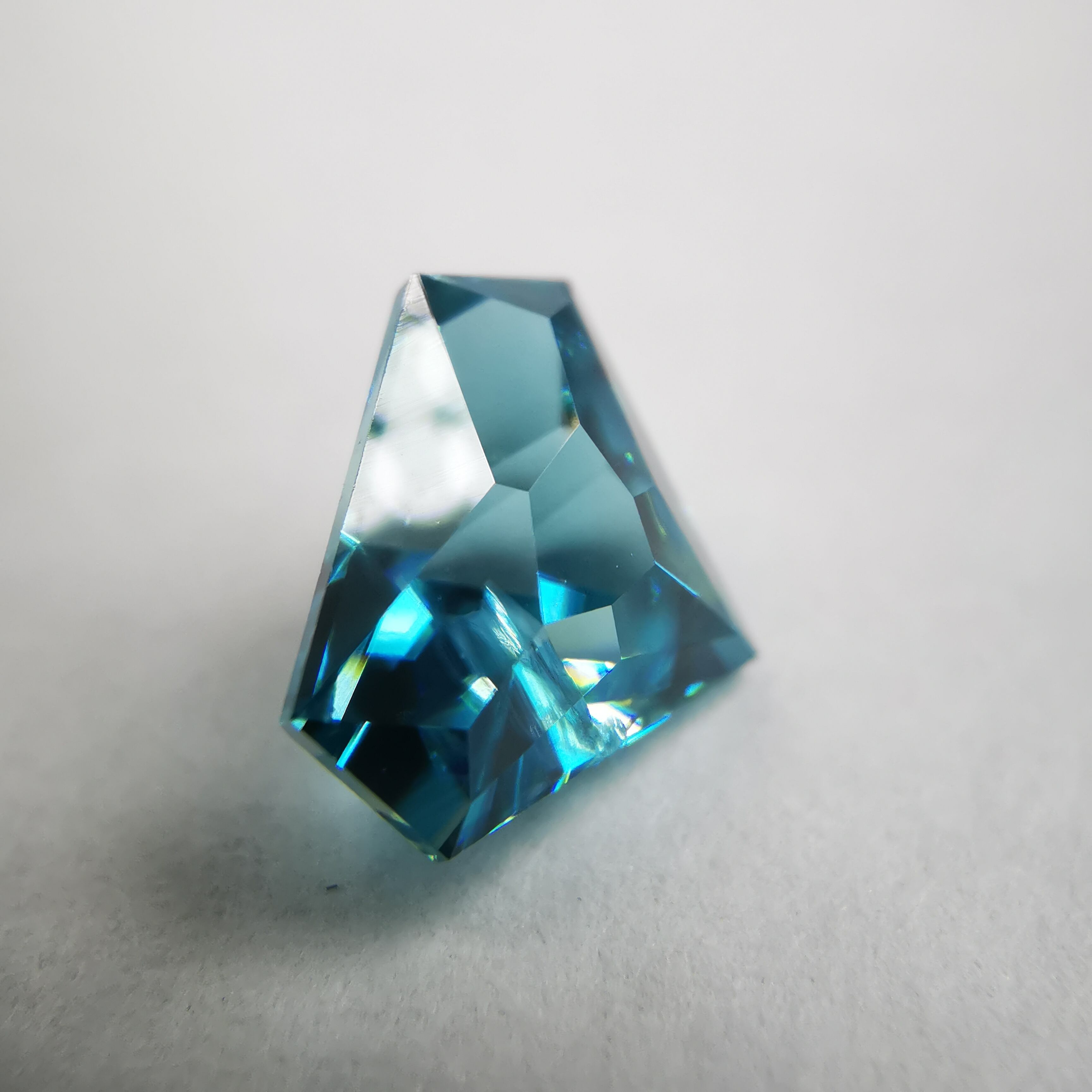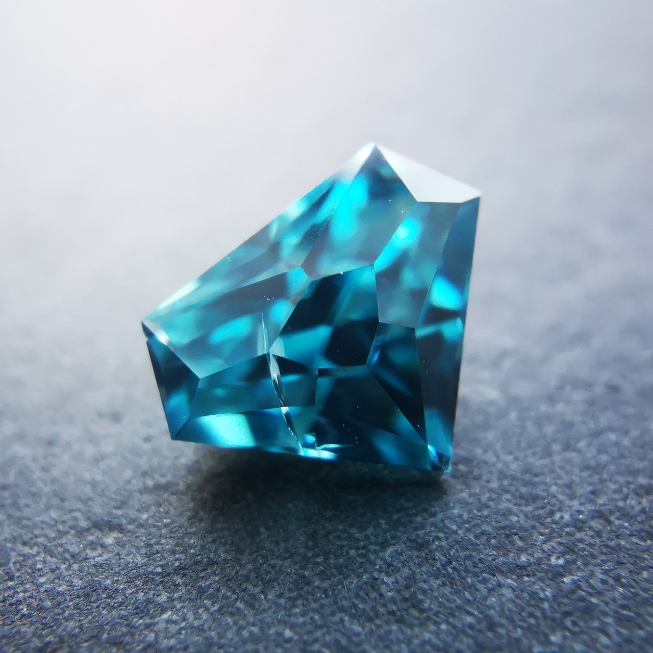 鮮やかな緑みの青、浅葱色のブルージルコンです。