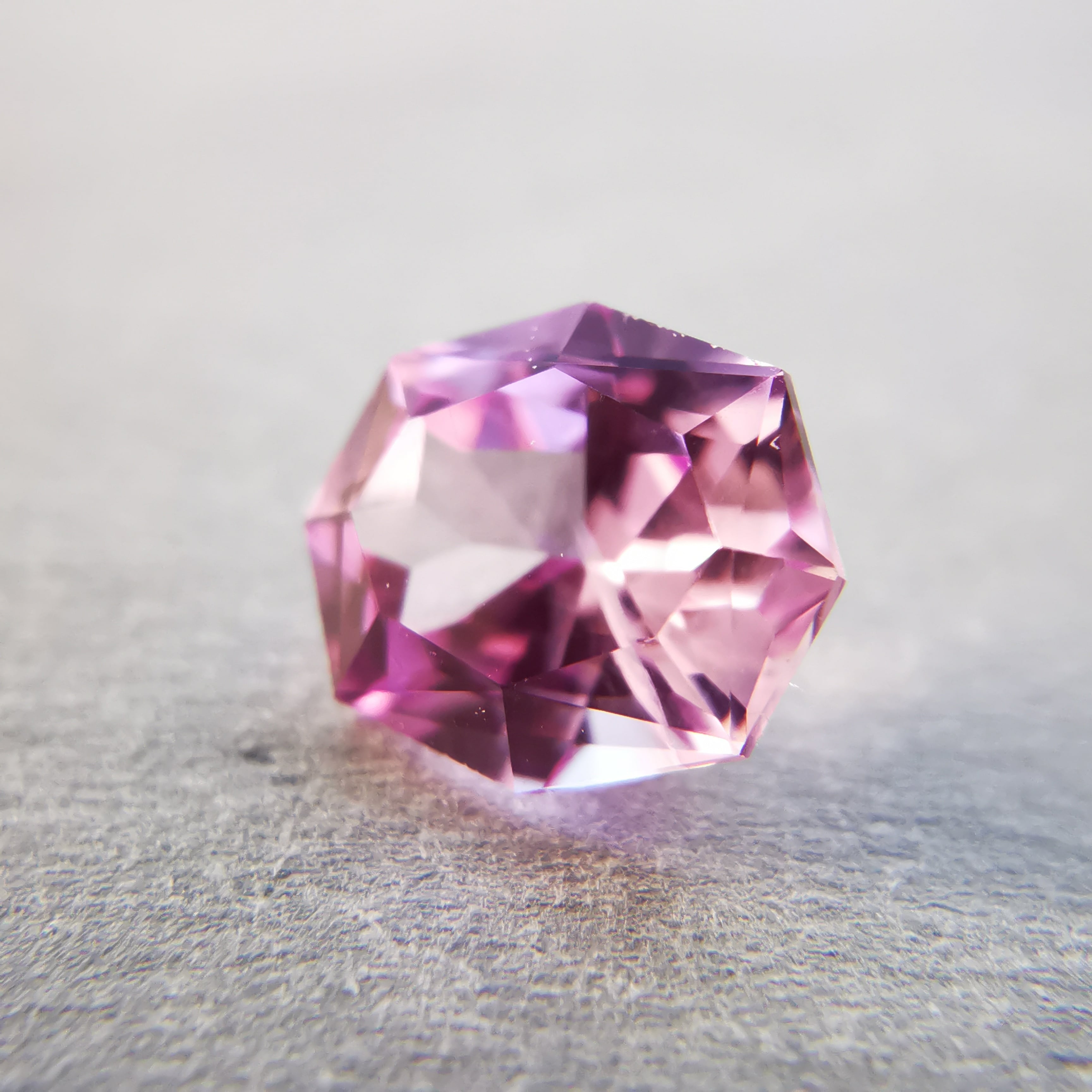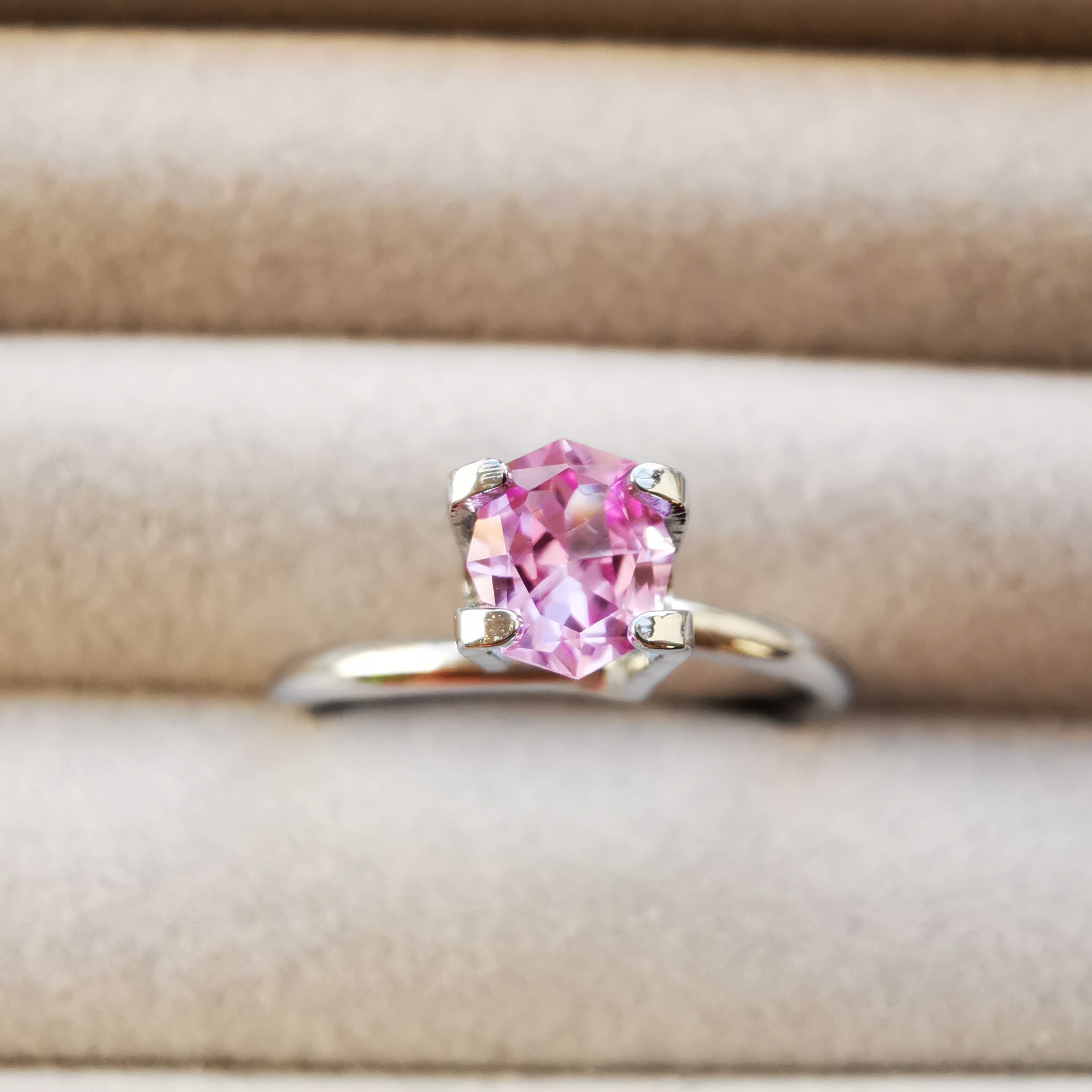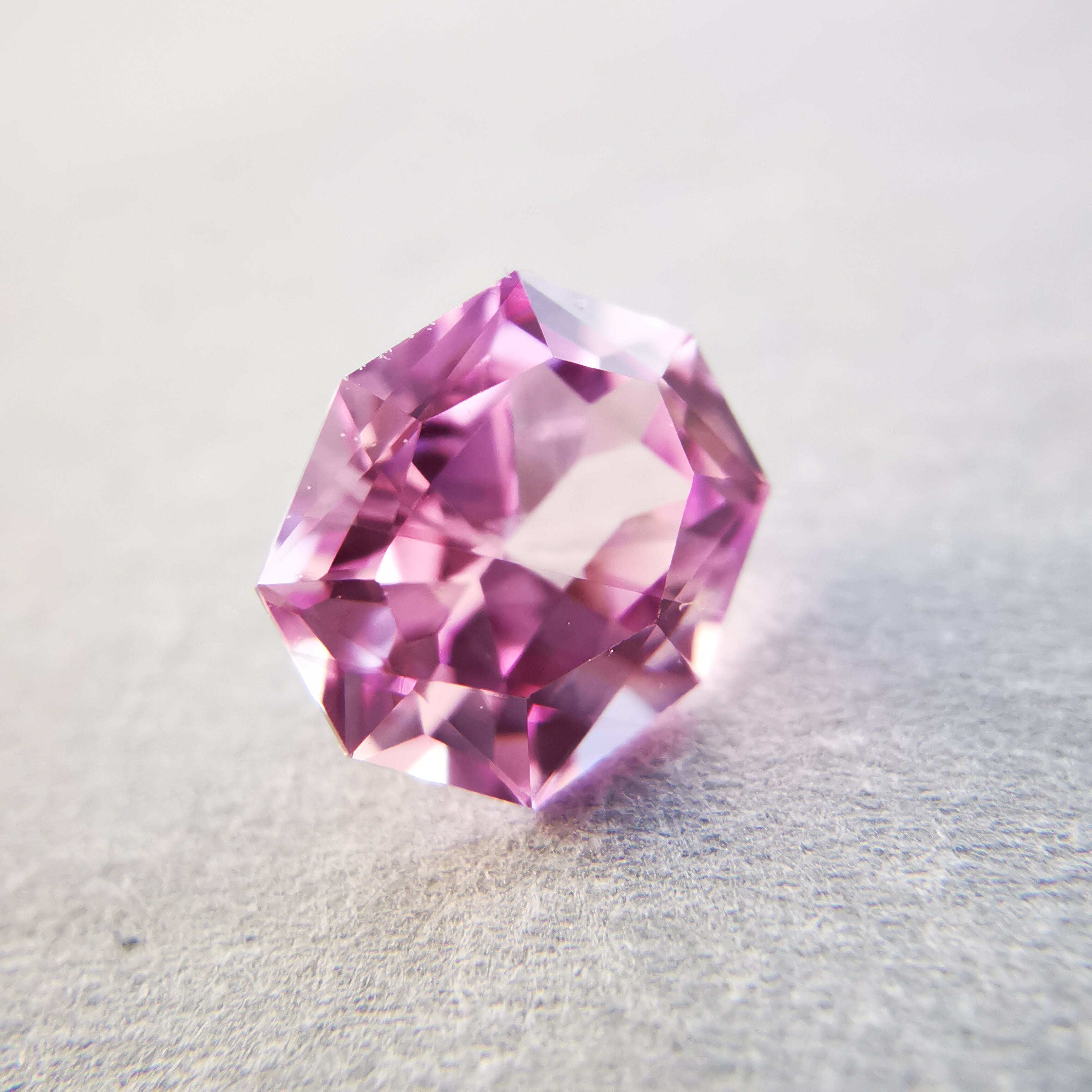 ベトナム産のピンクサファイアと言えば、いちごミルクのようなミルキーな色をイメージしますが、こんなにすっきりとしたクリーンなきらめきの可憐なピンクがあるなんて!と驚きました。