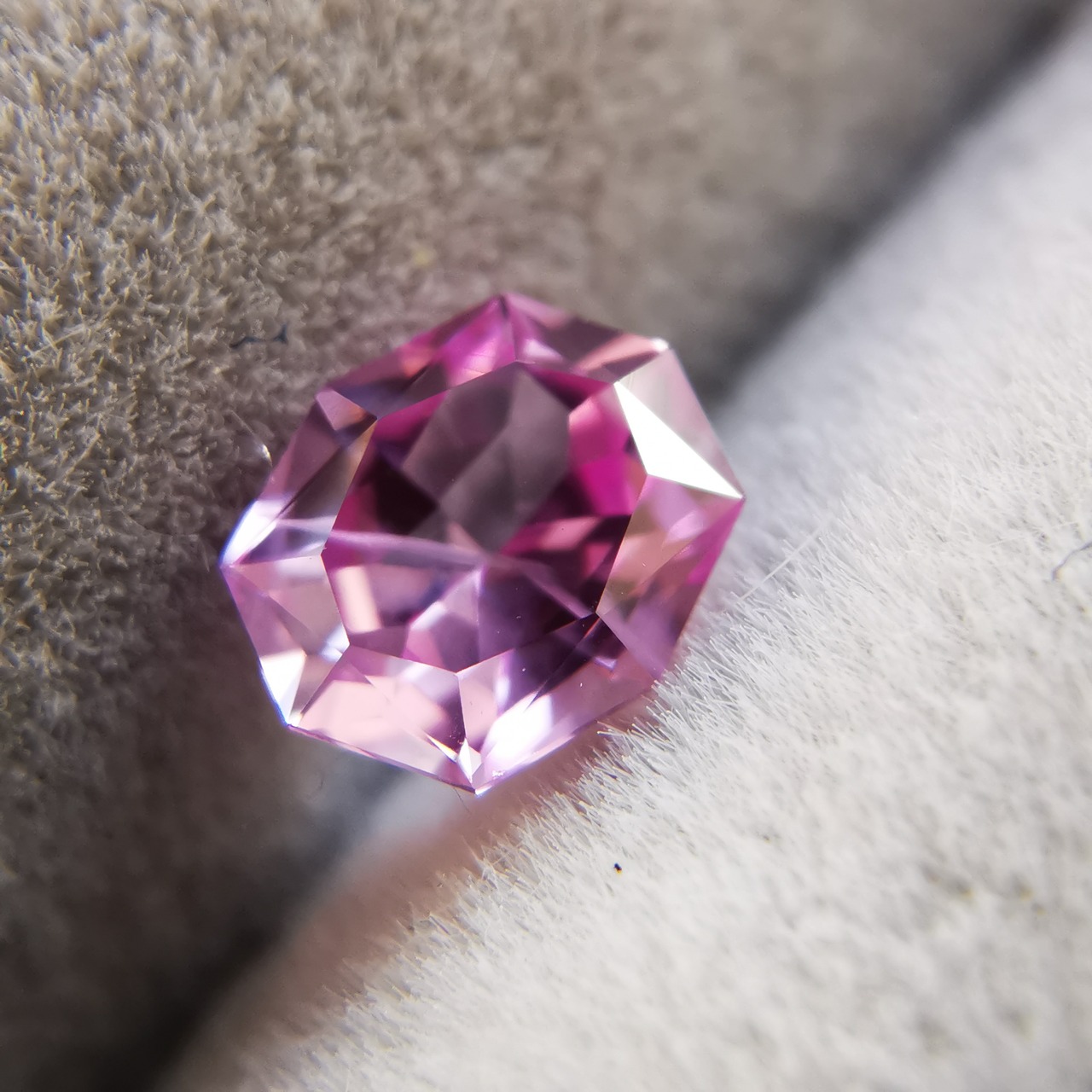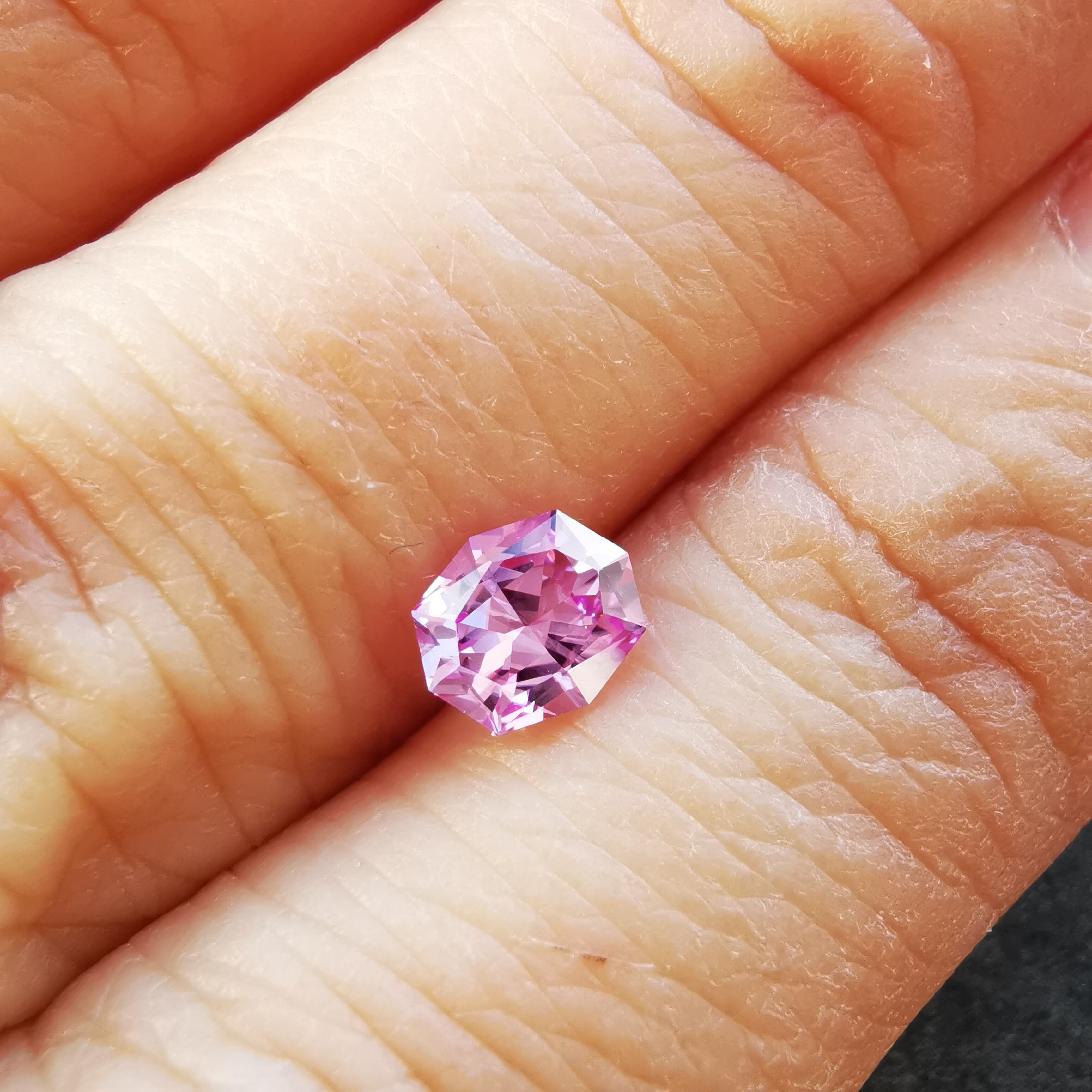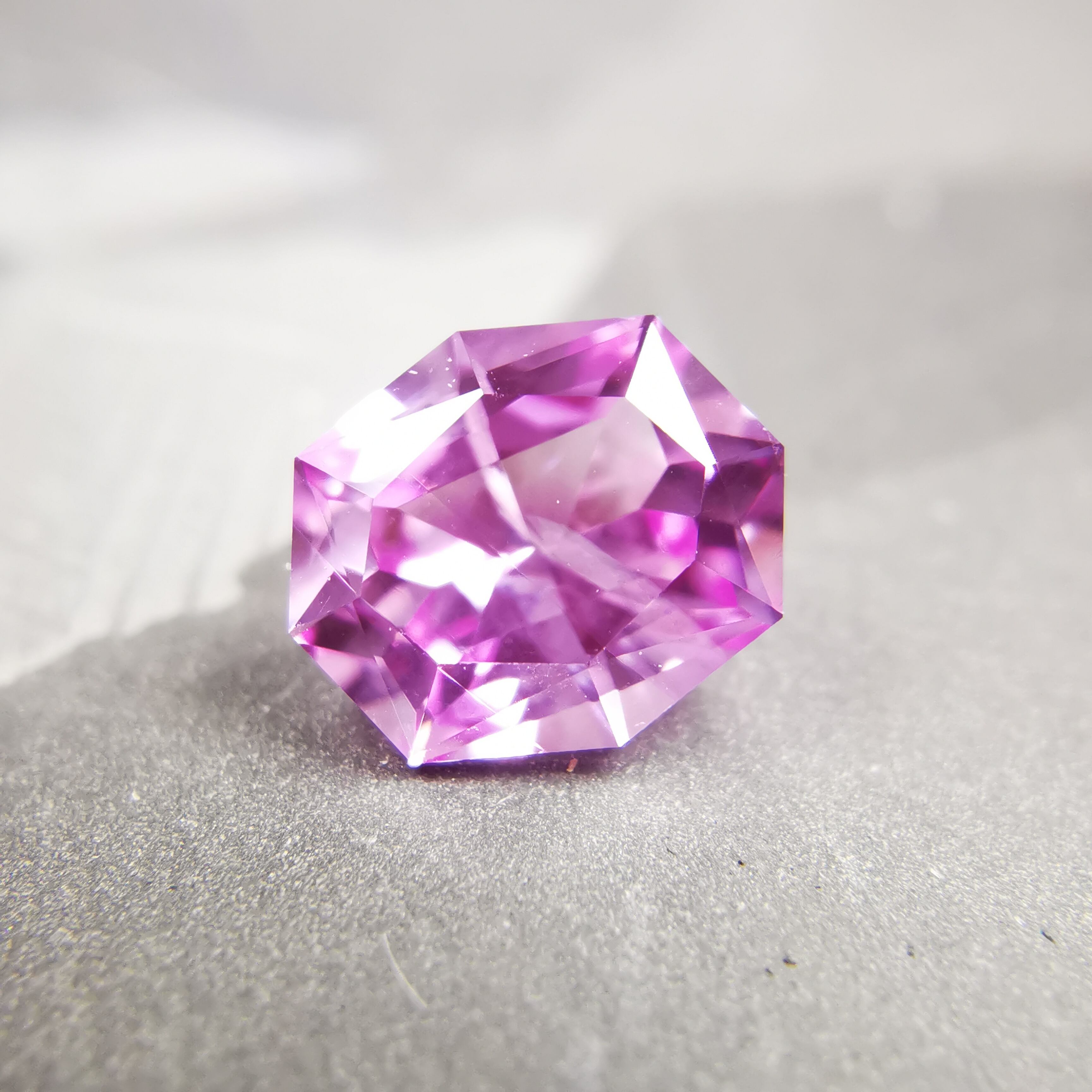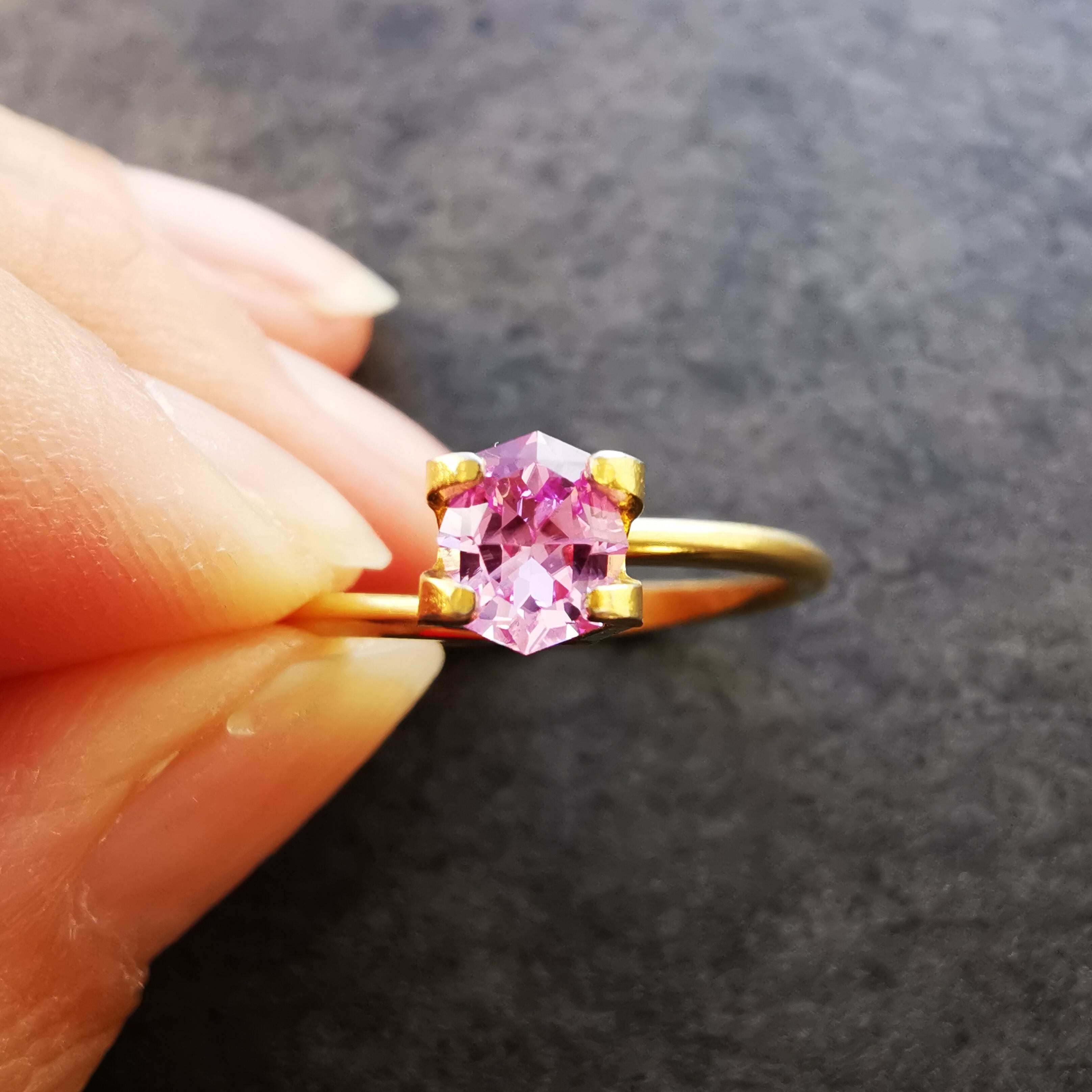 ベトナム産のピンクサファイアと言えば、いちごミルクのようなミルキーな色をイメージしますが、こんなにすっきりとしたクリーンなきらめきの可憐なピンクがあるなんて!と驚きました。