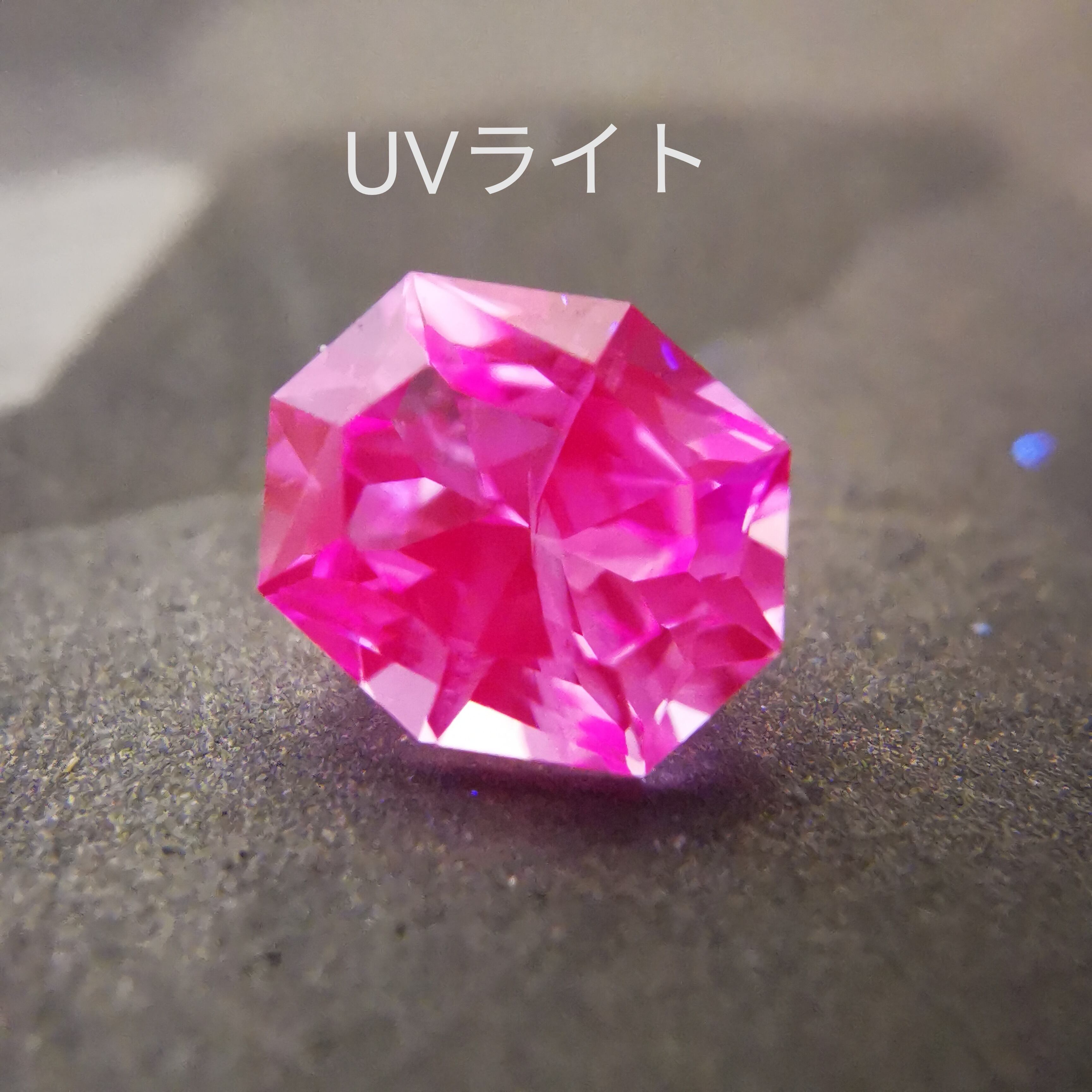UVライトでさらにピンクに蛍光するため、自然光で見えると濃さの異なるピンクが混じります。
