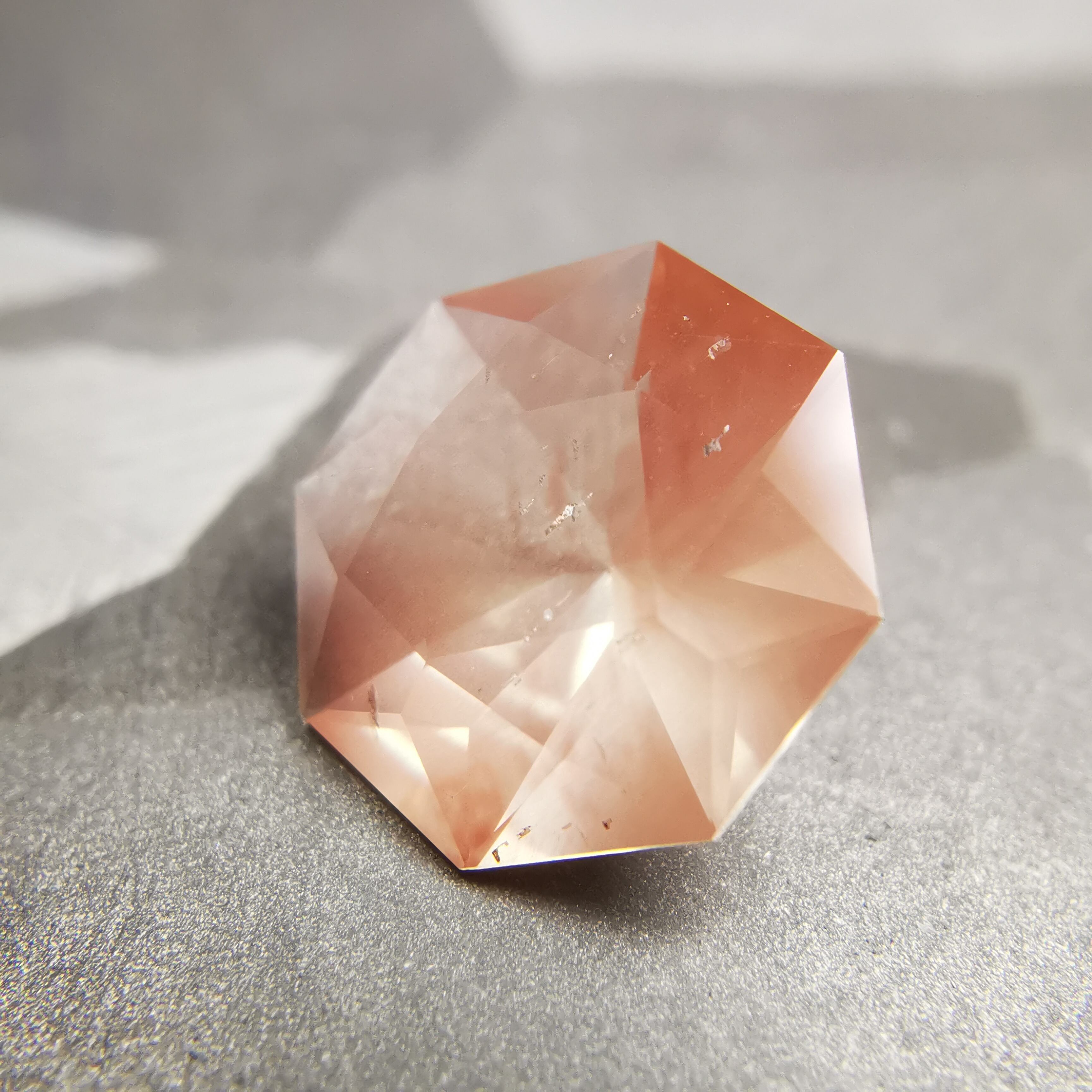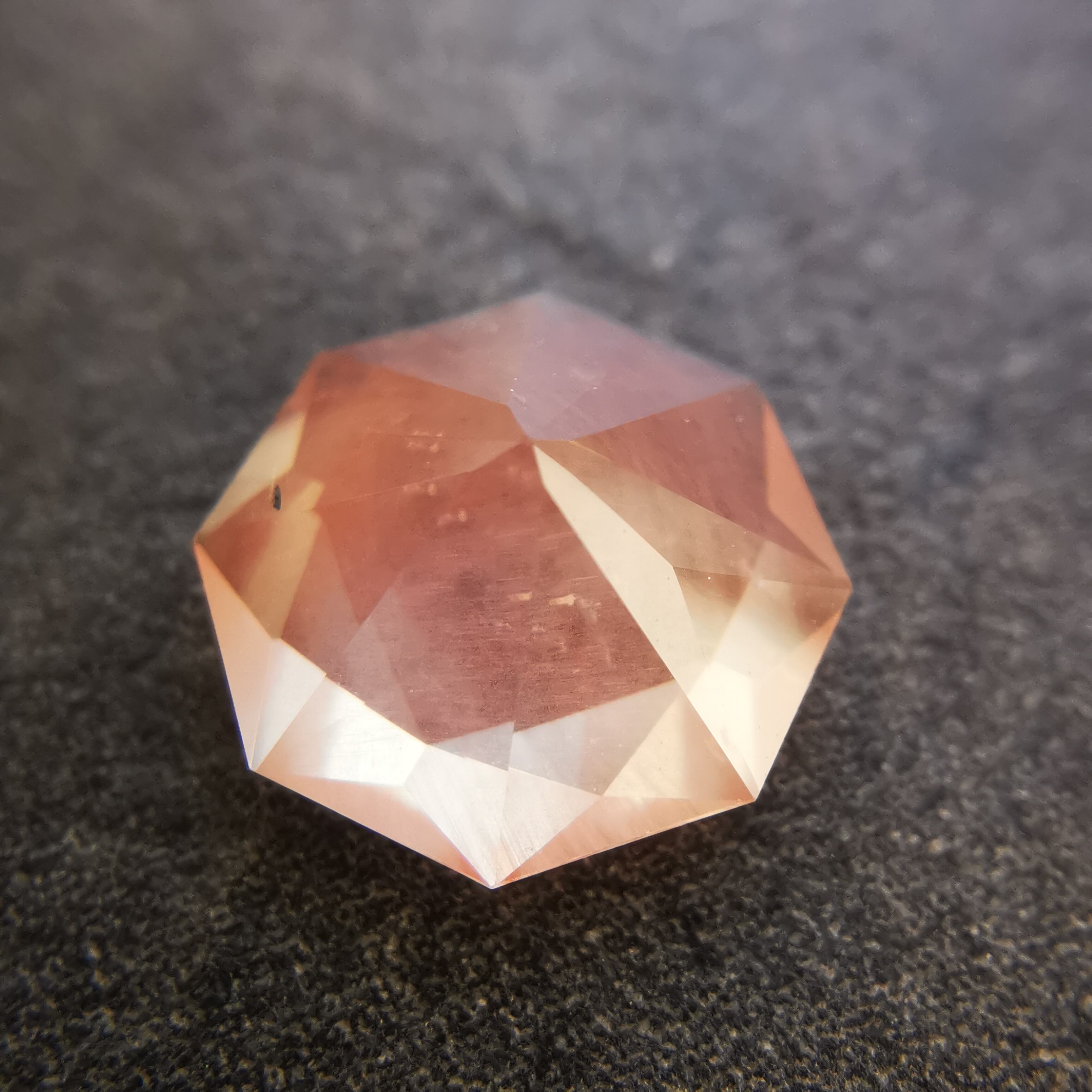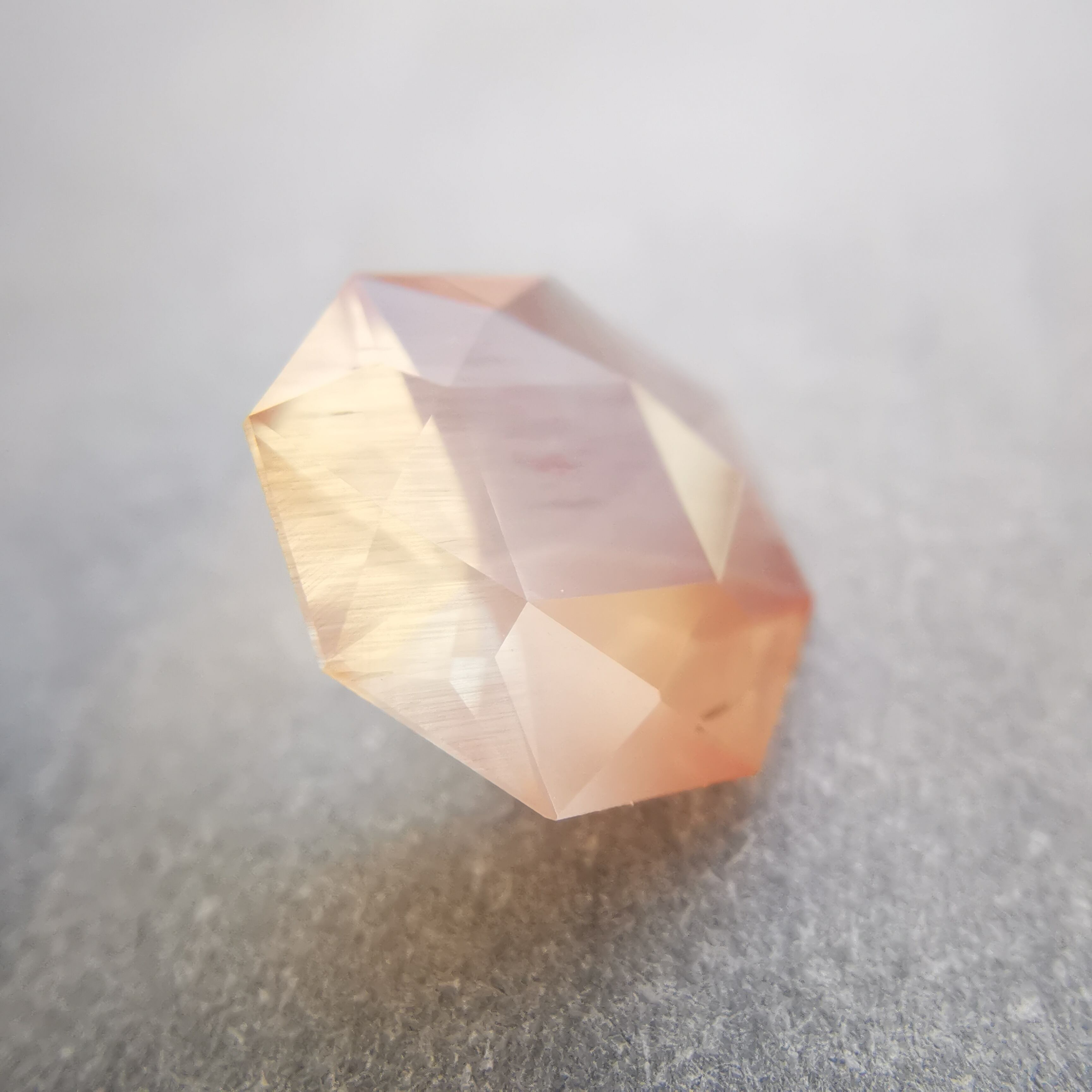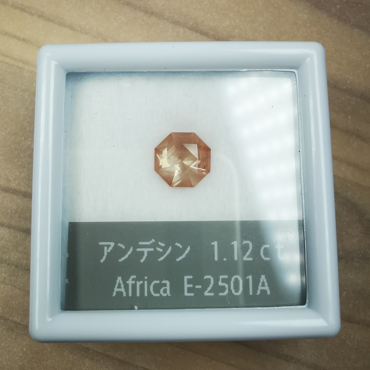 アンデシンの色を表すのはとても難しいのですが、柔らかな黄赤、赤香色と言うのがかなり近いような気がします。
