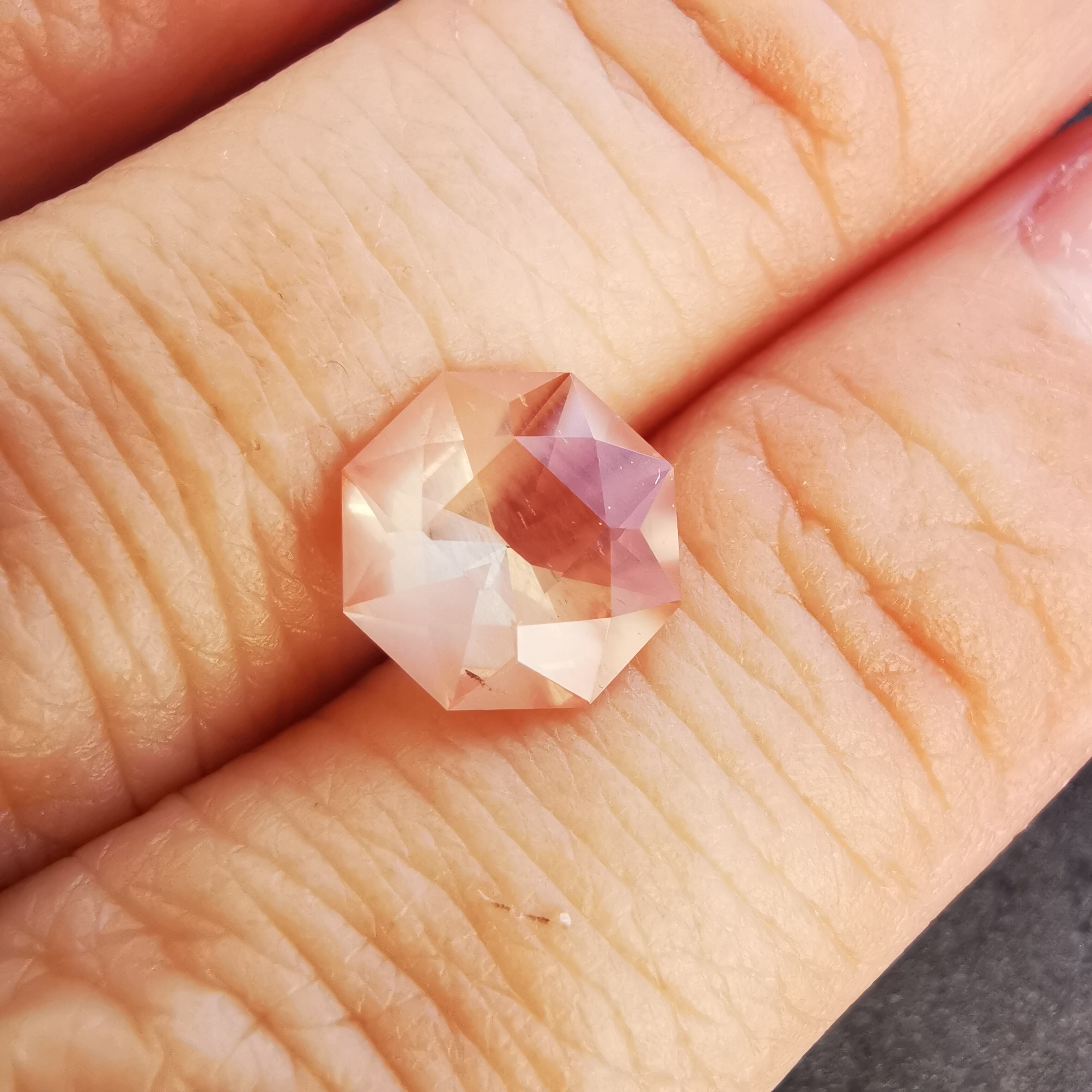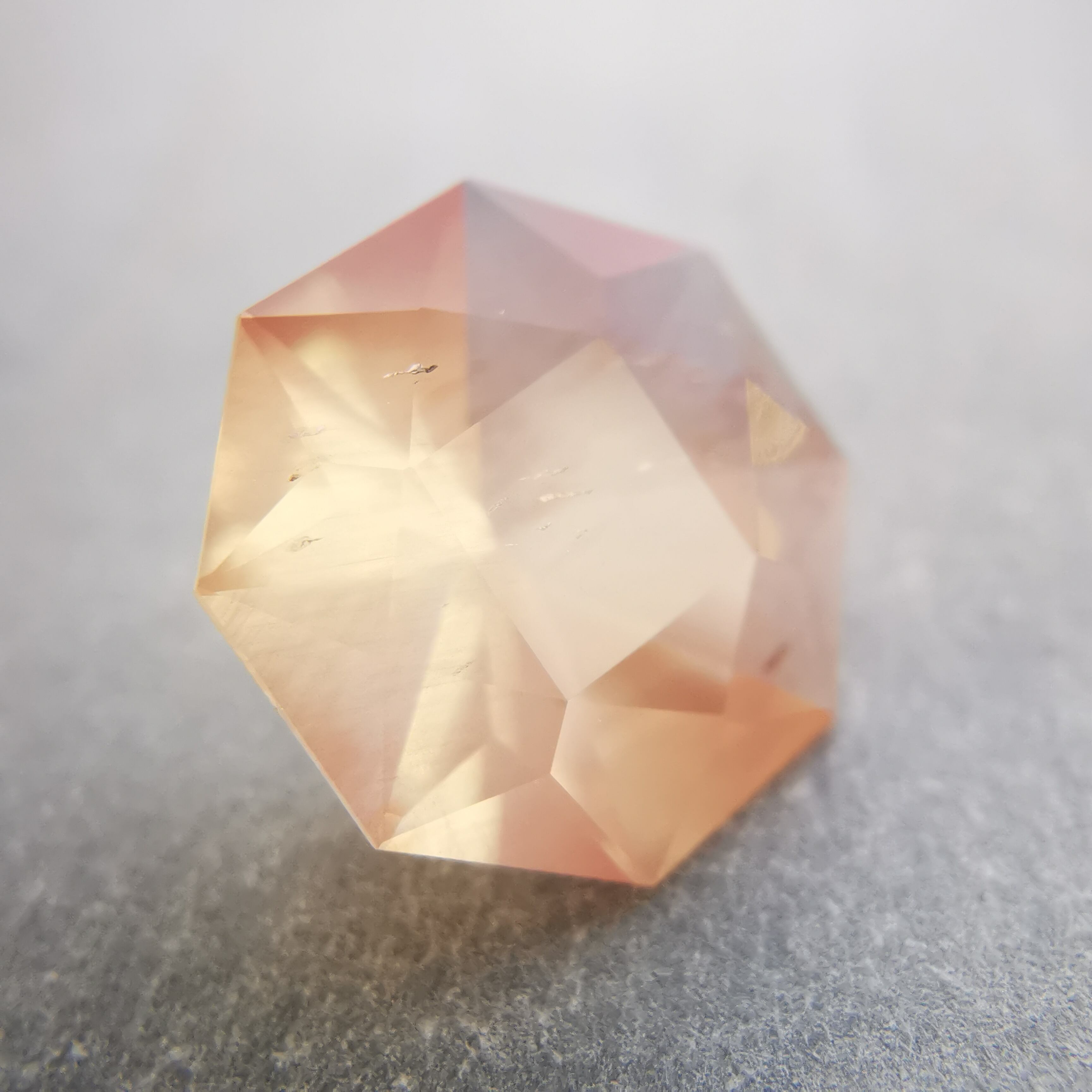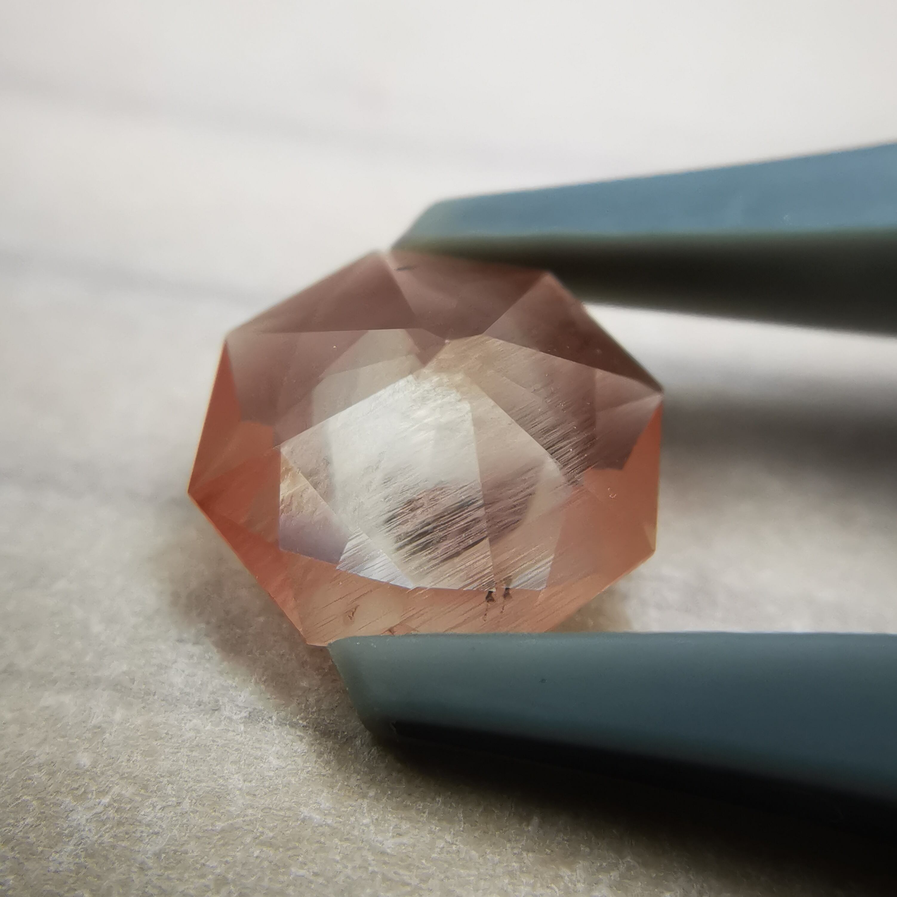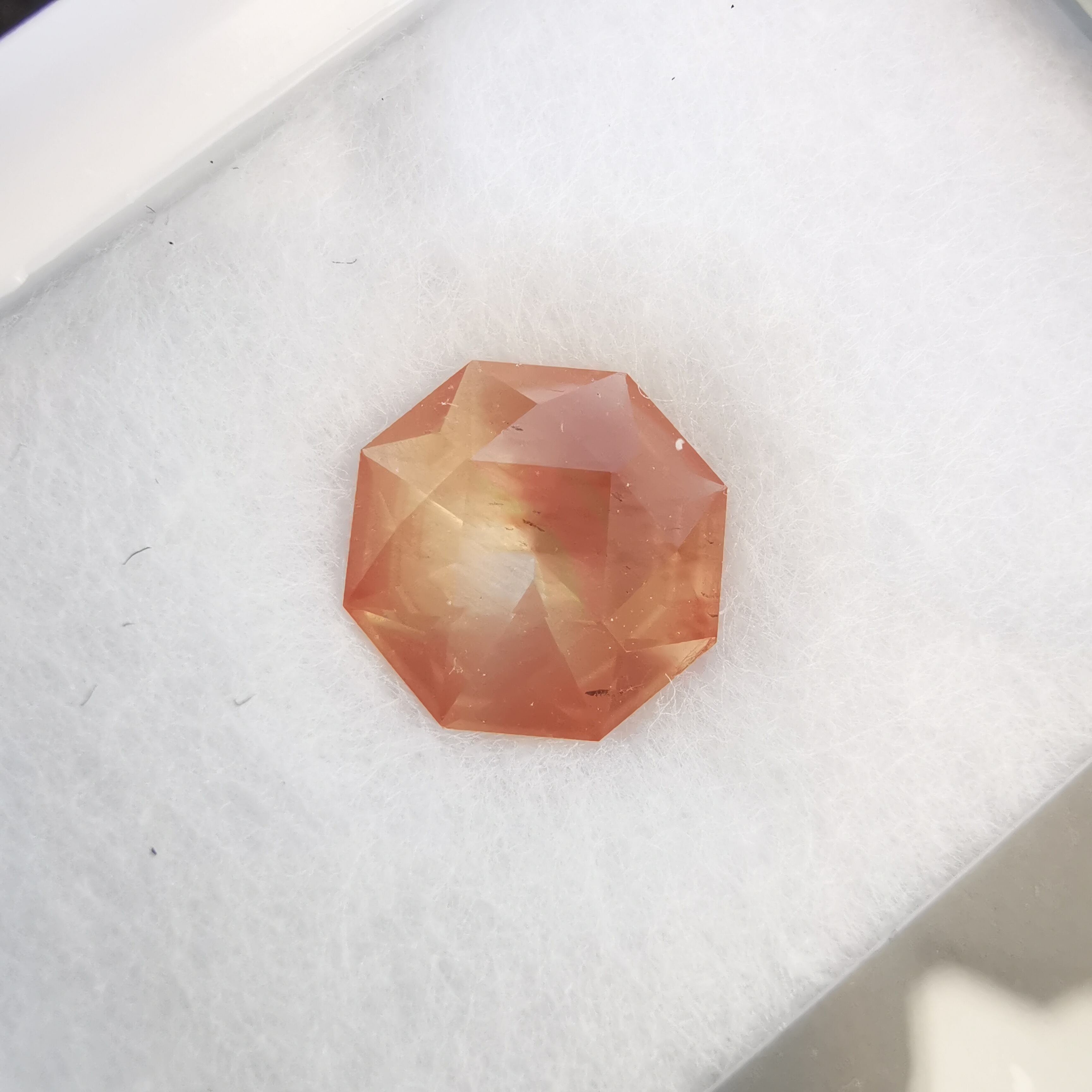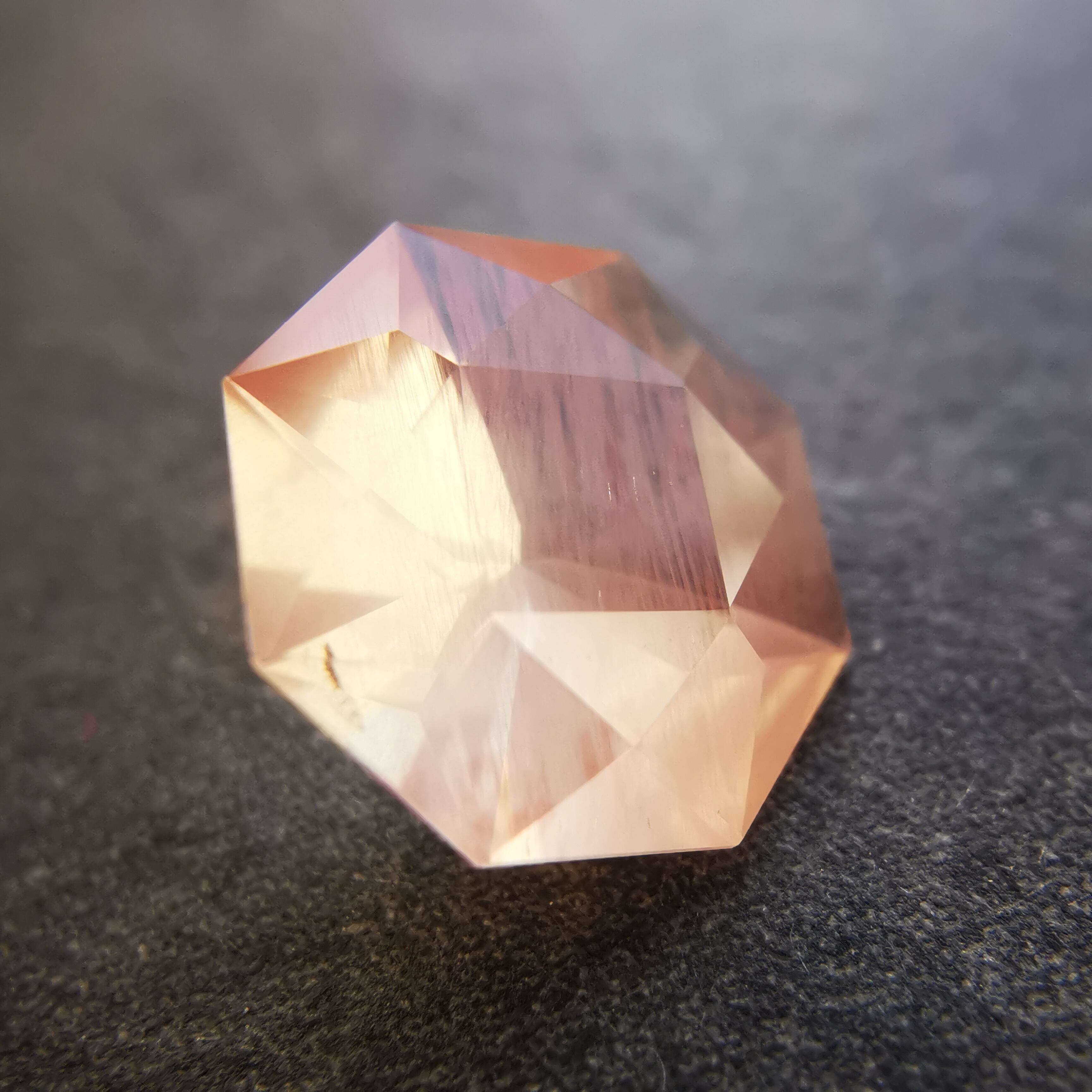 アンデシンの色を表すのはとても難しいのですが、柔らかな黄赤、赤香色と言うのがかなり近いような気がします。