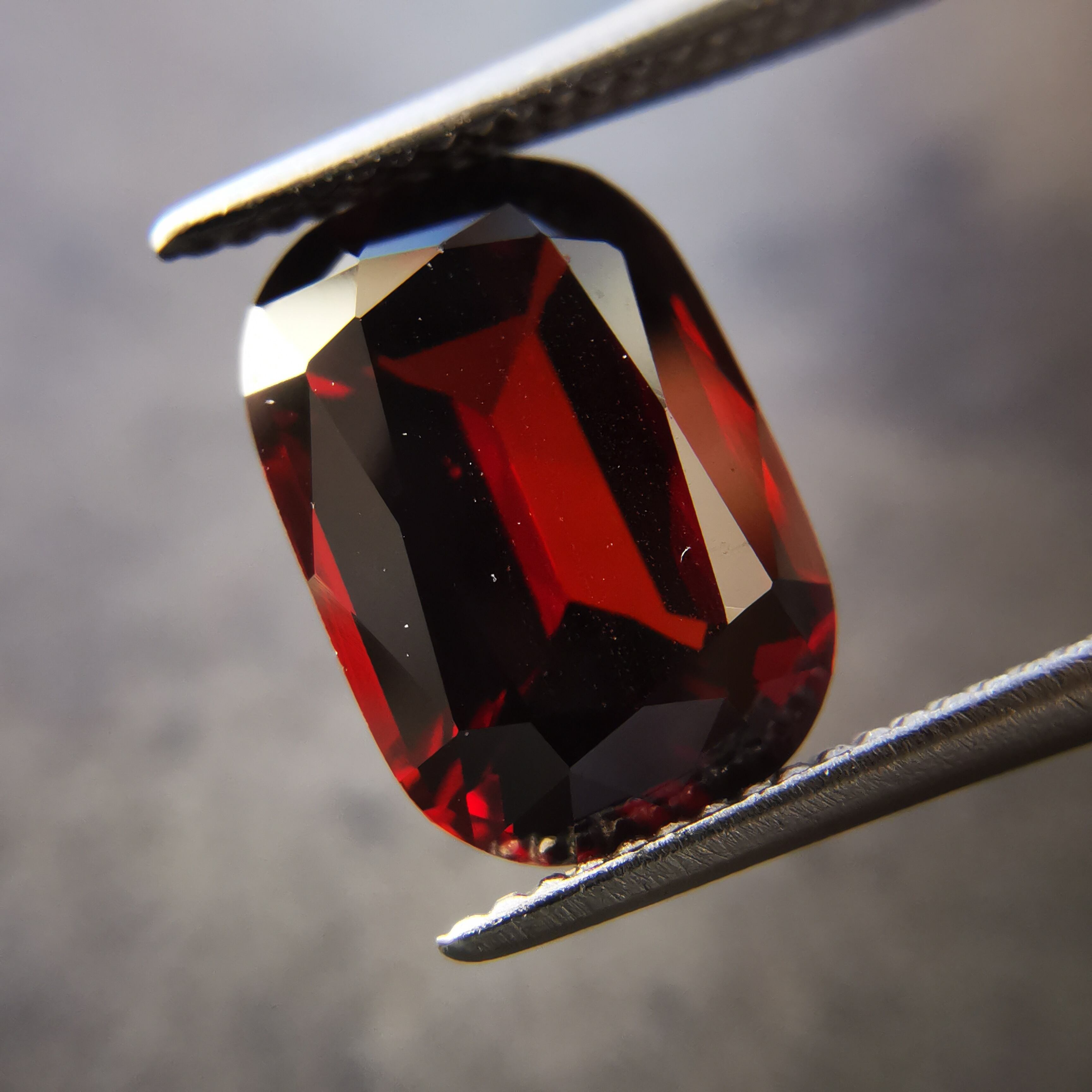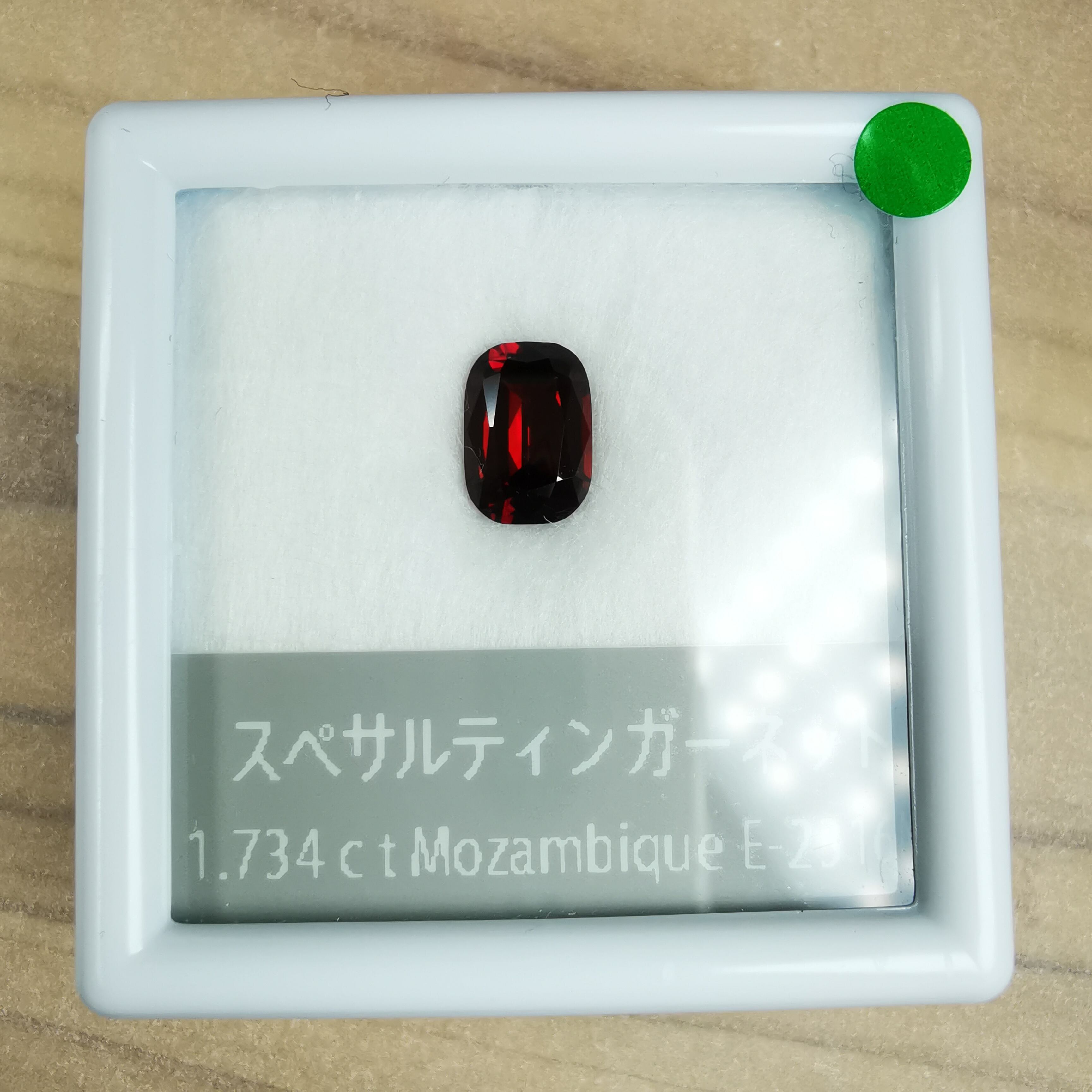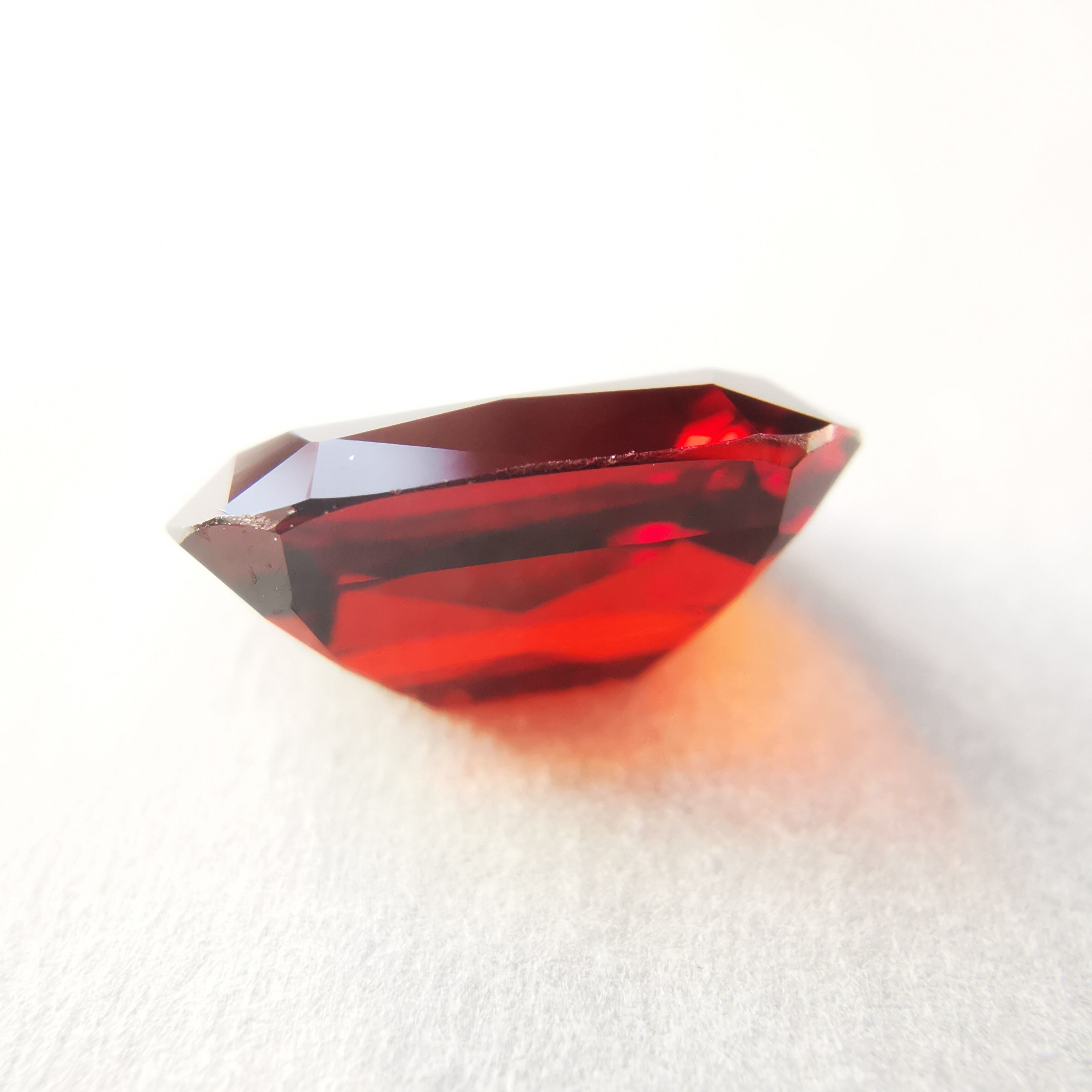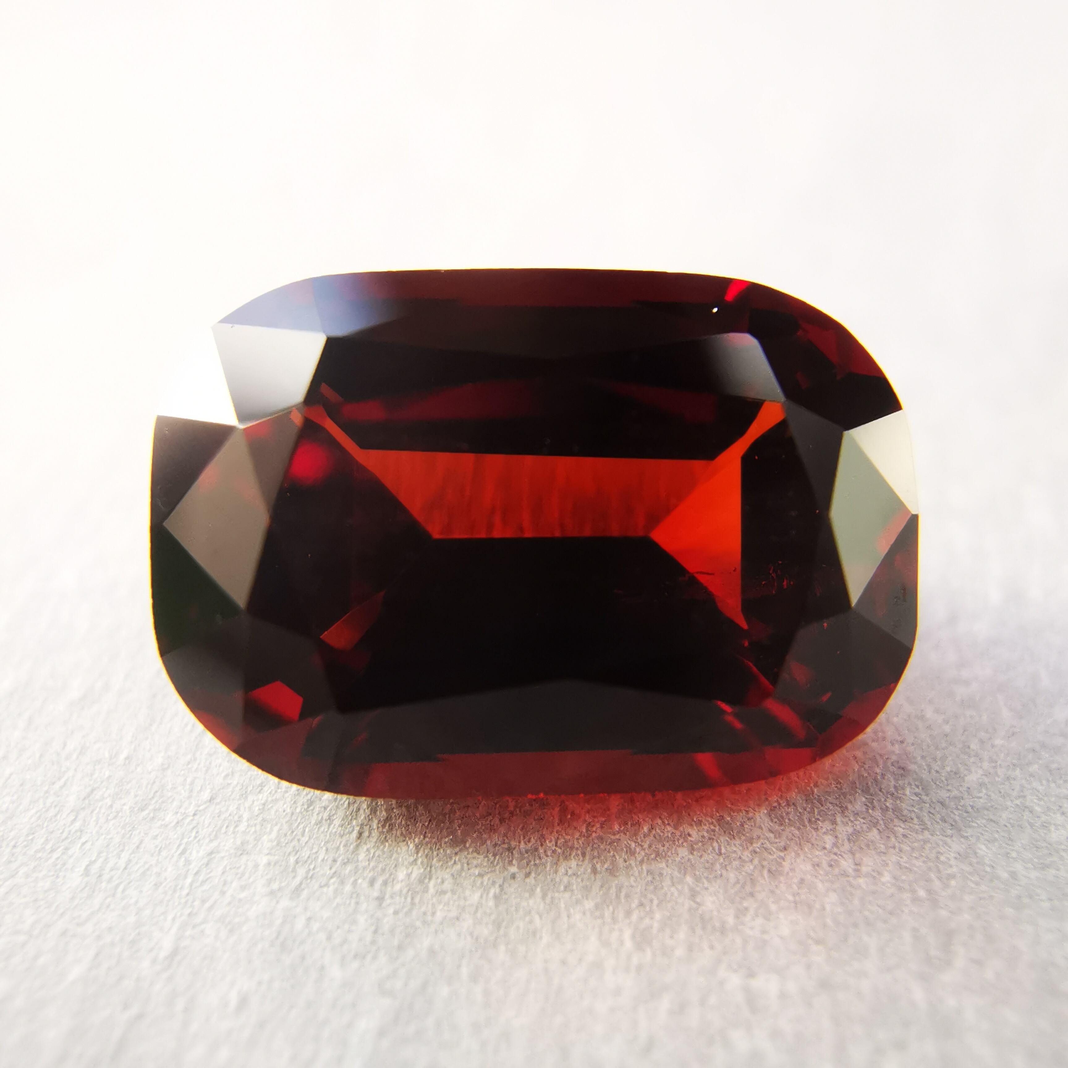 一見暗く沈んだ朱色がかったスペサルティンガーネットですが、傾けると熾火のような赤がギラリと現れます。