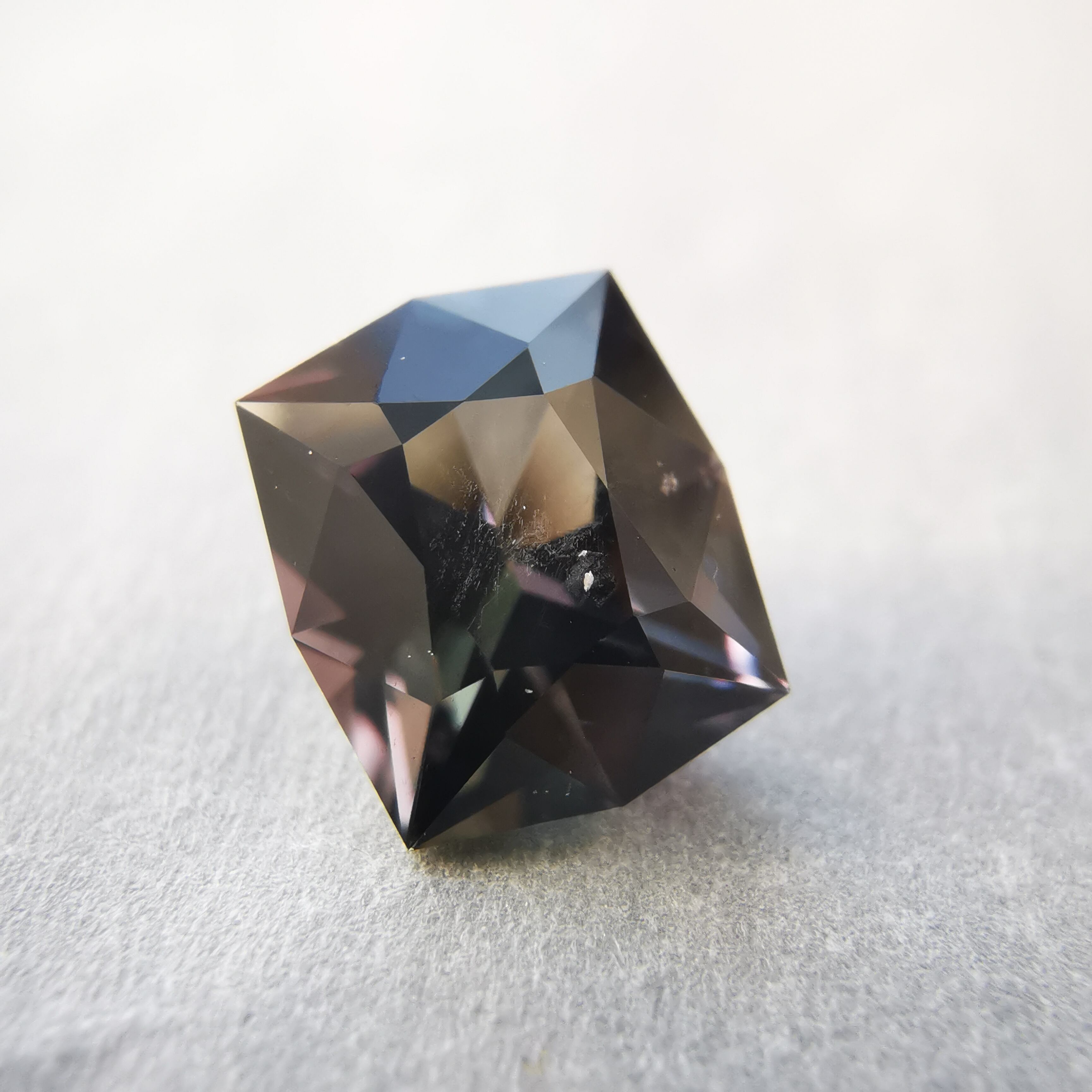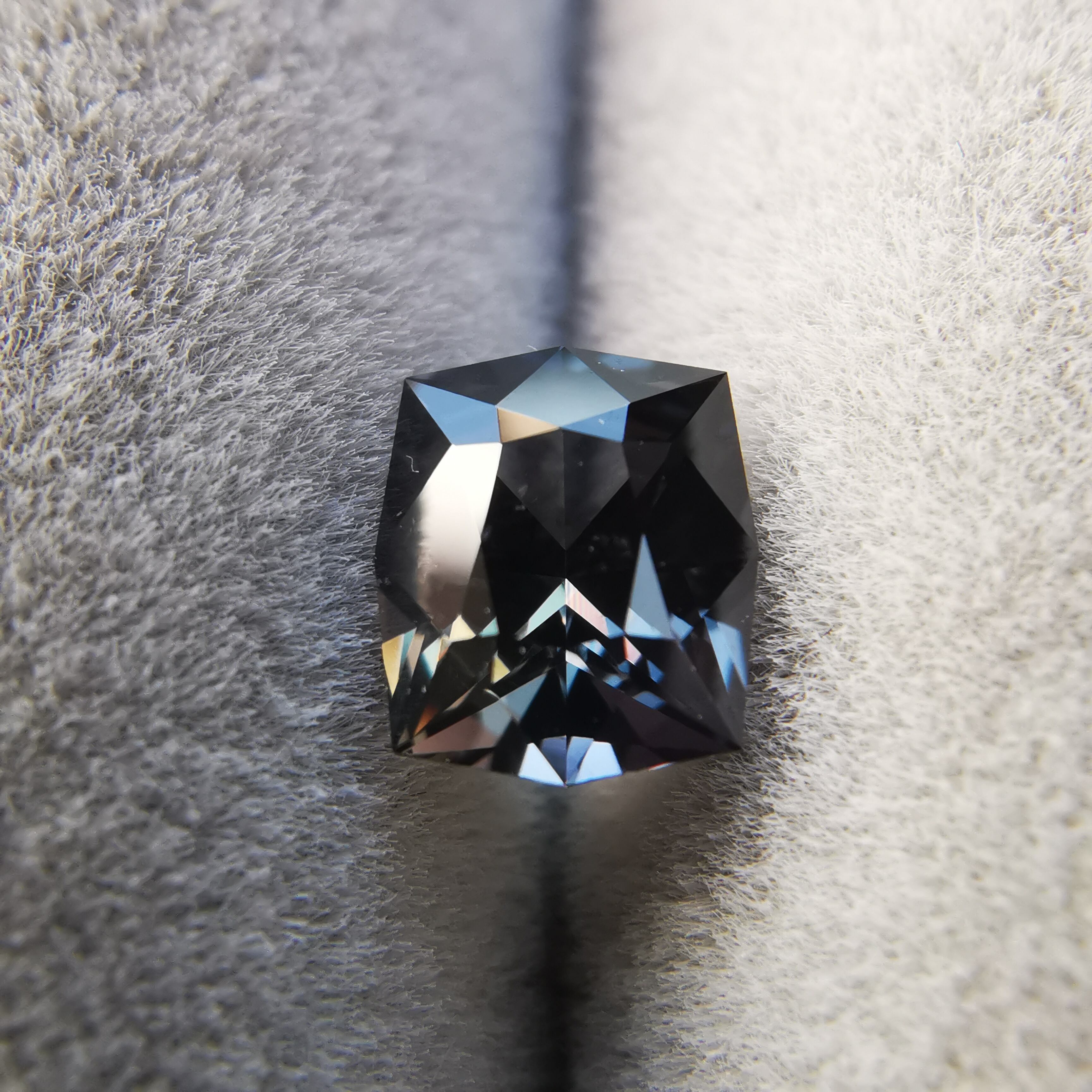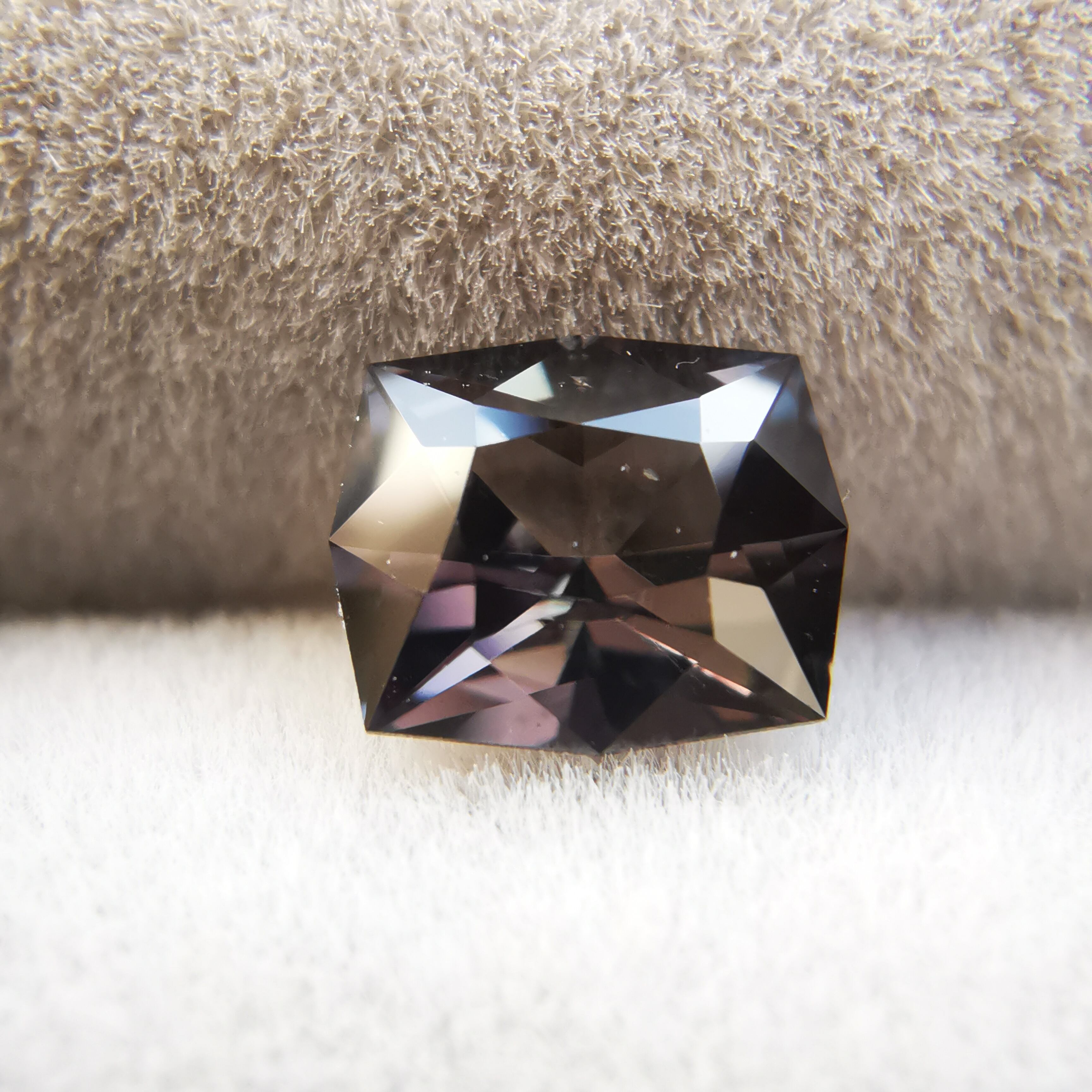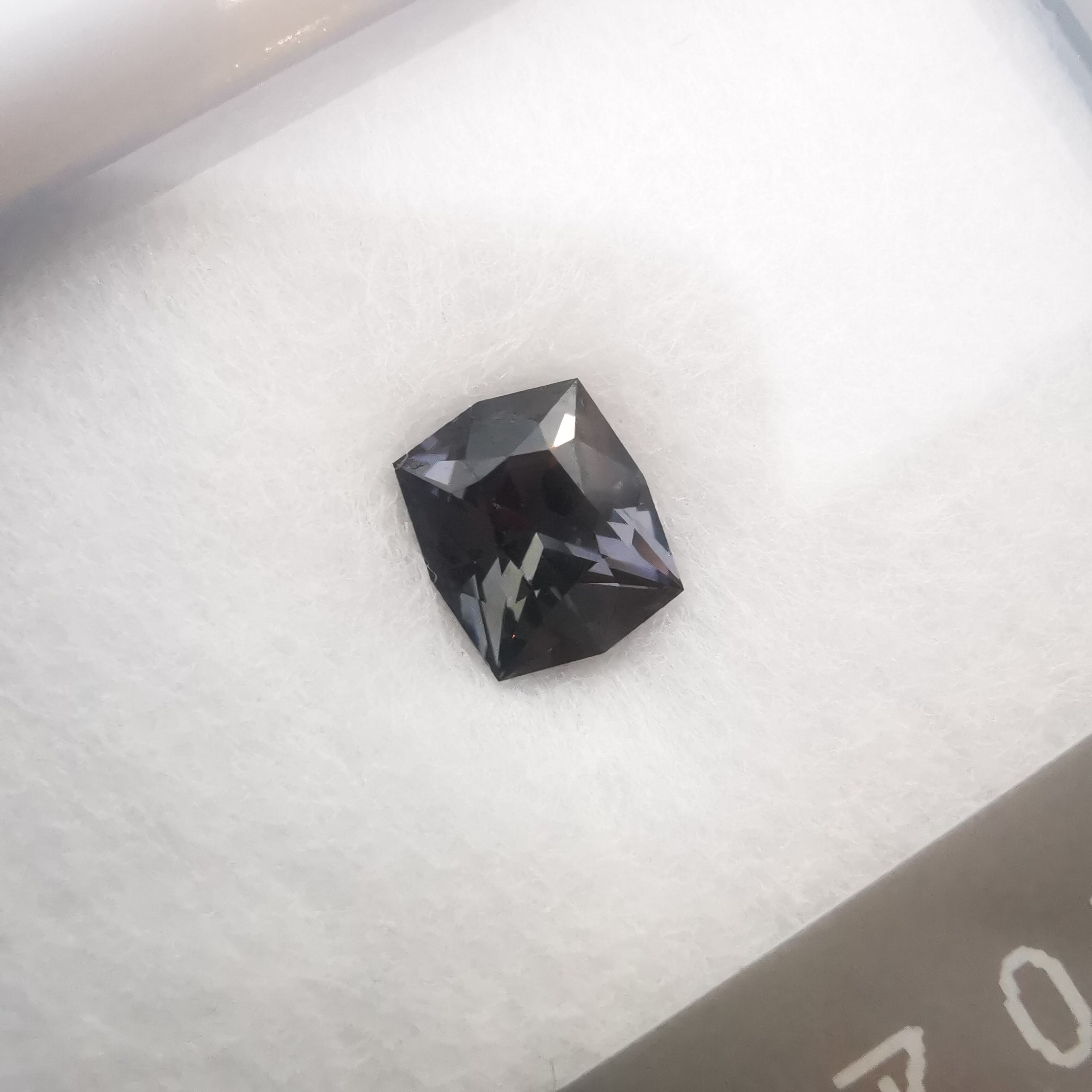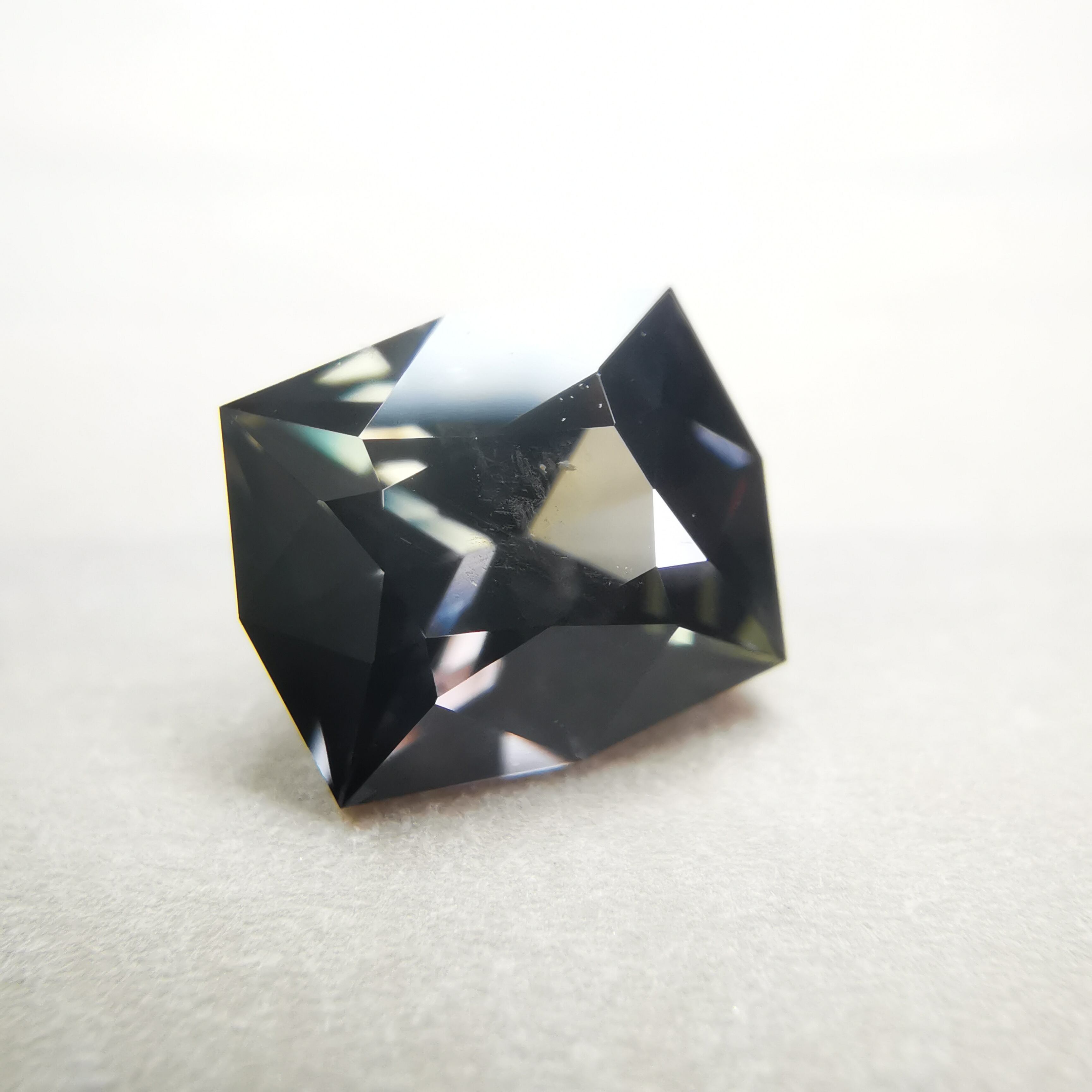 黒に近い石の中から、様々な色のきらめきがこぼれる一石です。