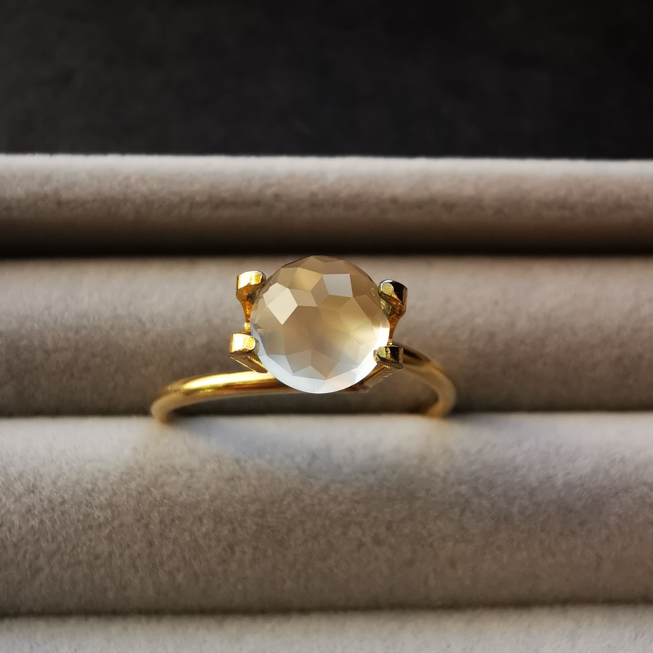 カボションのゴールデンムーンストーンをアプリコットをイメージしたカット、エピコットカットにリカットしました。