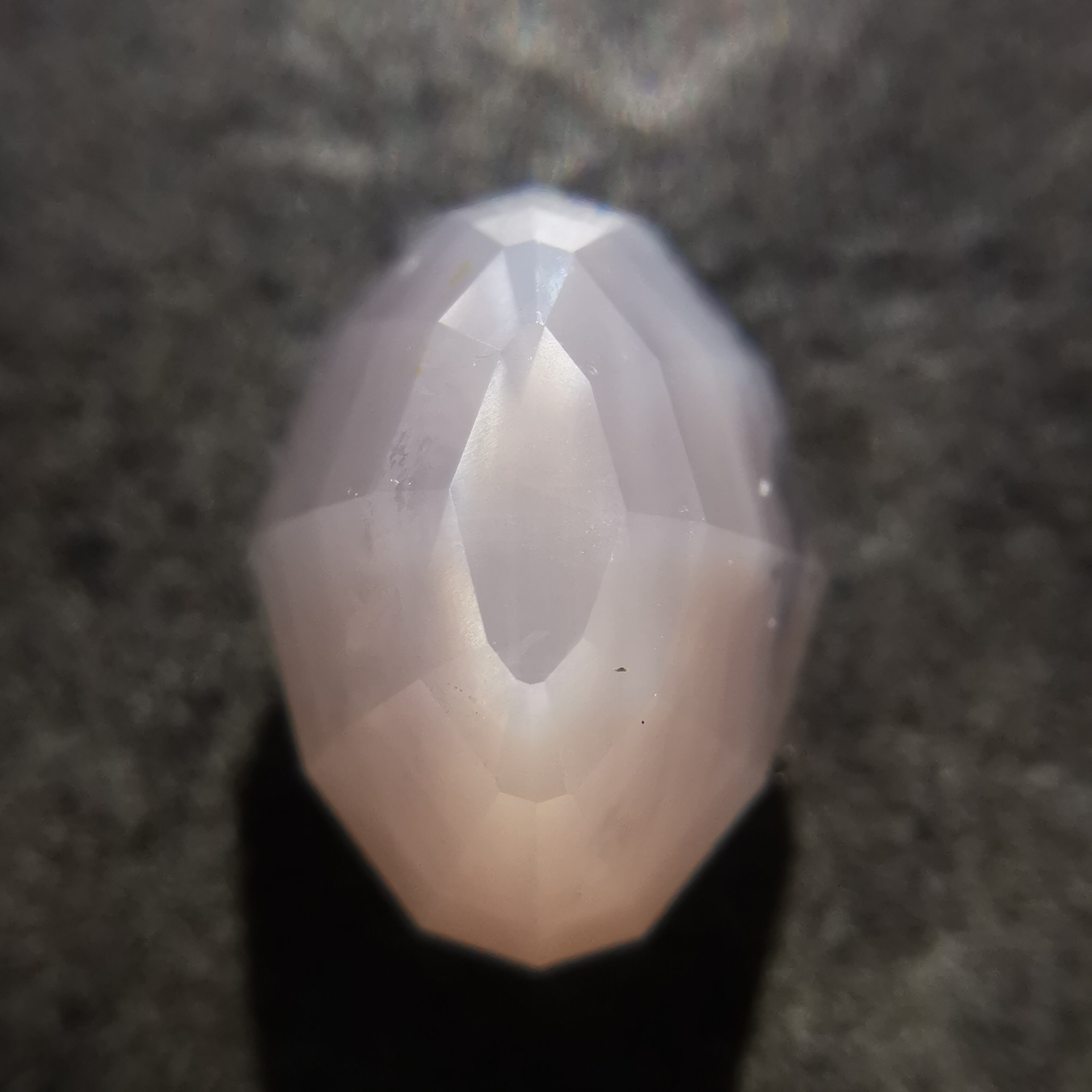 こちらの石は元の高さを活かしテーブルを小さく取ったため、動かすとトップを中心に光が集まってきて、スターサファイアの名残を感じるような一石になりました。