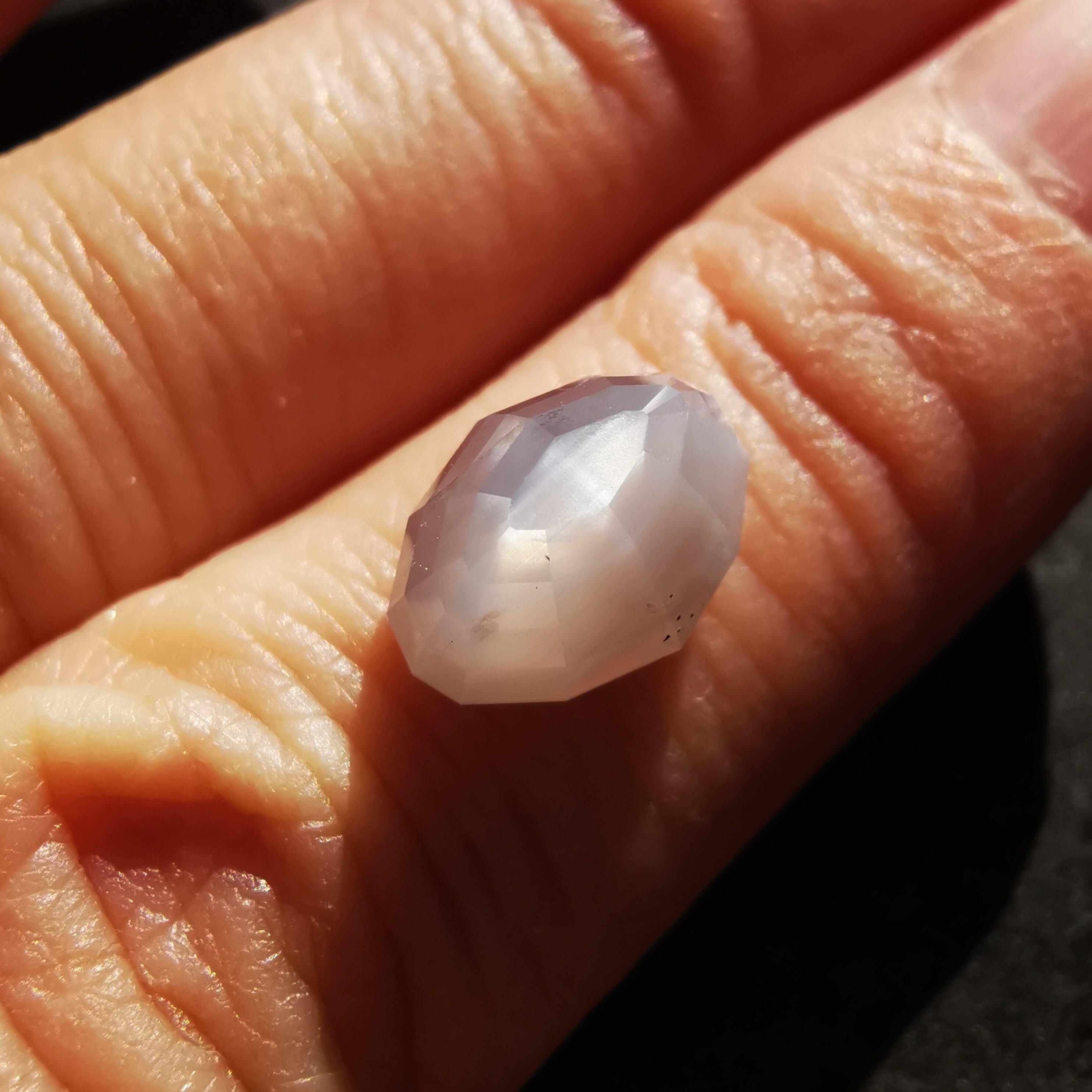スターサファイアをリカットすると、スターは消える代わりにファセットの辺に沿って発光するようにシラーが光り、カットの美しさが強調されます。