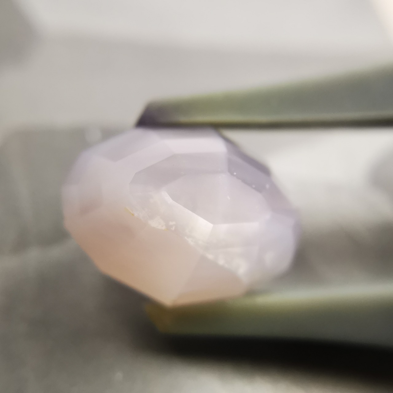 大粒のスターサファイアを、多角形のフラットバックにカスタムリカットしました。