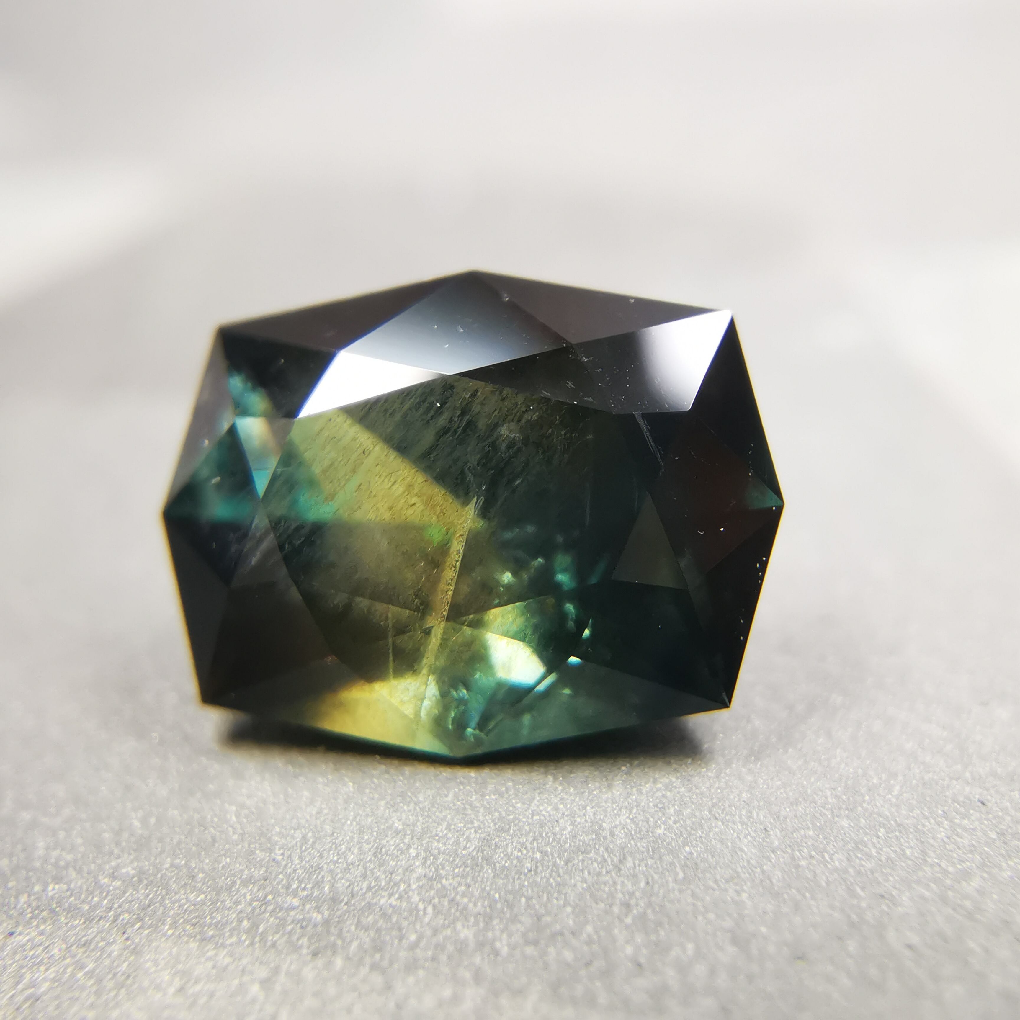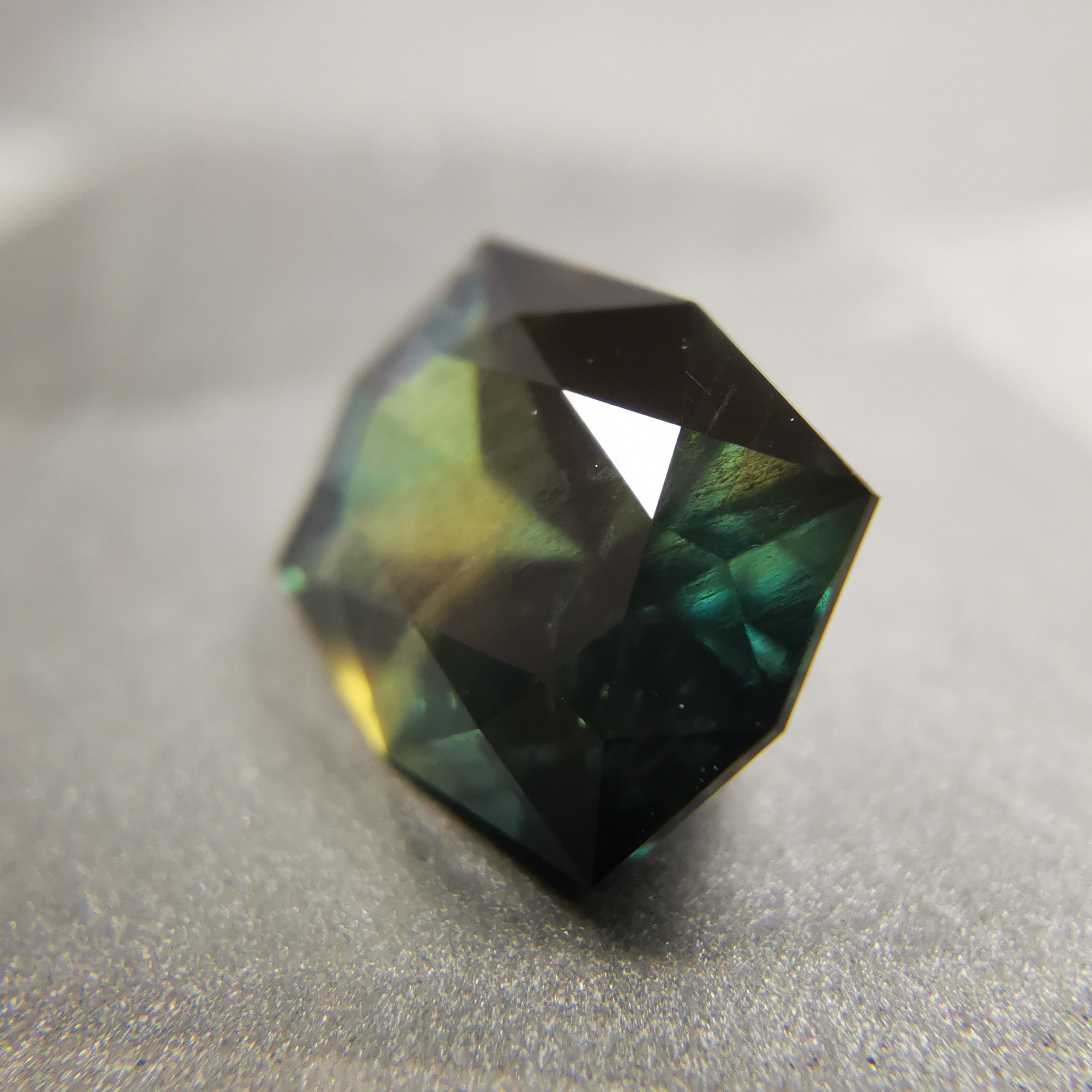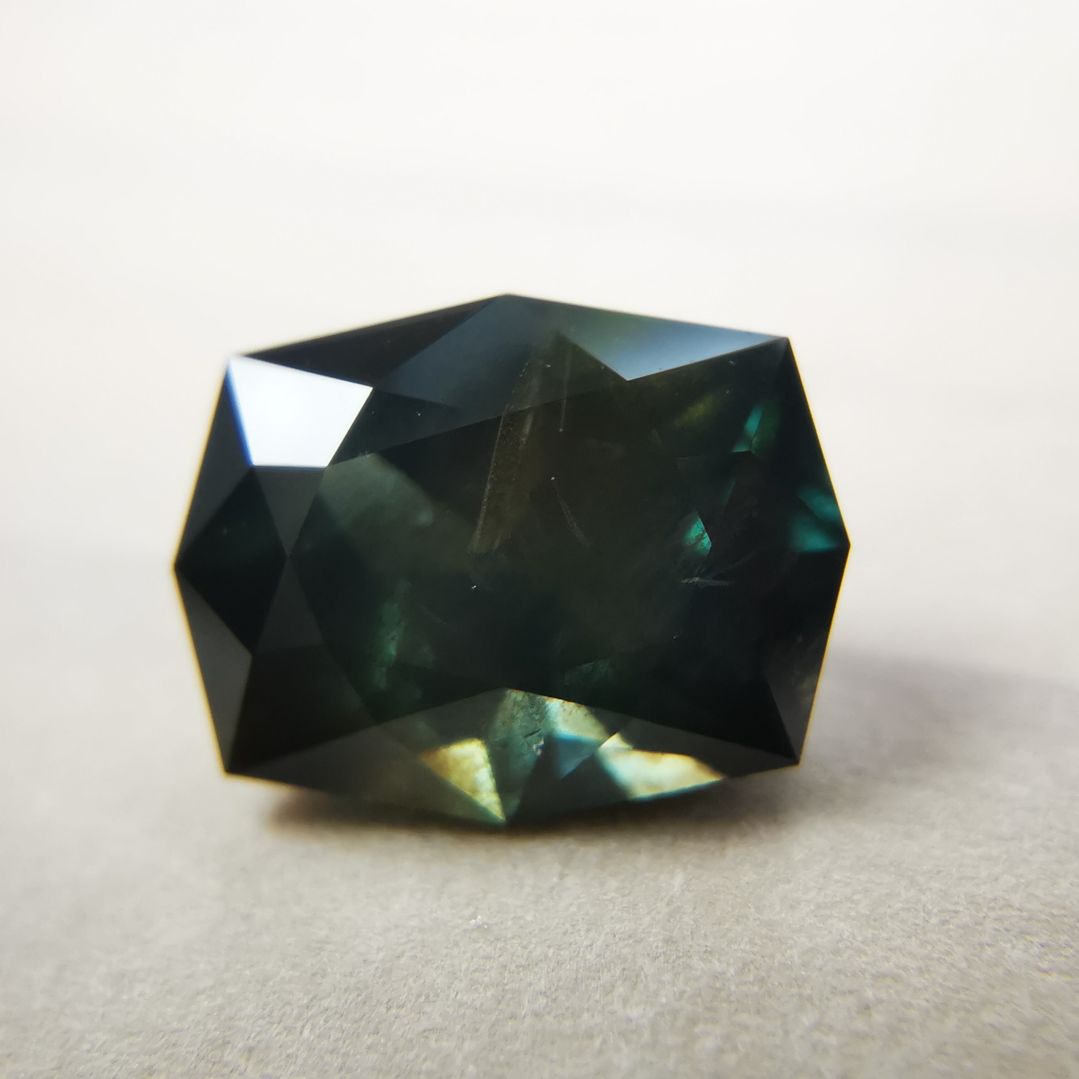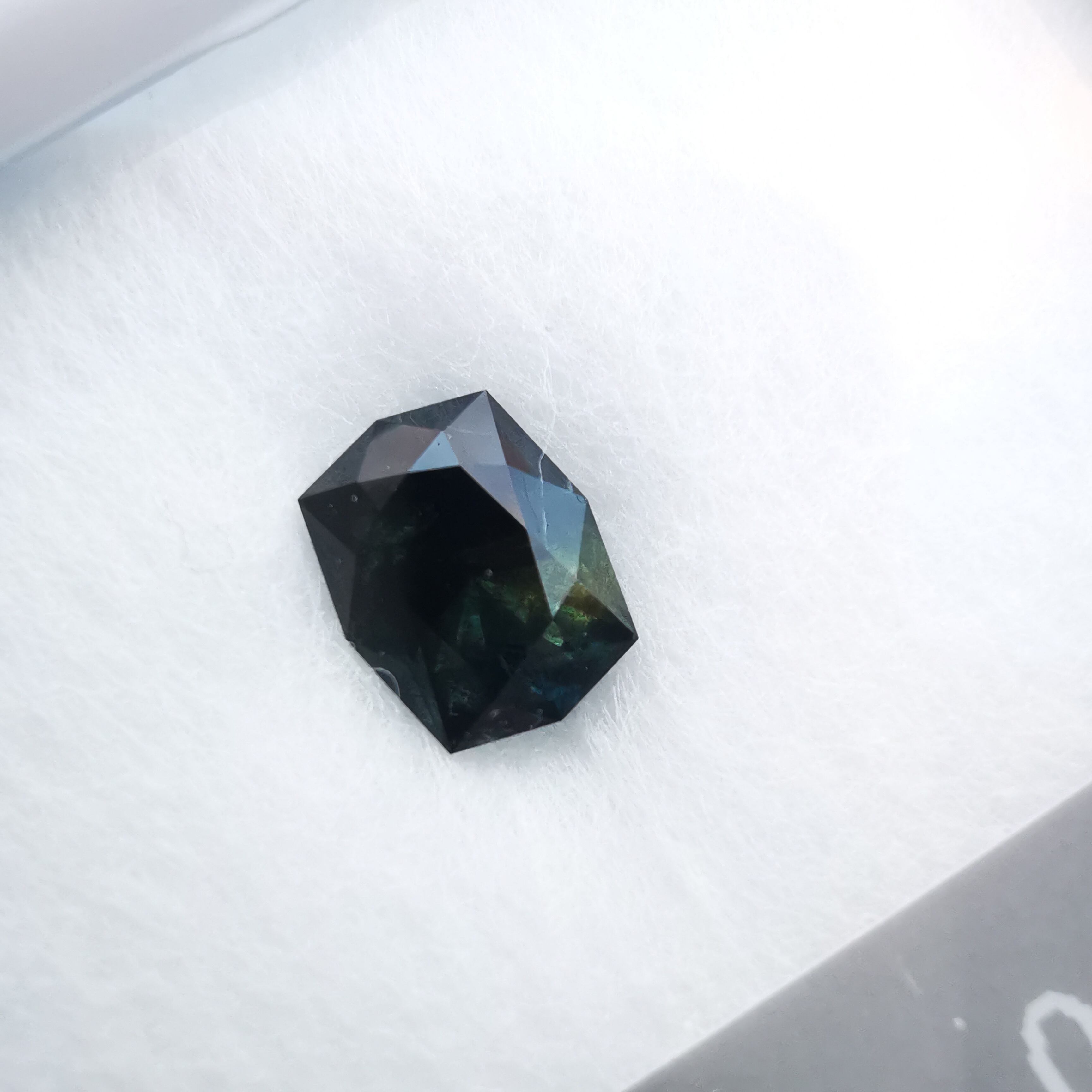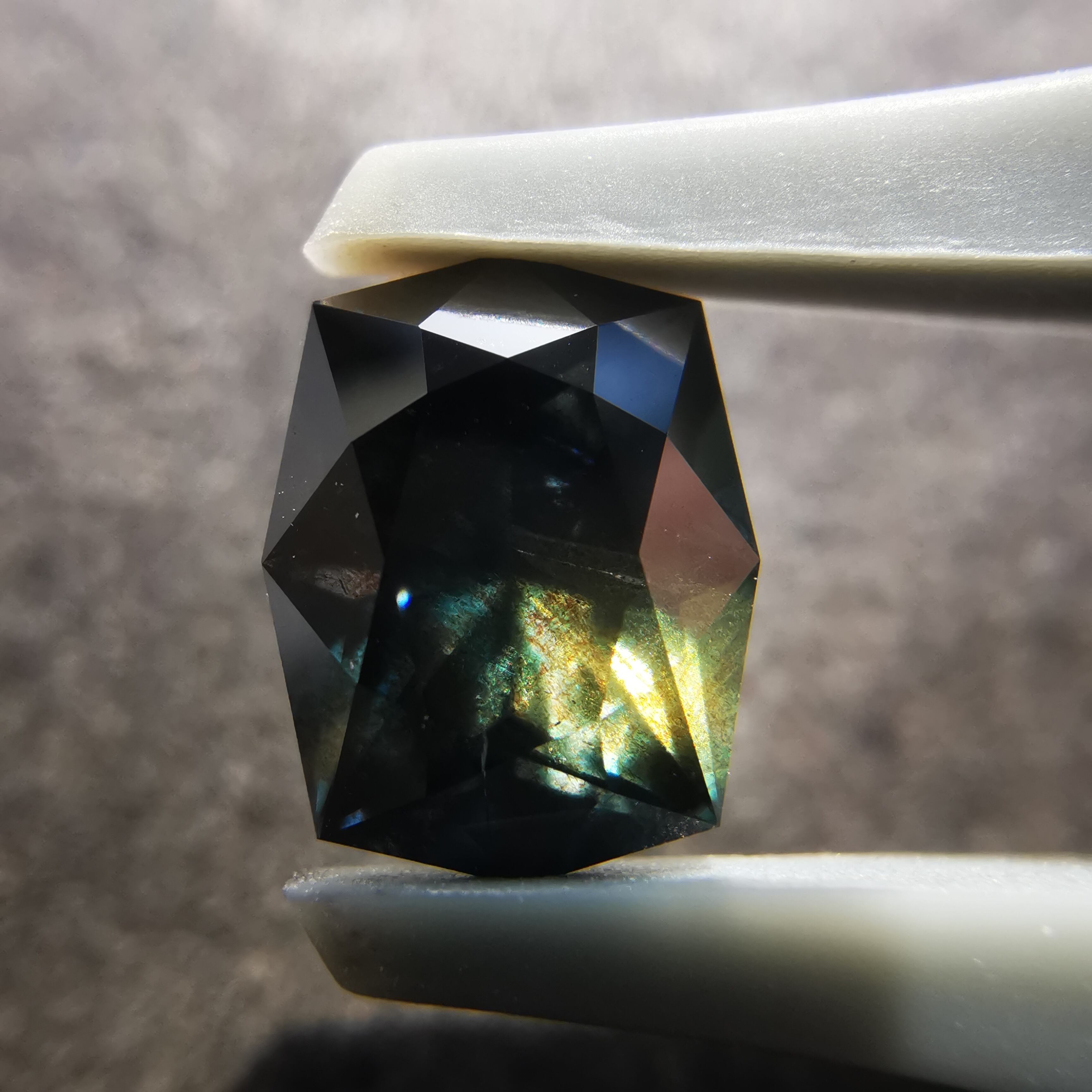限りなく黒に近い暗い石の中から、ブルーグリーンとゴールドが混ざりチラチラときらめきます。
