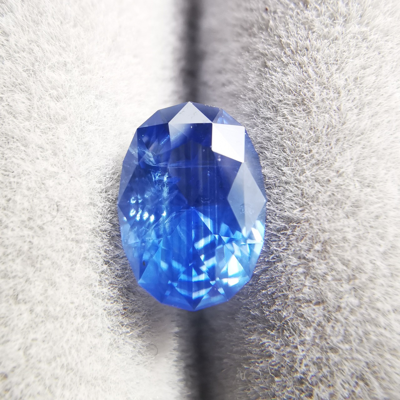 一見、優等生なブルーサファイアですが、よく見ると縦に走るカラーバンドが何本も見えます。