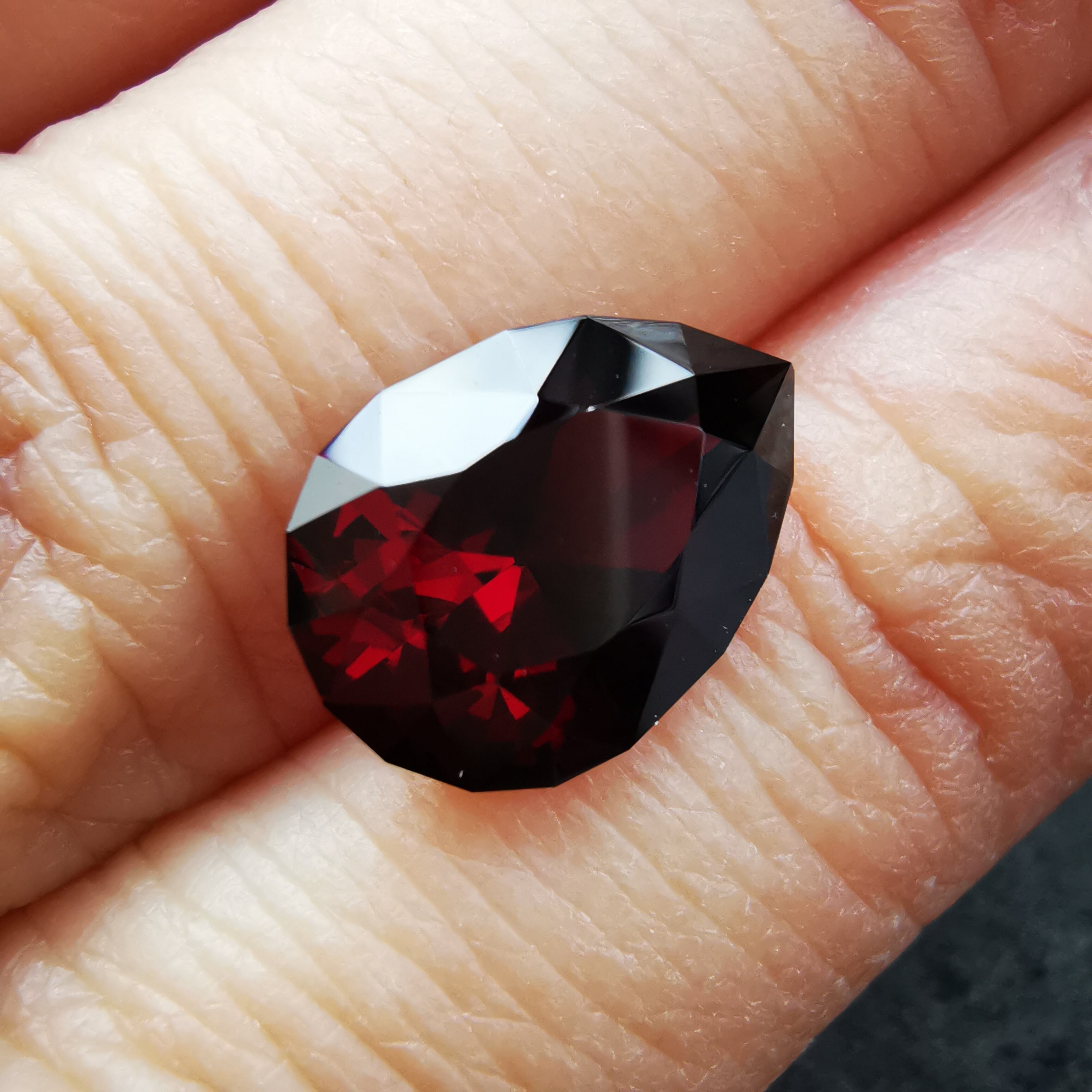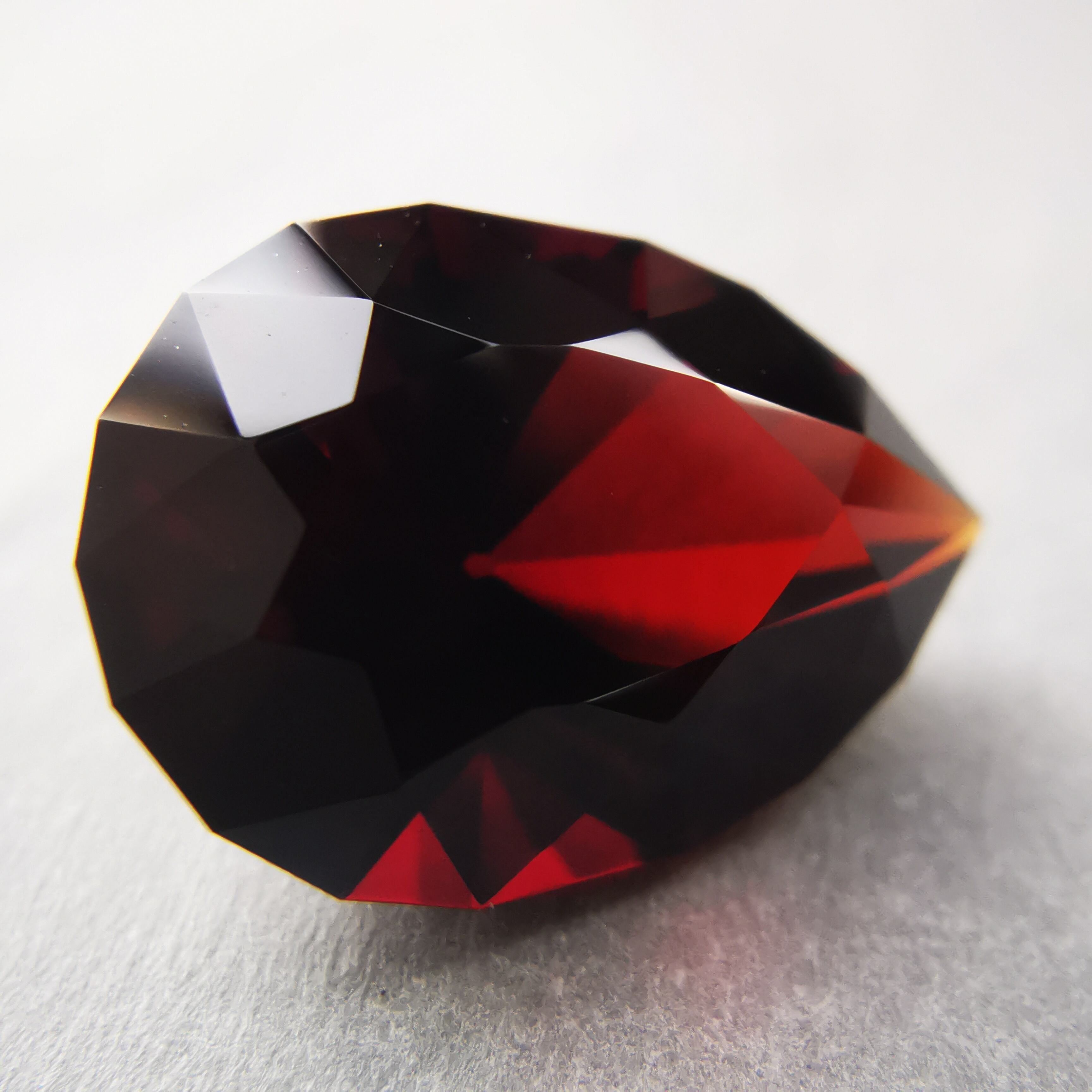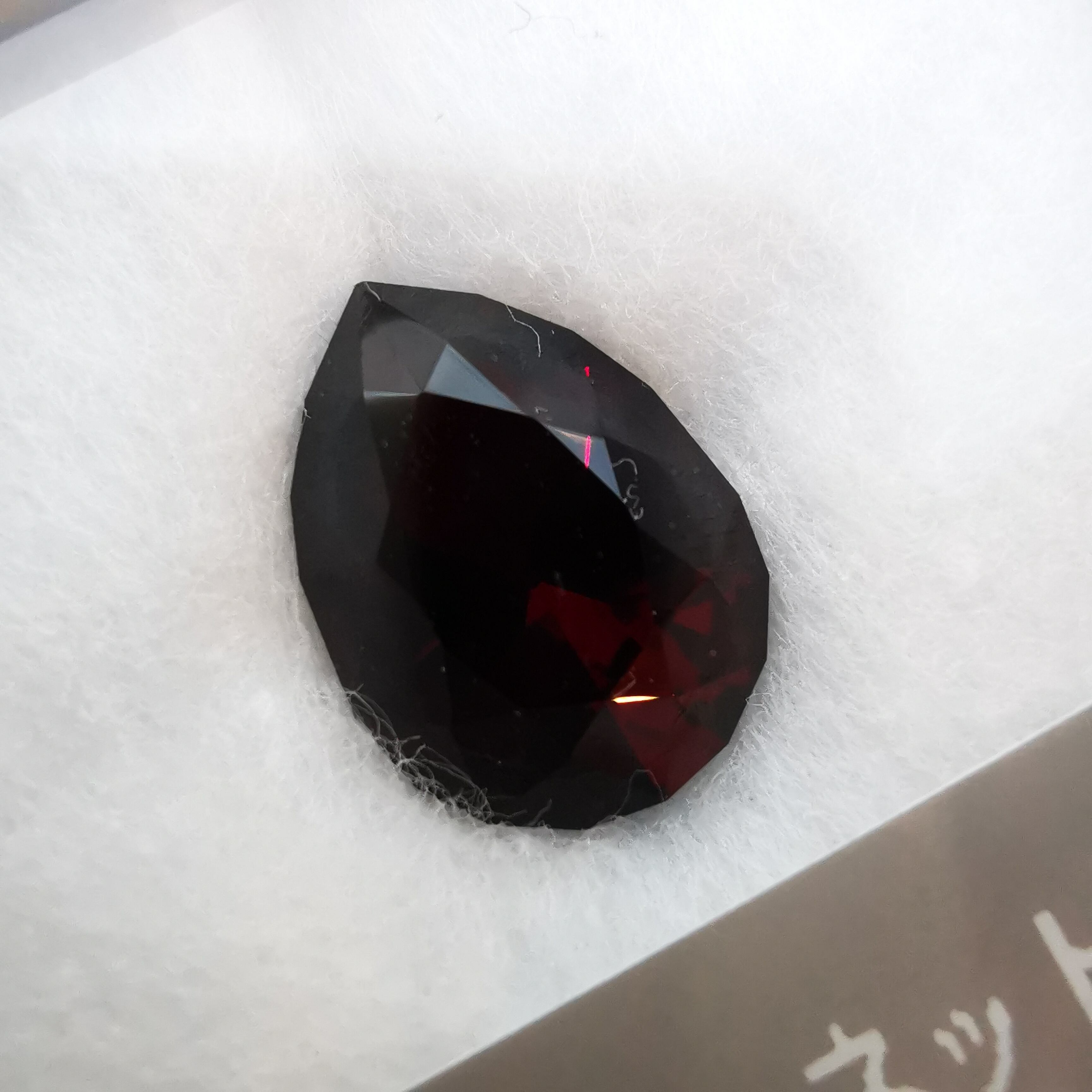 限りなく黒に近いほど暗い石の中から、血のような赤がきらめきます。