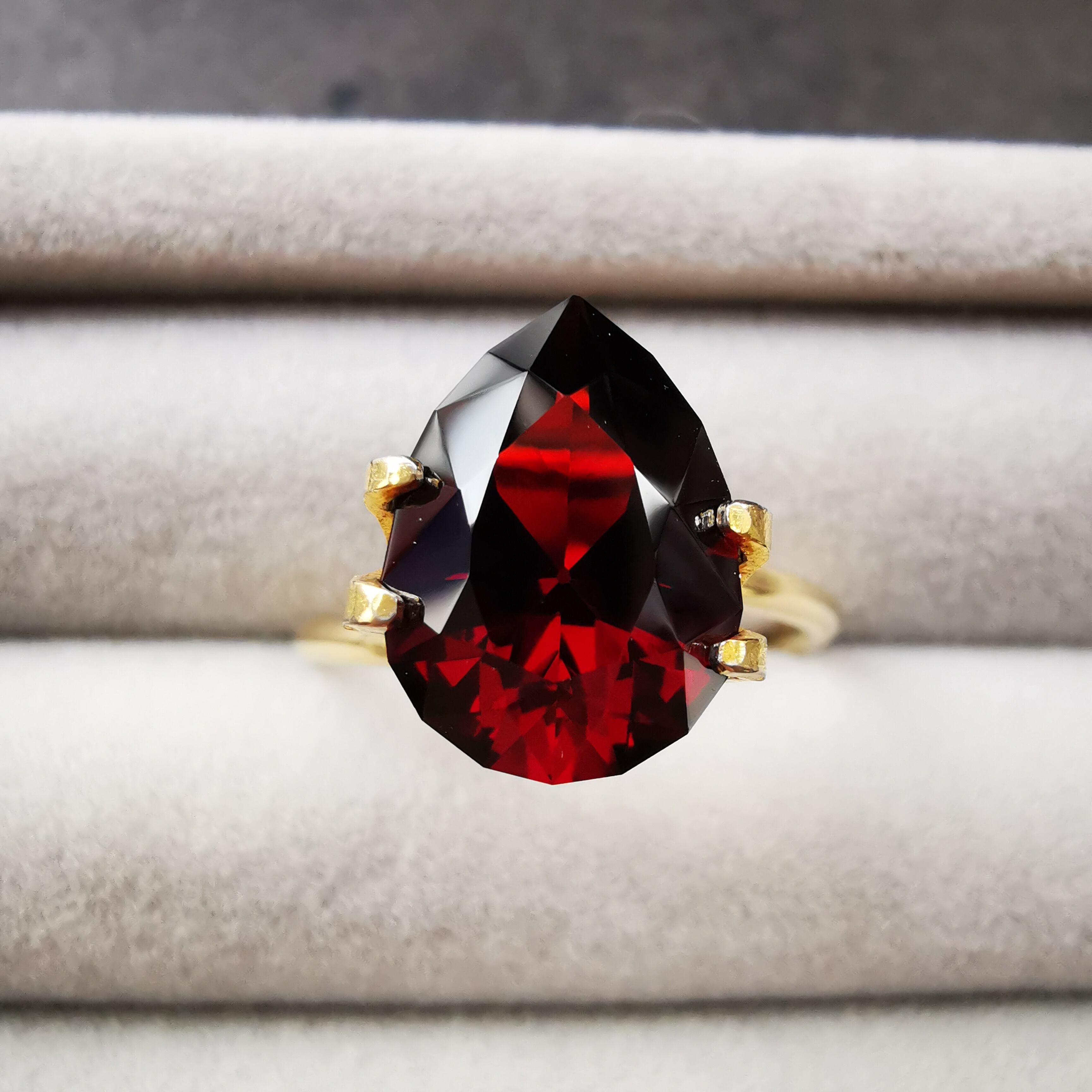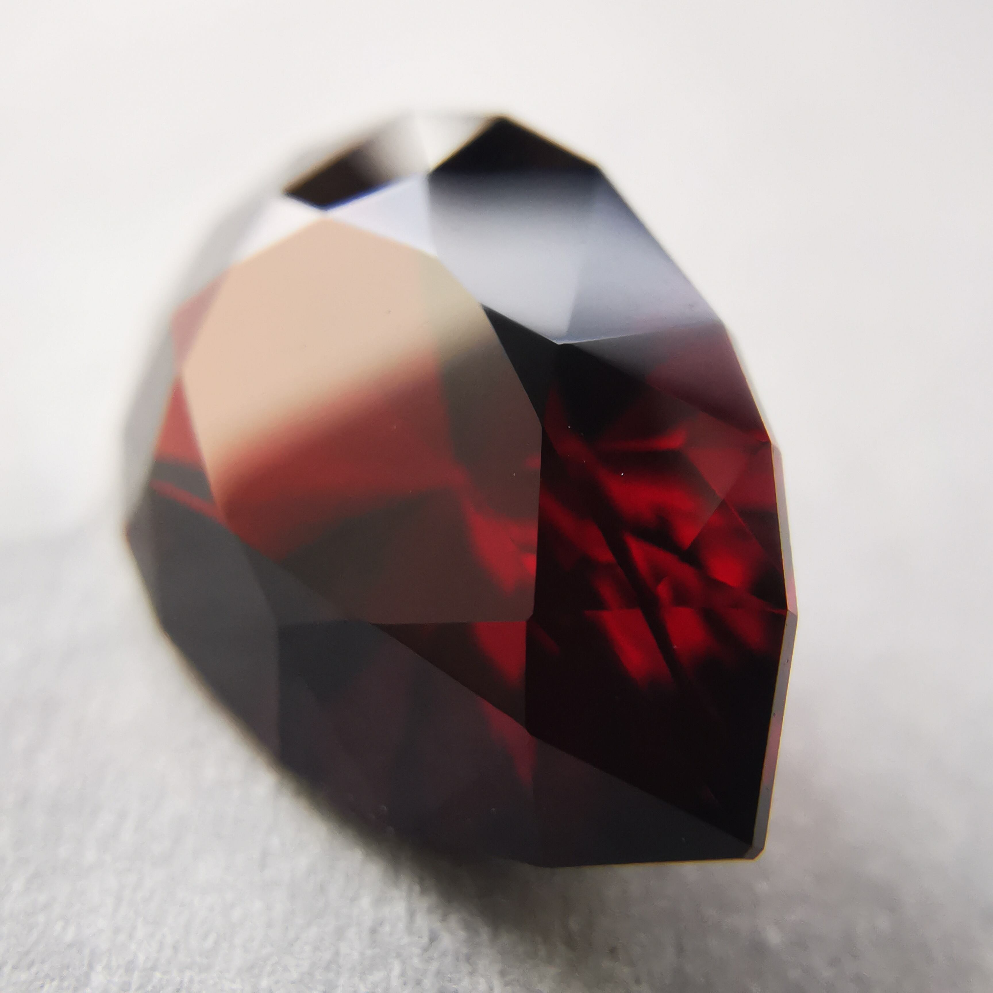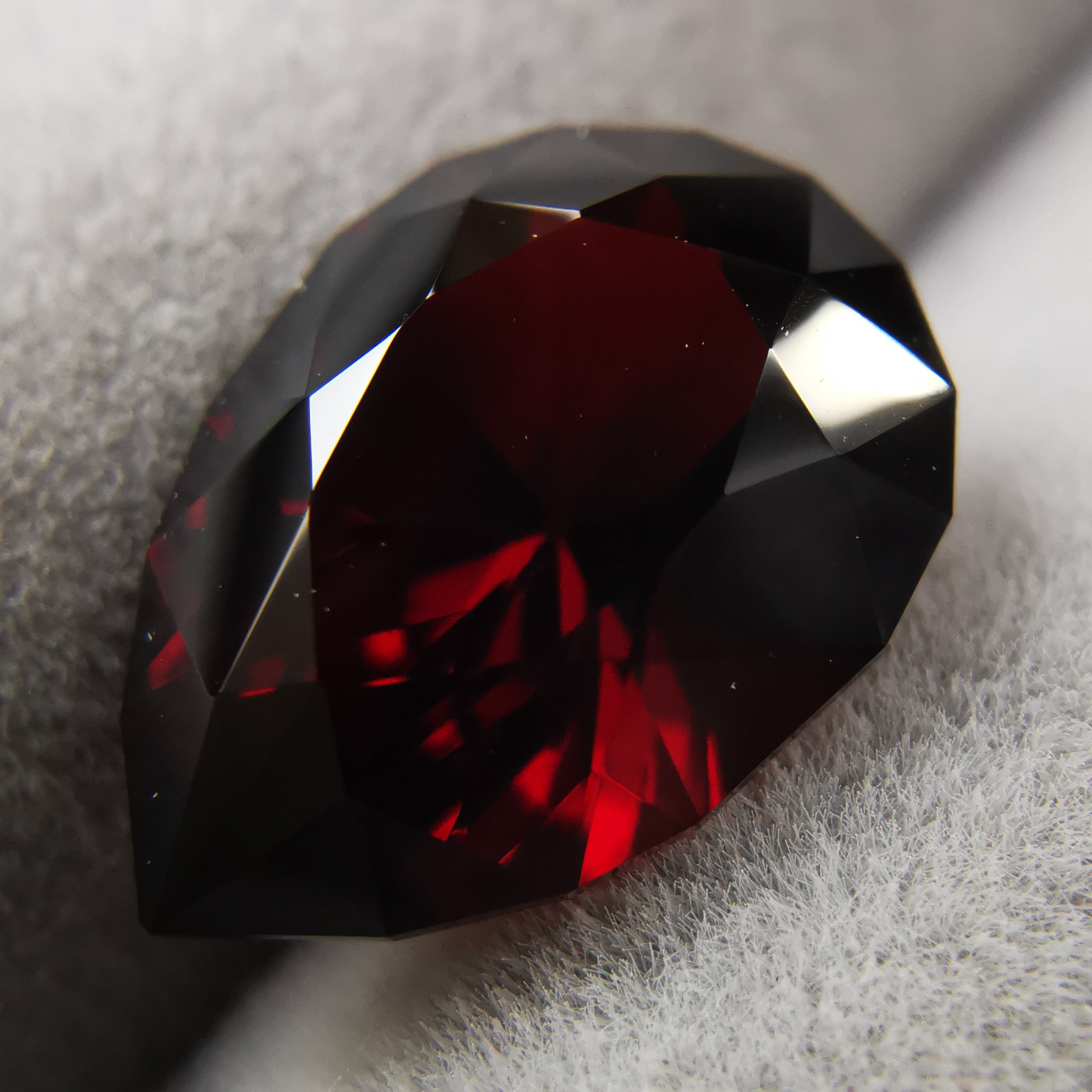 限りなく黒に近いほど暗い石の中から、血のような赤がきらめきます。