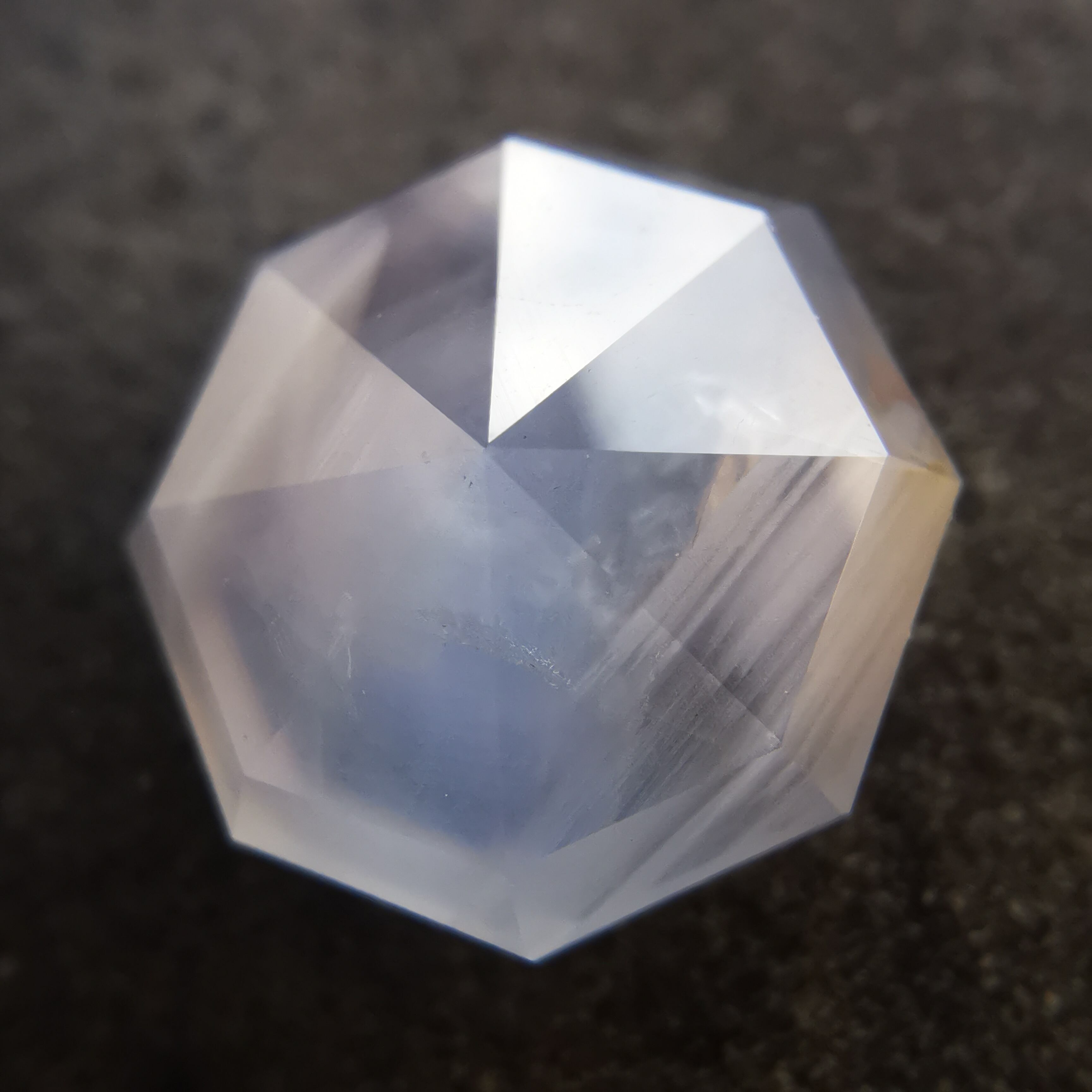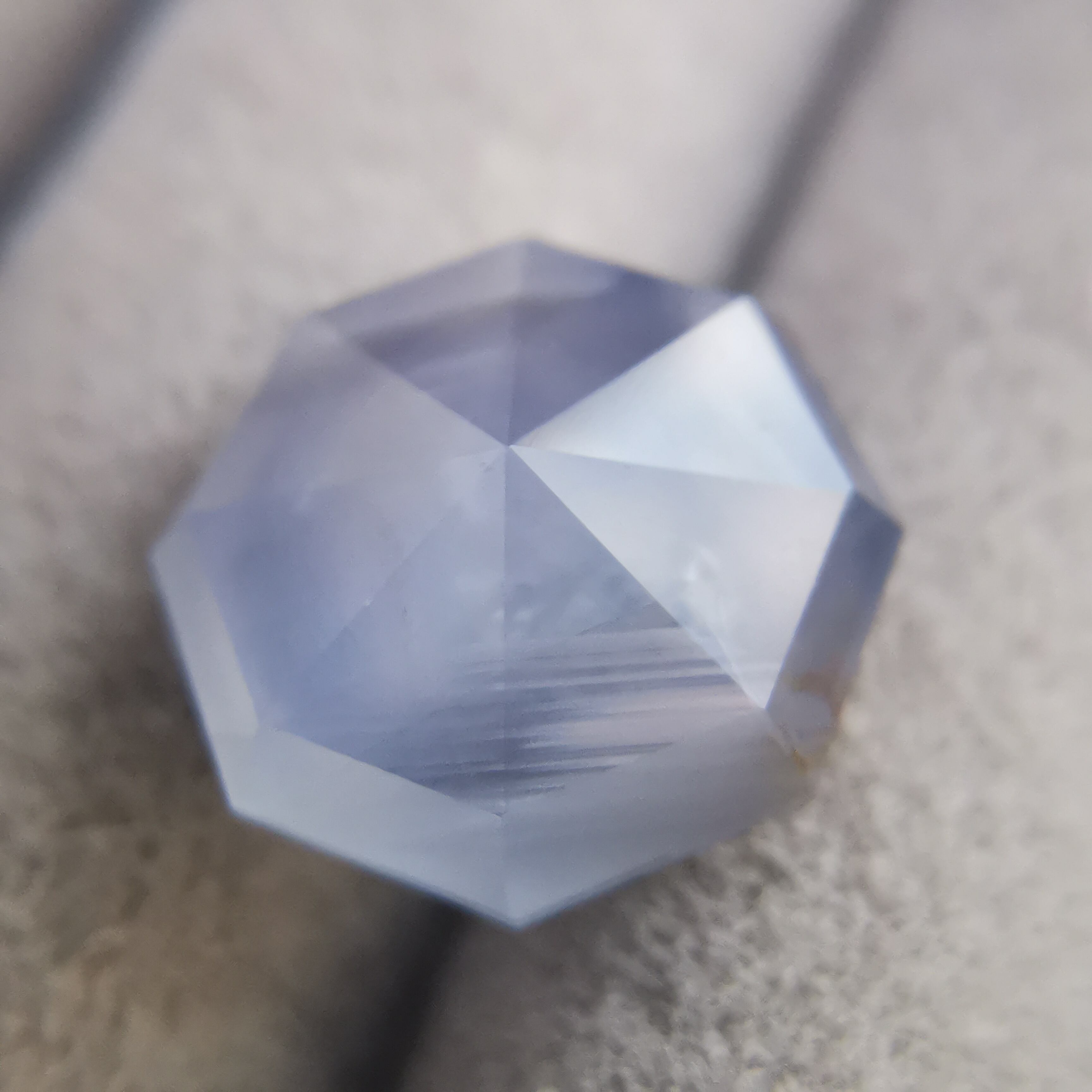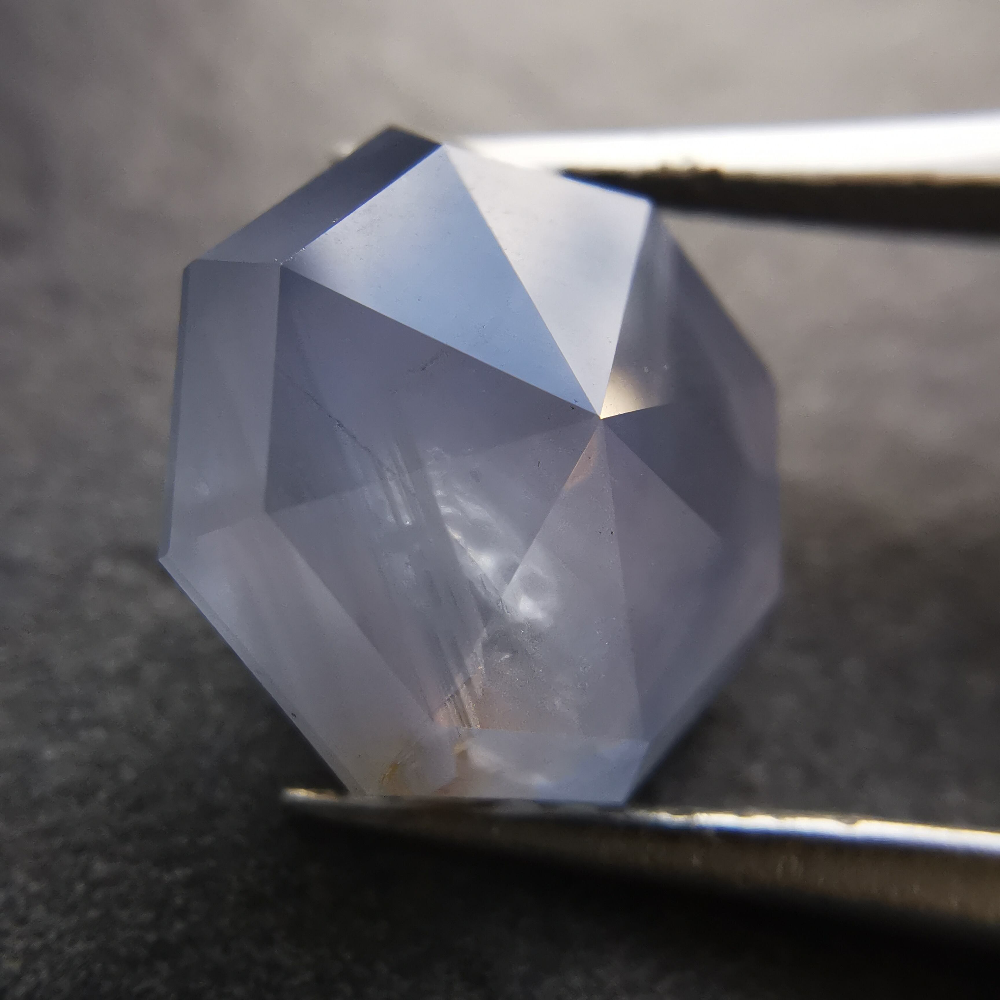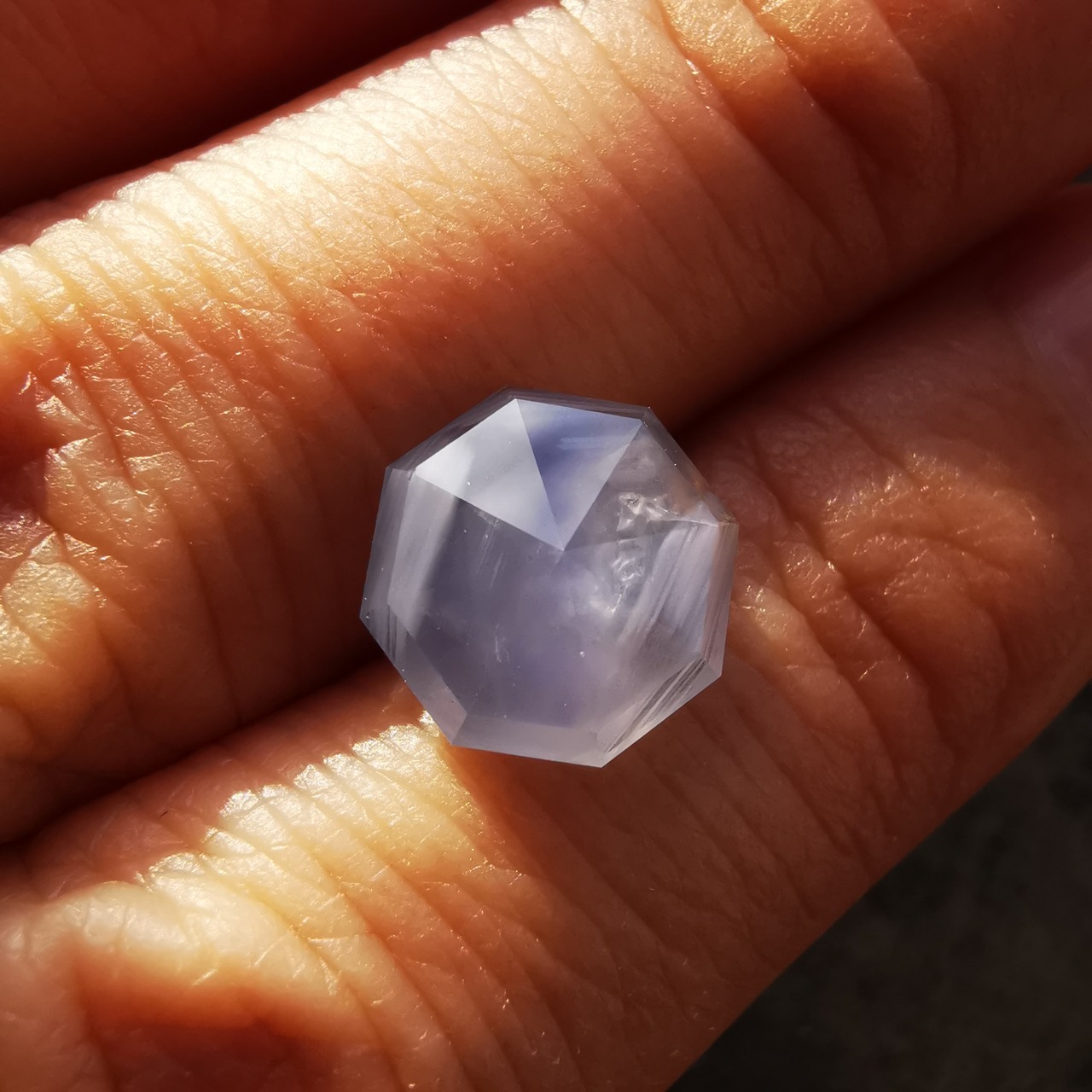 とても大粒のスターサファイアをカスタムリカット、8個の三角形が集まったオクタゴンとなりました。