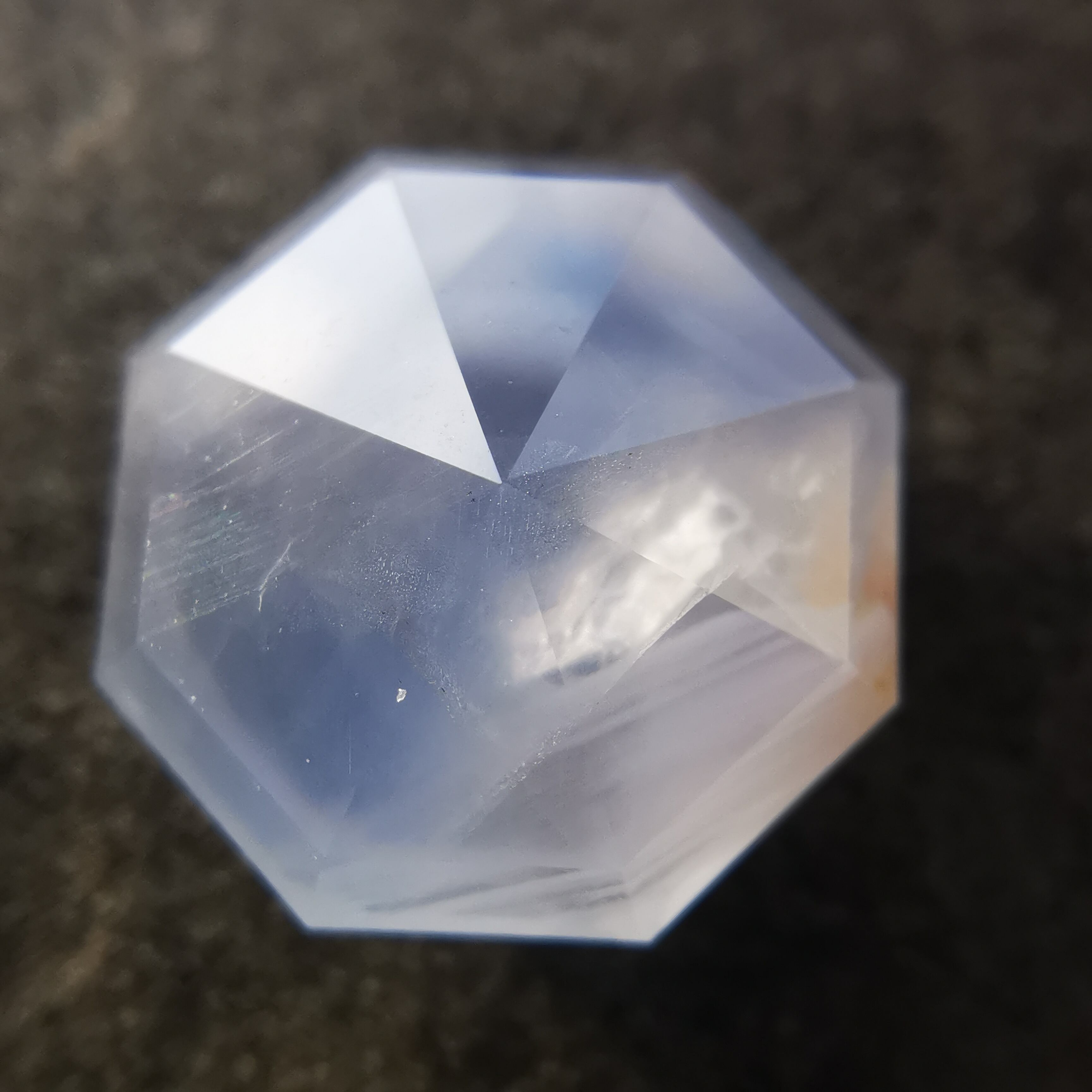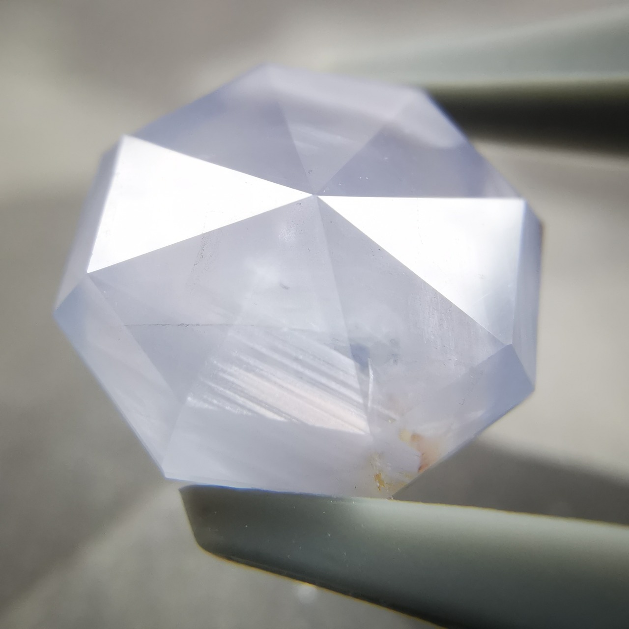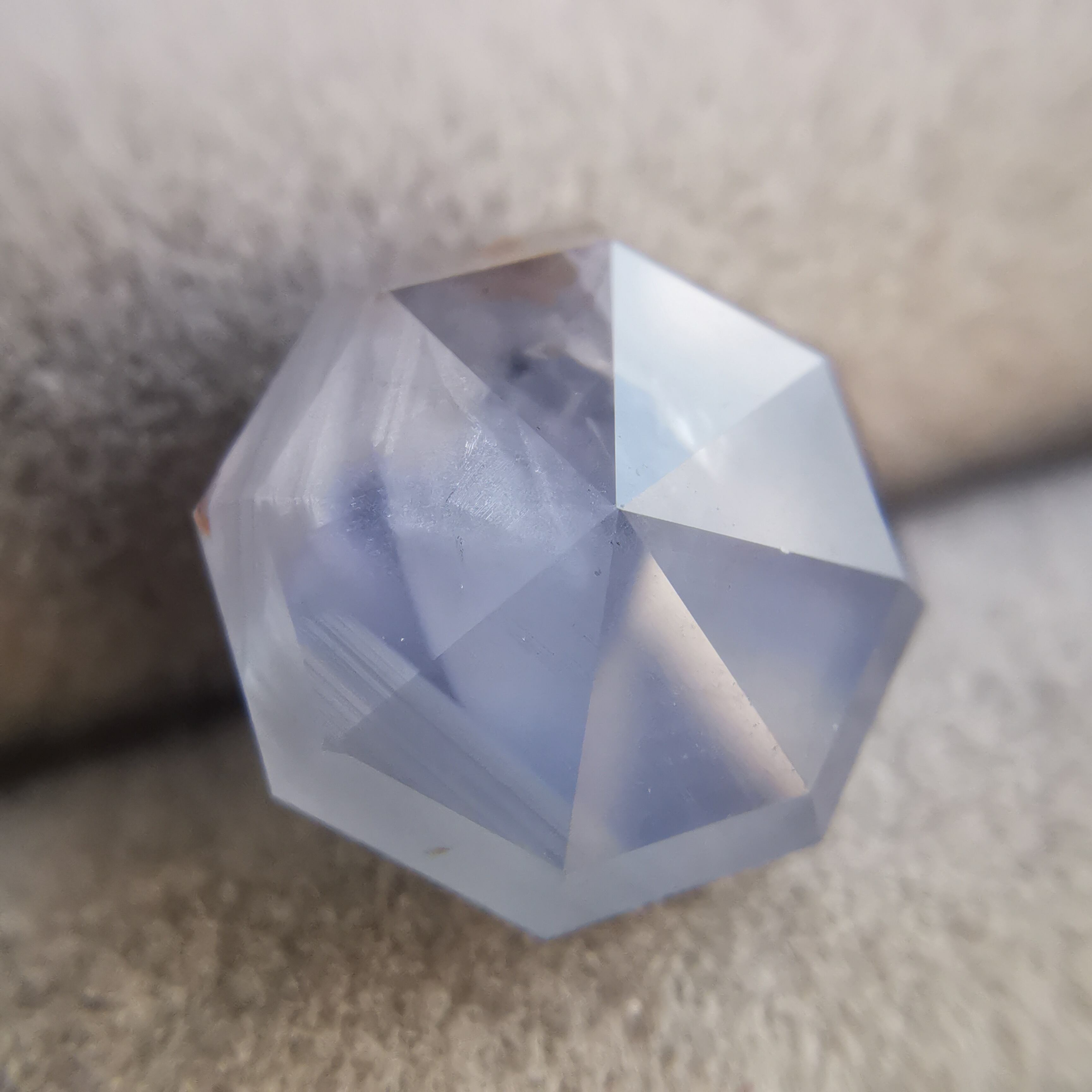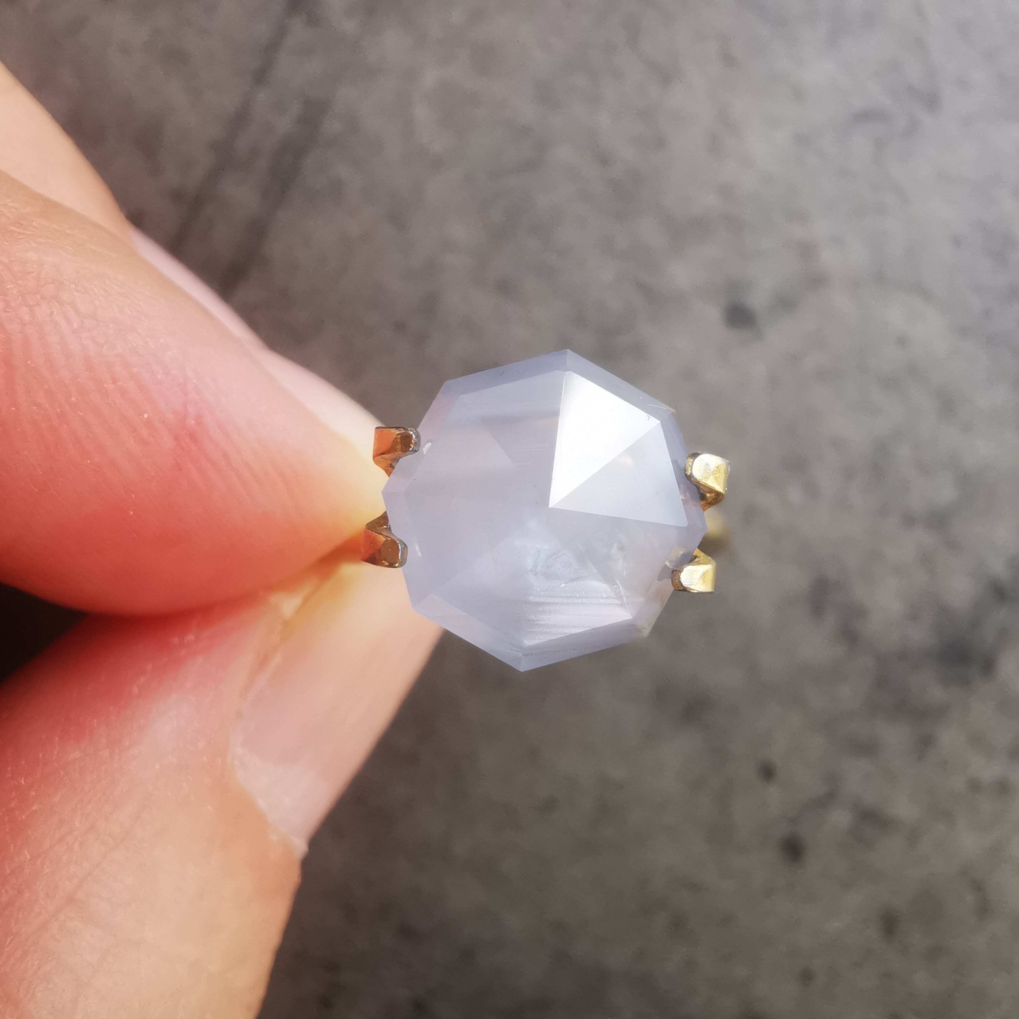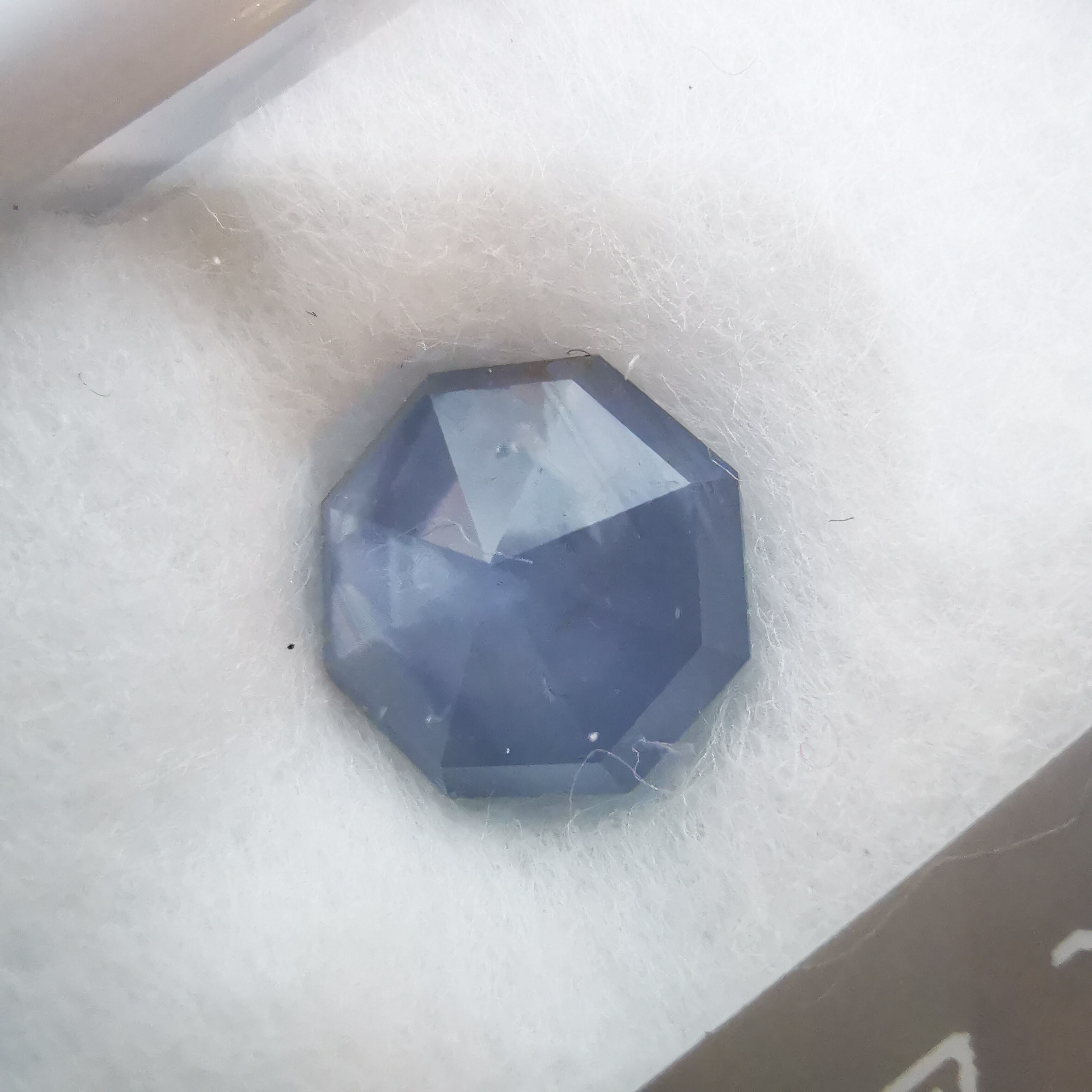 とても大粒のスターサファイアをカスタムリカット、8個の三角形が集まったオクタゴンとなりました。