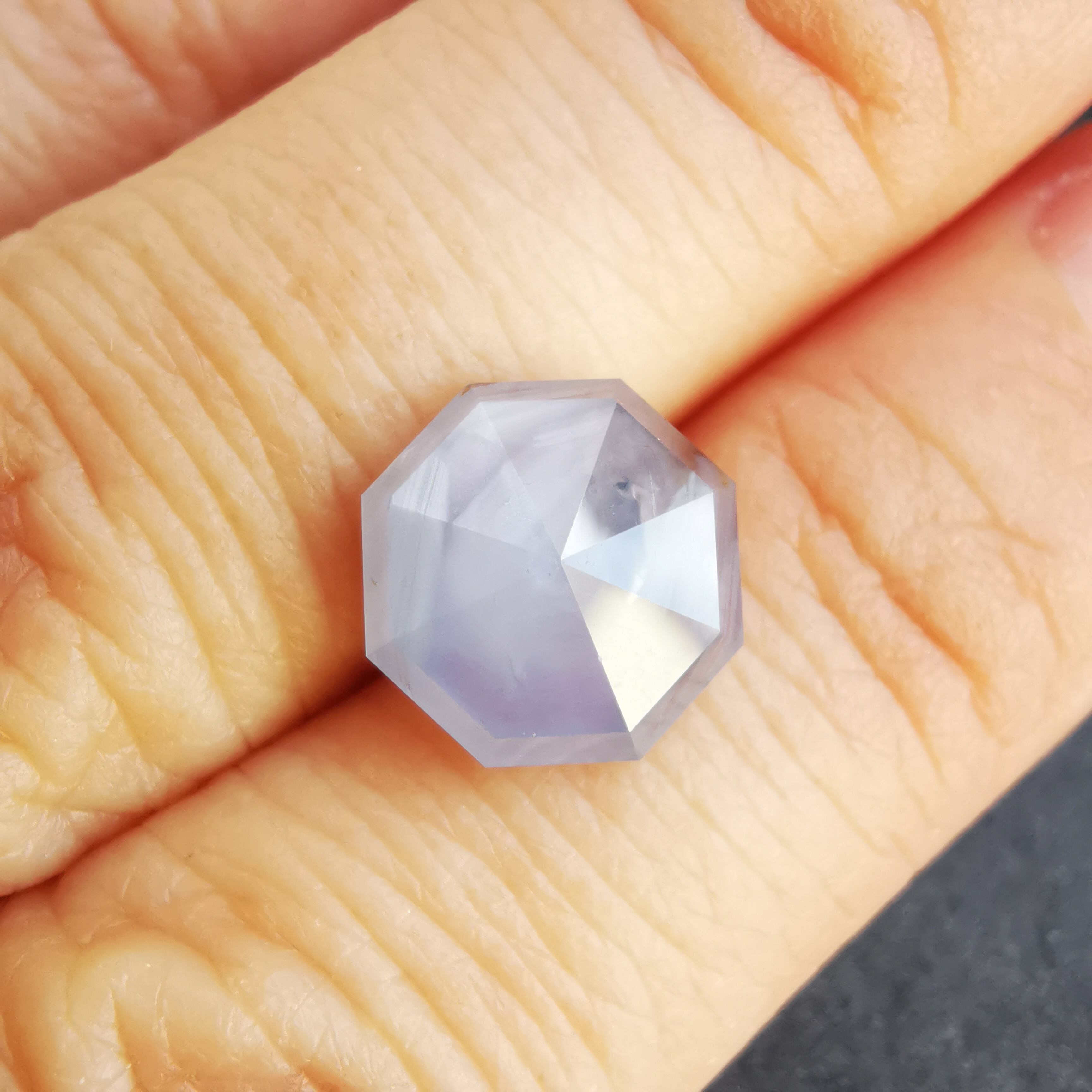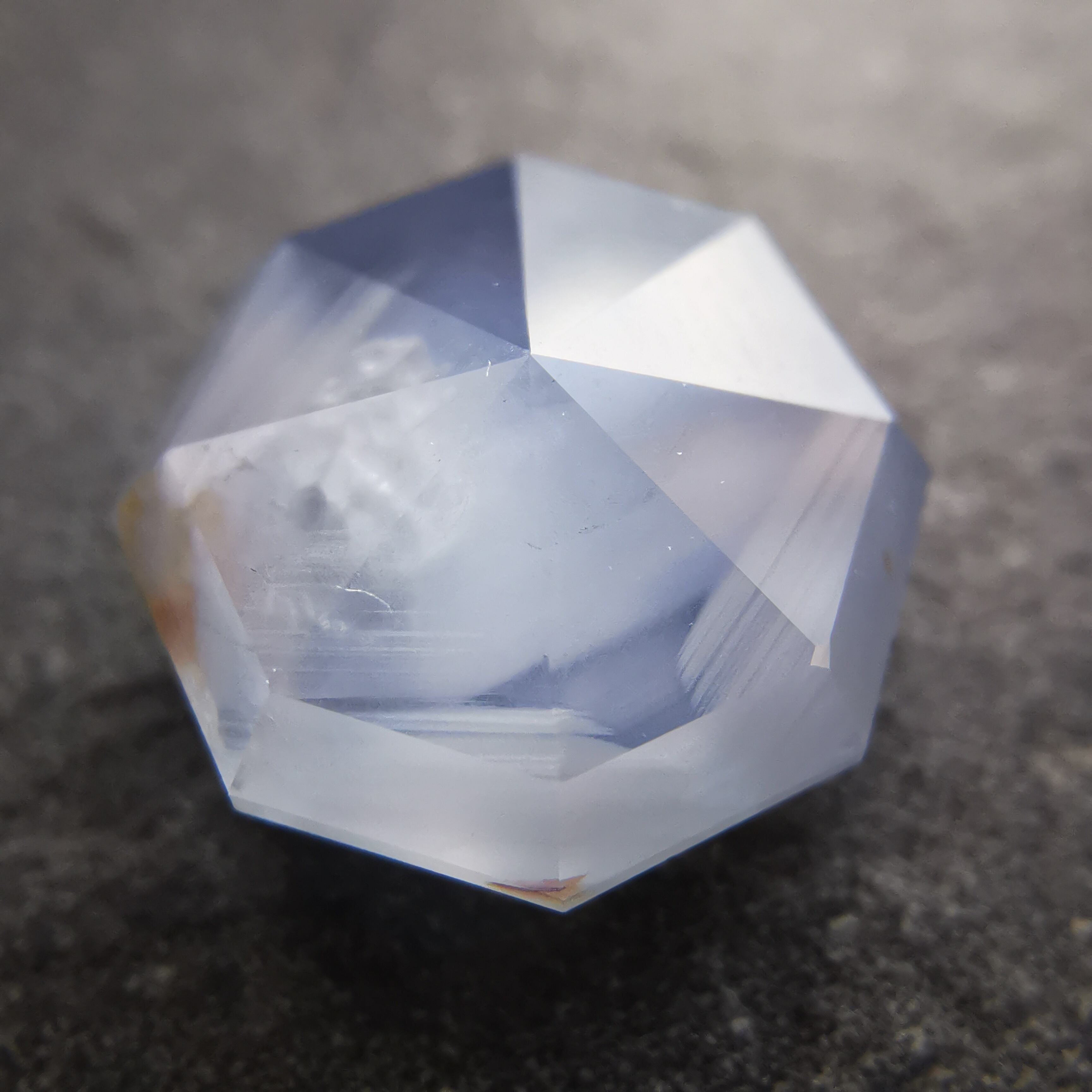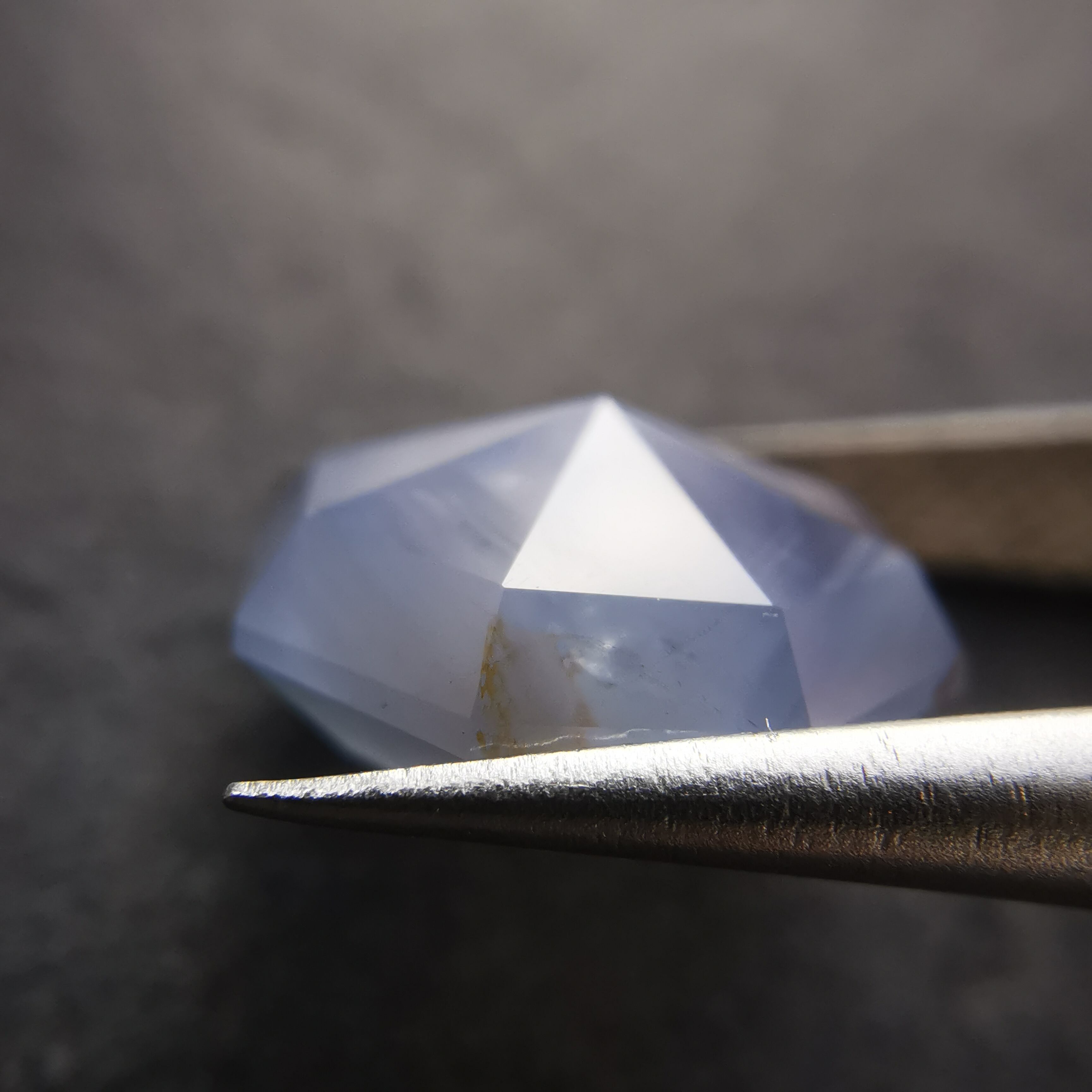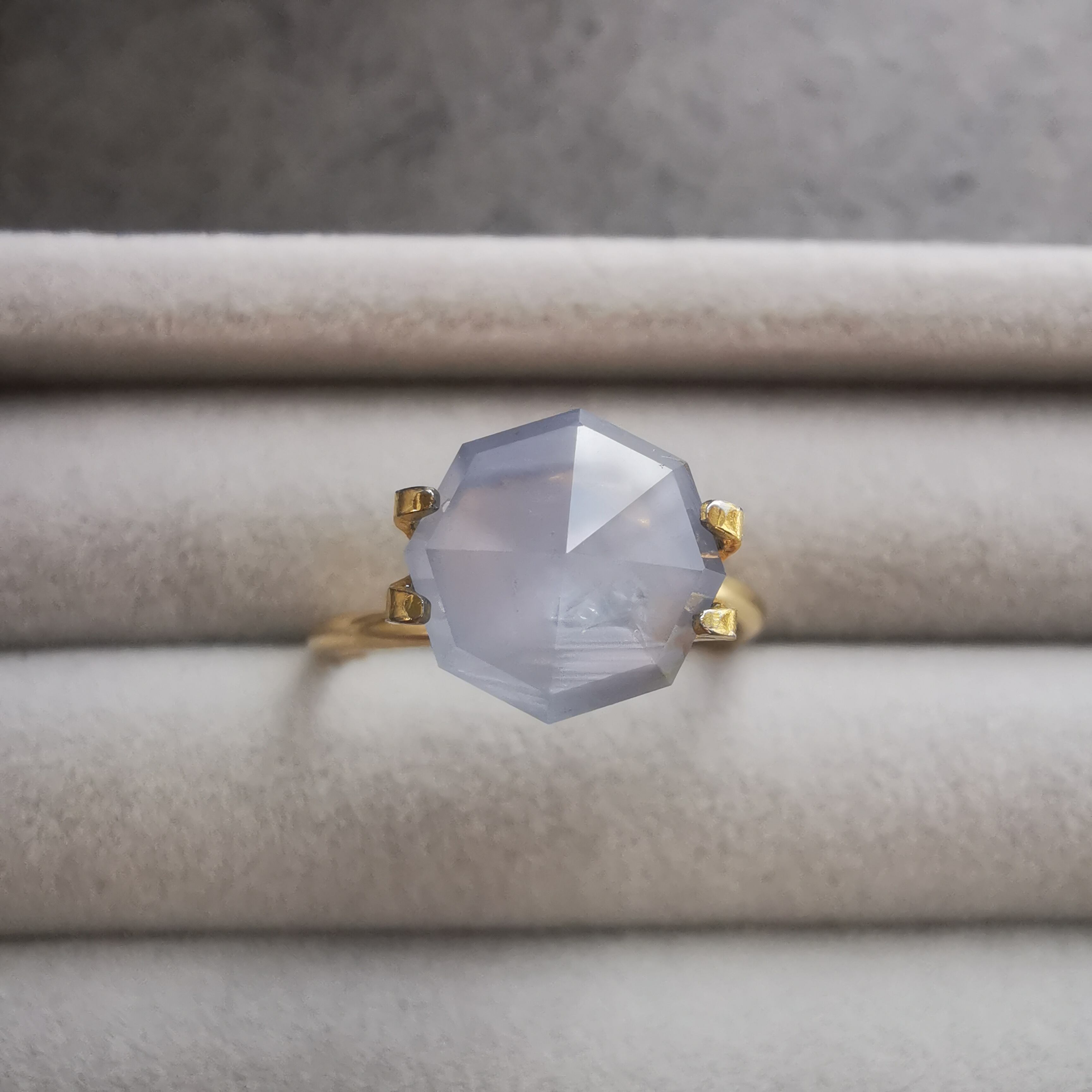 とても大粒のスターサファイアをカスタムリカット、8個の三角形が集まったオクタゴンとなりました。