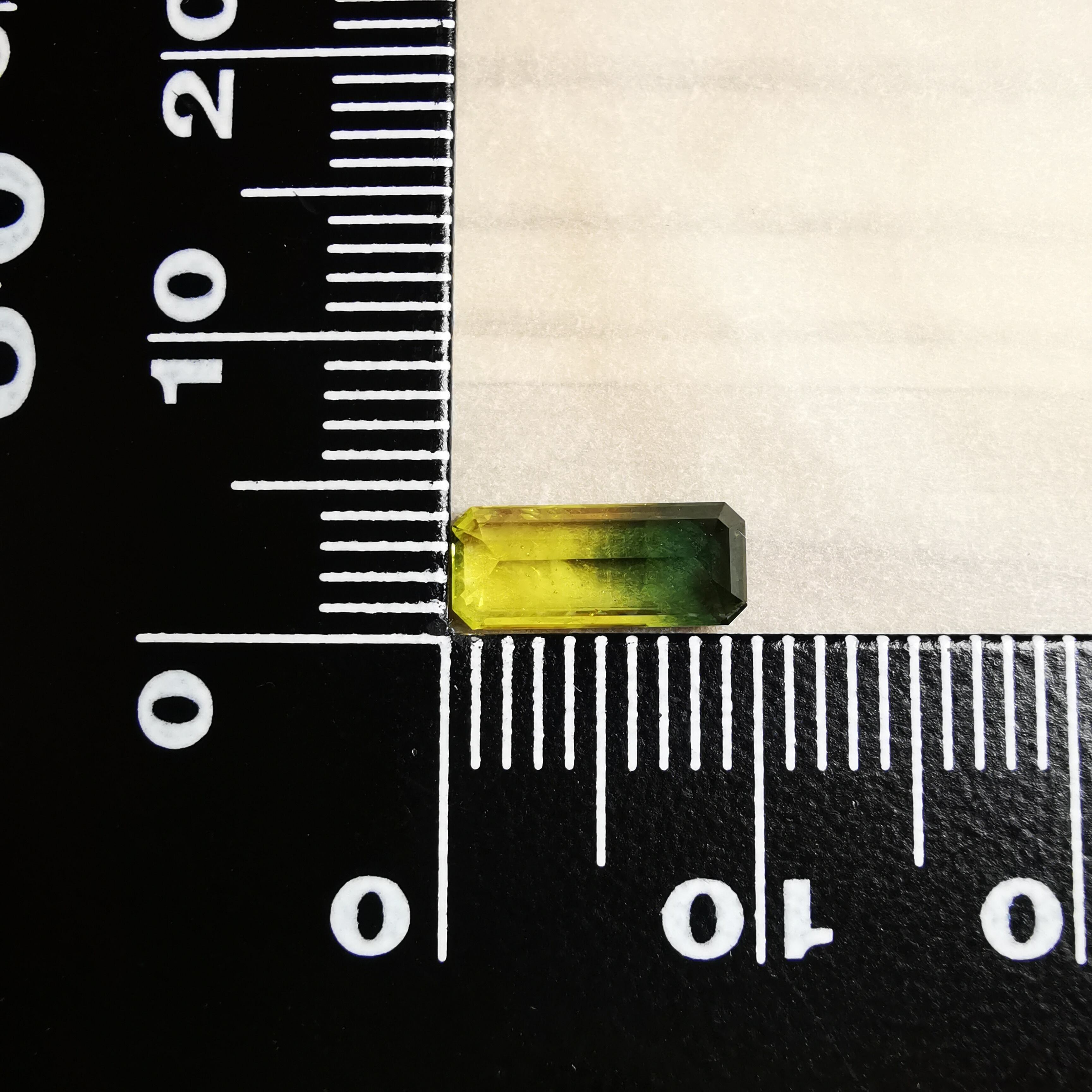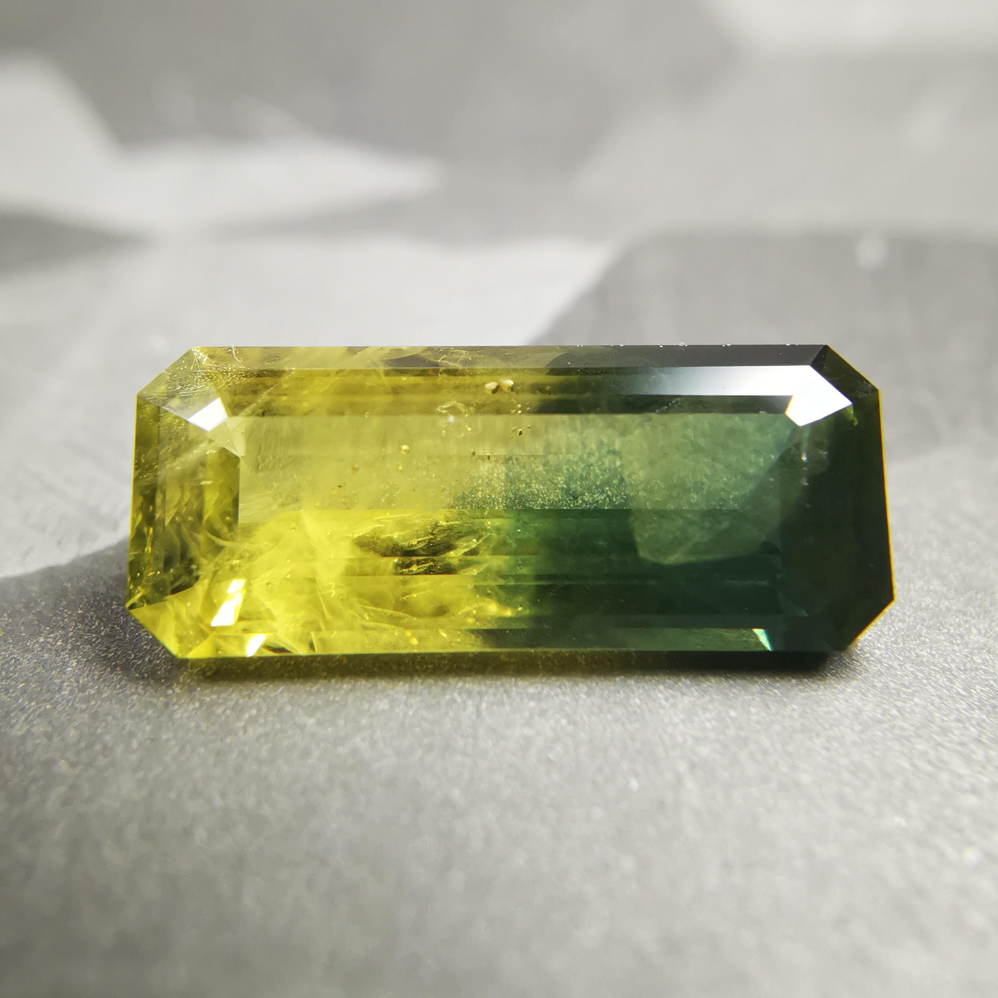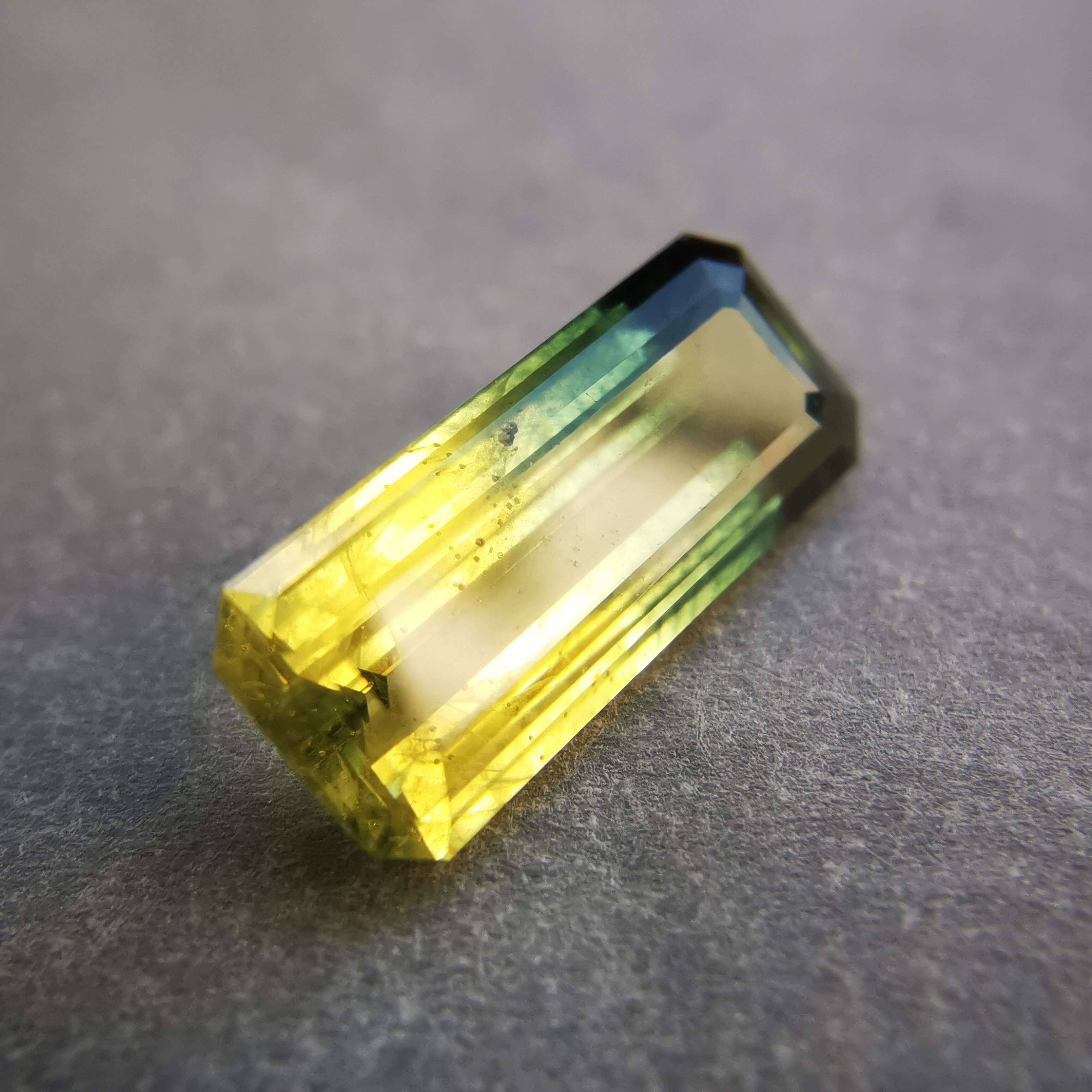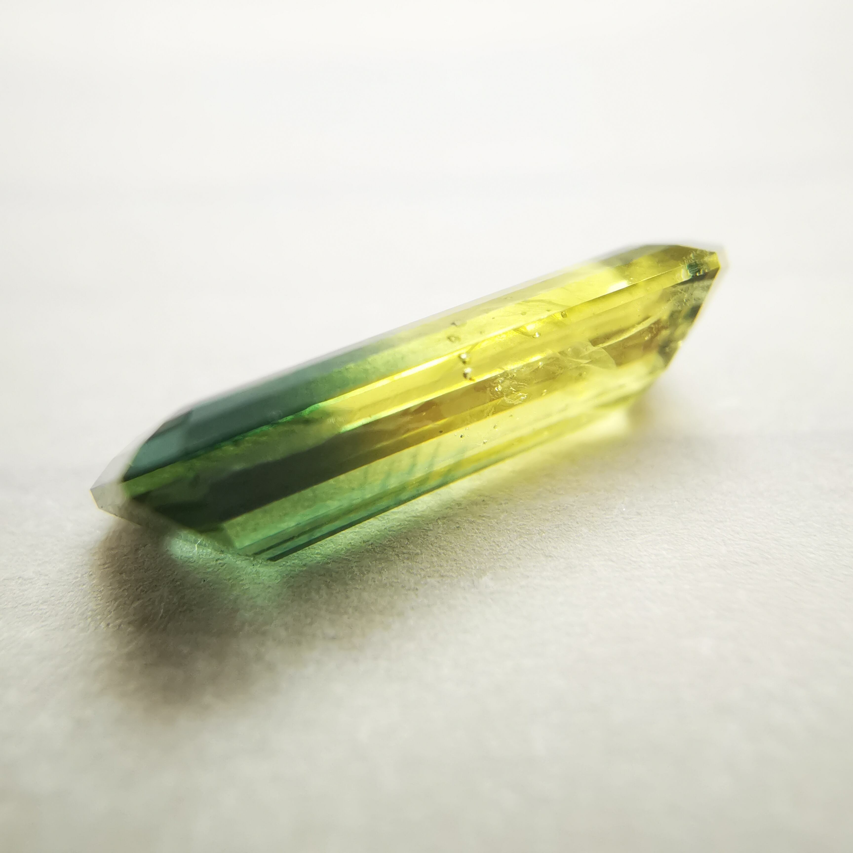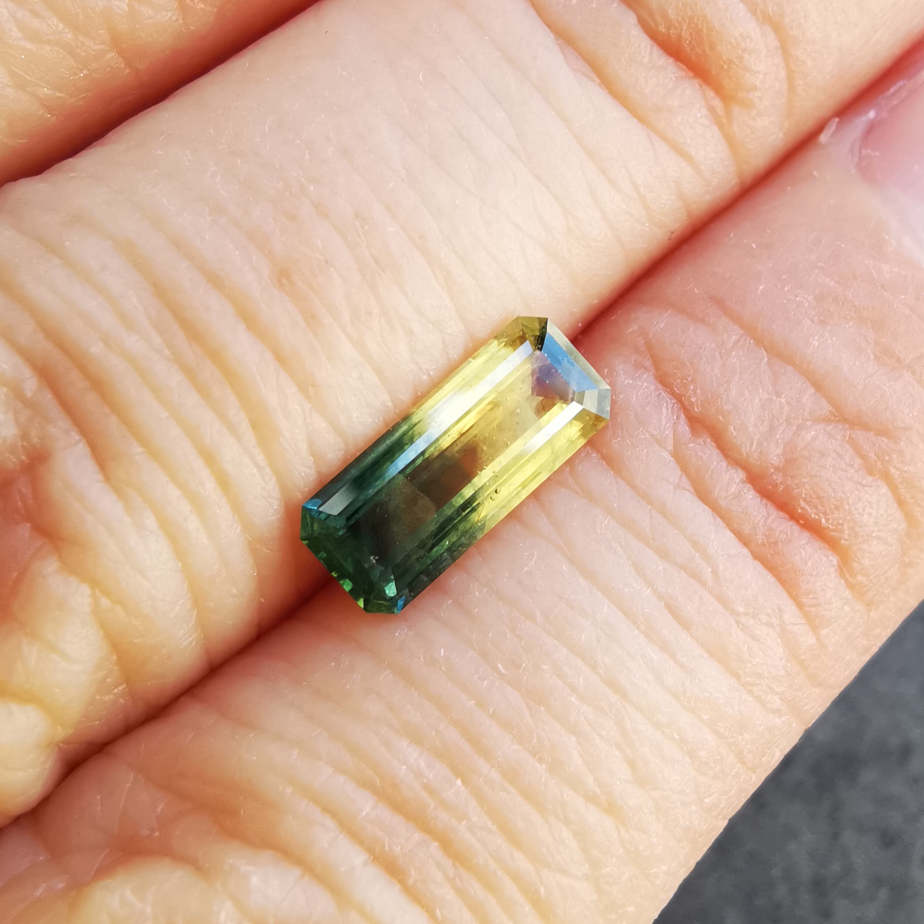 わずかに緑みの鮮やかな黄色/黄蘗色と、深い緑色/萌葱色のバイカラーサファイアです。