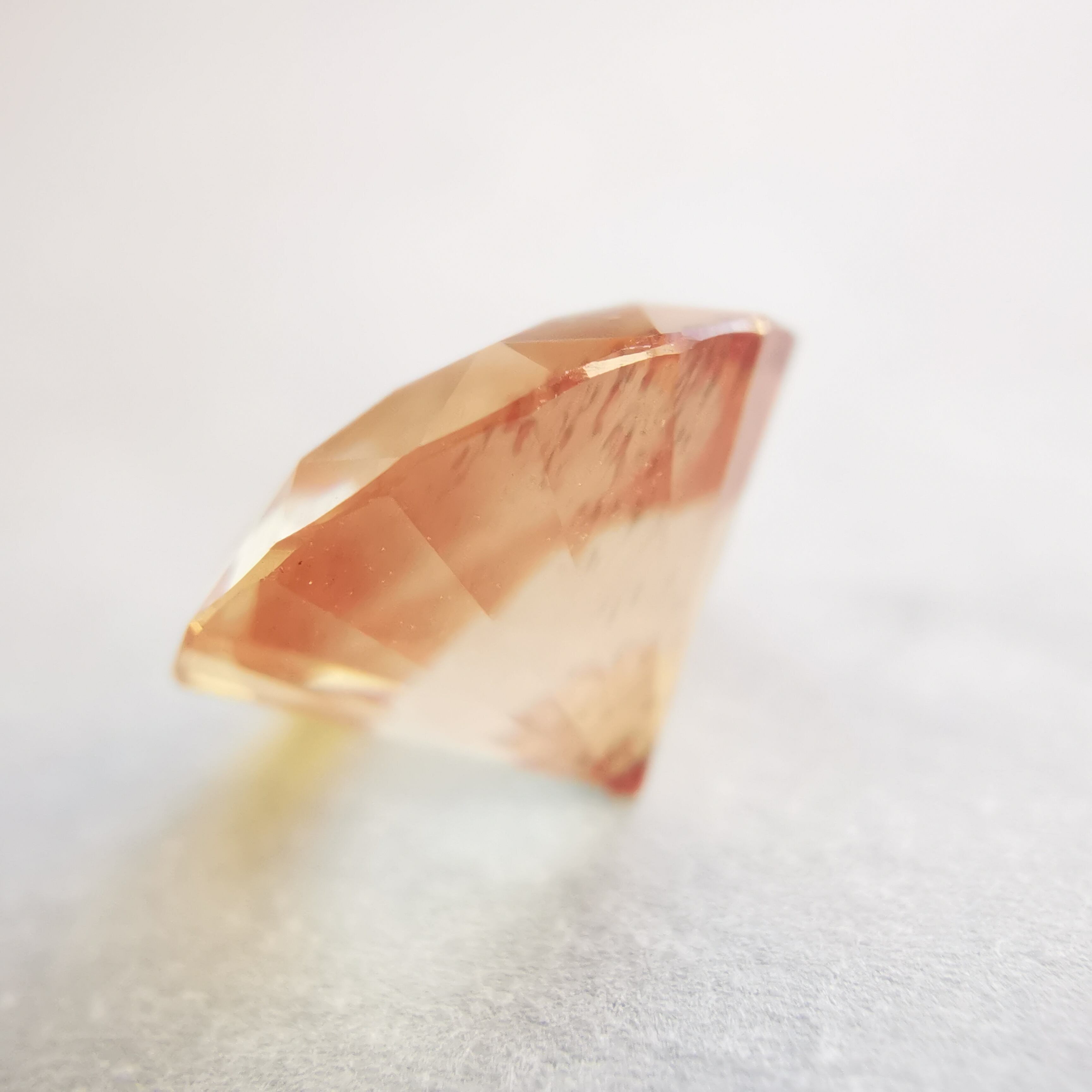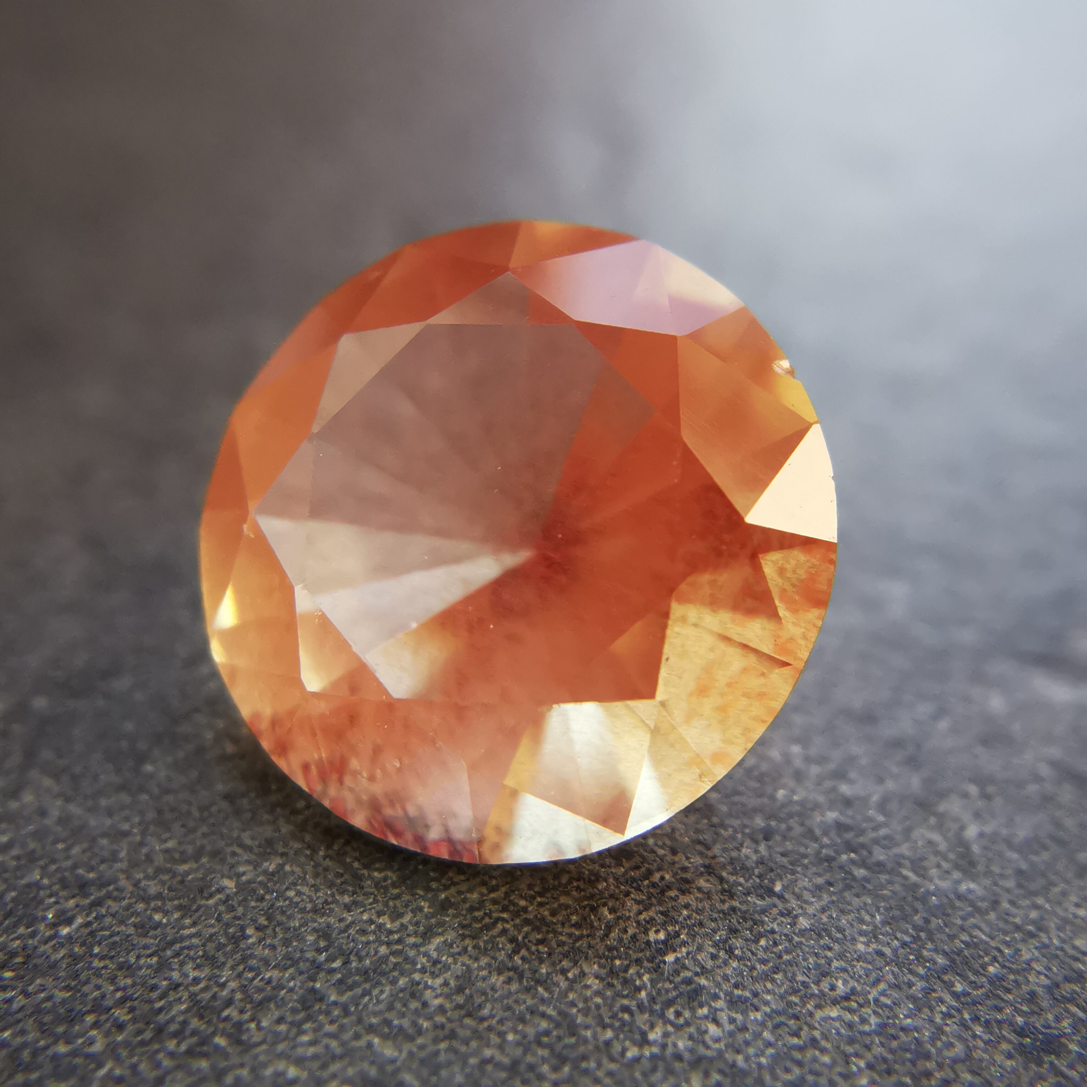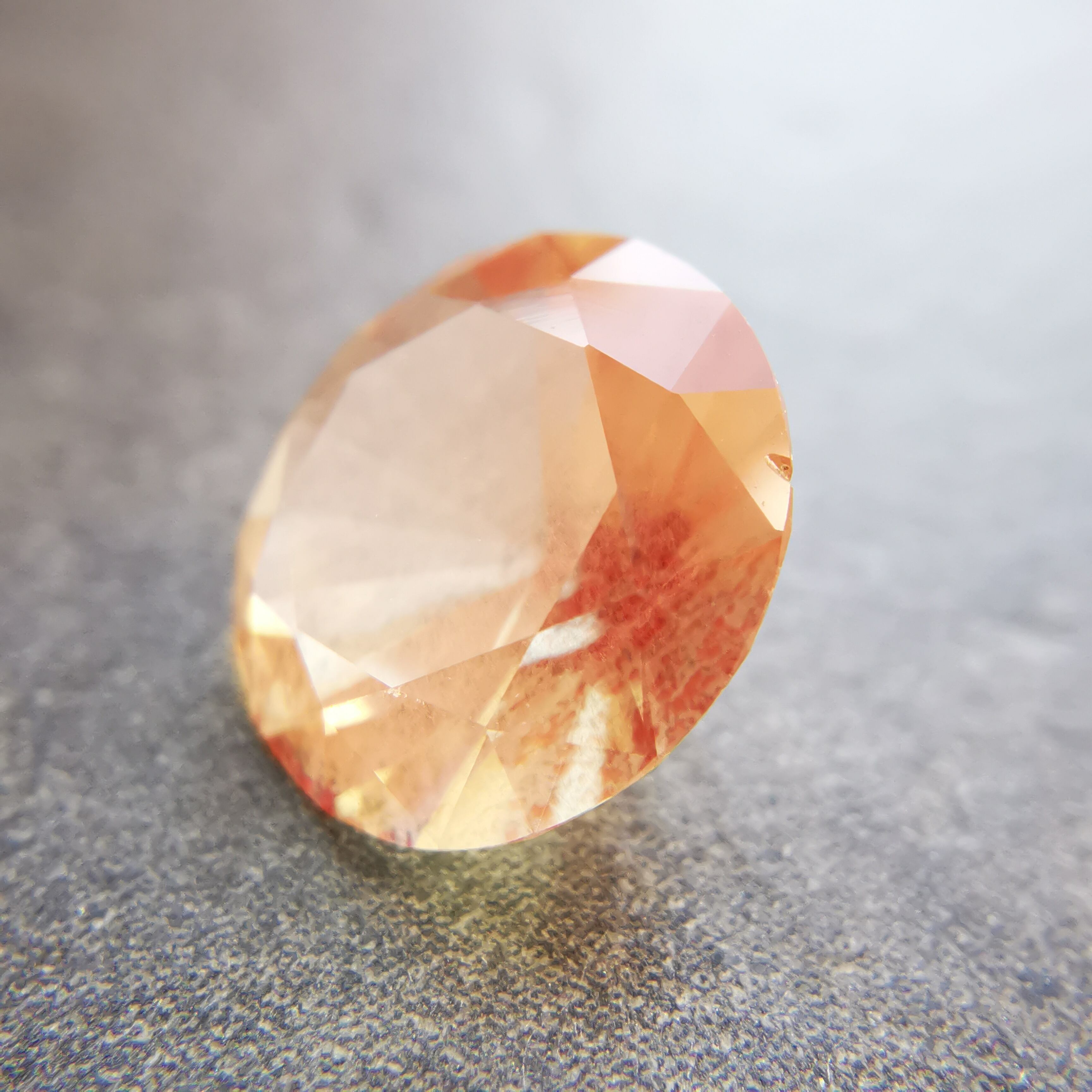 アンデシンらしく、光を含んでほわっと光るところに、赤と緑がわずかに入ります。