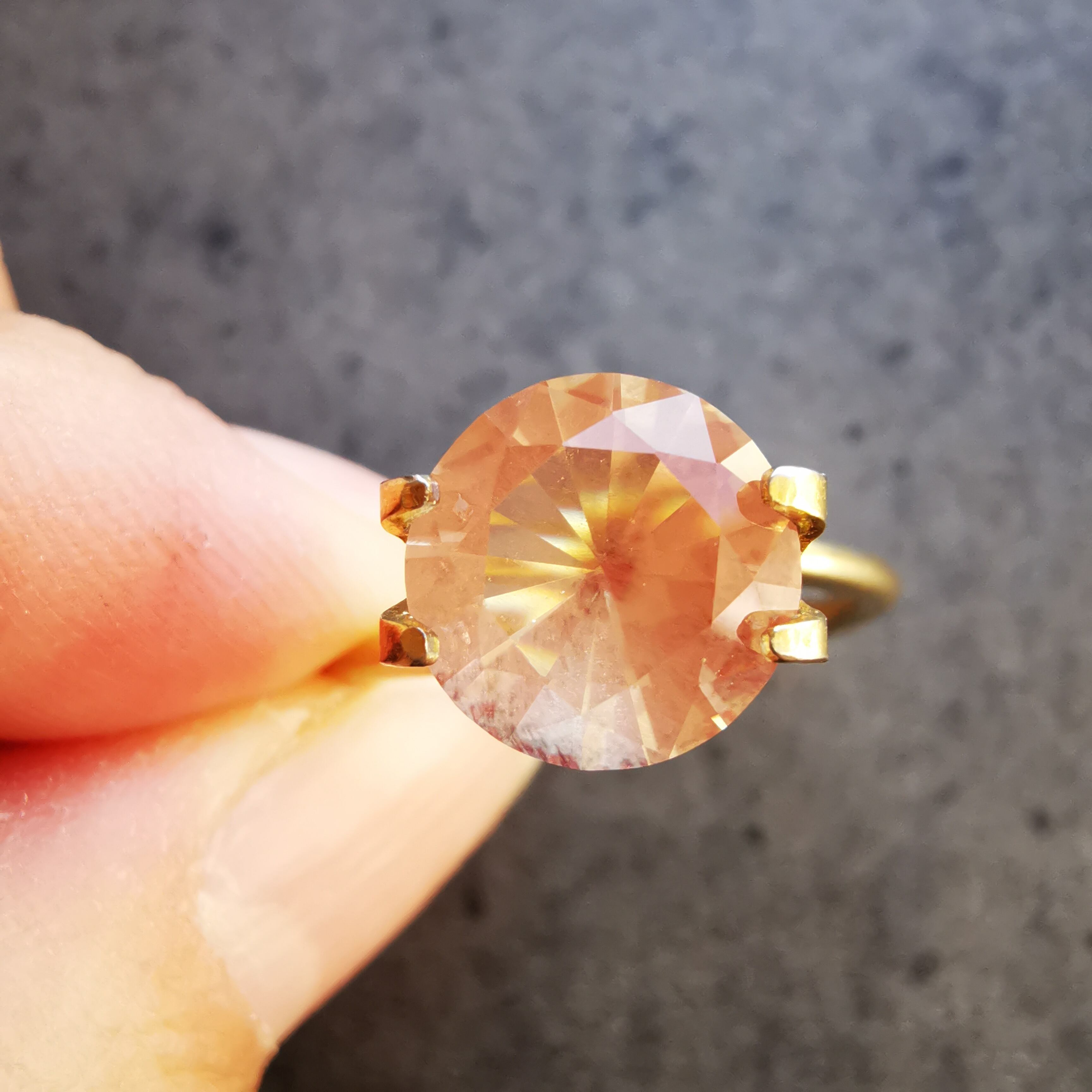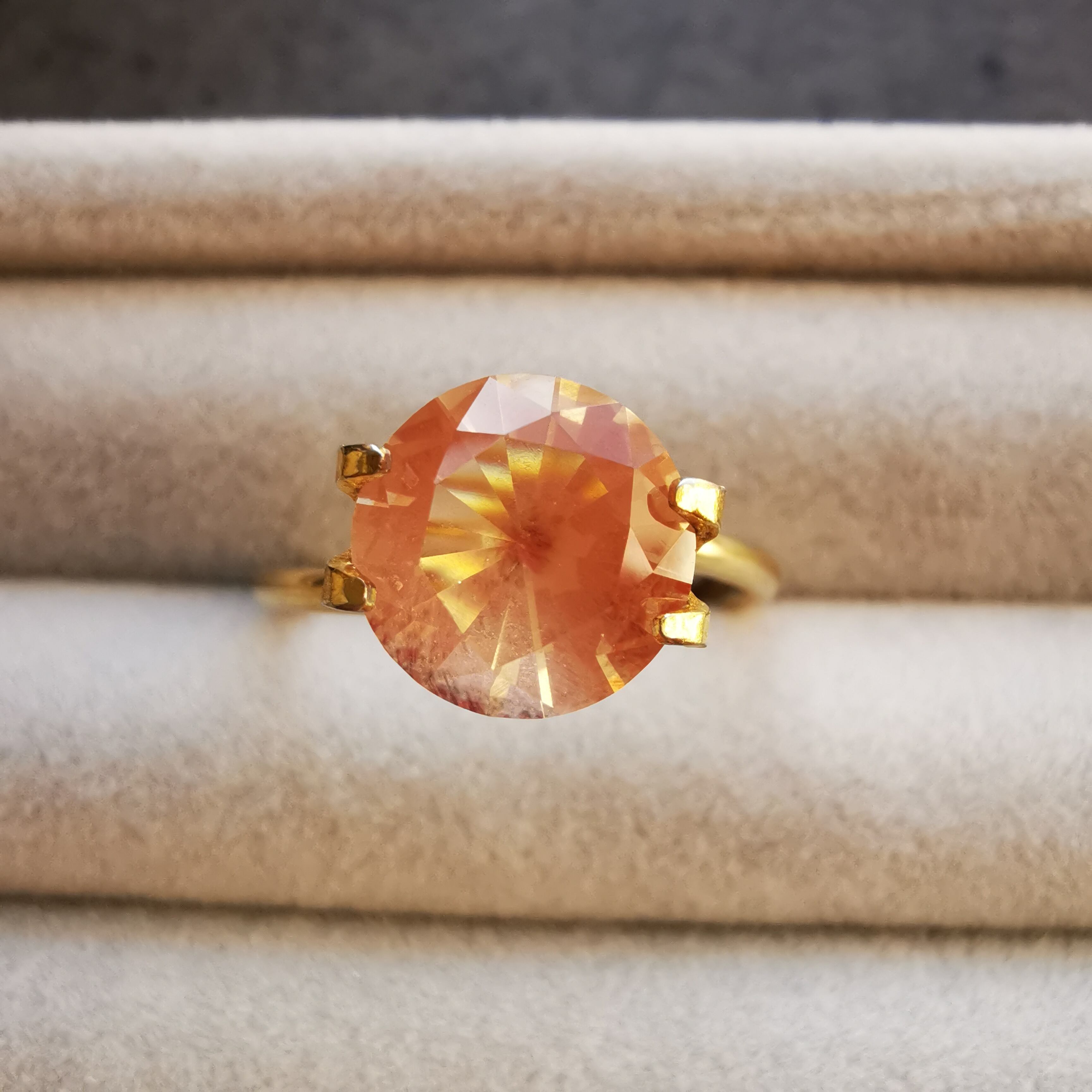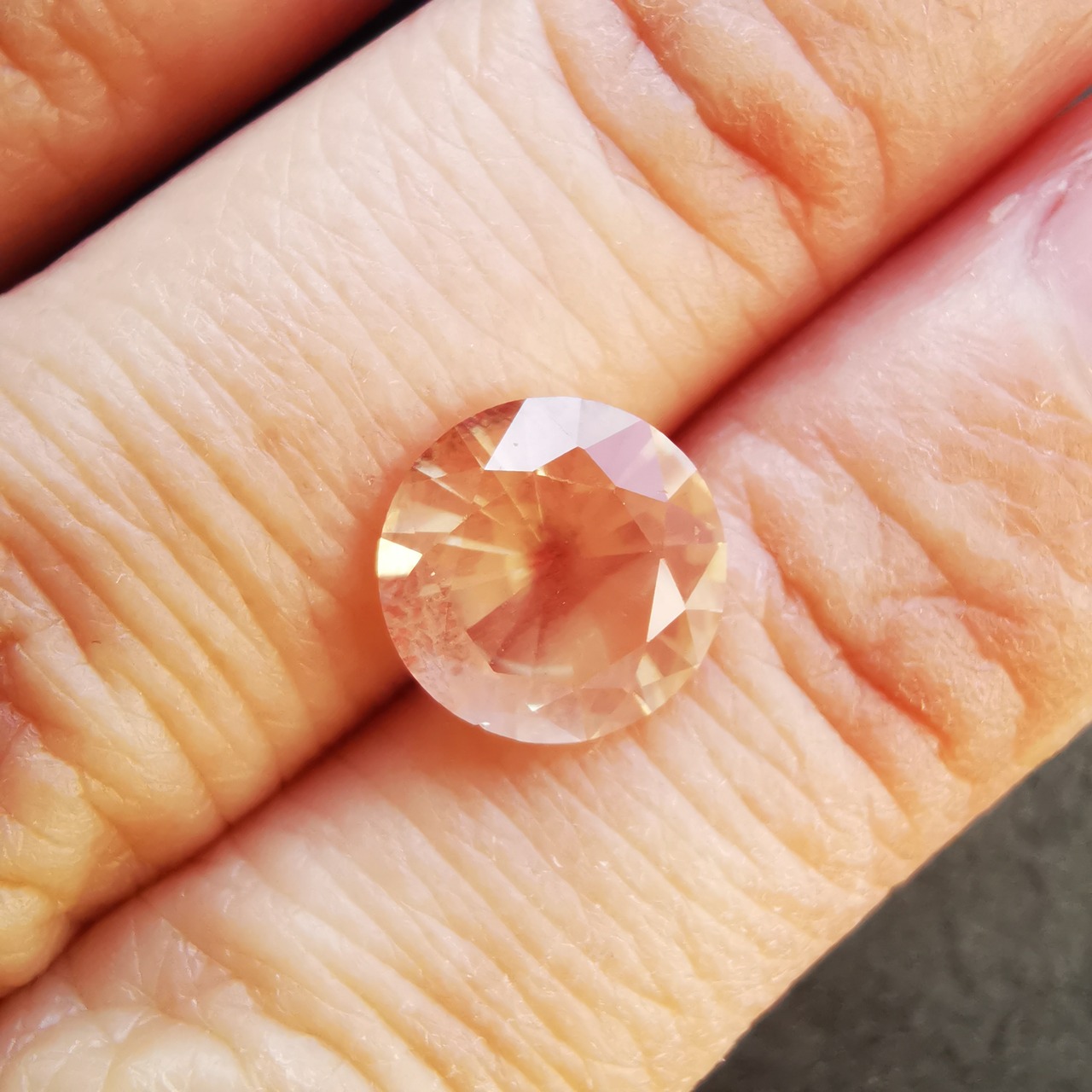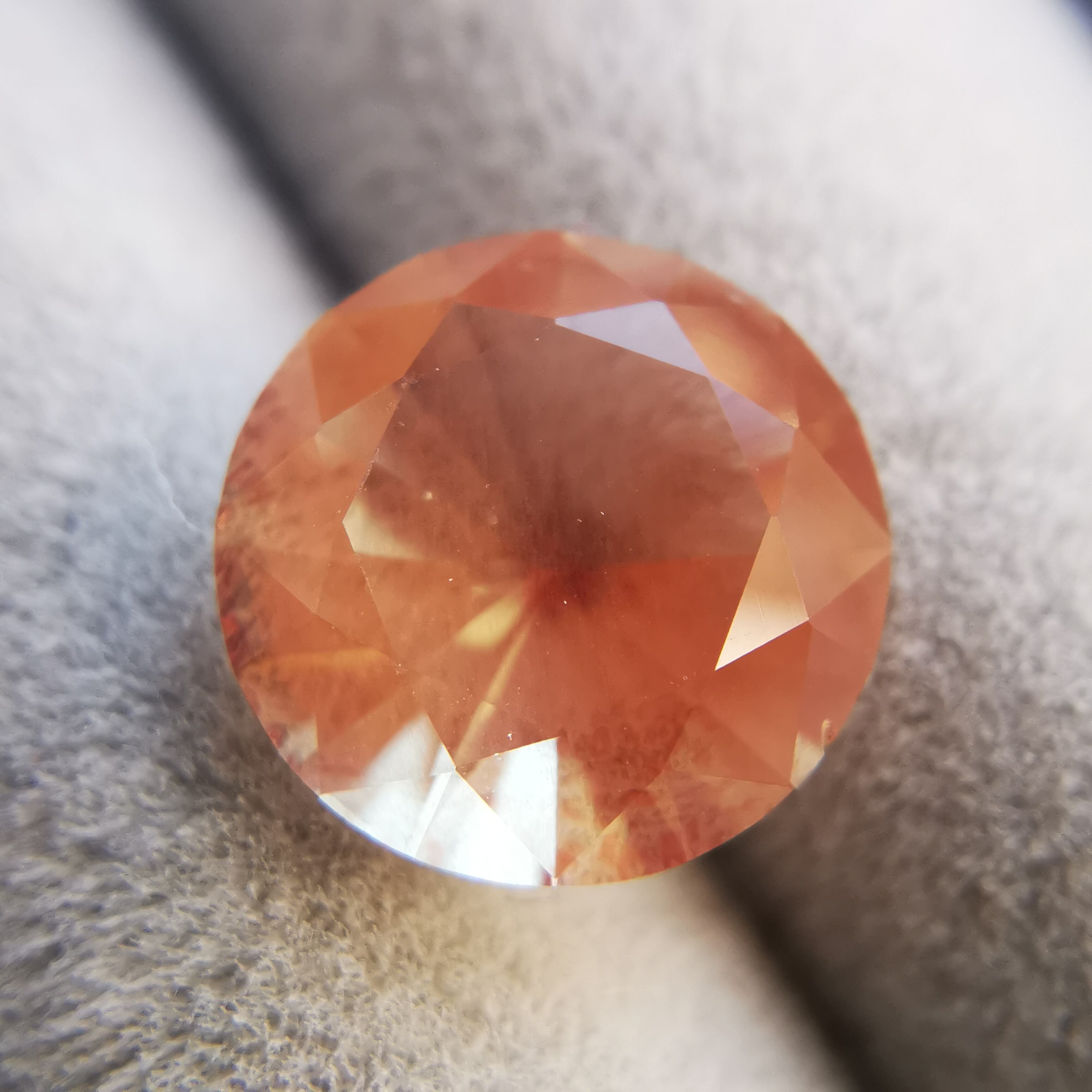 アンデシンらしく、光を含んでほわっと光るところに、赤と緑がわずかに入ります。