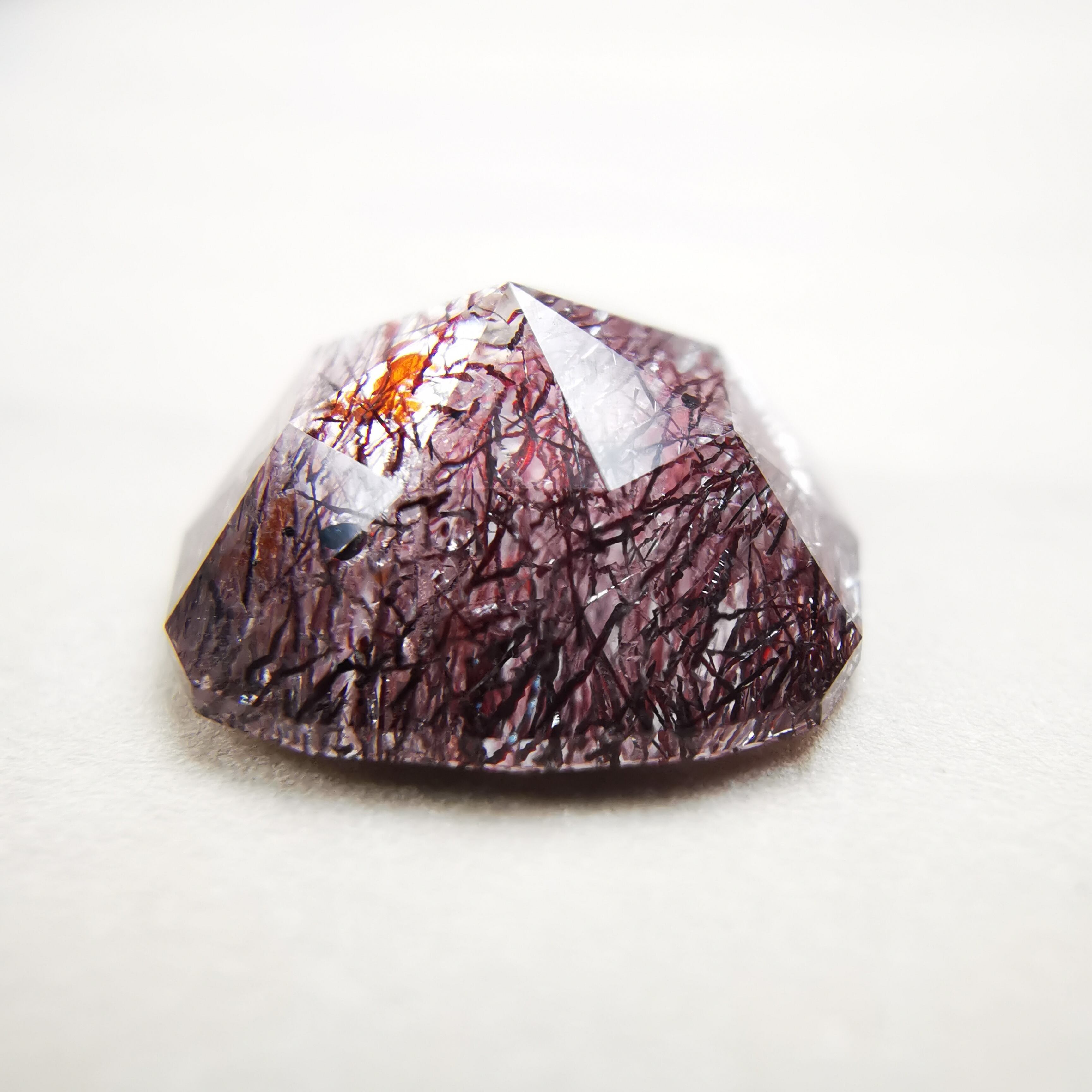 七つの鉱物を意味するスーパーセブンと言う名称ですが、実際には7つそろうことは非常に稀なことのようで、水晶の中にレピドクロサイトやゲーサイトが内包され、それらが煌めくものを総称してスーパーセブンと呼びます。