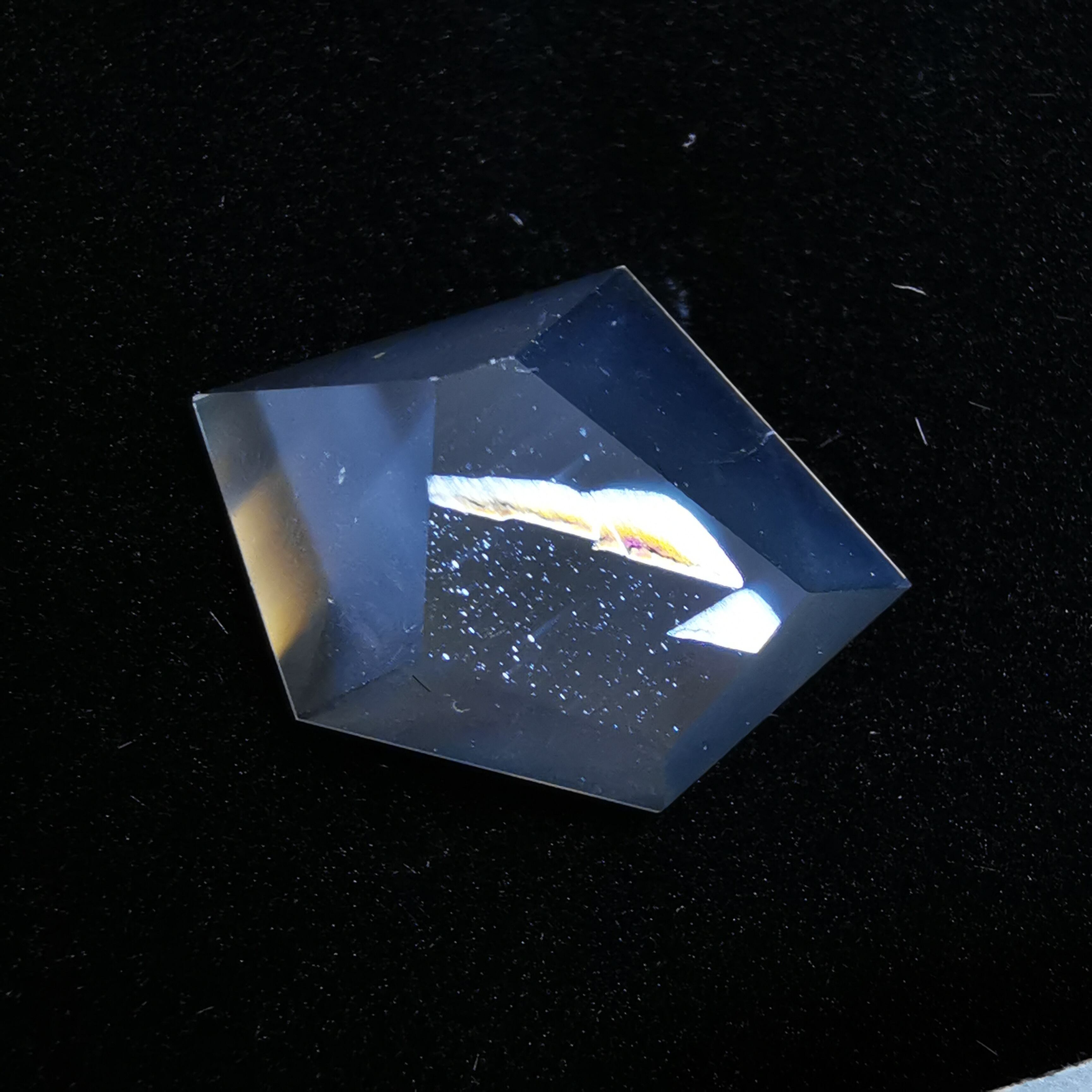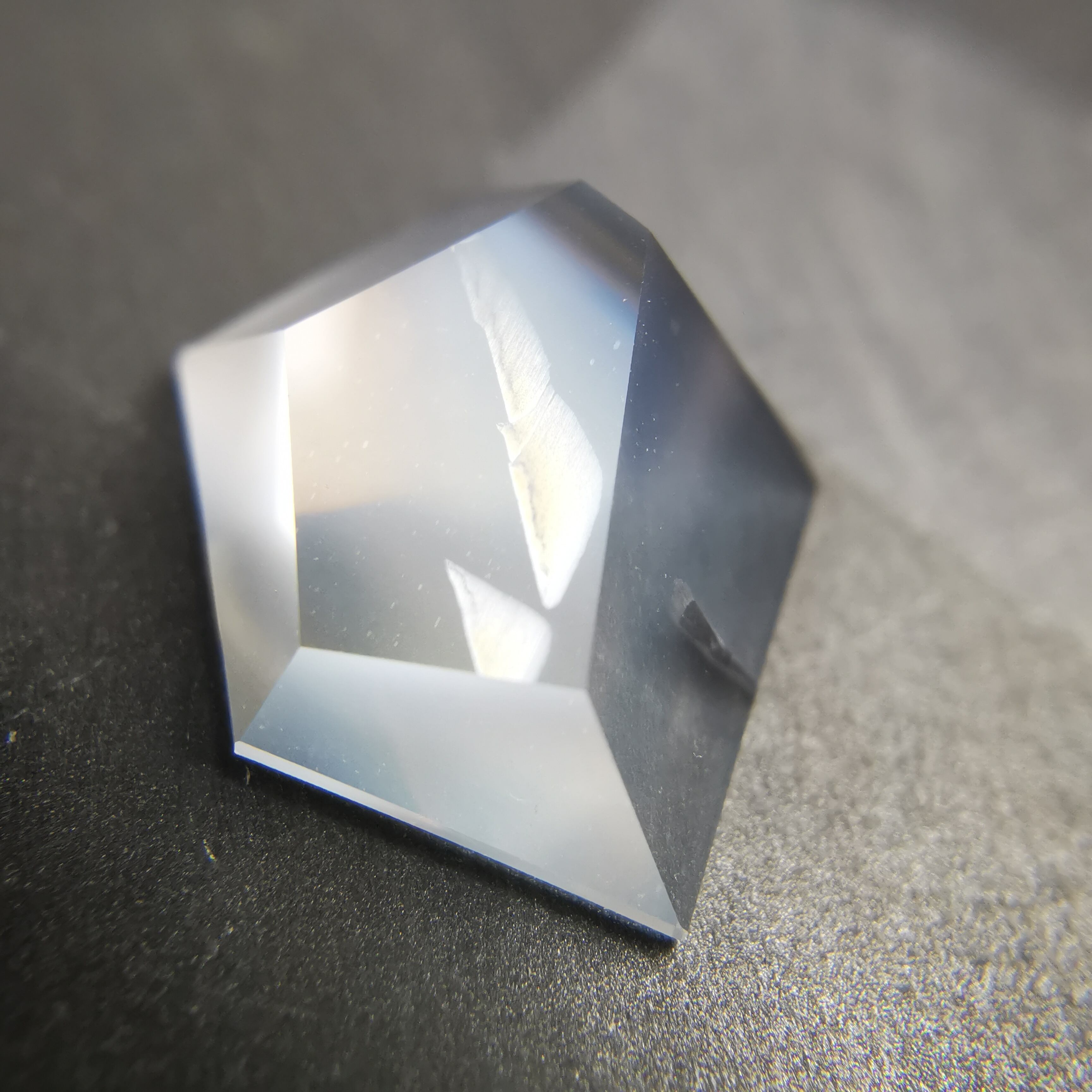 光に当ててゆっくりと動かすと、わずかに青みのあるシラーが大きな面を覆うように光ります。