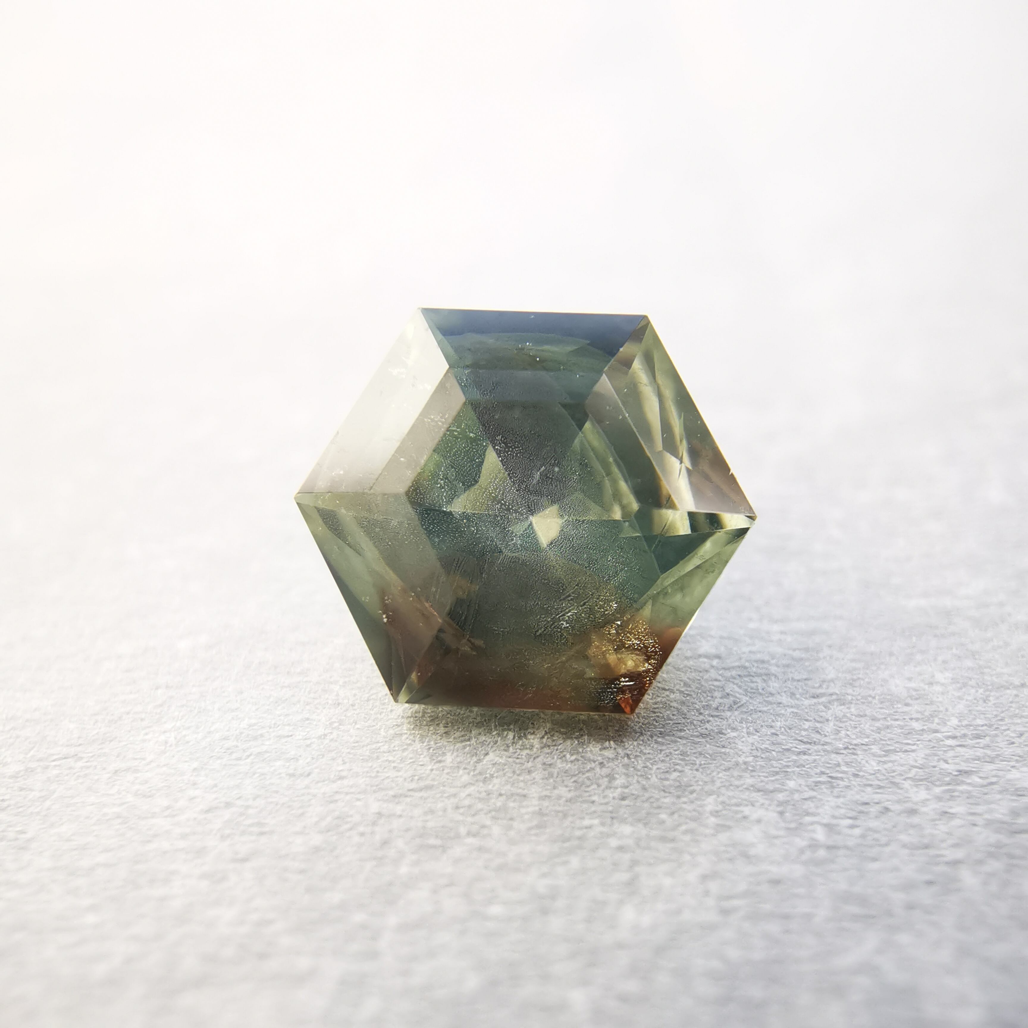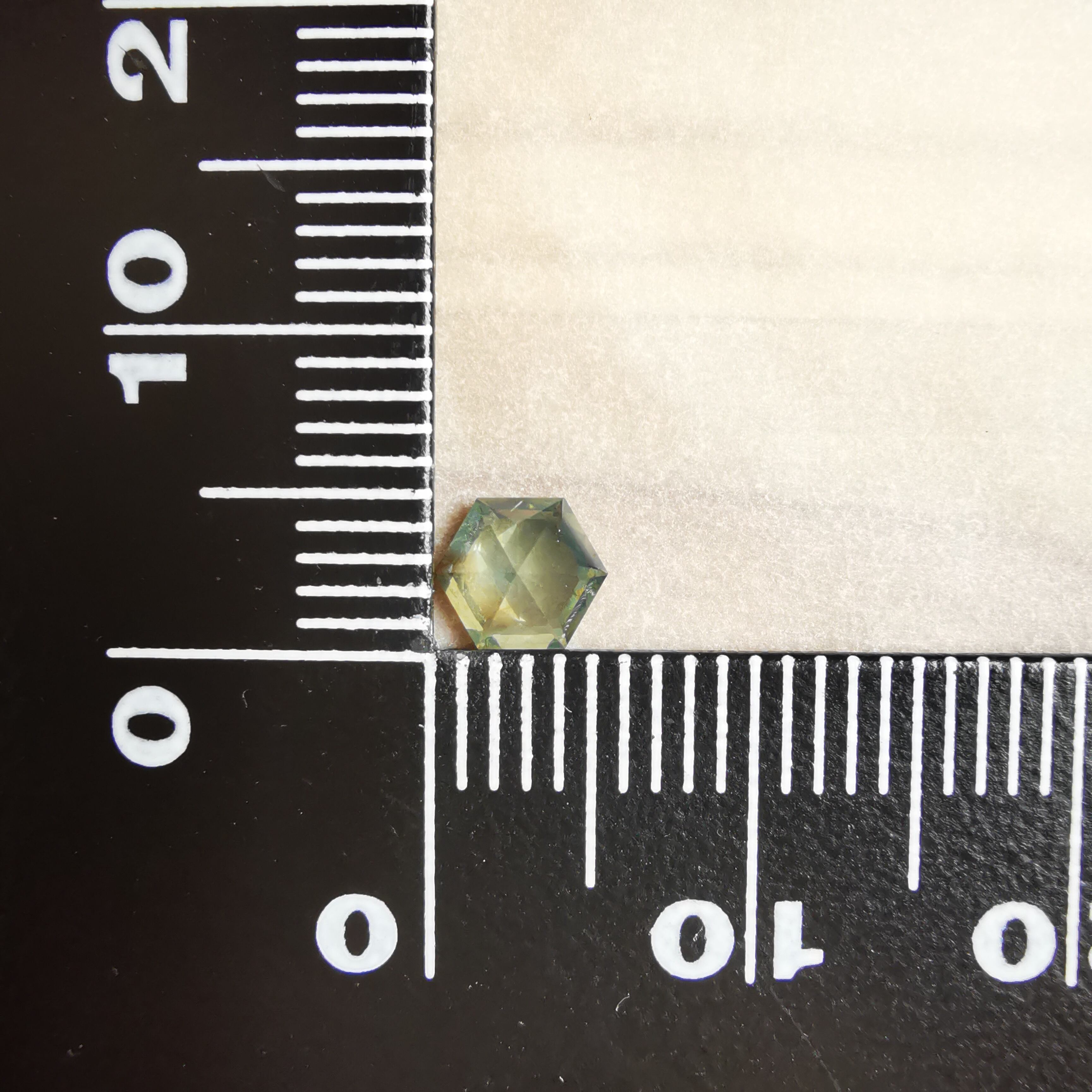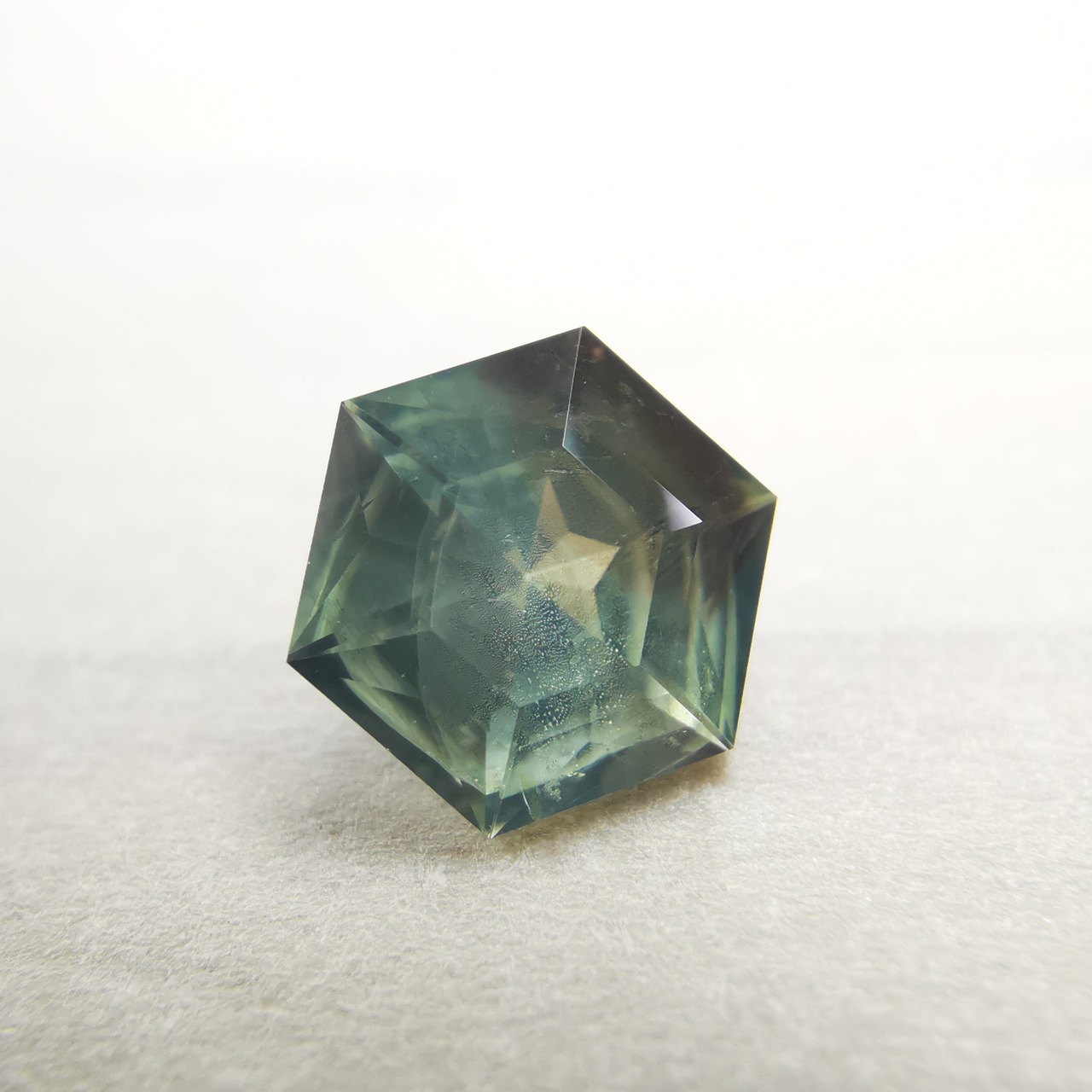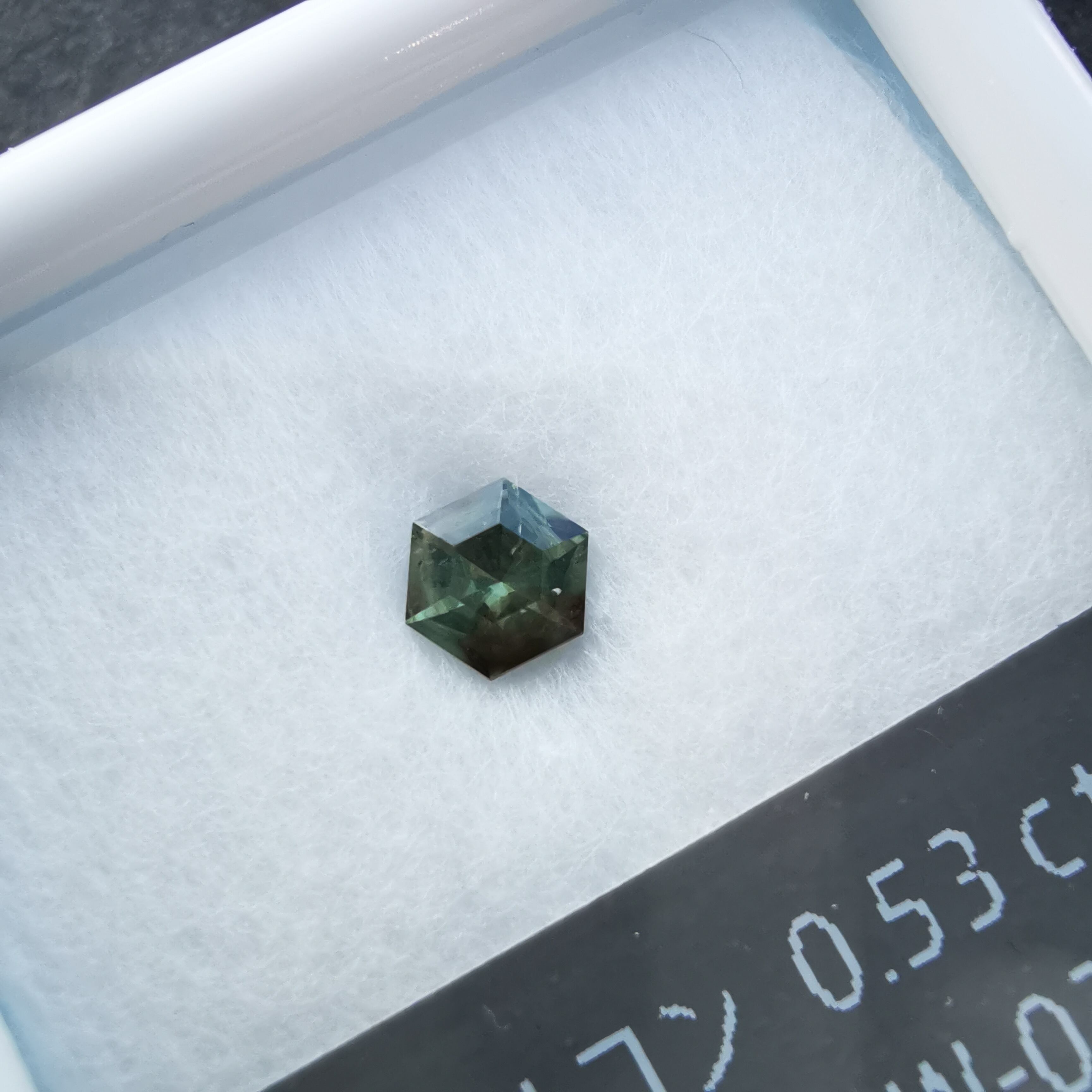 端正なヘキサゴンカットとの対比により、さらに魅力が増しています。