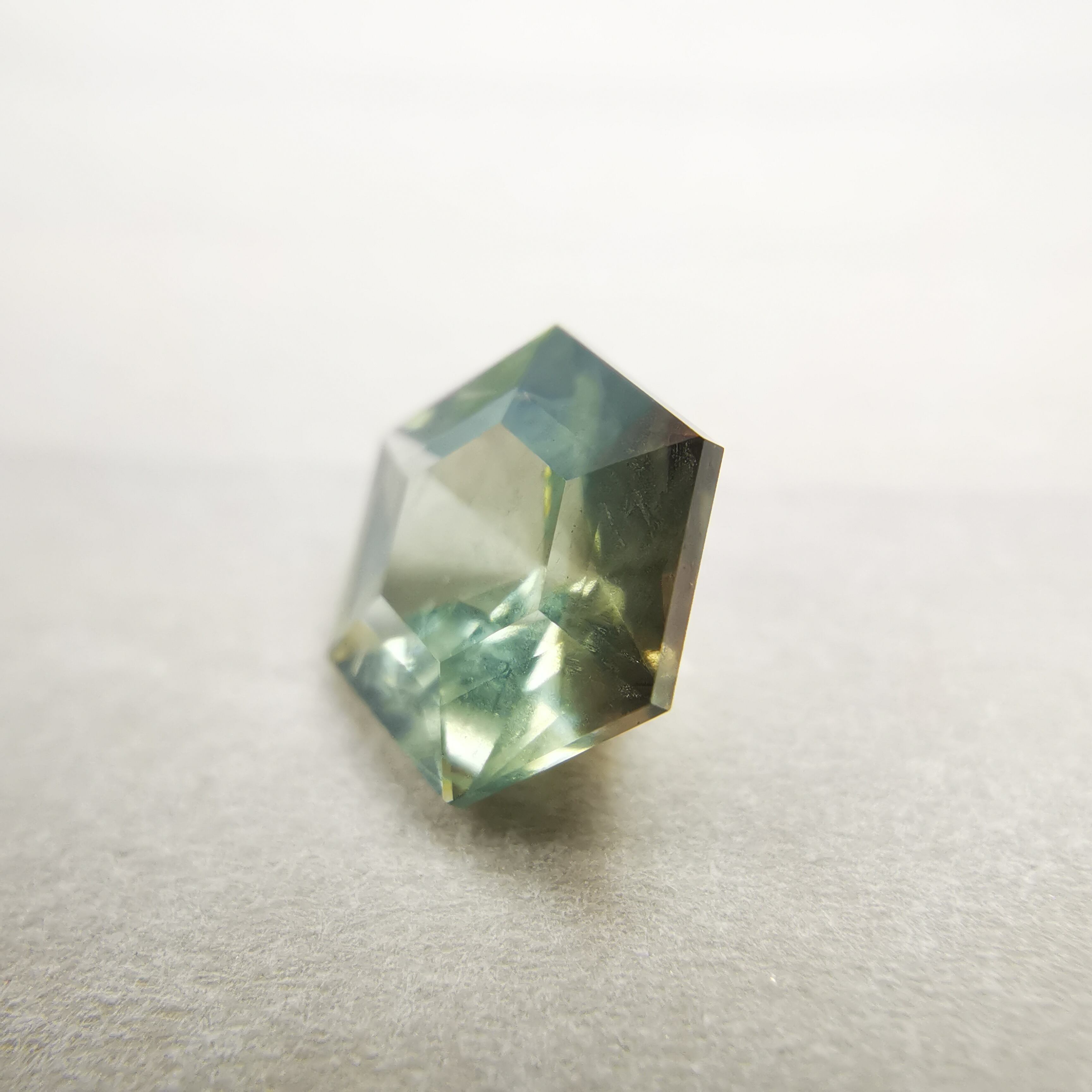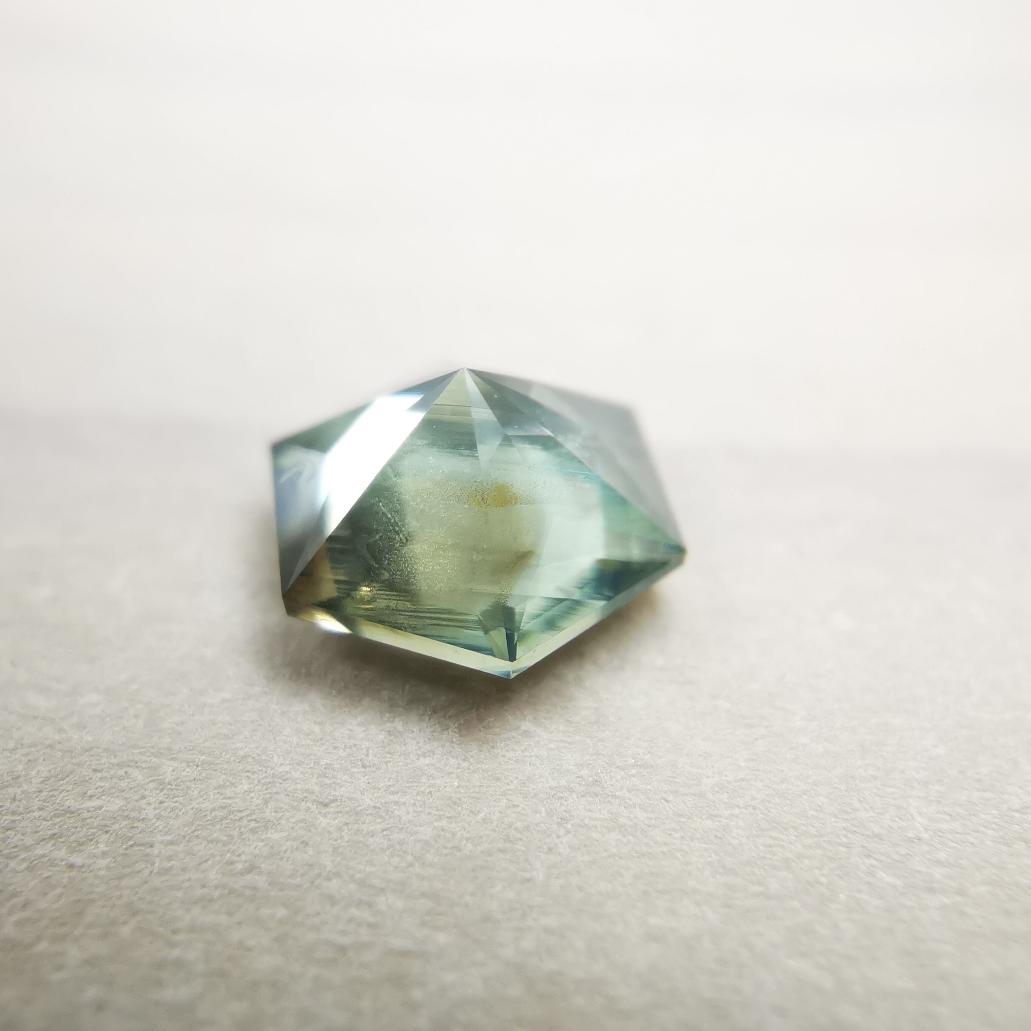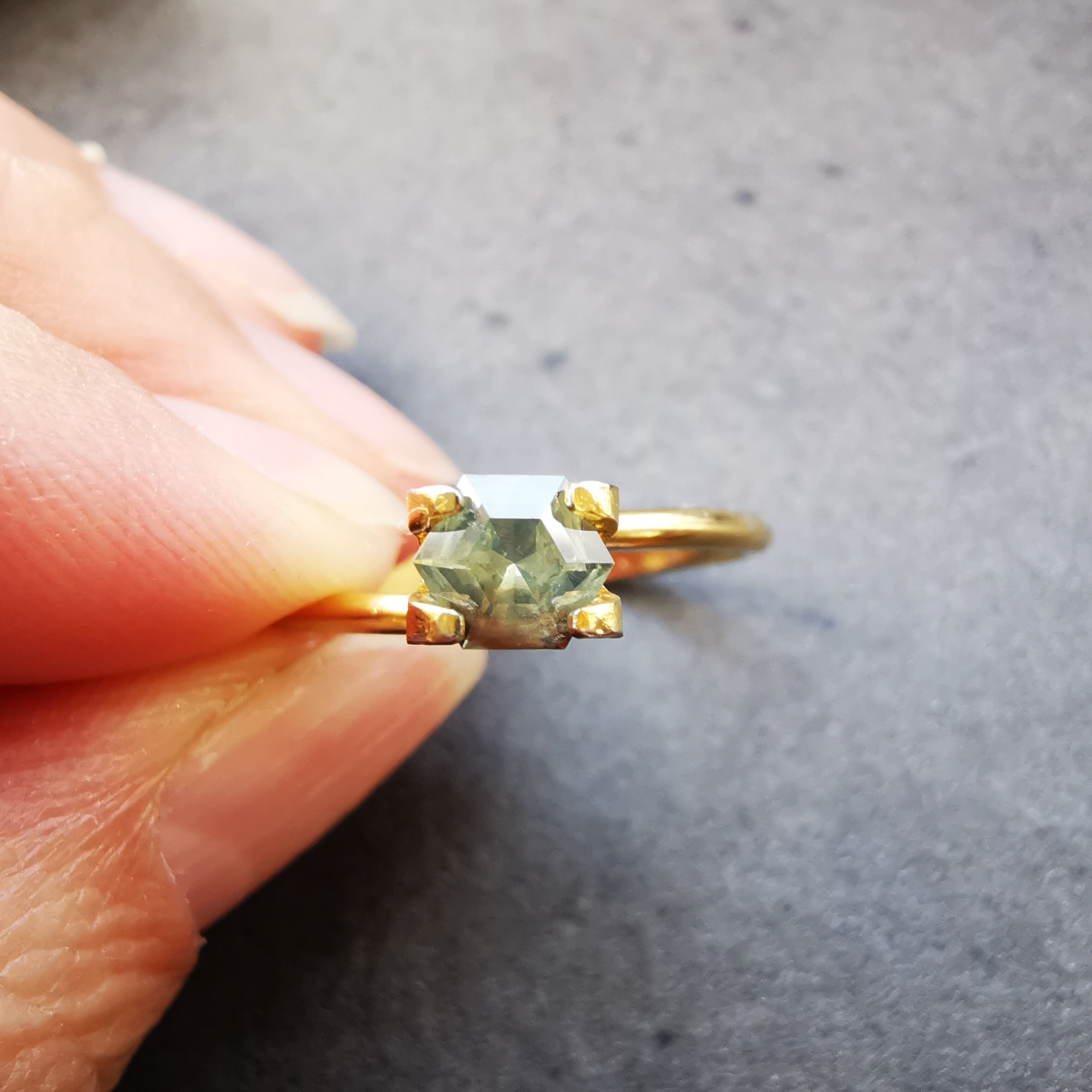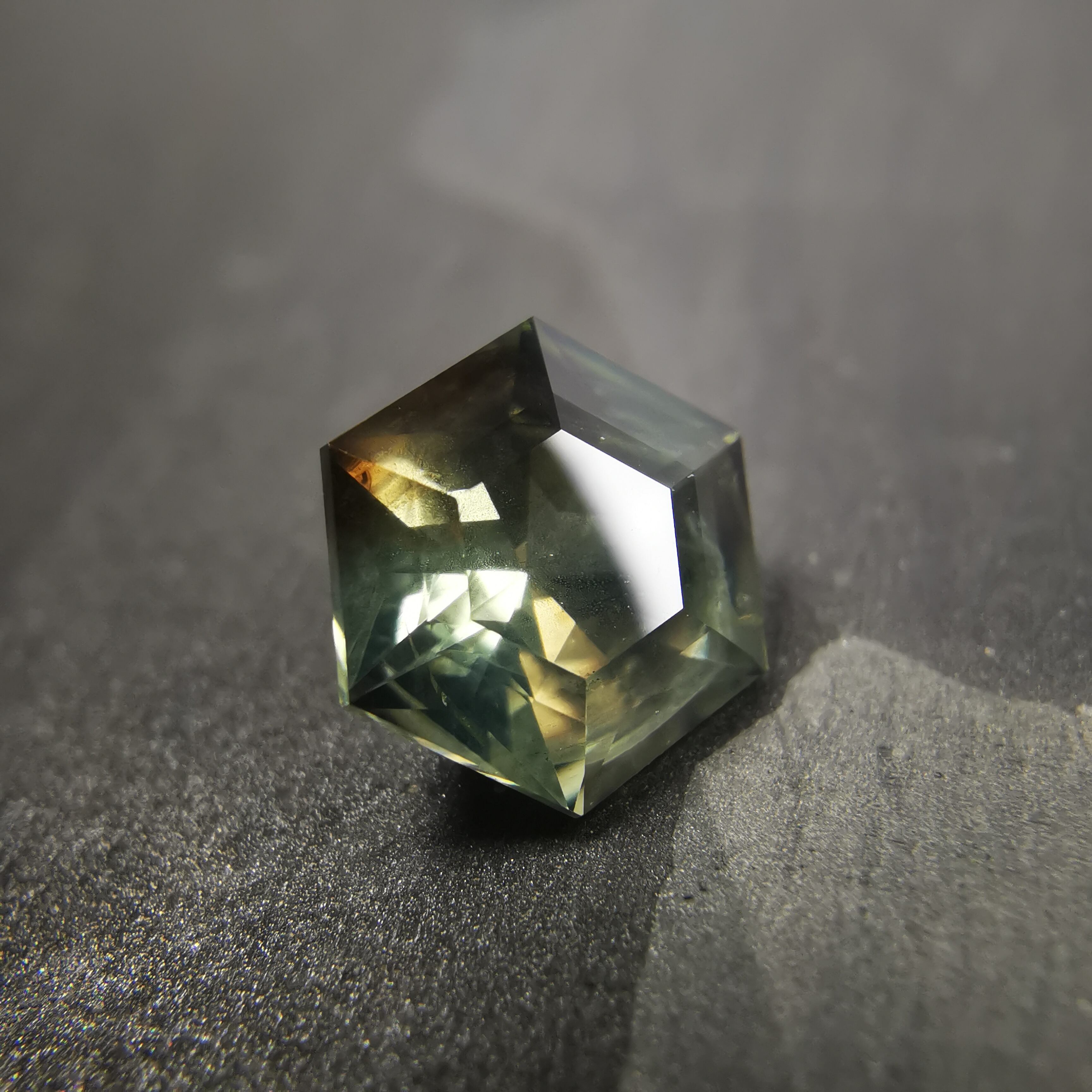 端正なヘキサゴンカットとの対比により、さらに魅力が増しています。
