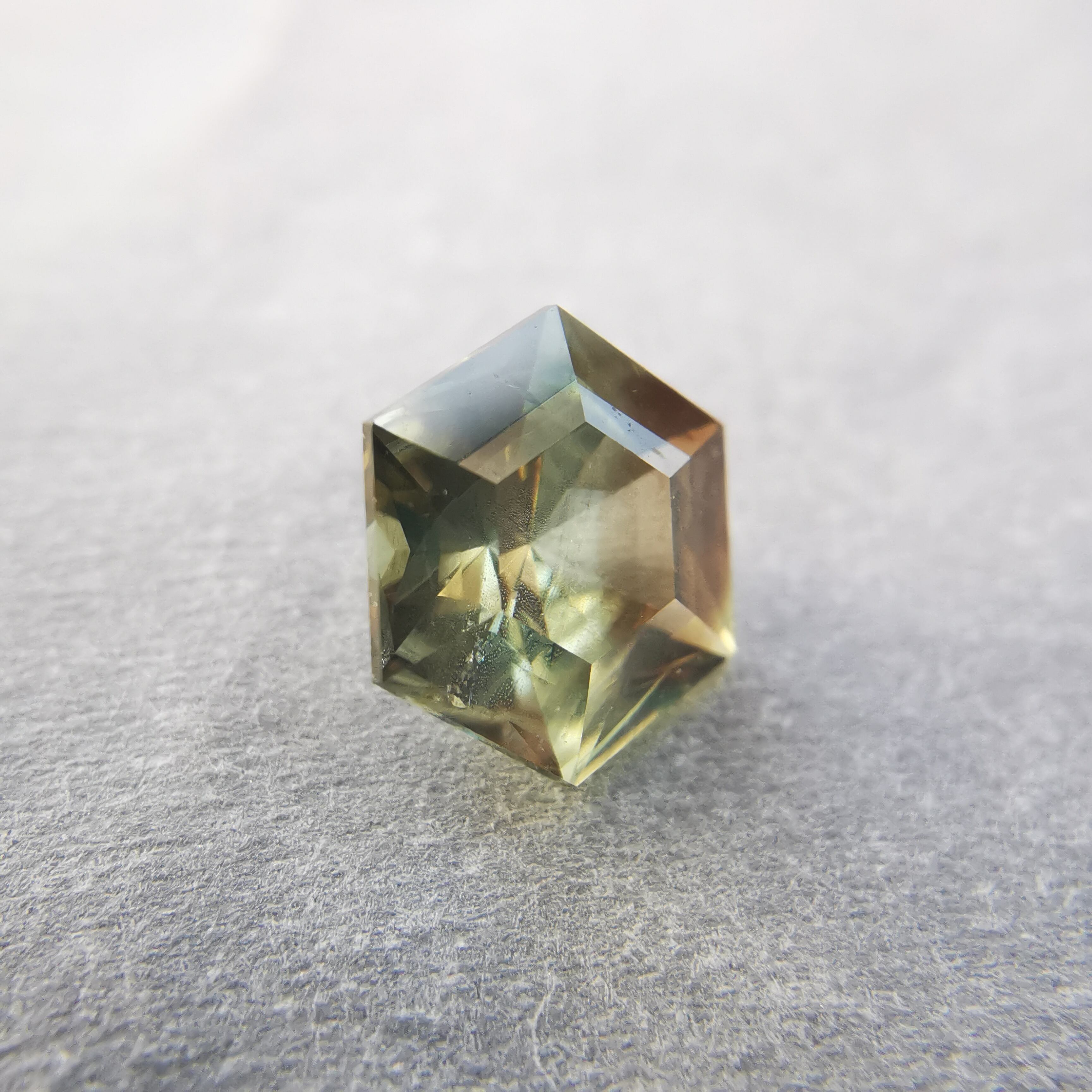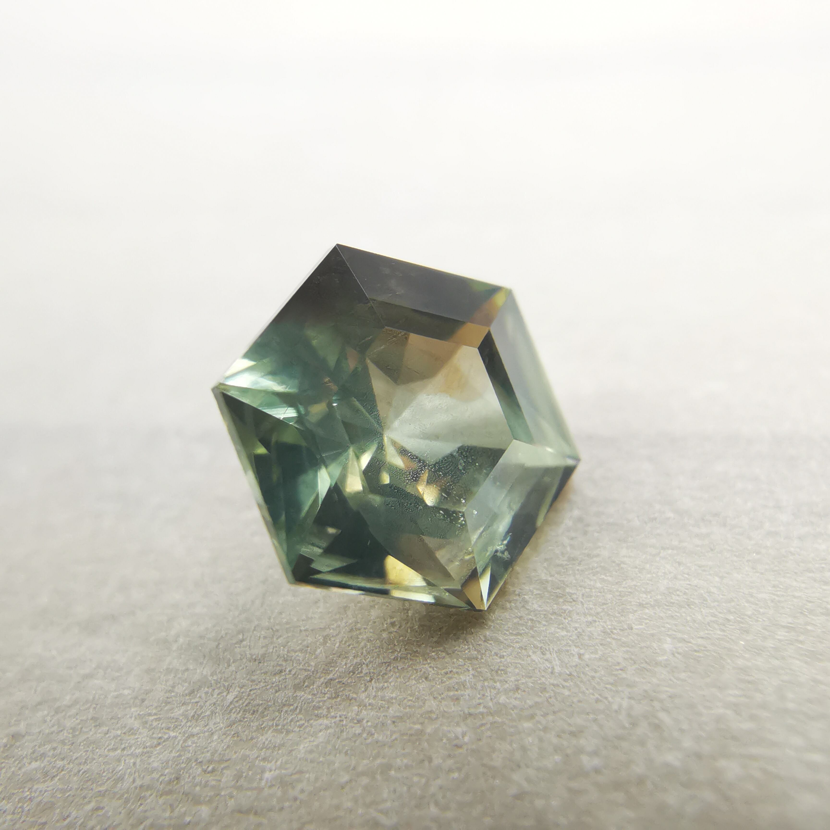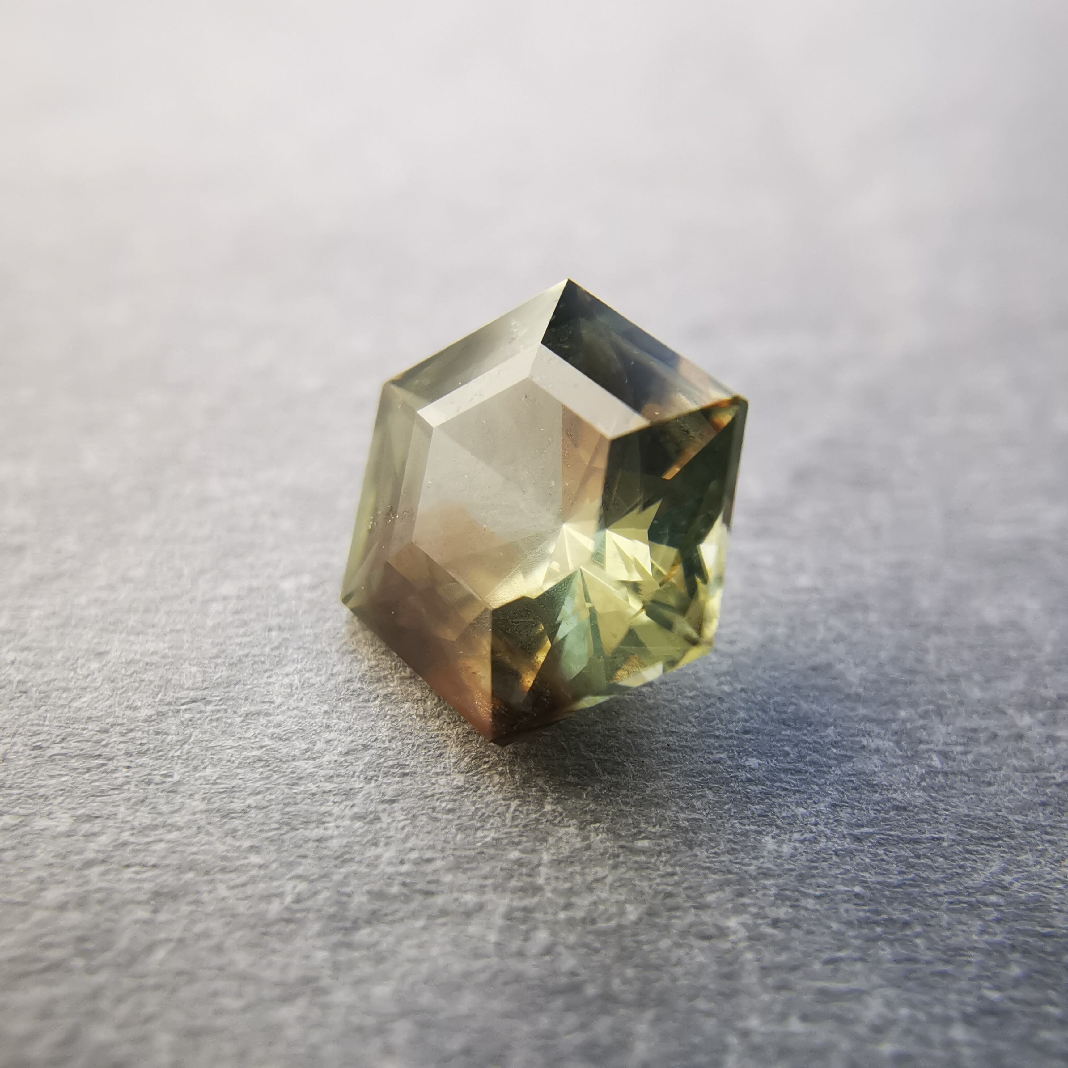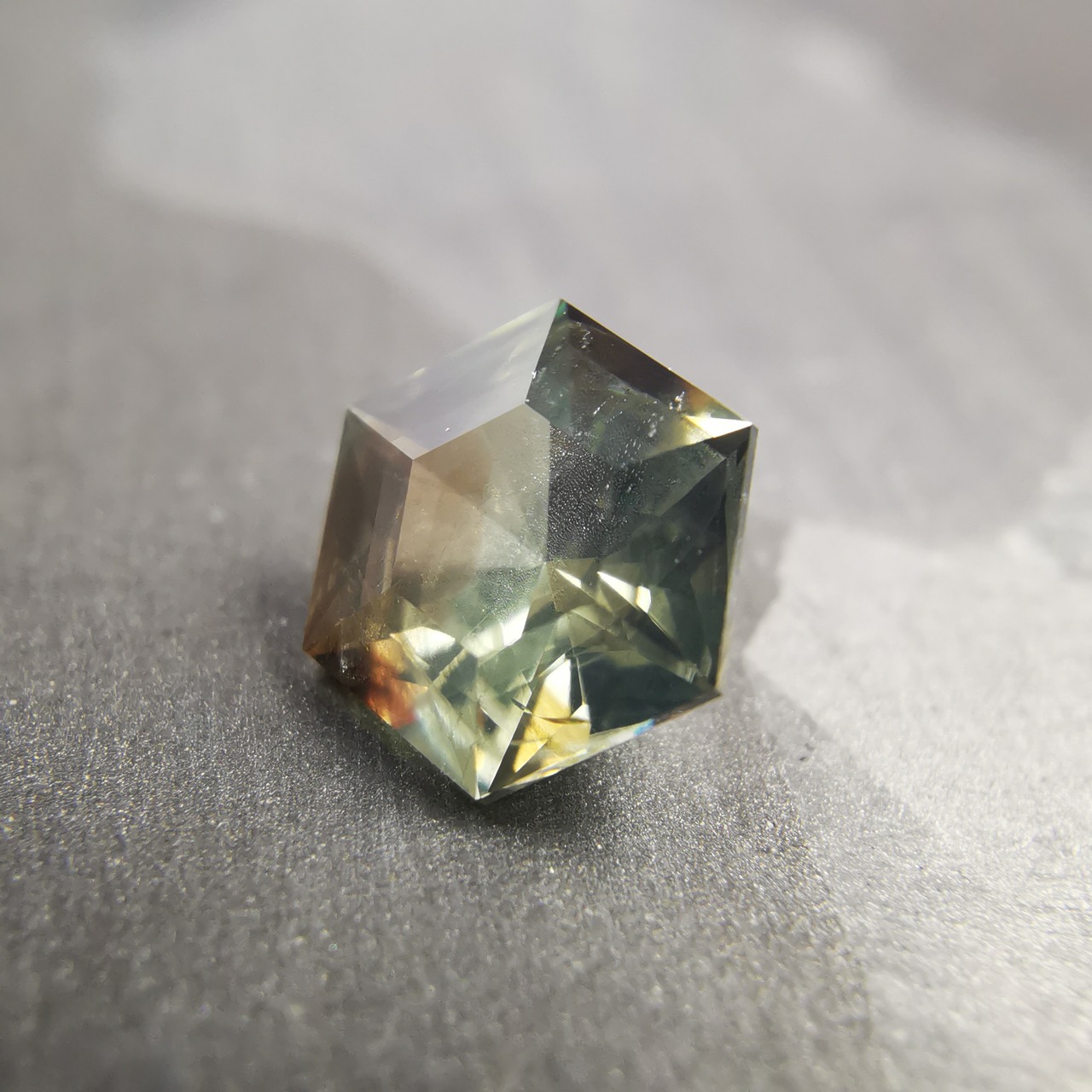 端正なヘキサゴンカットとの対比により、さらに魅力が増しています。