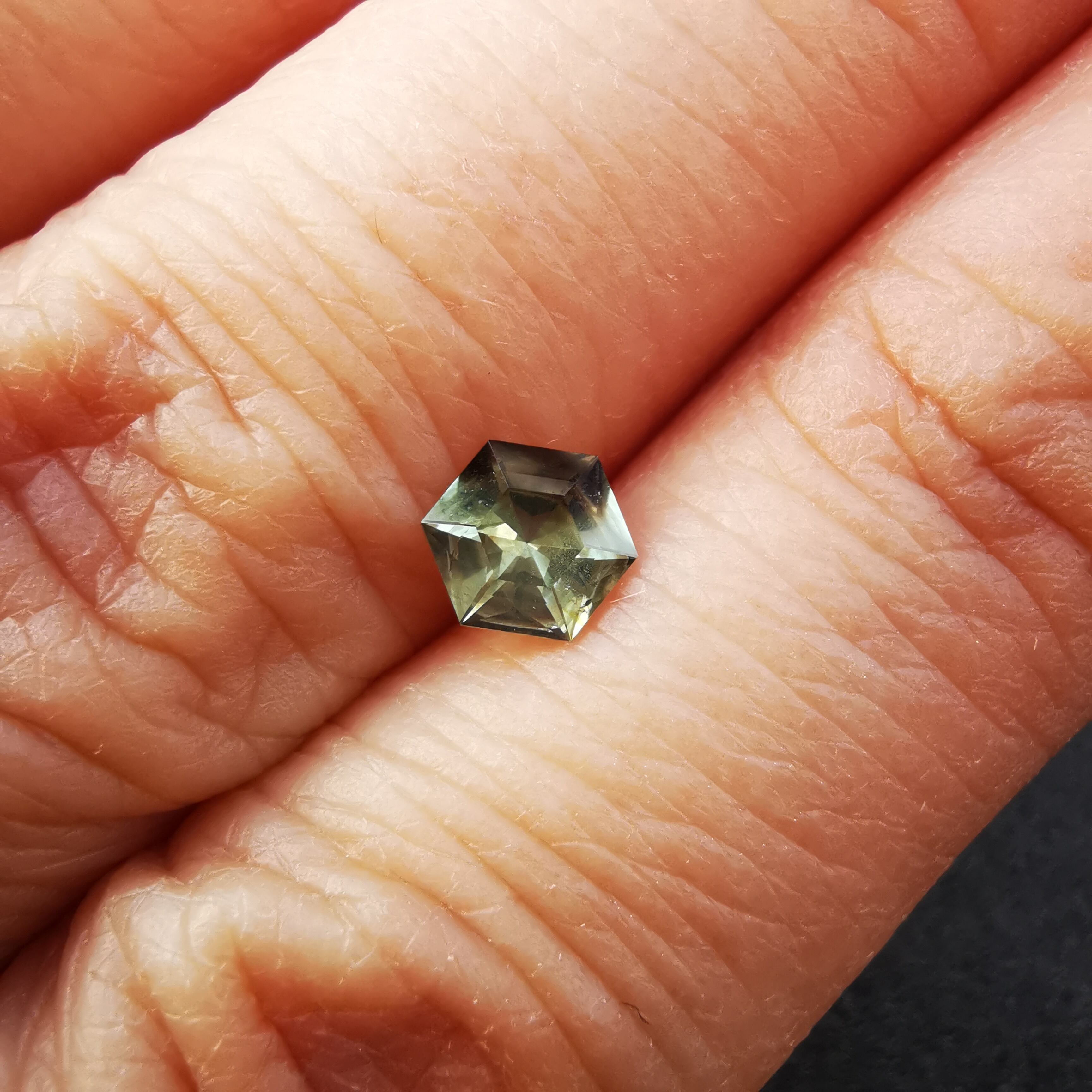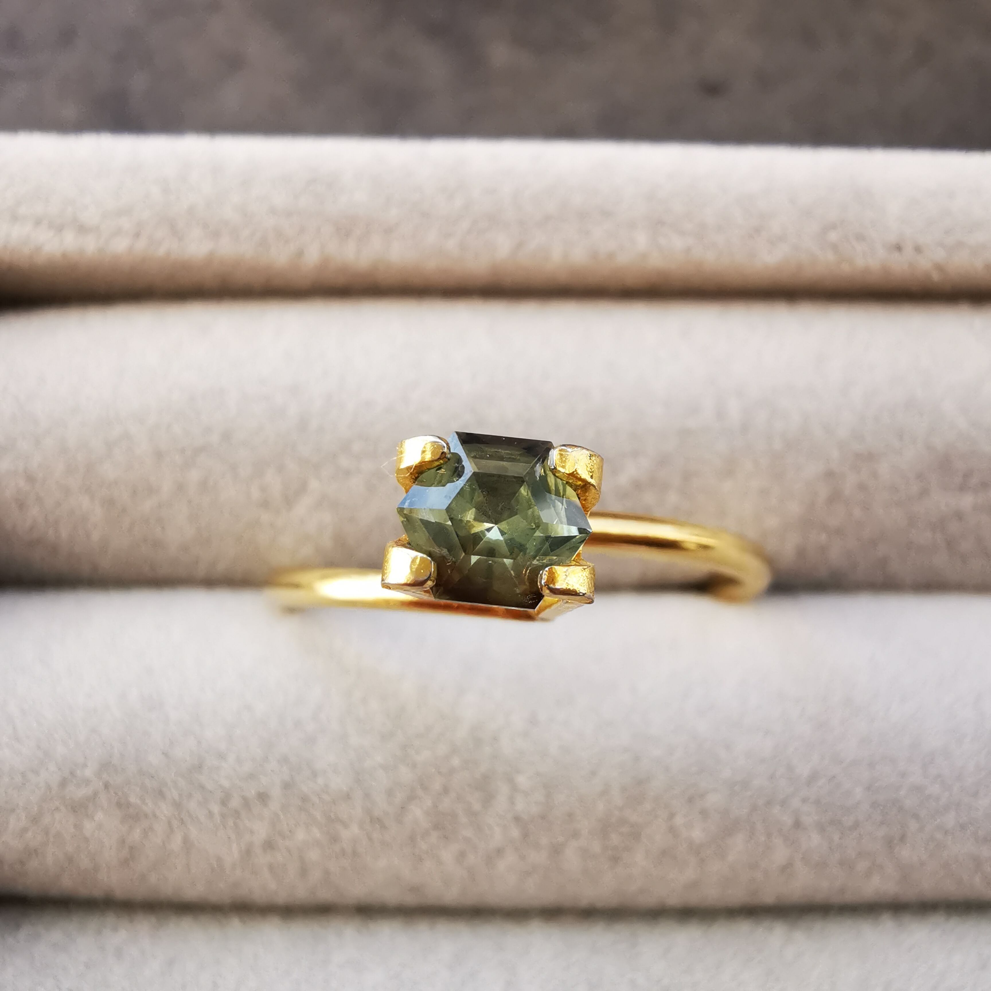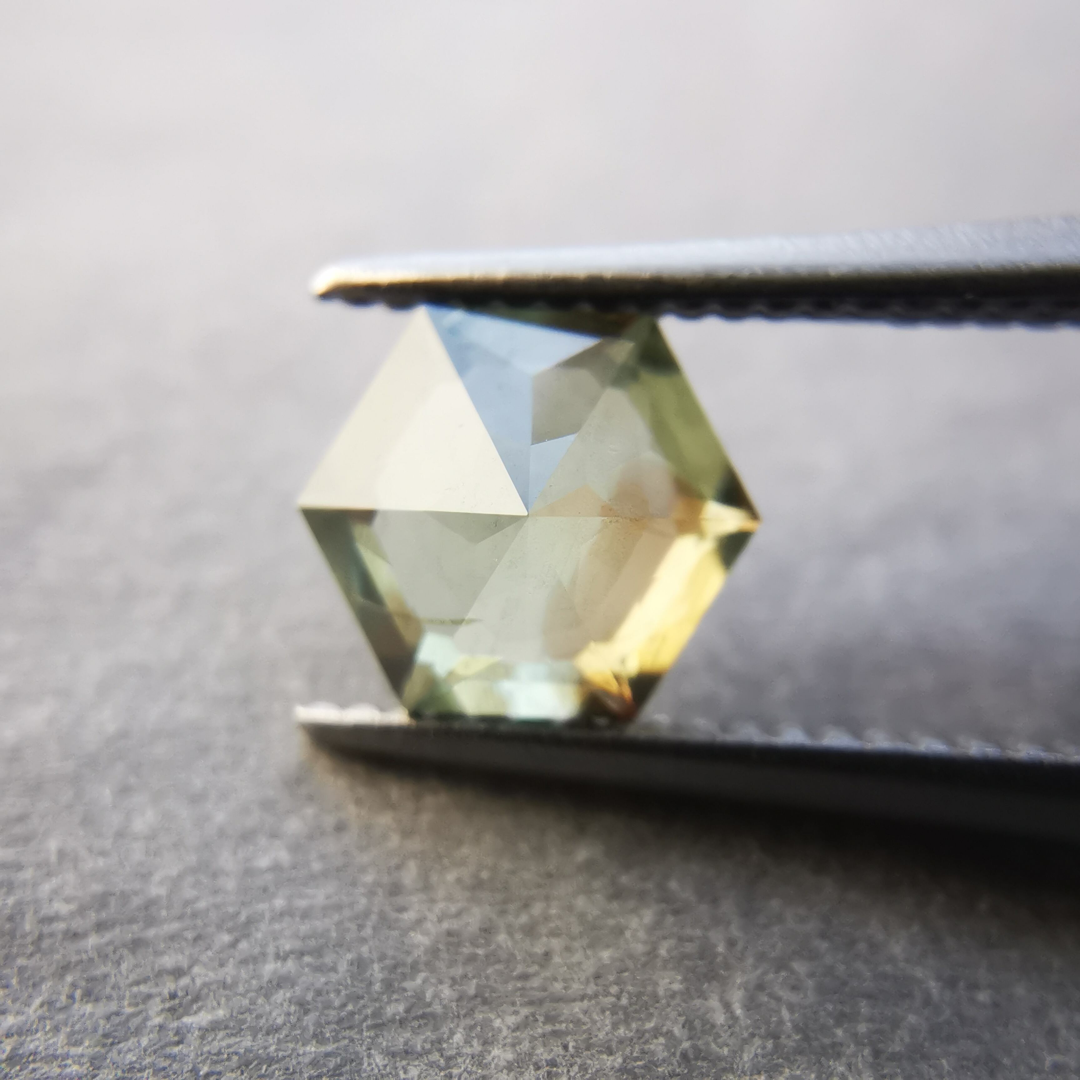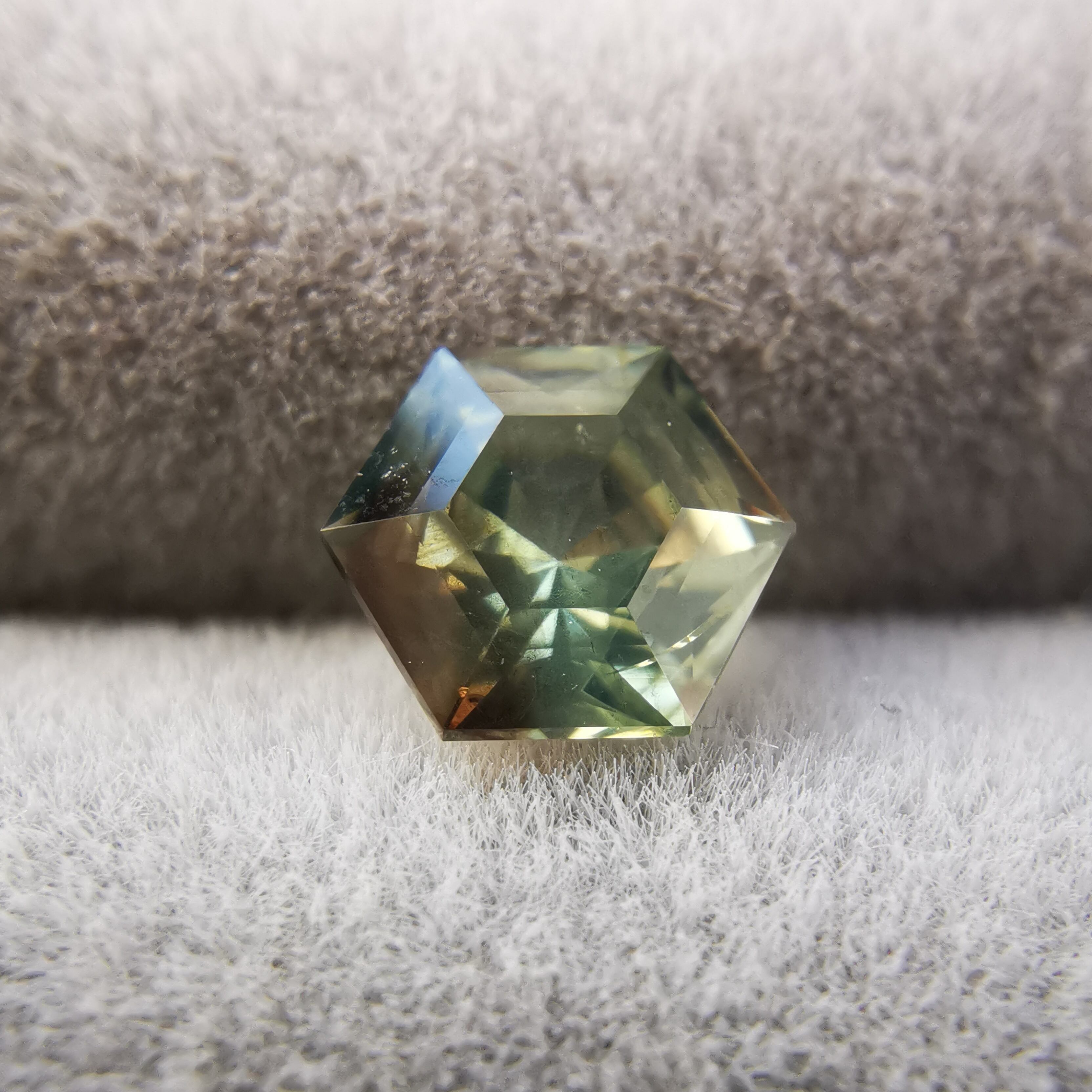 端正なヘキサゴンカットとの対比により、さらに魅力が増しています。