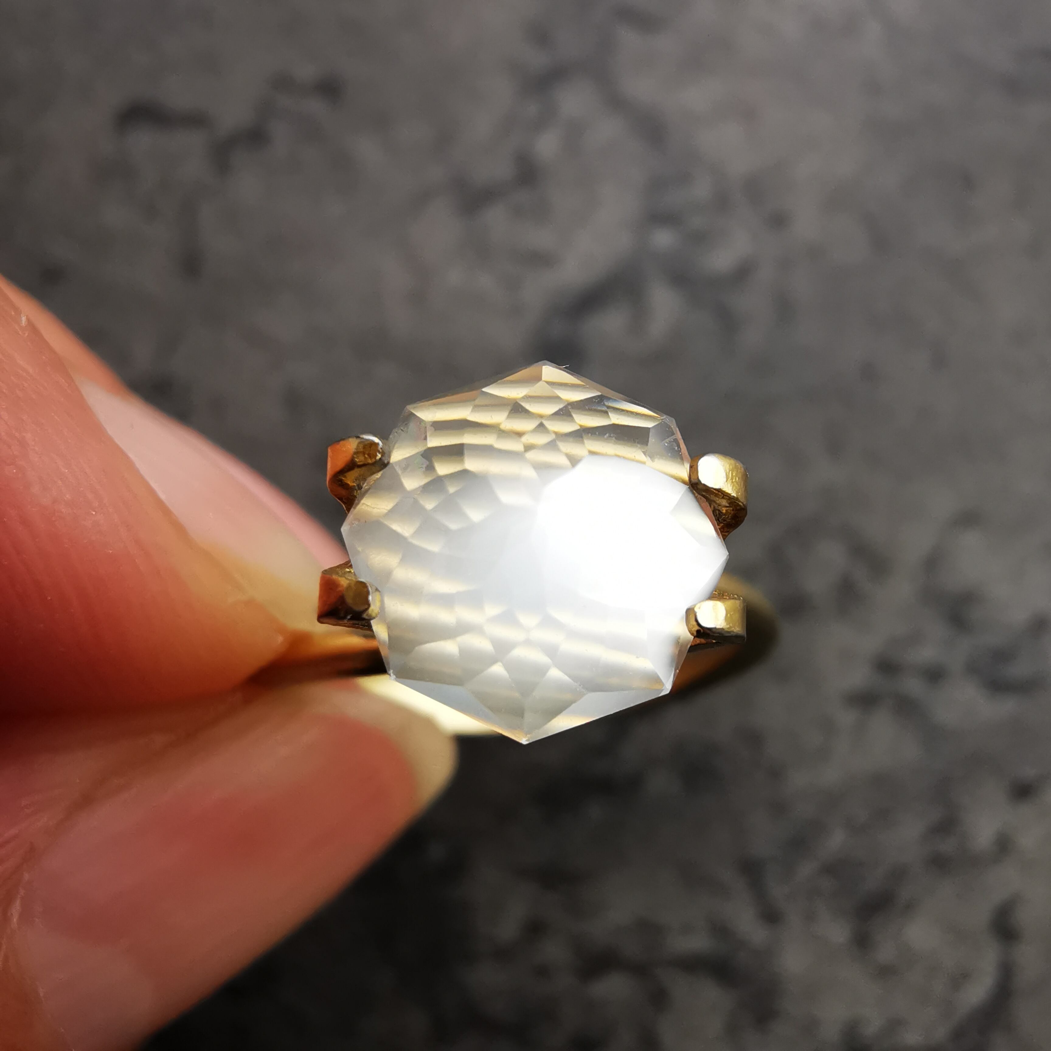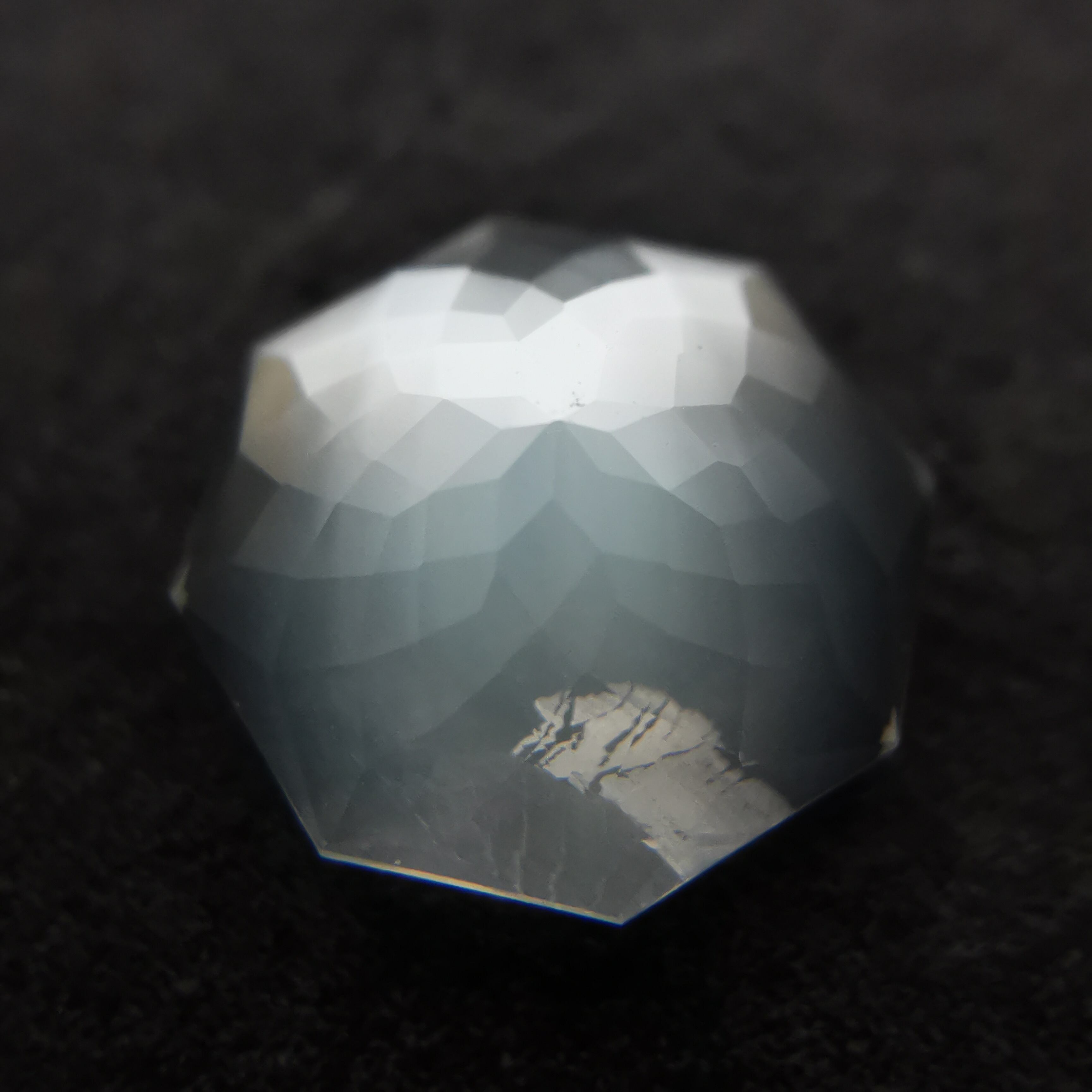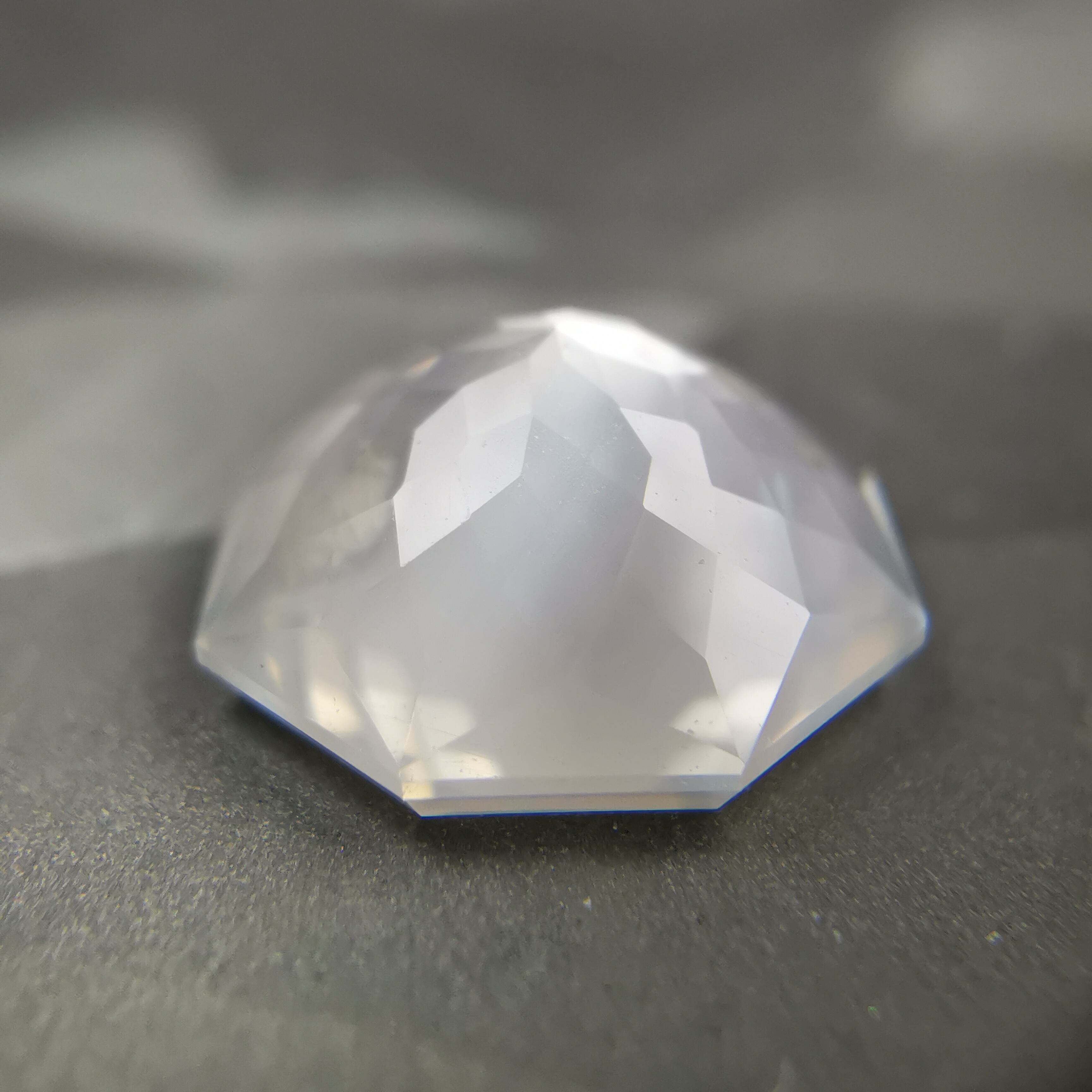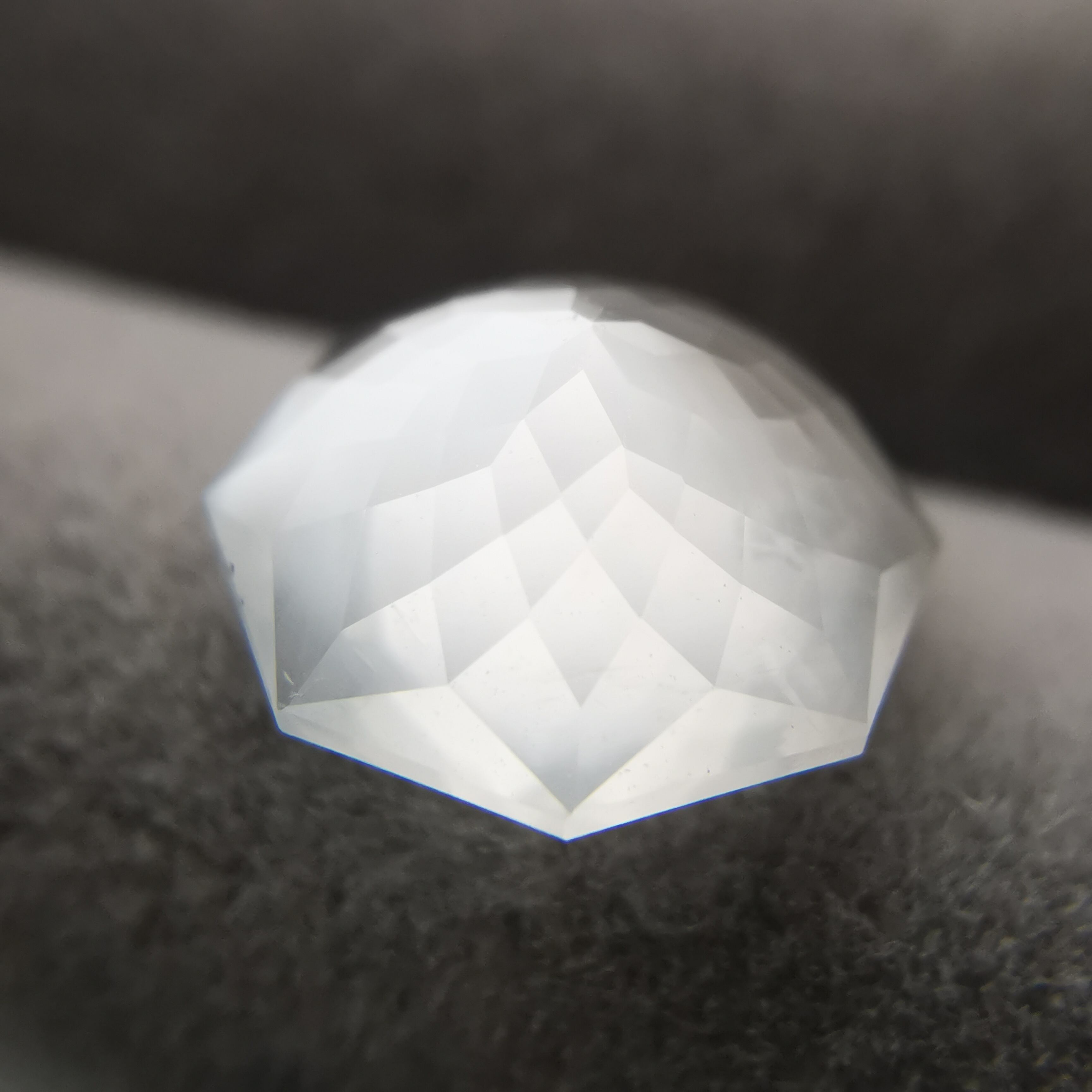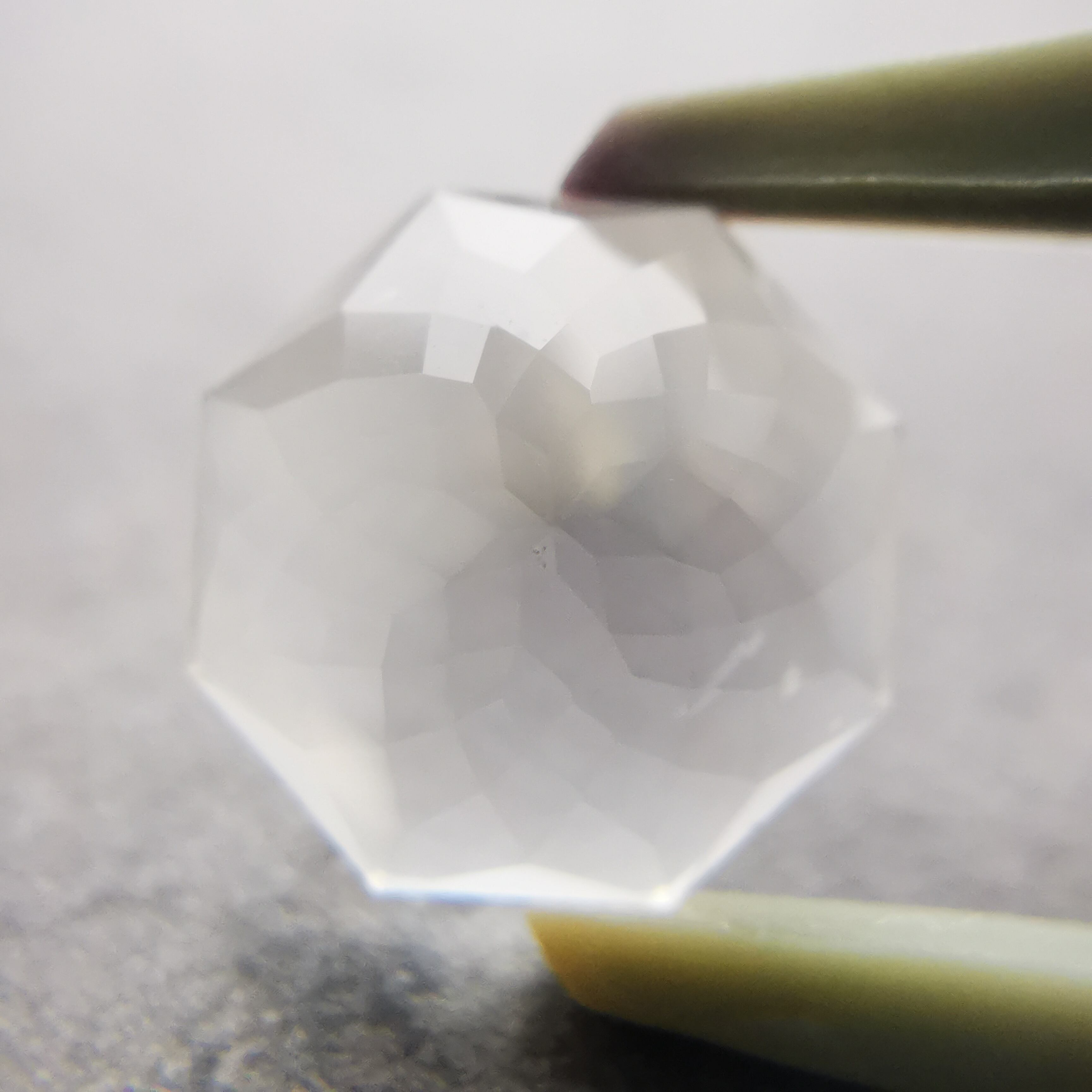 直径8ミリほどのムーンストーンに、非常に繊細なカットを施したオクタゴンローズカットです。