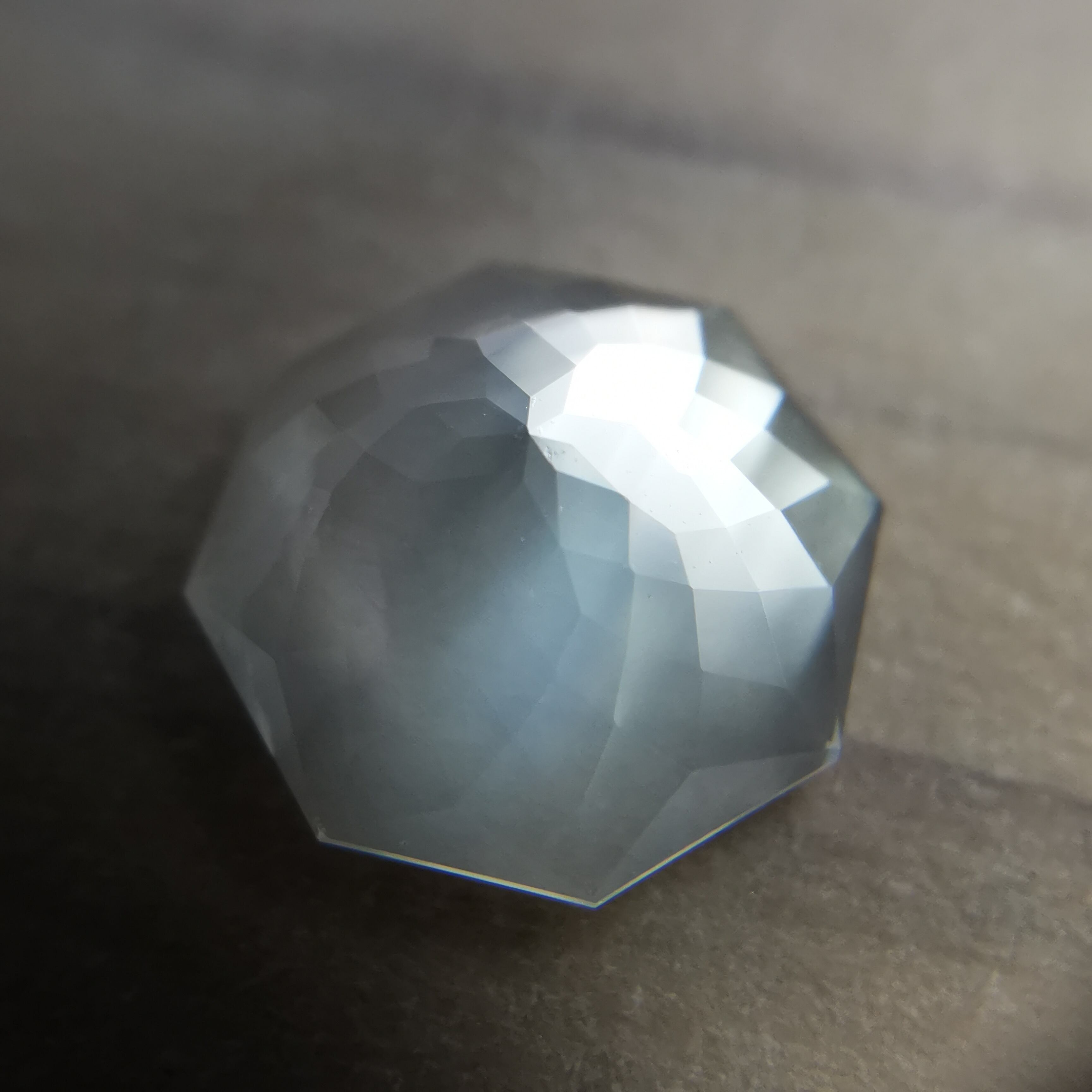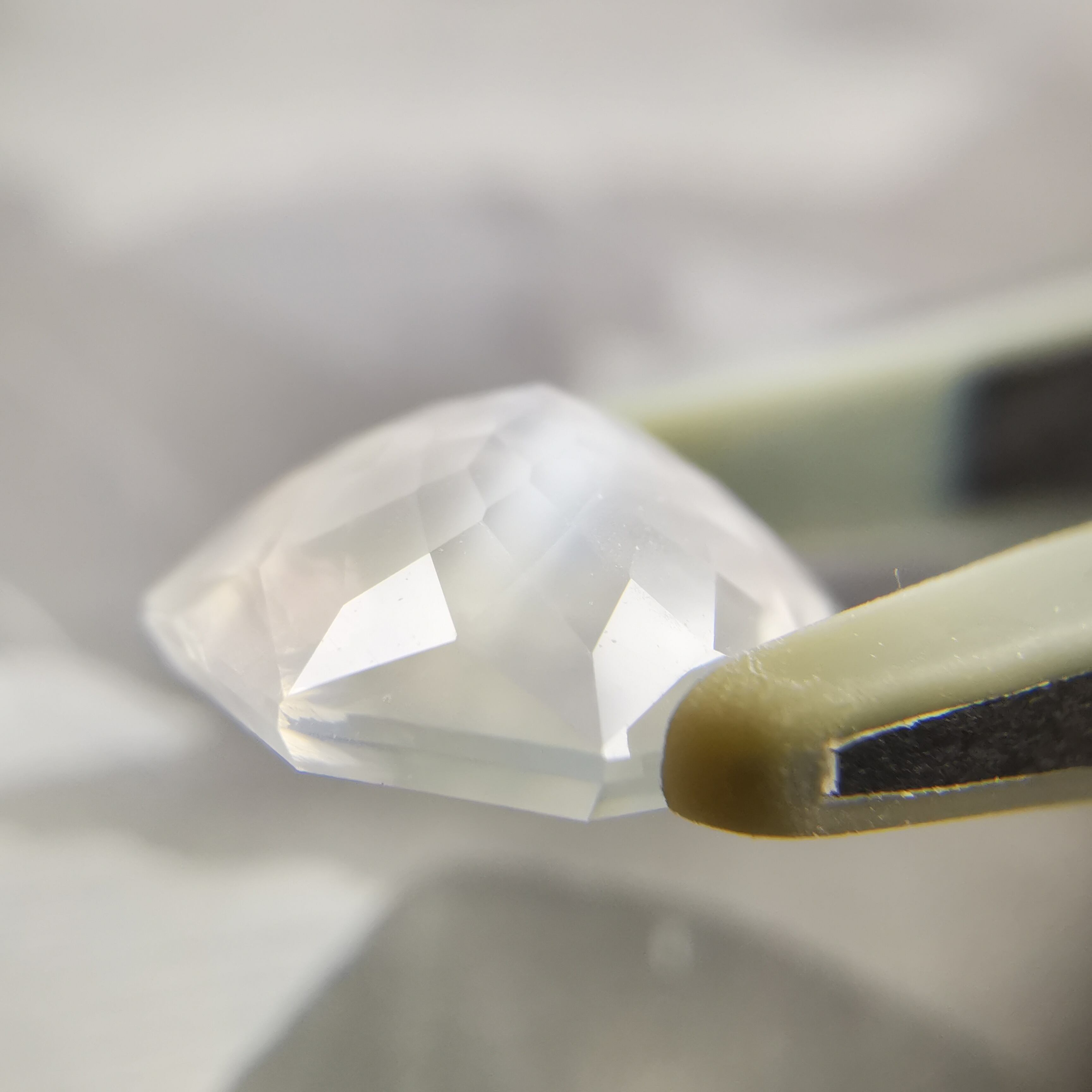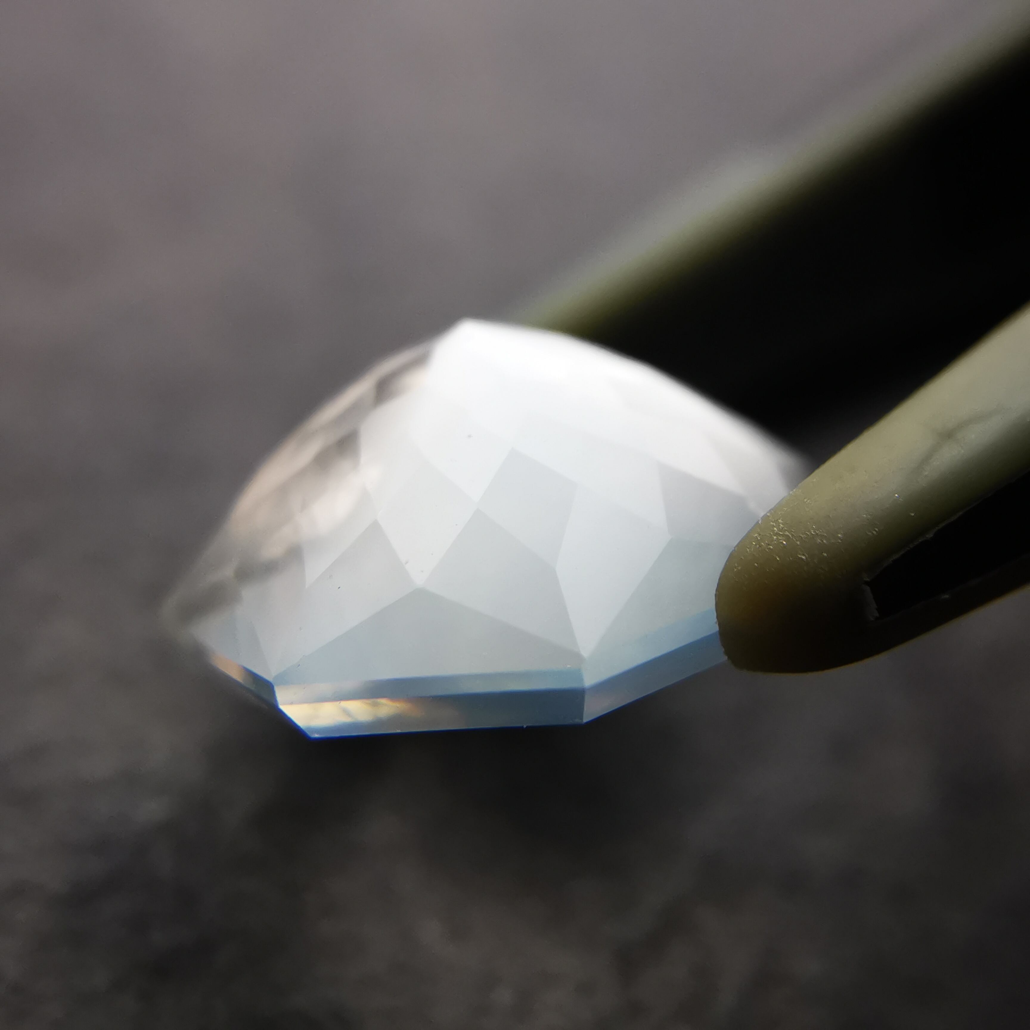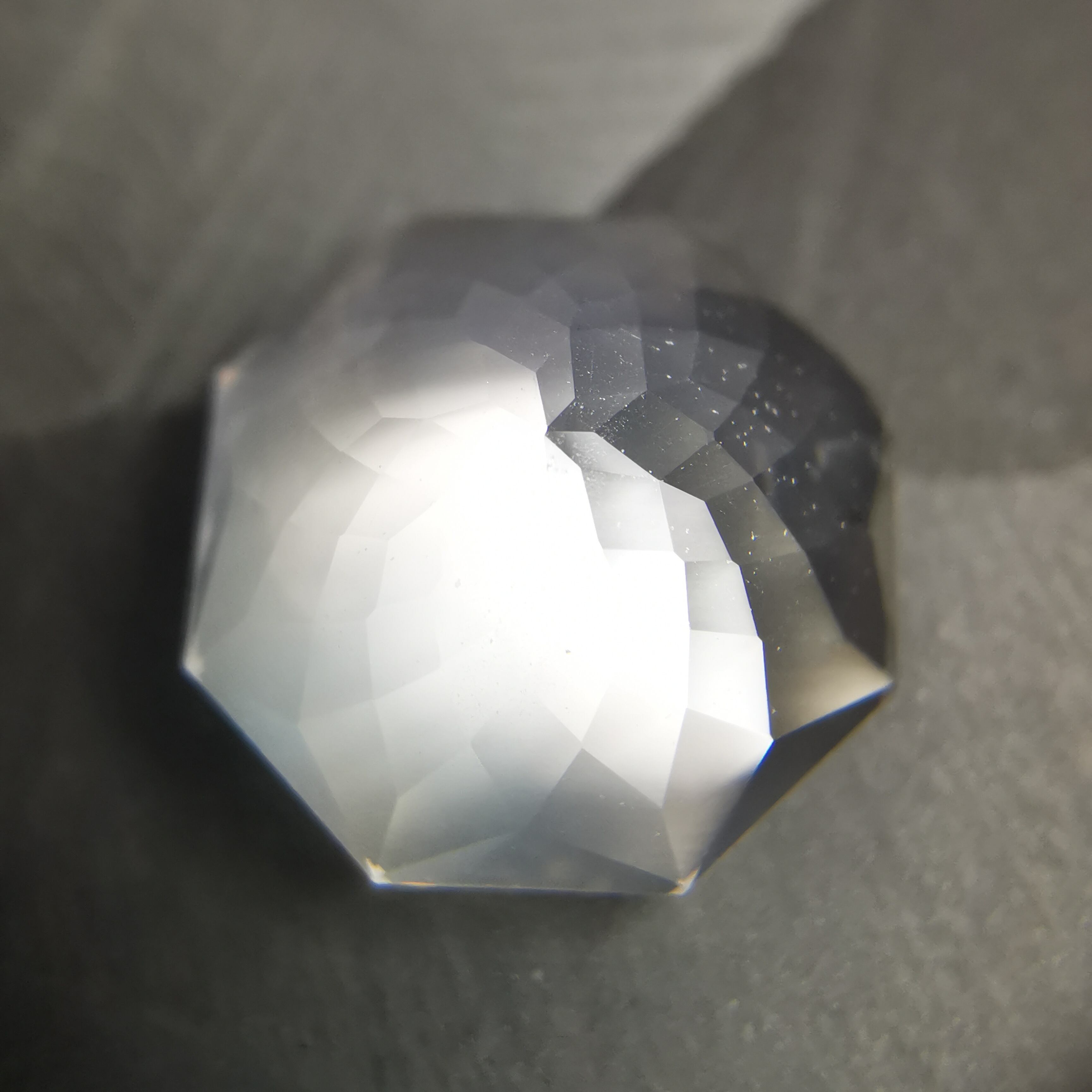 直径8ミリほどのムーンストーンに、非常に繊細なカットを施したオクタゴンローズカットです。