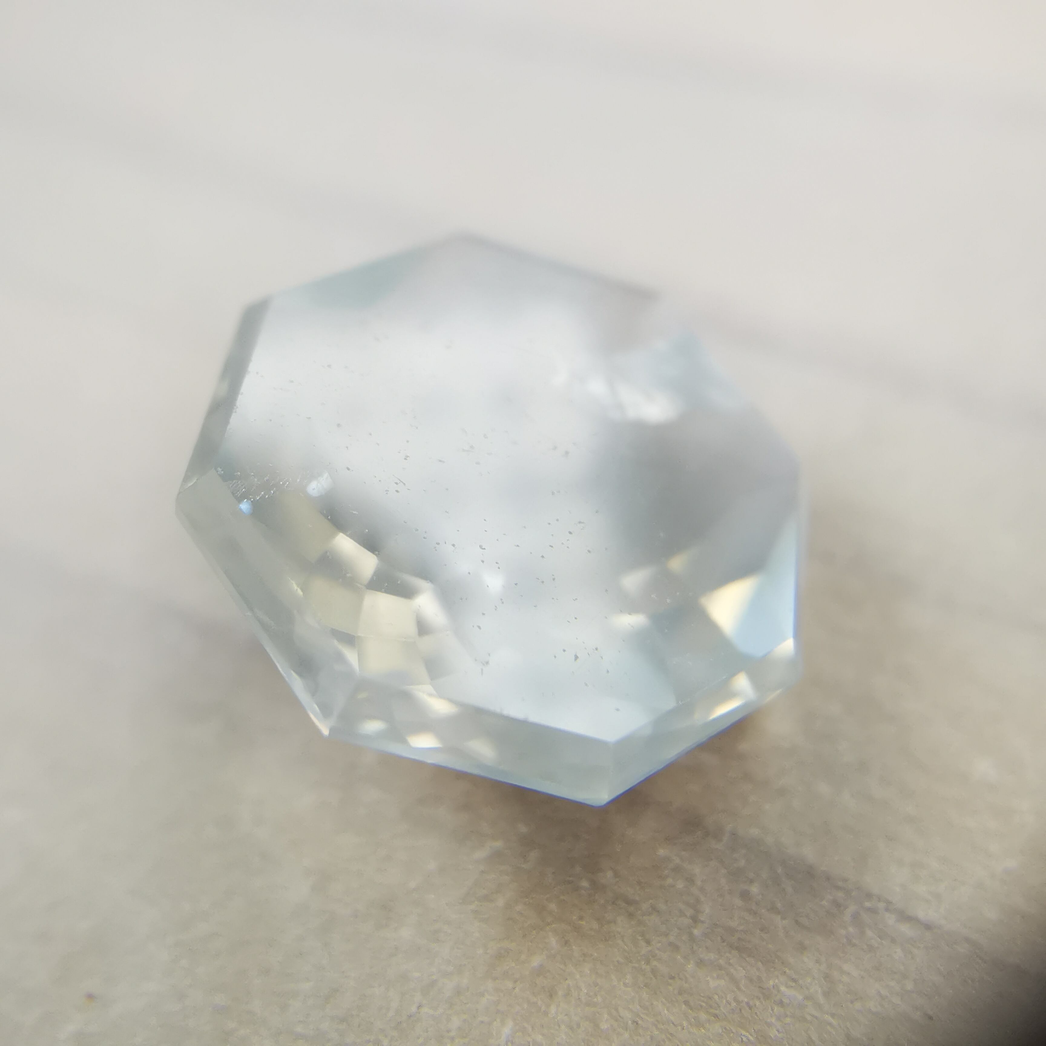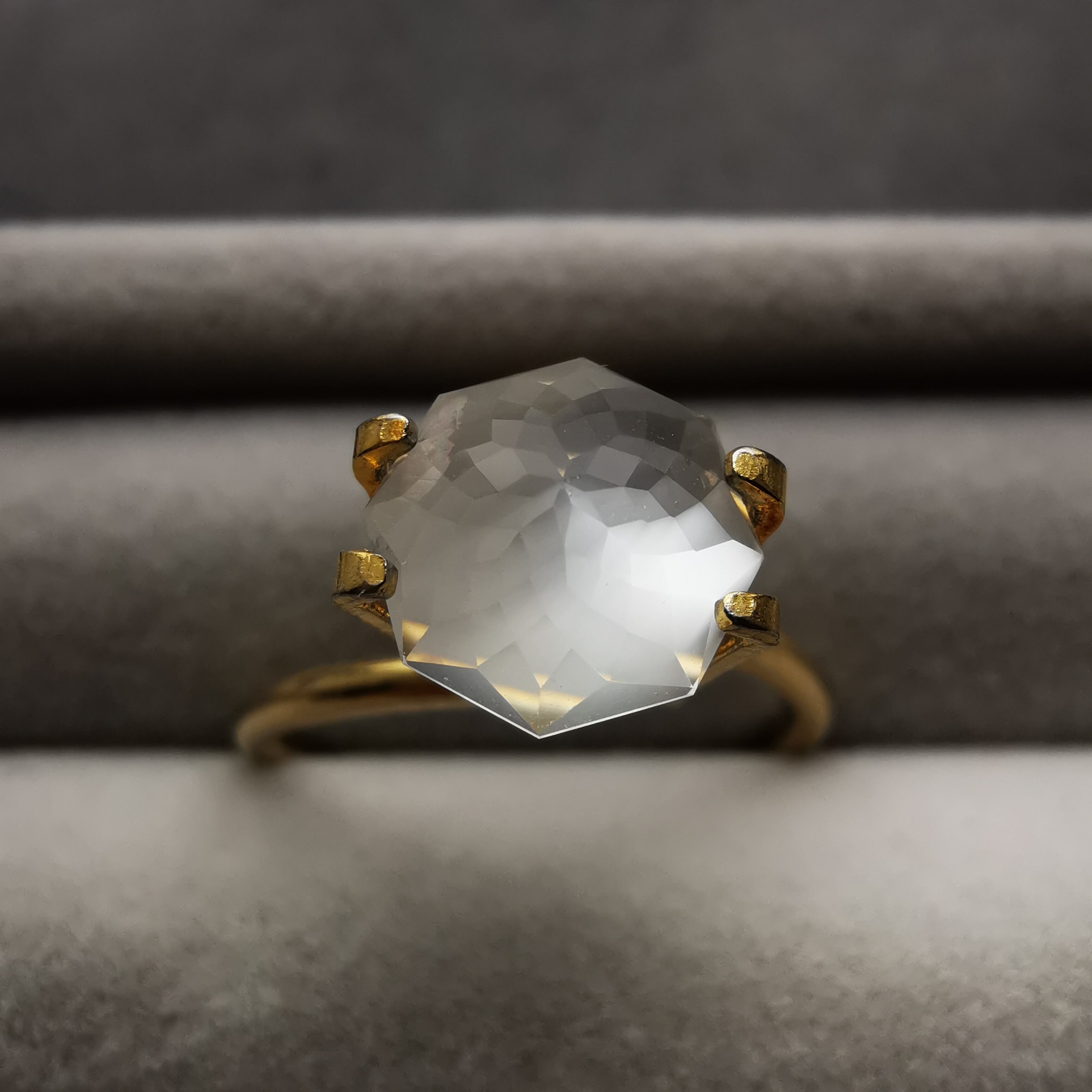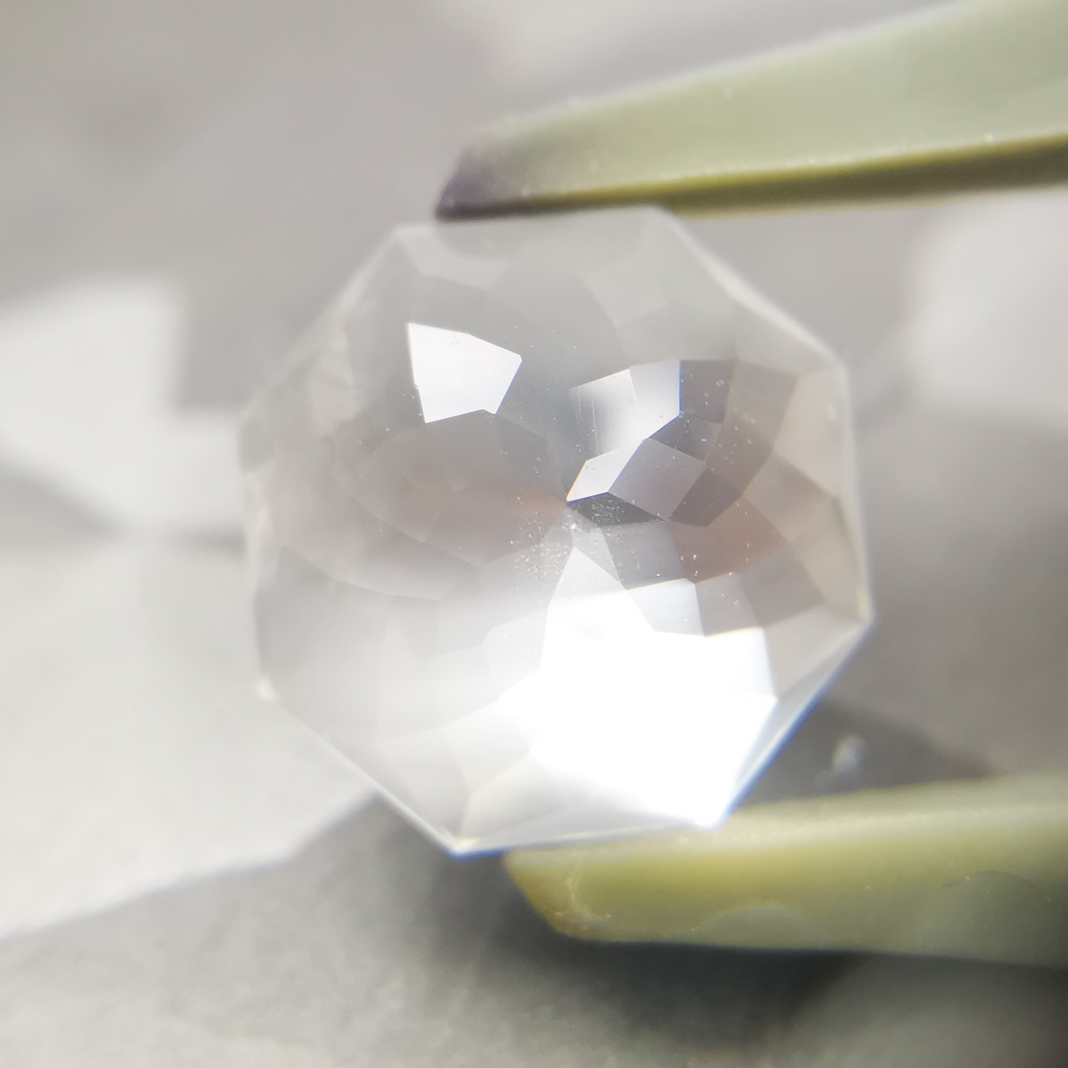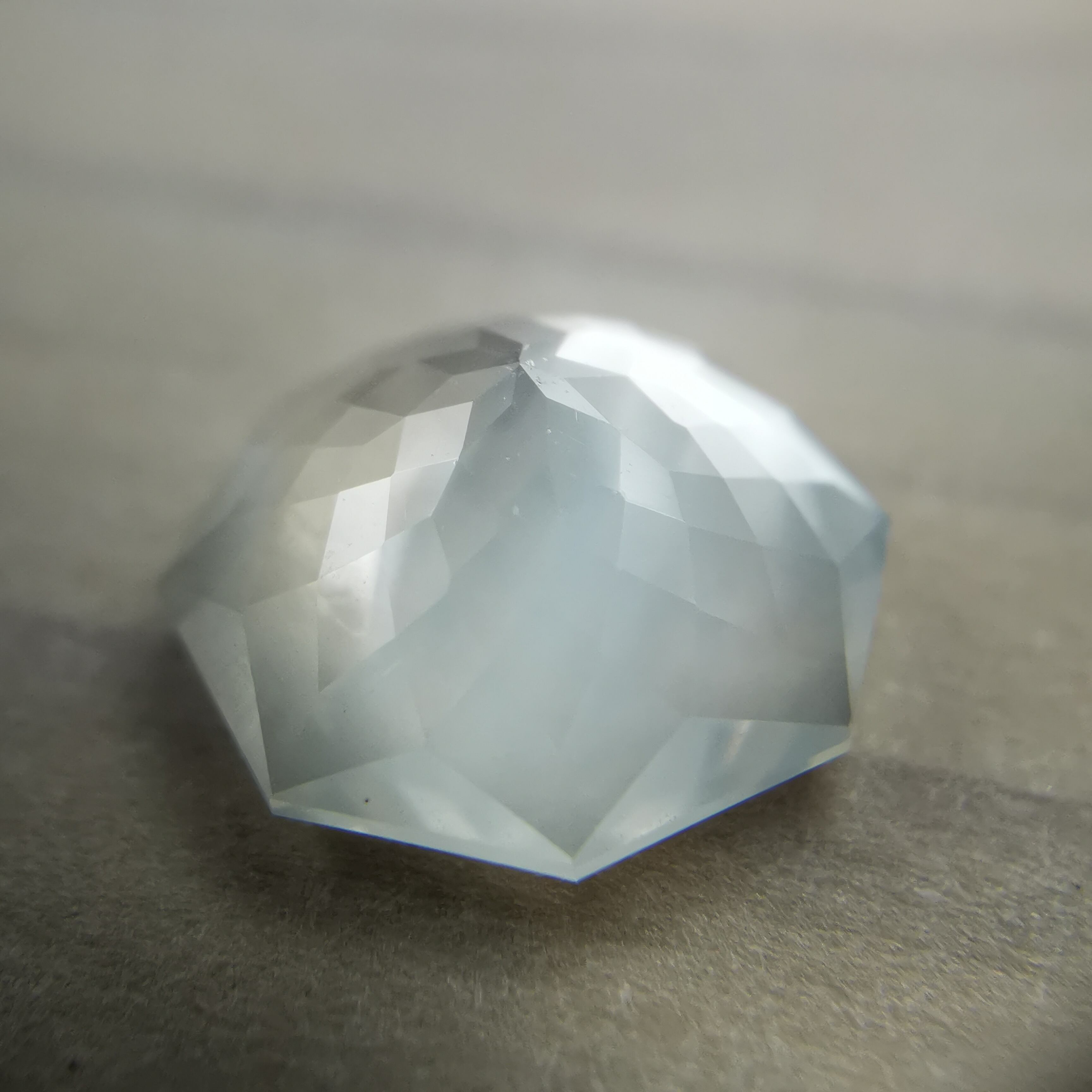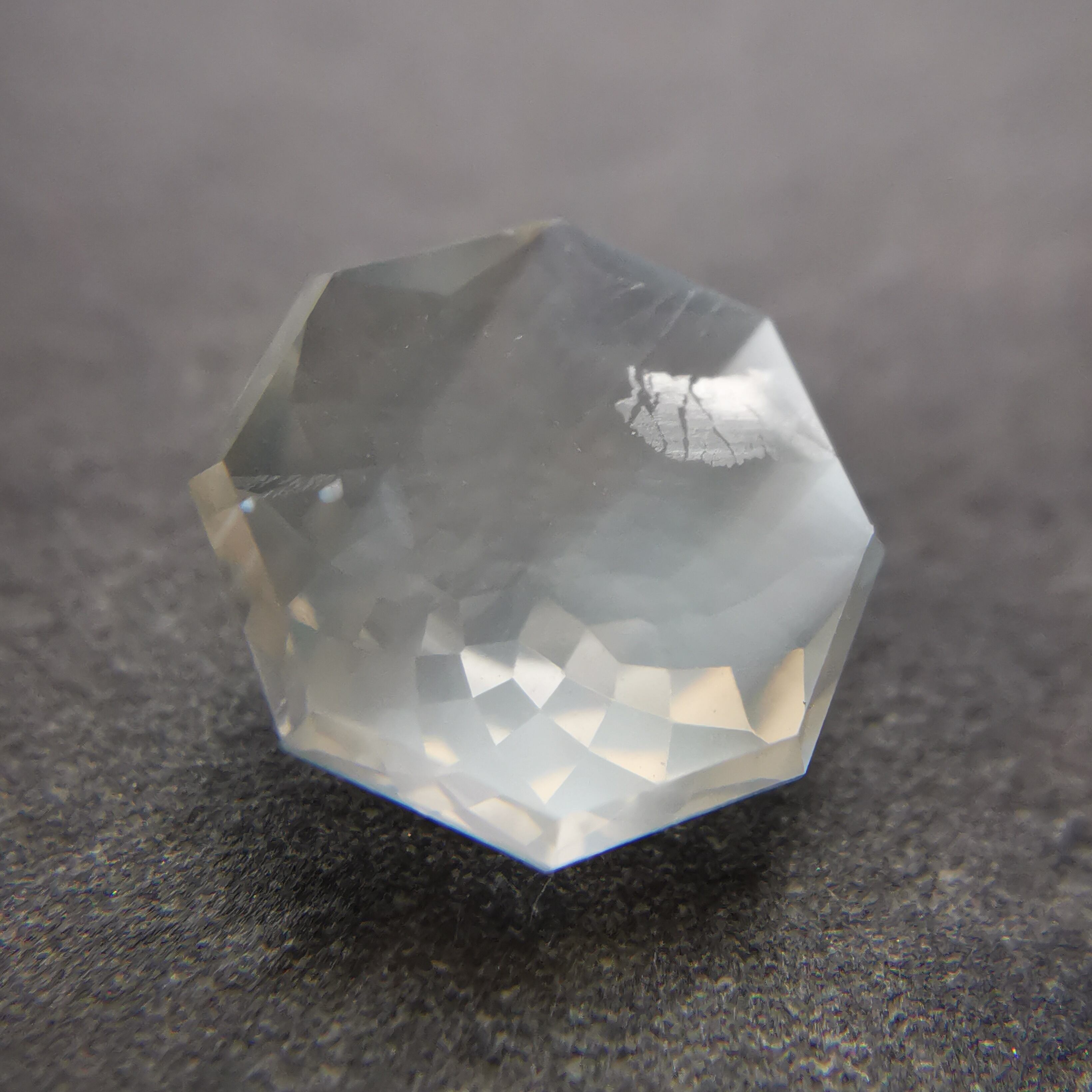 直径8ミリほどのムーンストーンに、非常に繊細なカットを施したオクタゴンローズカットです。