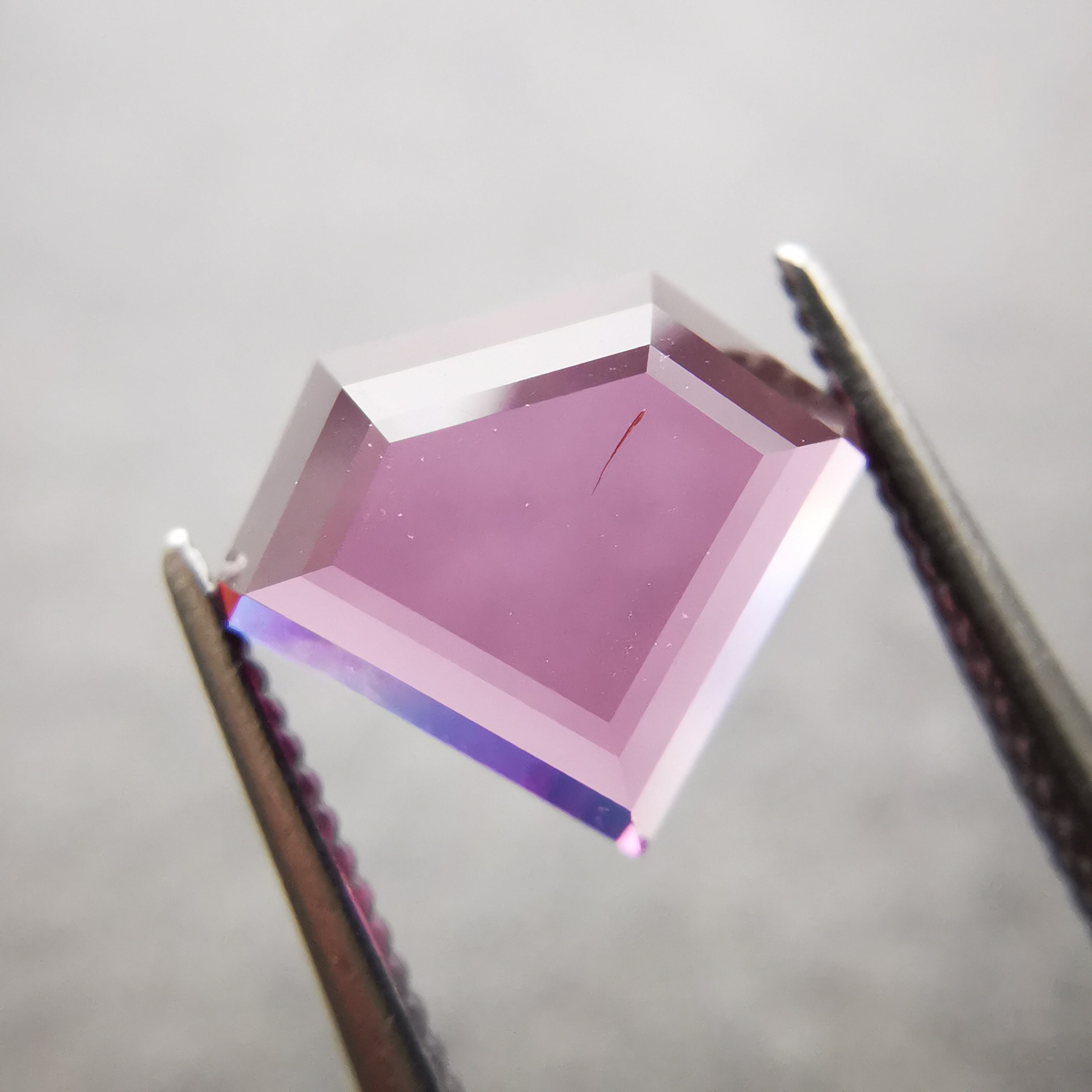 フラットな面を表にすると、美しいピンクのグラデーションに縁取られたジュエルが浮かび上がります。