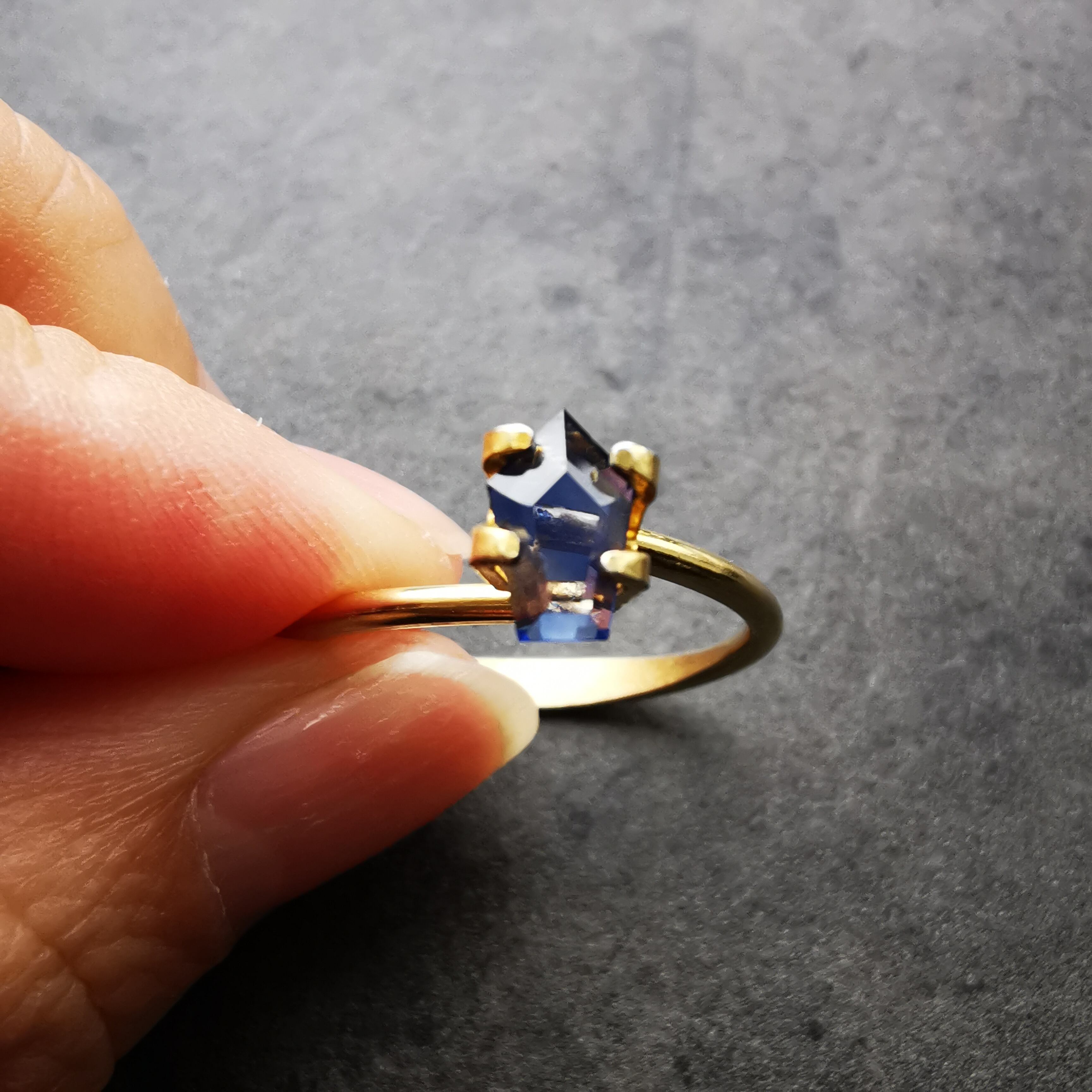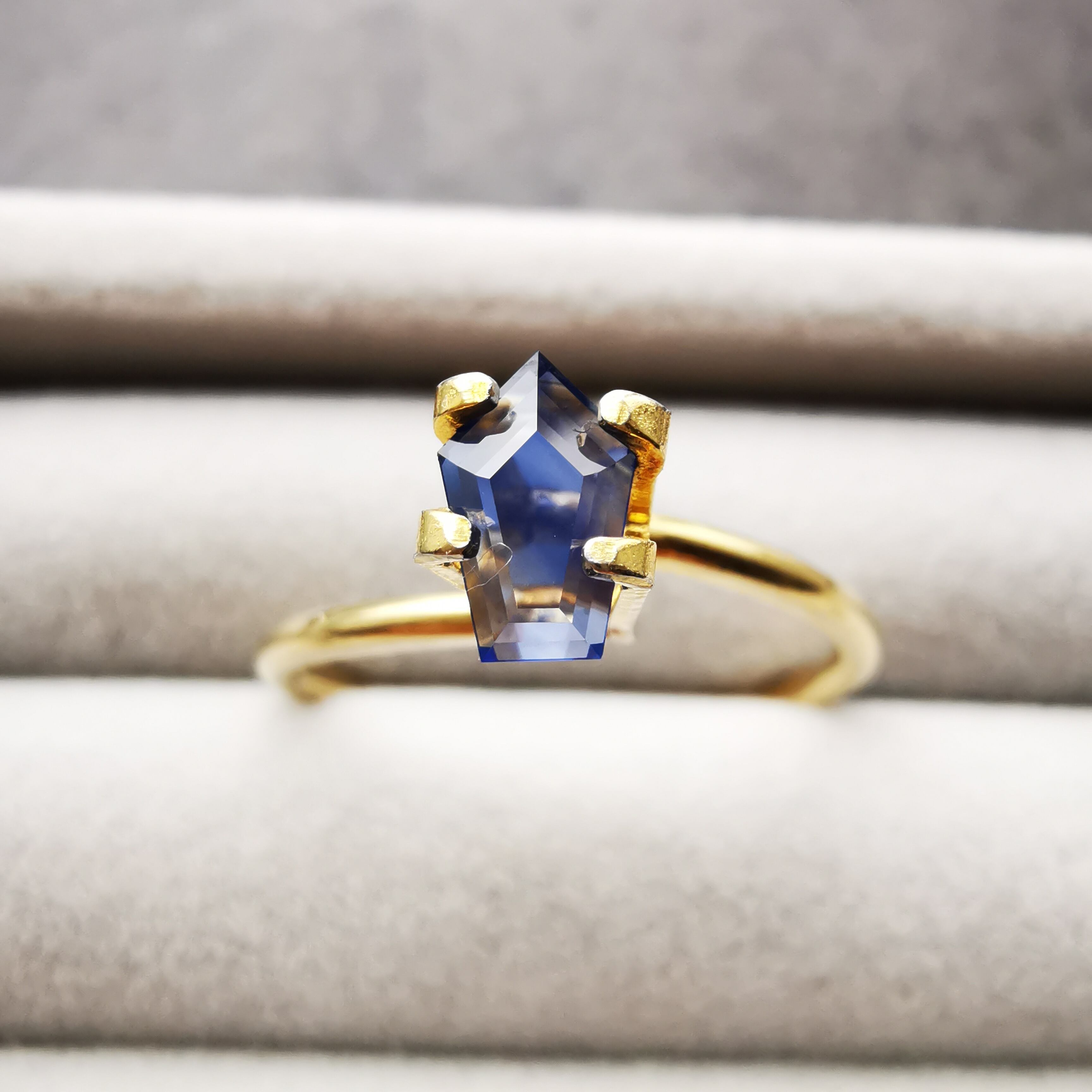 淡く透明に近いブルーに、優しげな青がもやもやと入ったサファイアです。