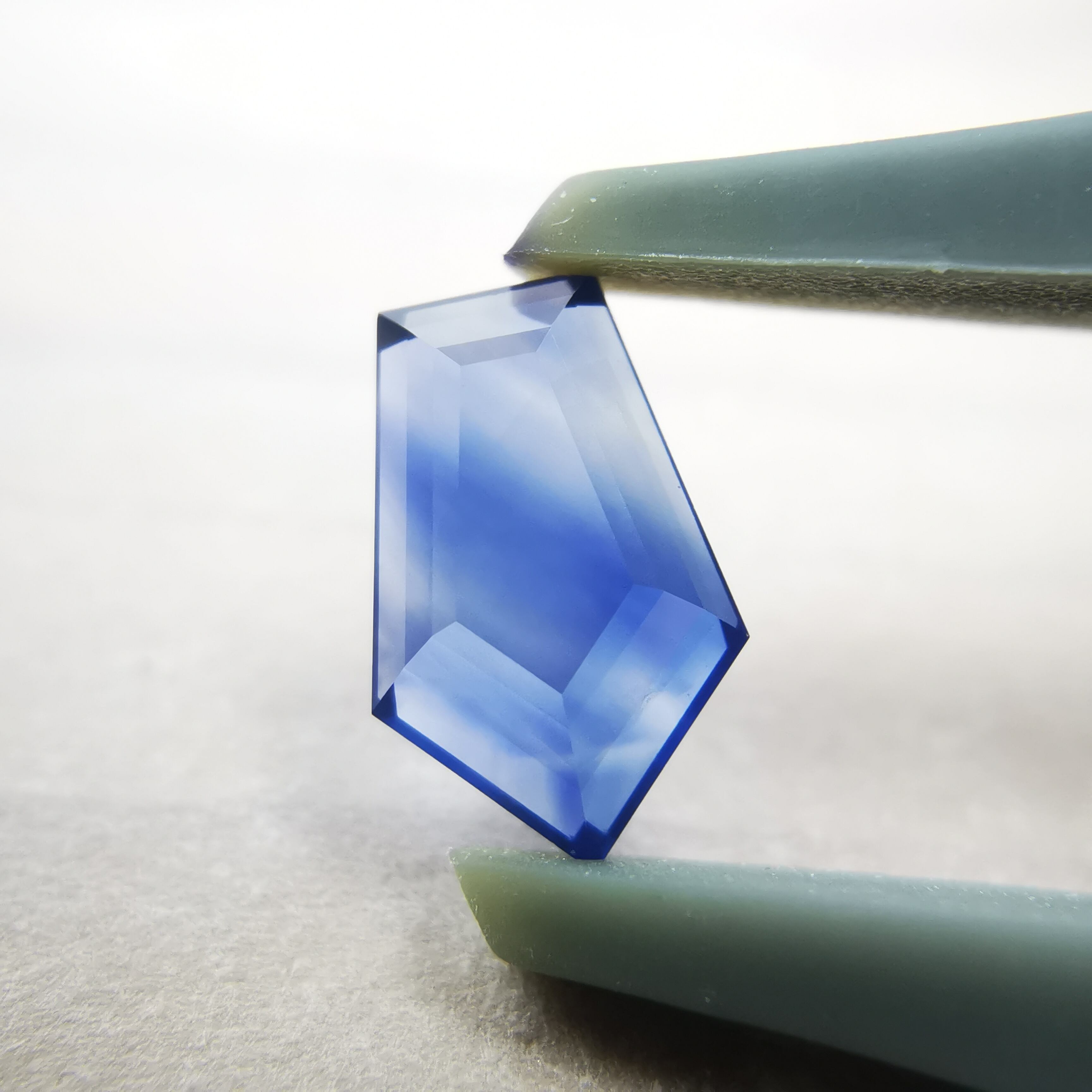 鋭く尖ったフラットバックカットに縁取られた穏やかな色、そのコントラストが魅力的です。