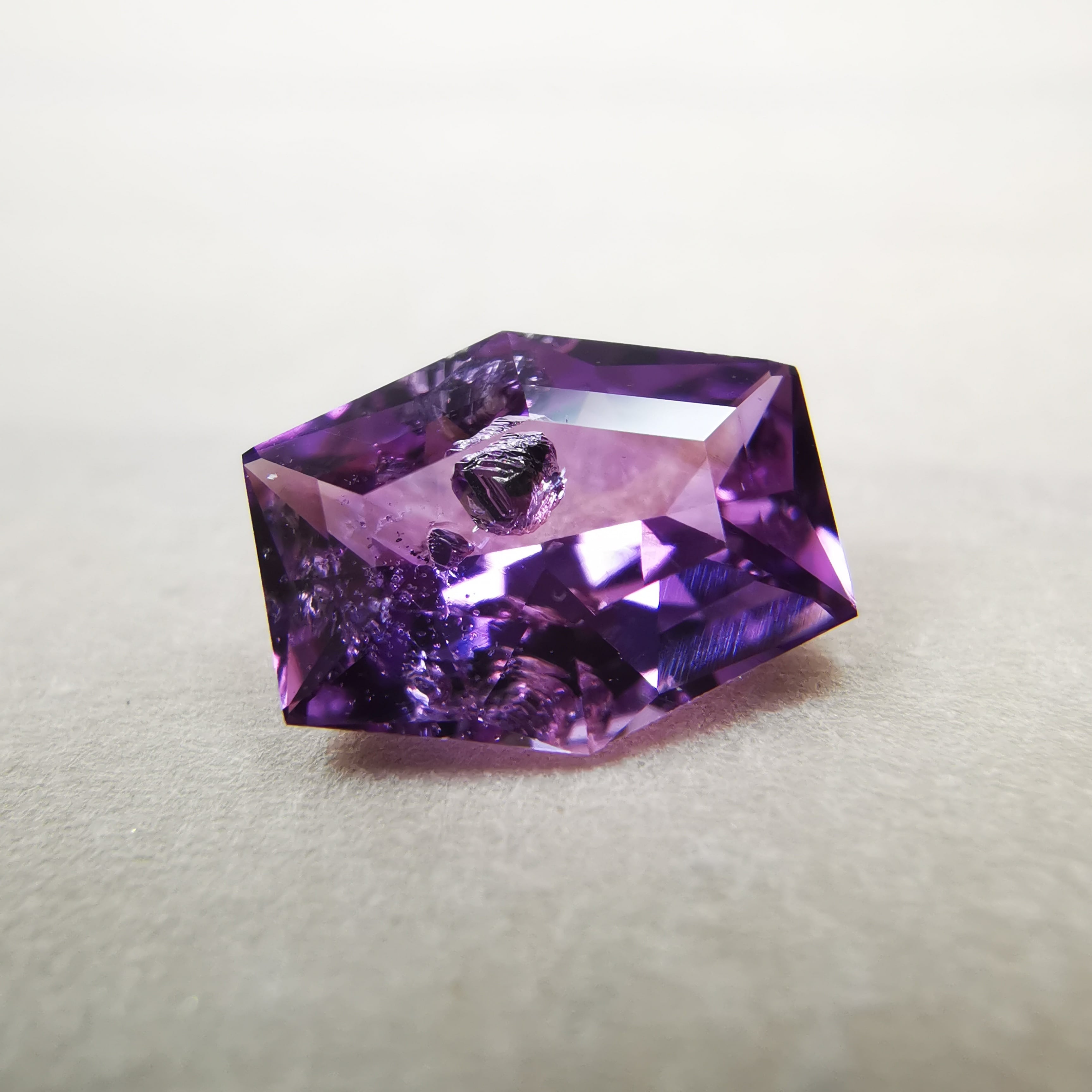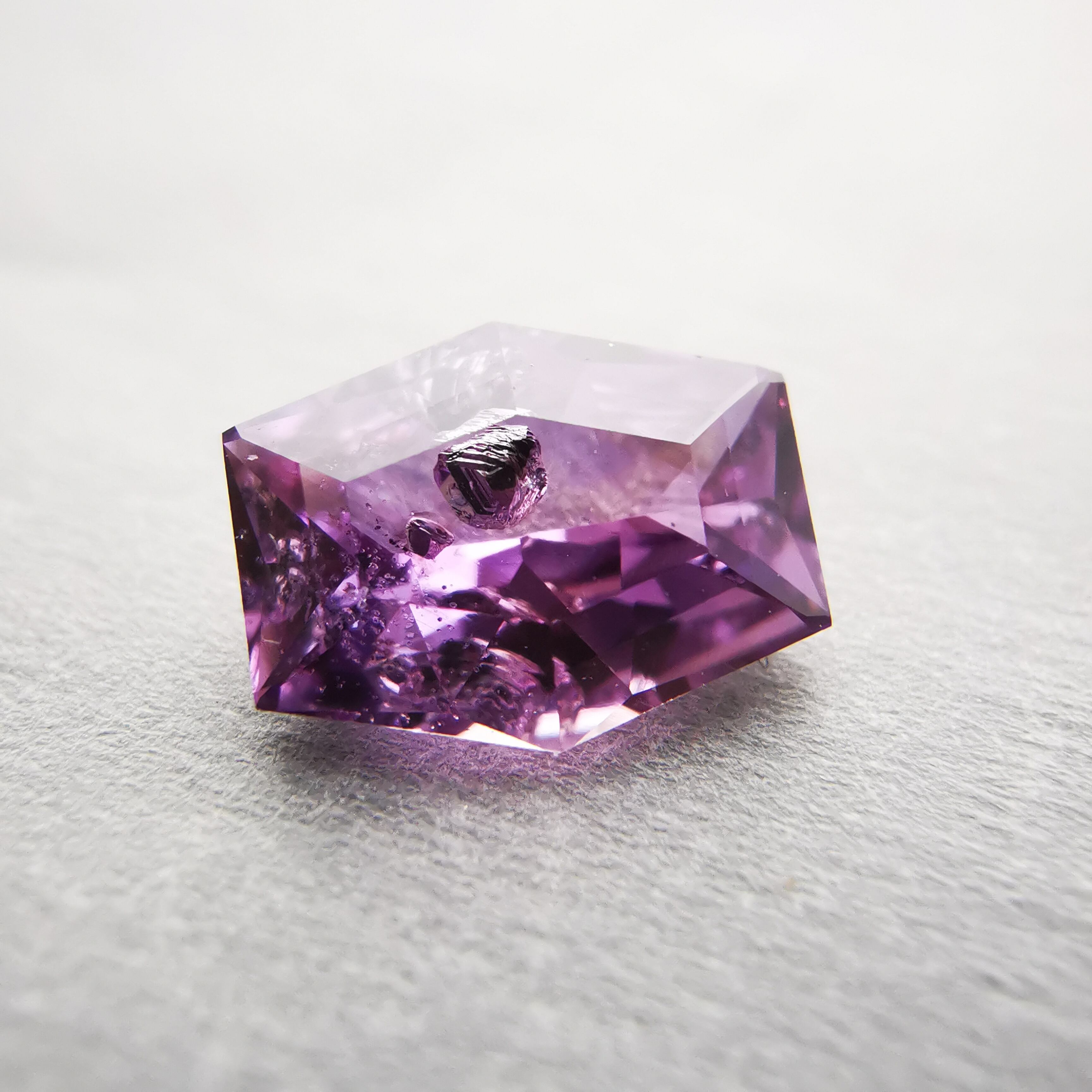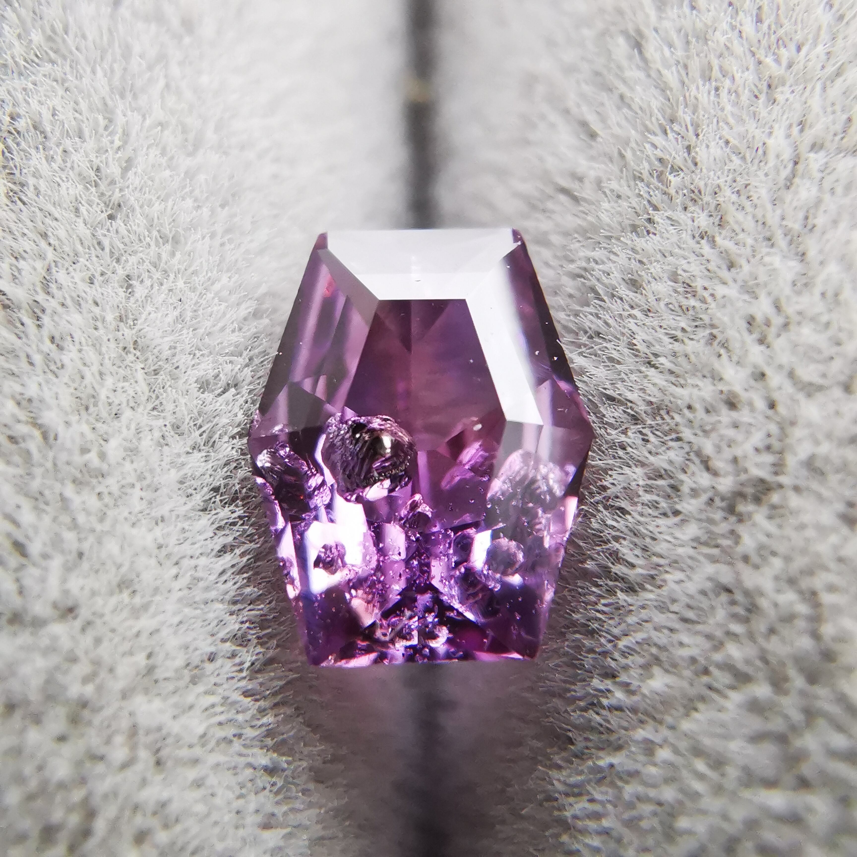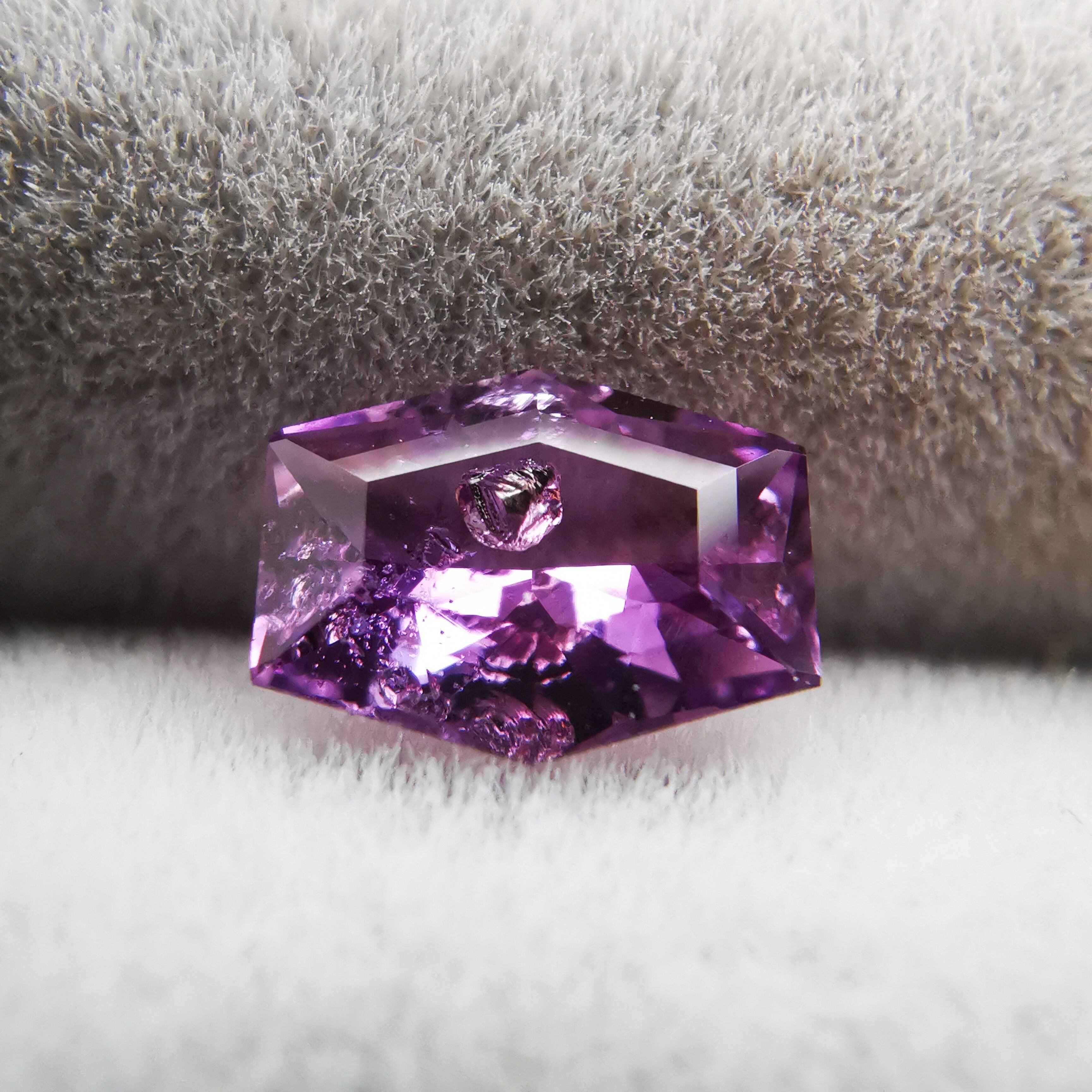 クリーンなパープルピンクと、内部で乱反射し、湧き上がるように見えるインクルージョンの力強い印象が、強烈なコントラストとなり、魅了される一石です。