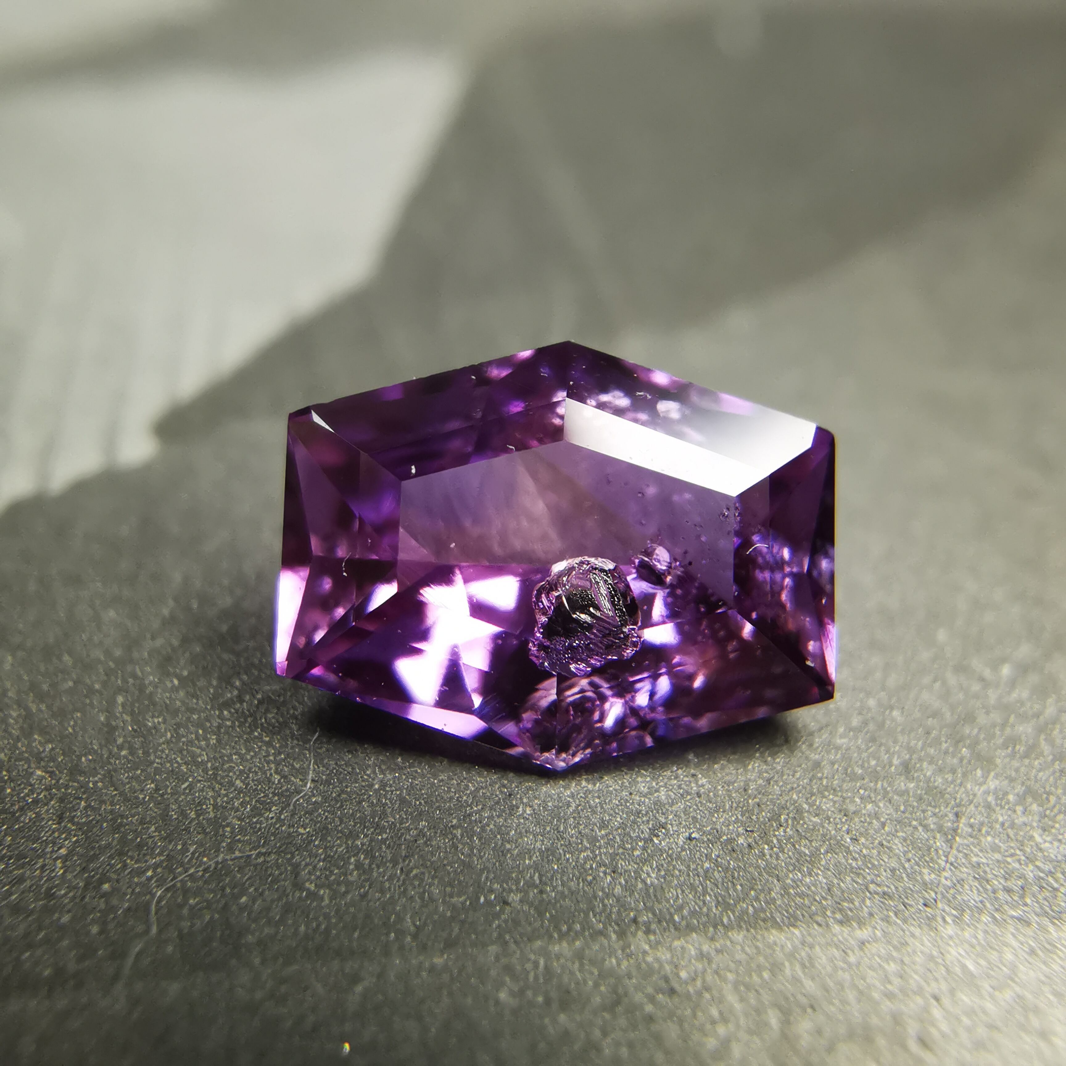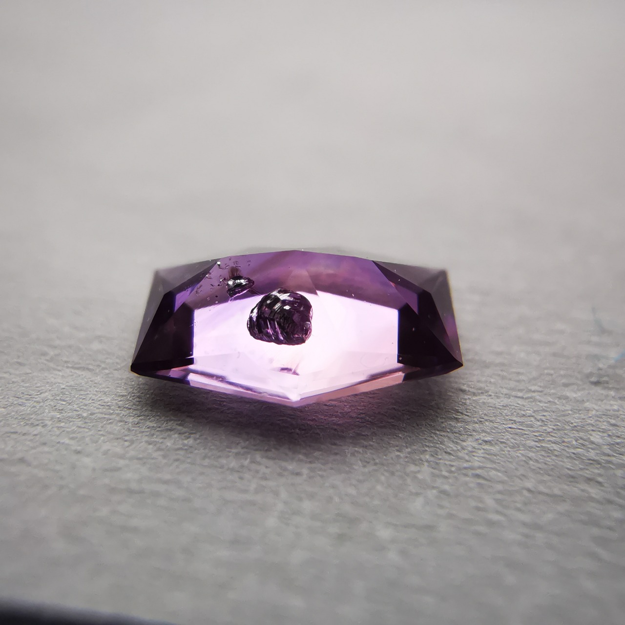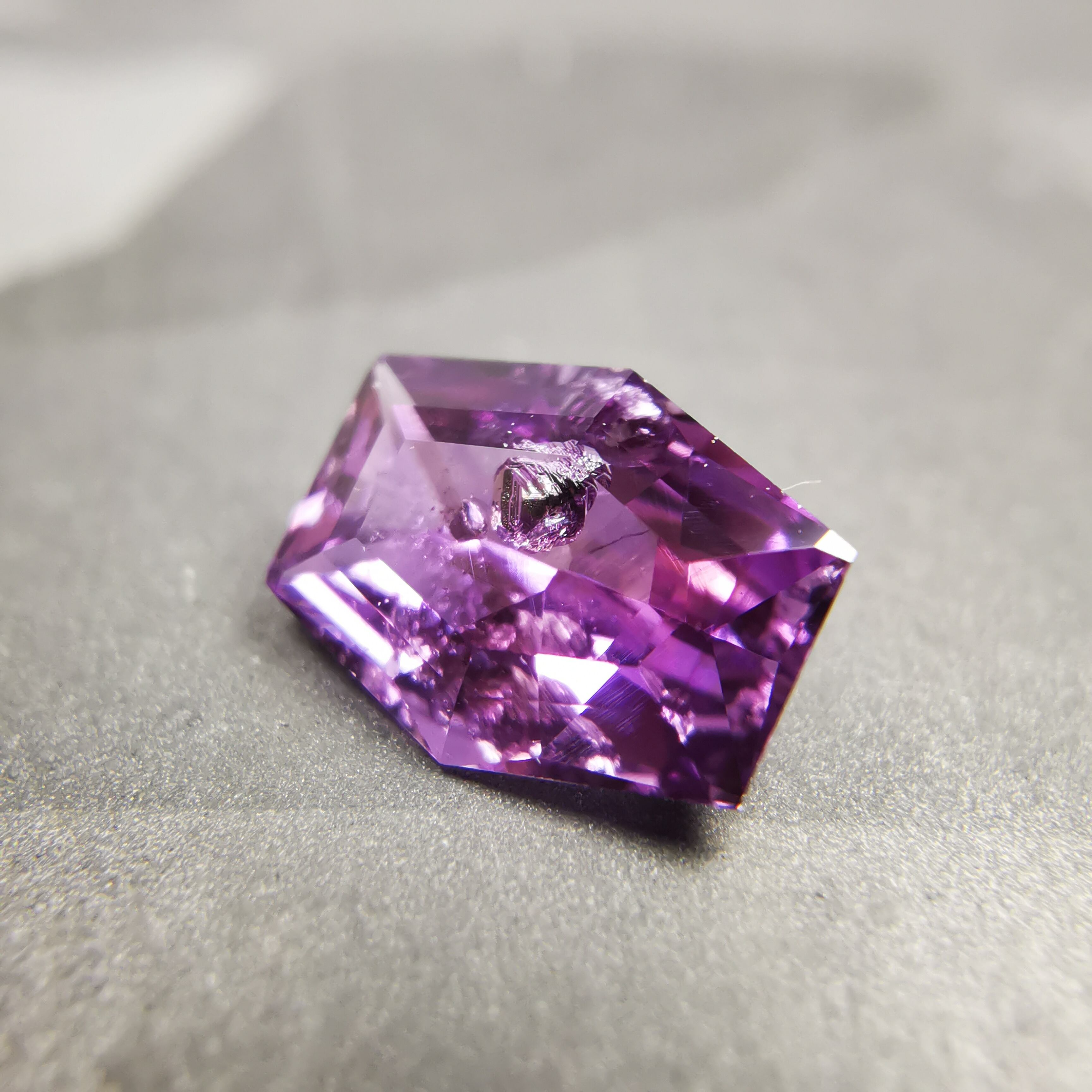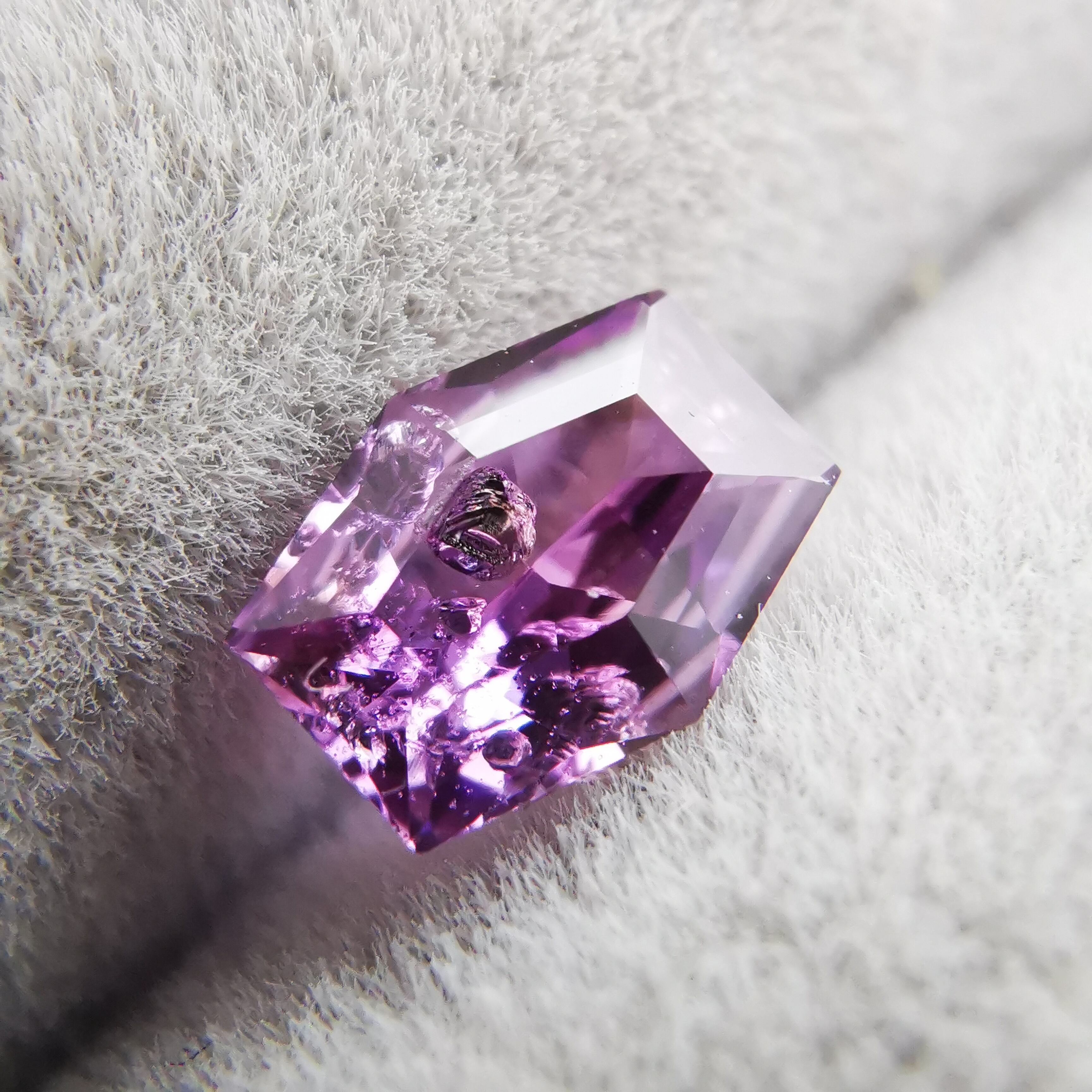 クリーンなパープルピンクと、内部で乱反射し、湧き上がるように見えるインクルージョンの力強い印象が、強烈なコントラストとなり、魅了される一石です。