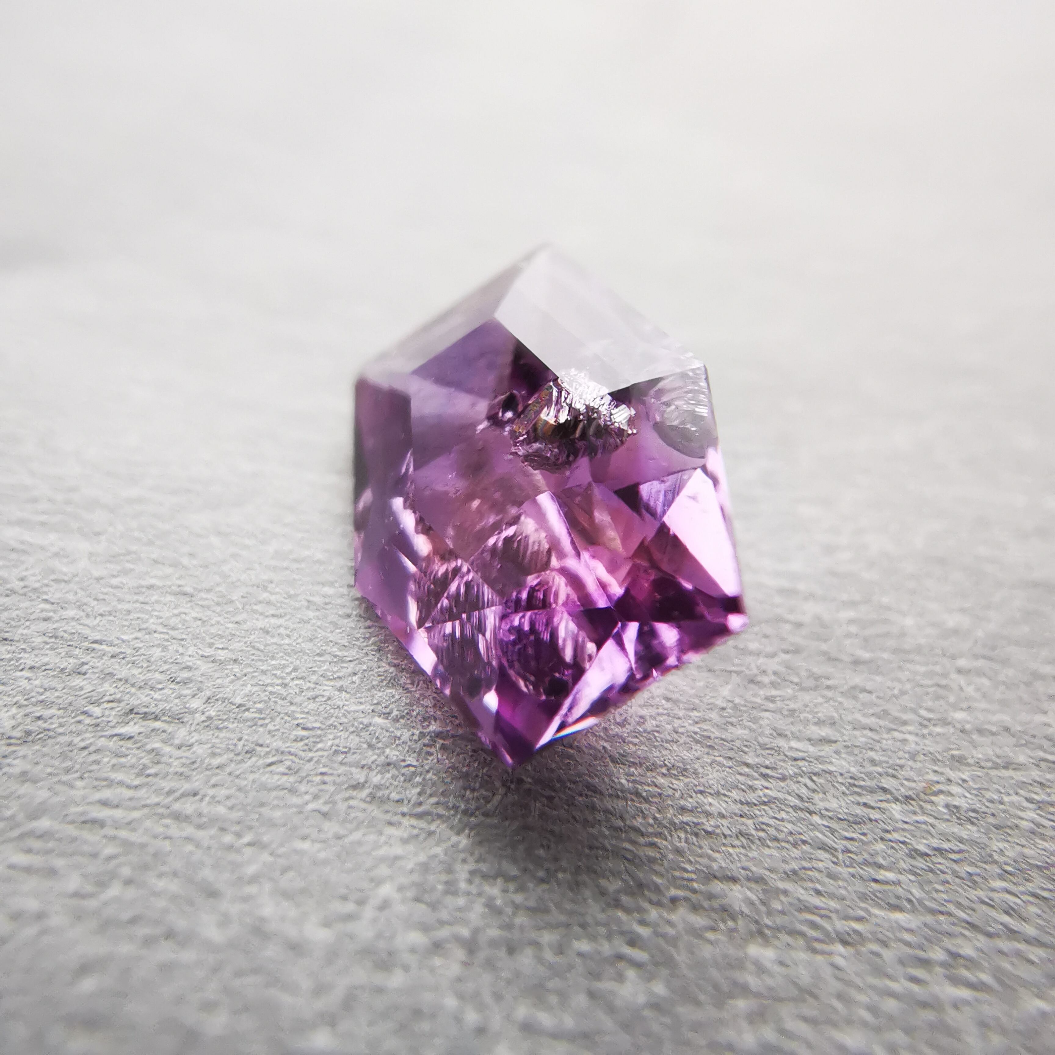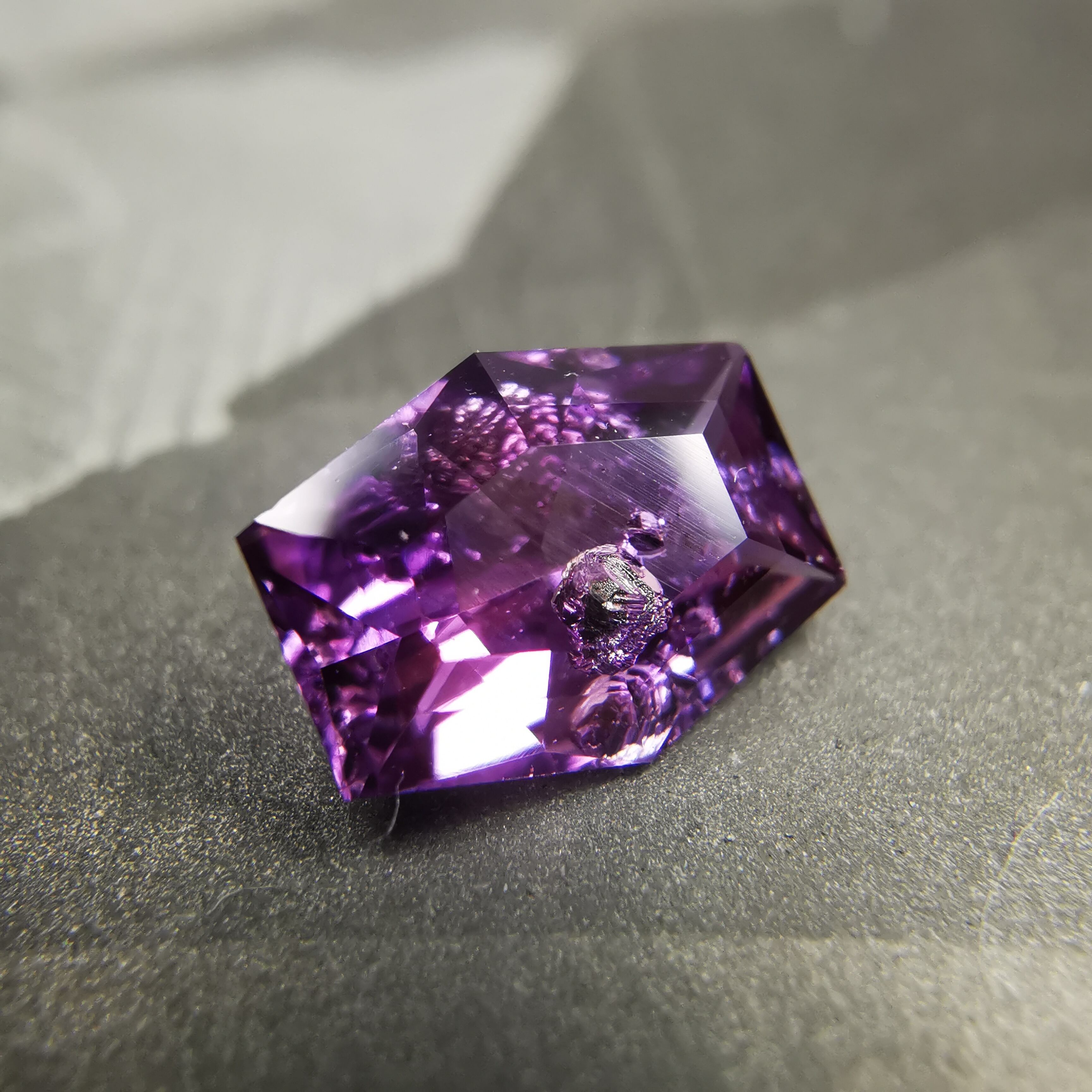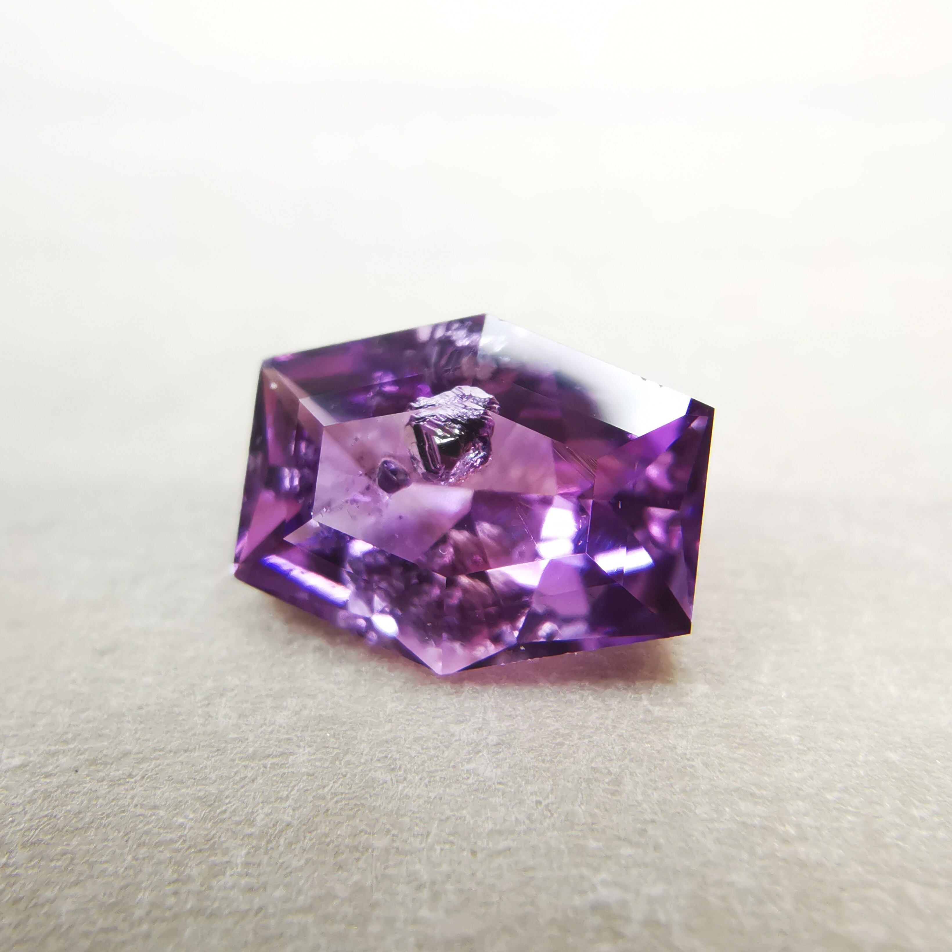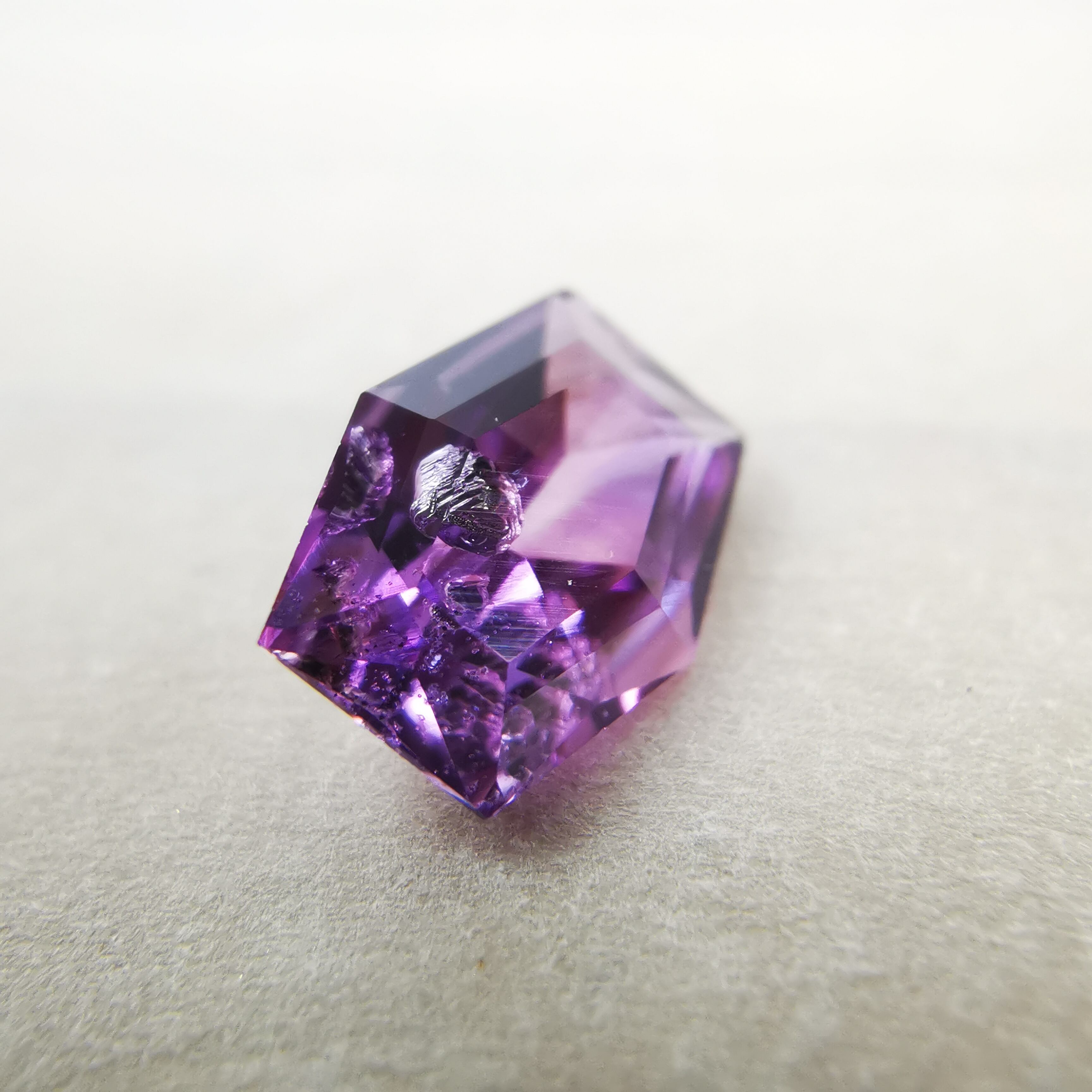 クリーンなパープルピンクと、内部で乱反射し、湧き上がるように見えるインクルージョンの力強い印象が、強烈なコントラストとなり、魅了される一石です。