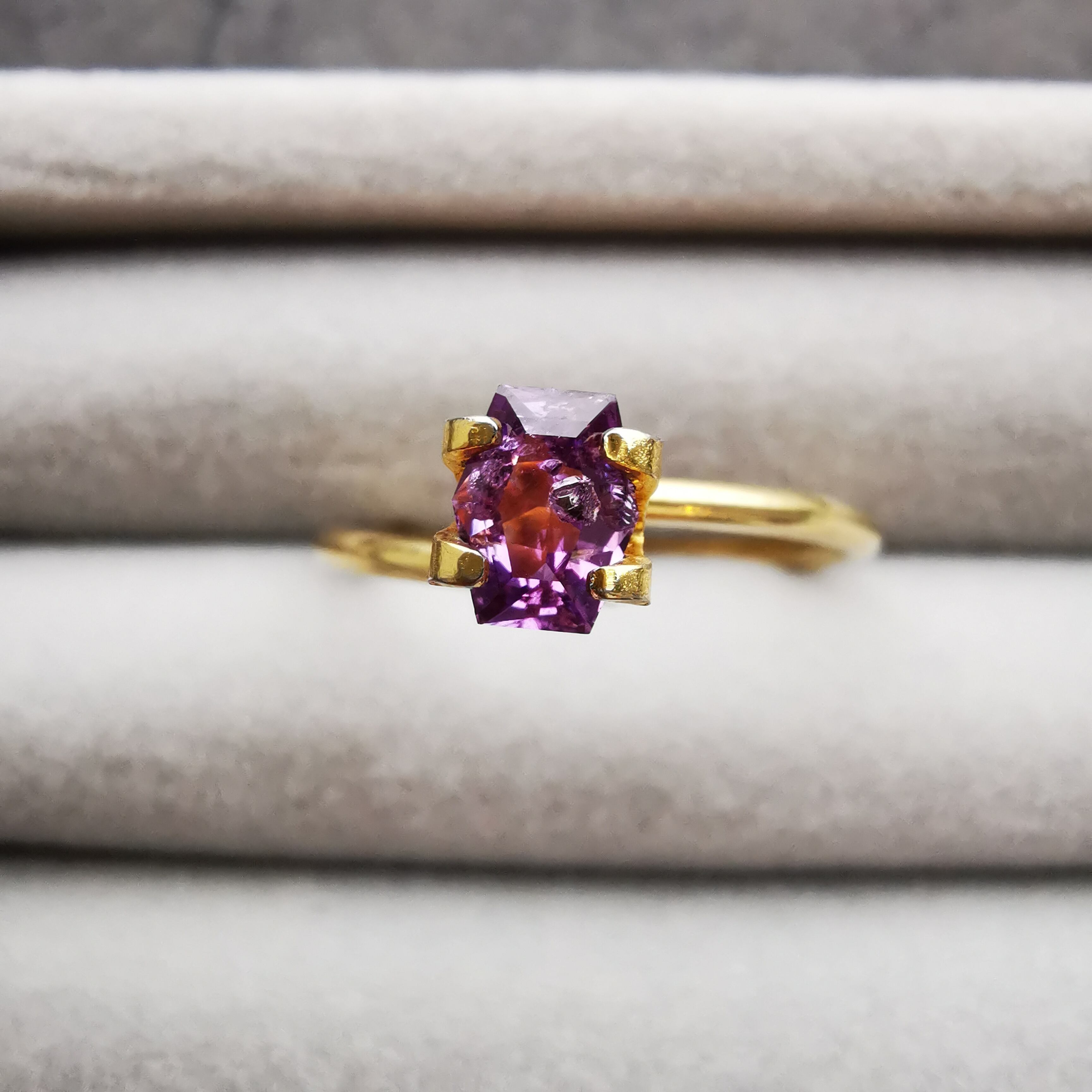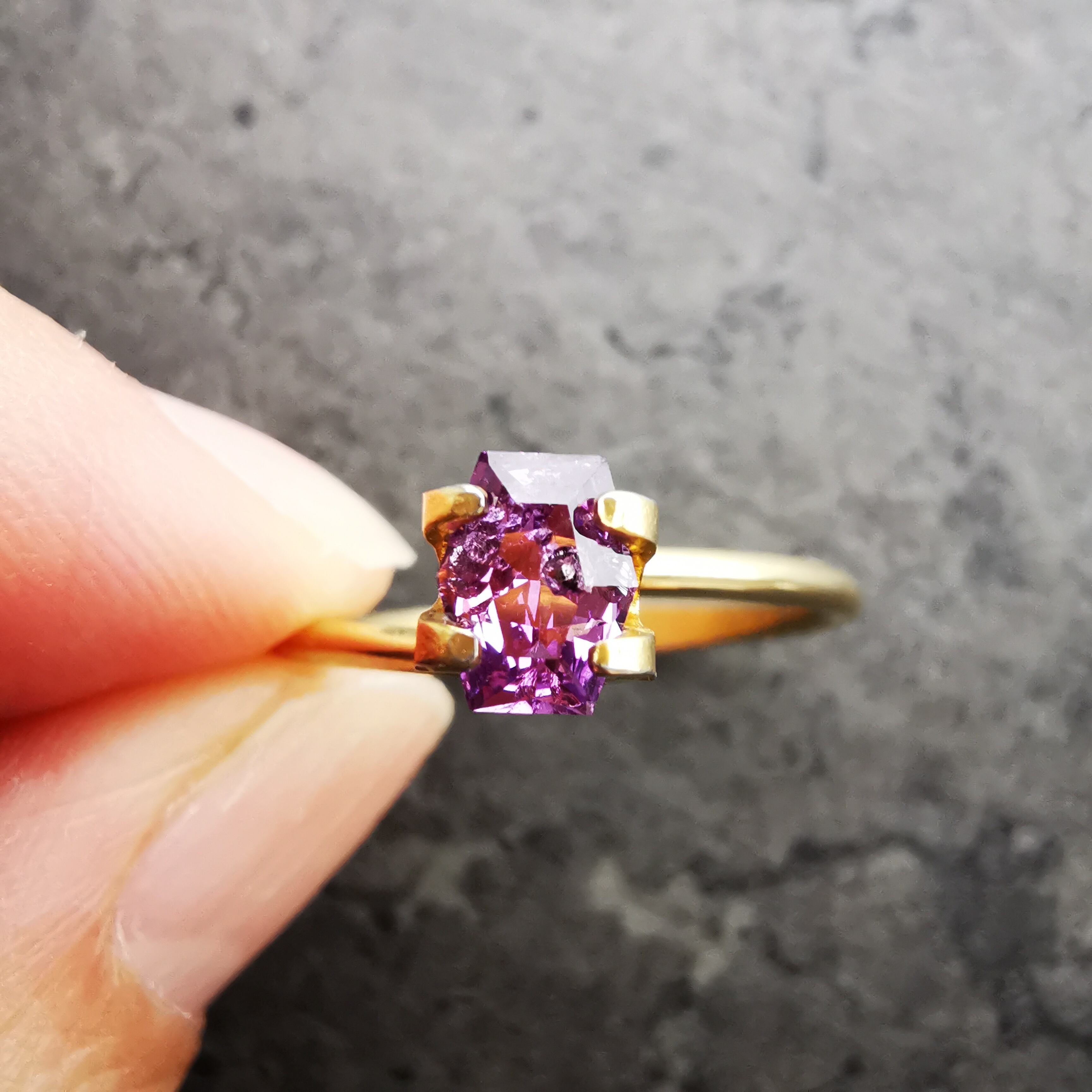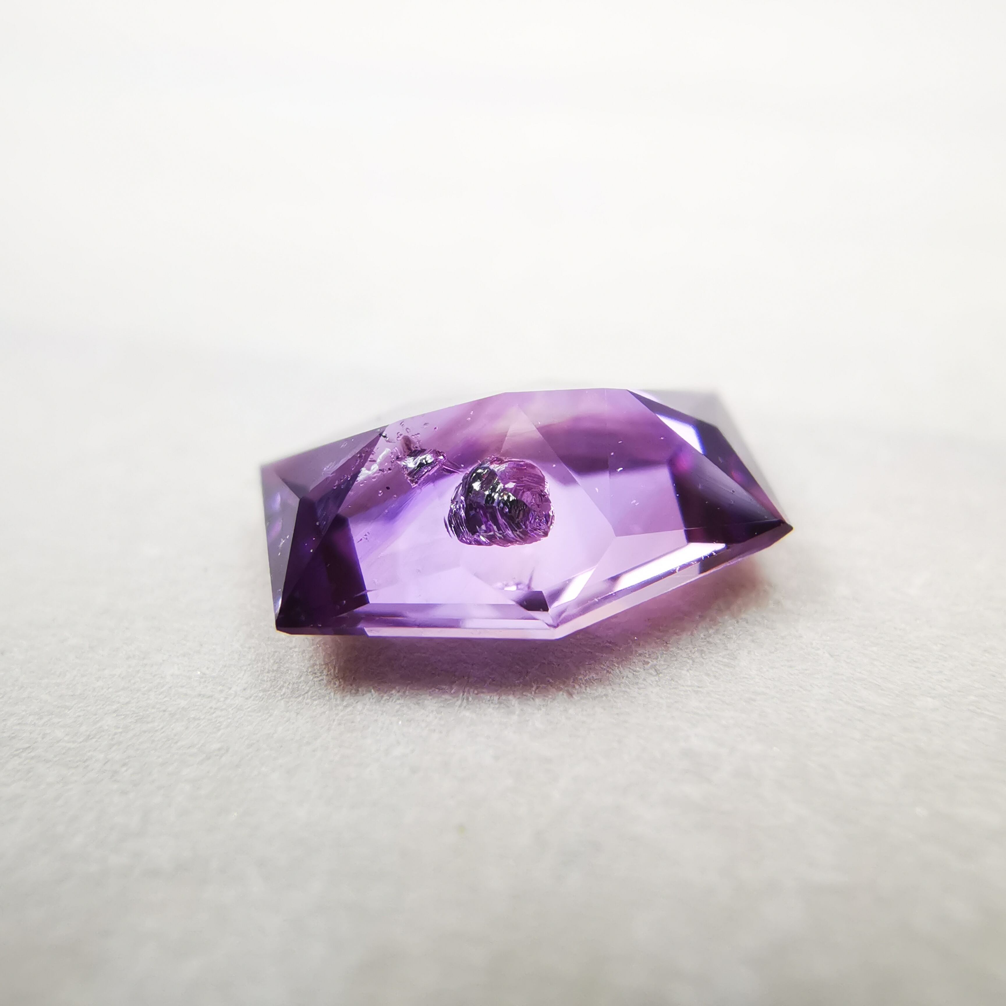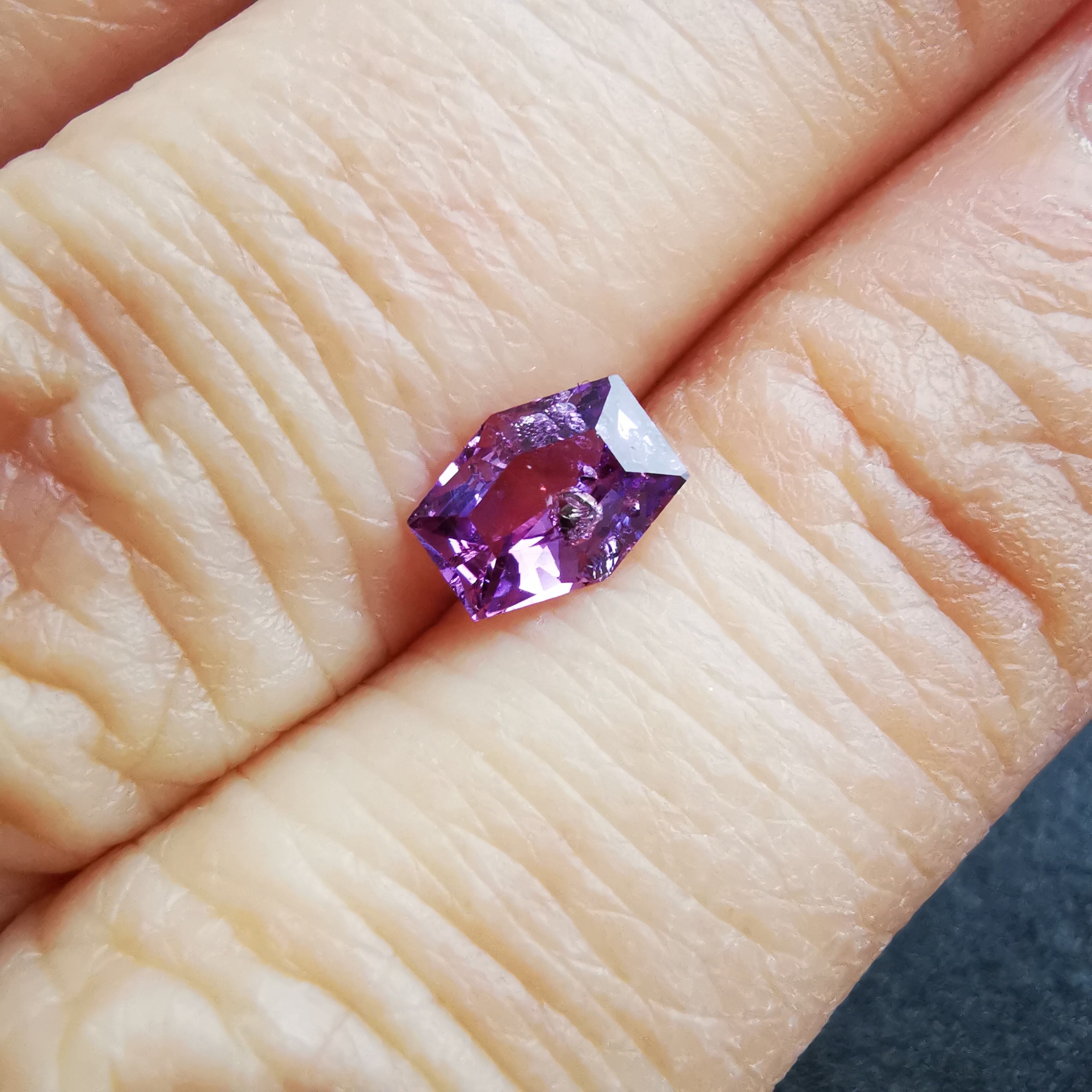 クリーンなパープルピンクと、内部で乱反射し、湧き上がるように見えるインクルージョンの力強い印象が、強烈なコントラストとなり、魅了される一石です。