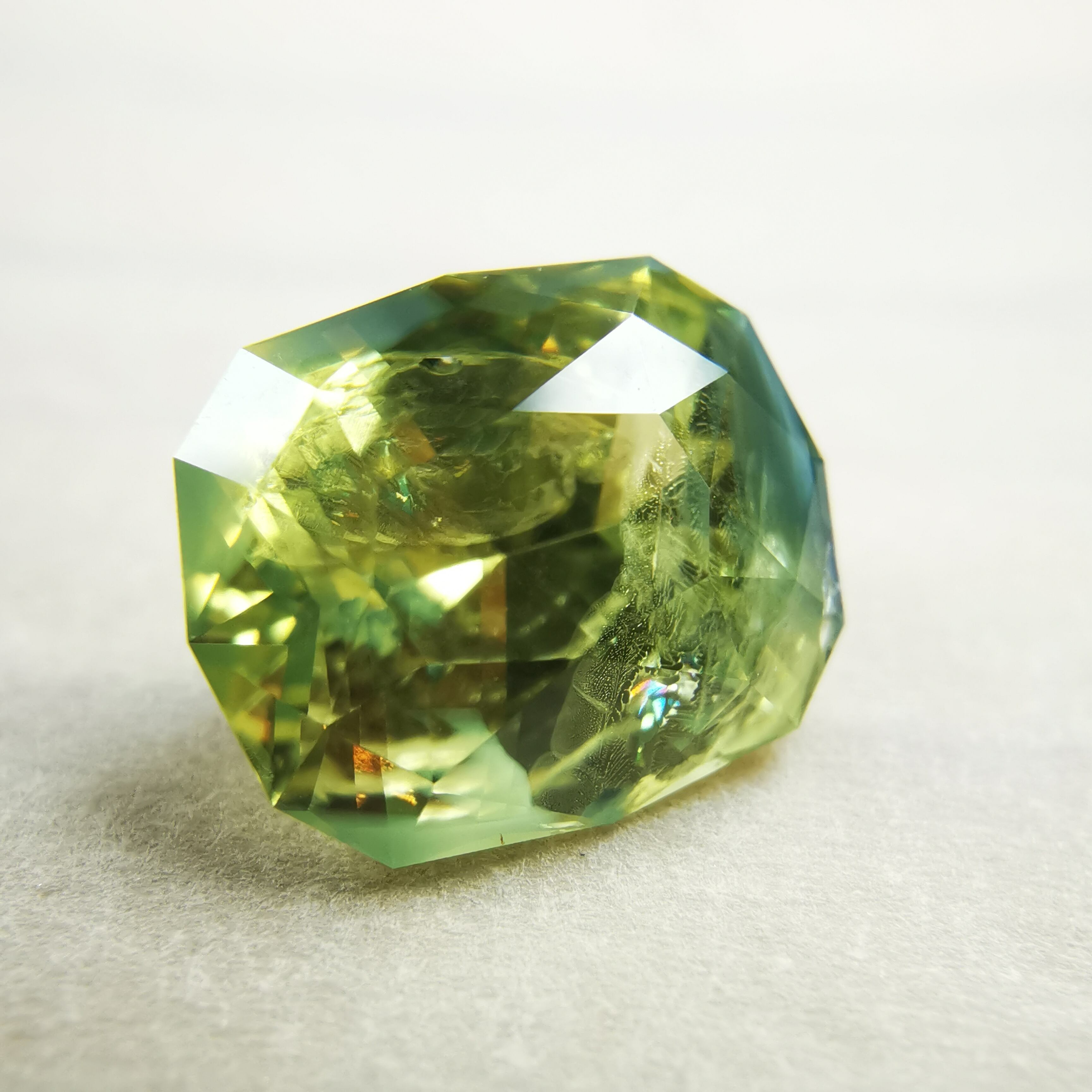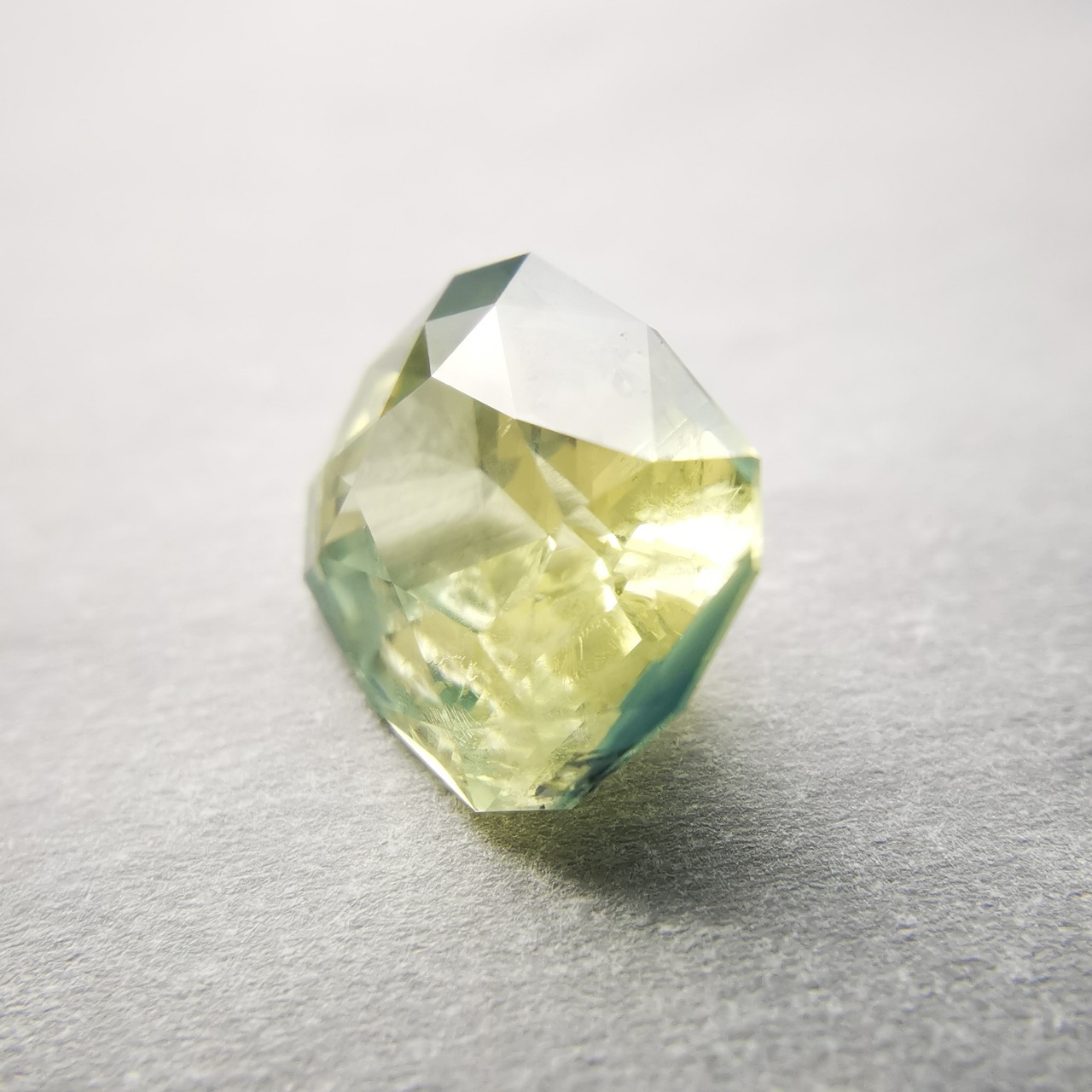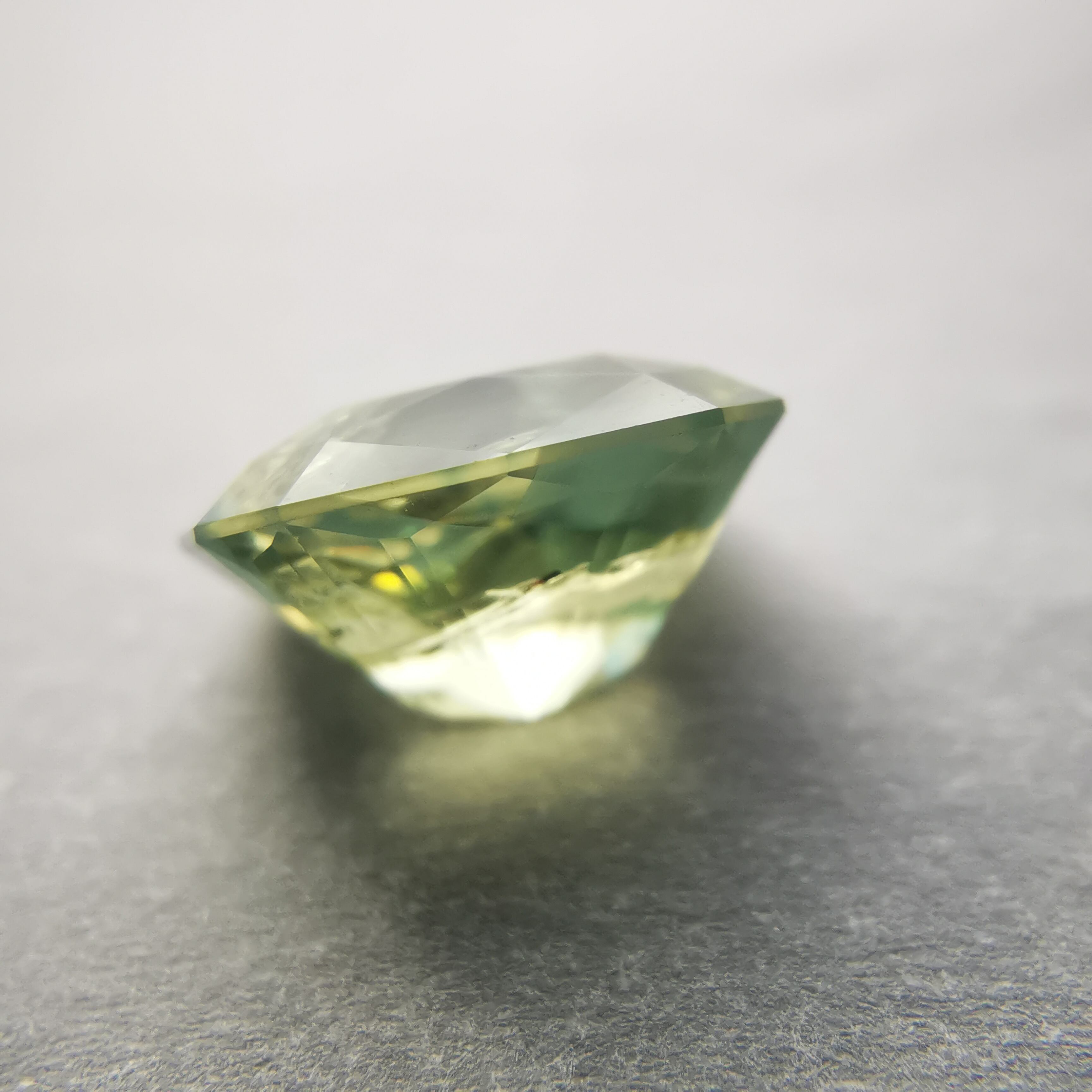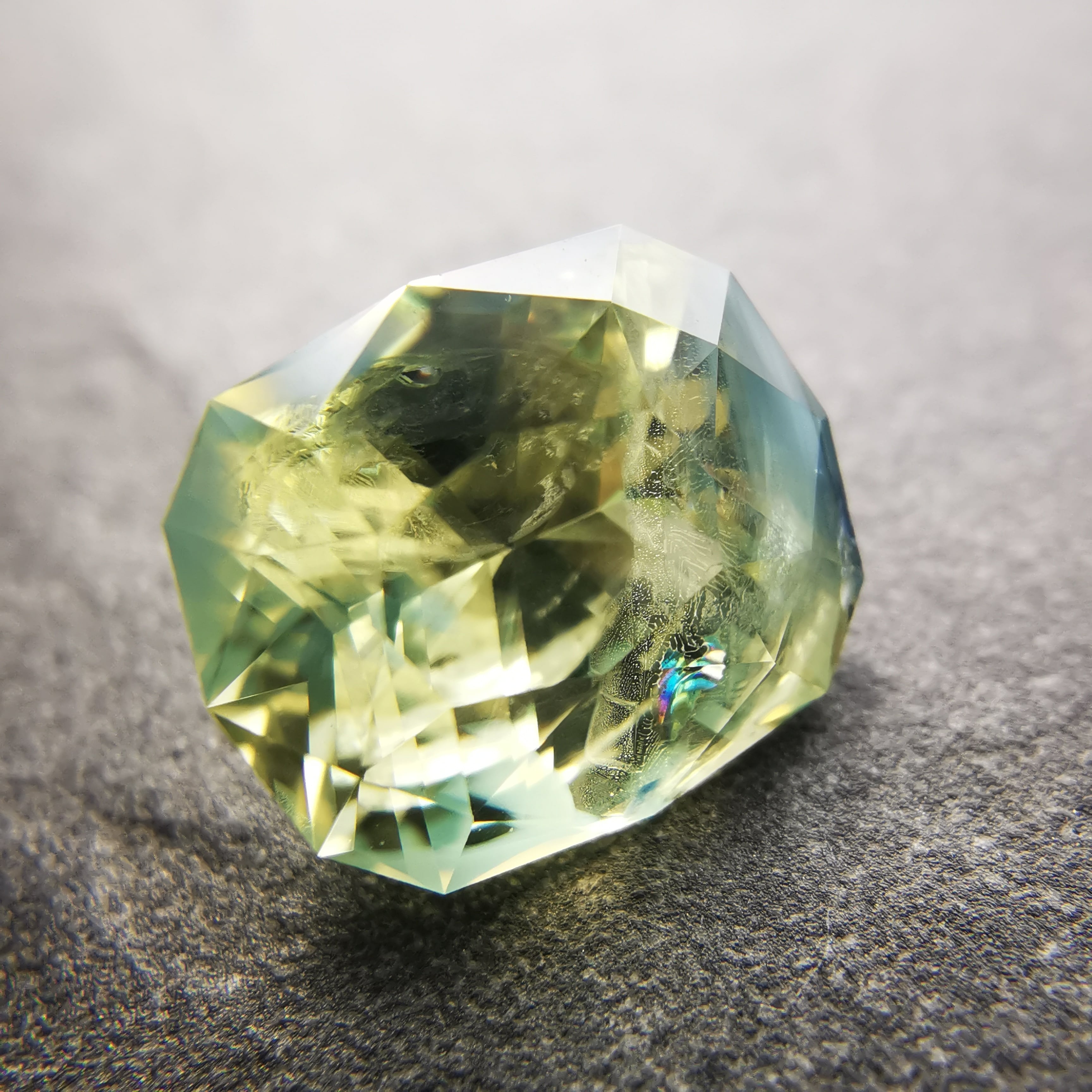 クリソベリルのような黄色、ミルキーな青磁色もクリソベリルに見られる色ですが、その二つが同居して一石で楽しむことが出来るのは、サファイアならではの魅力です。