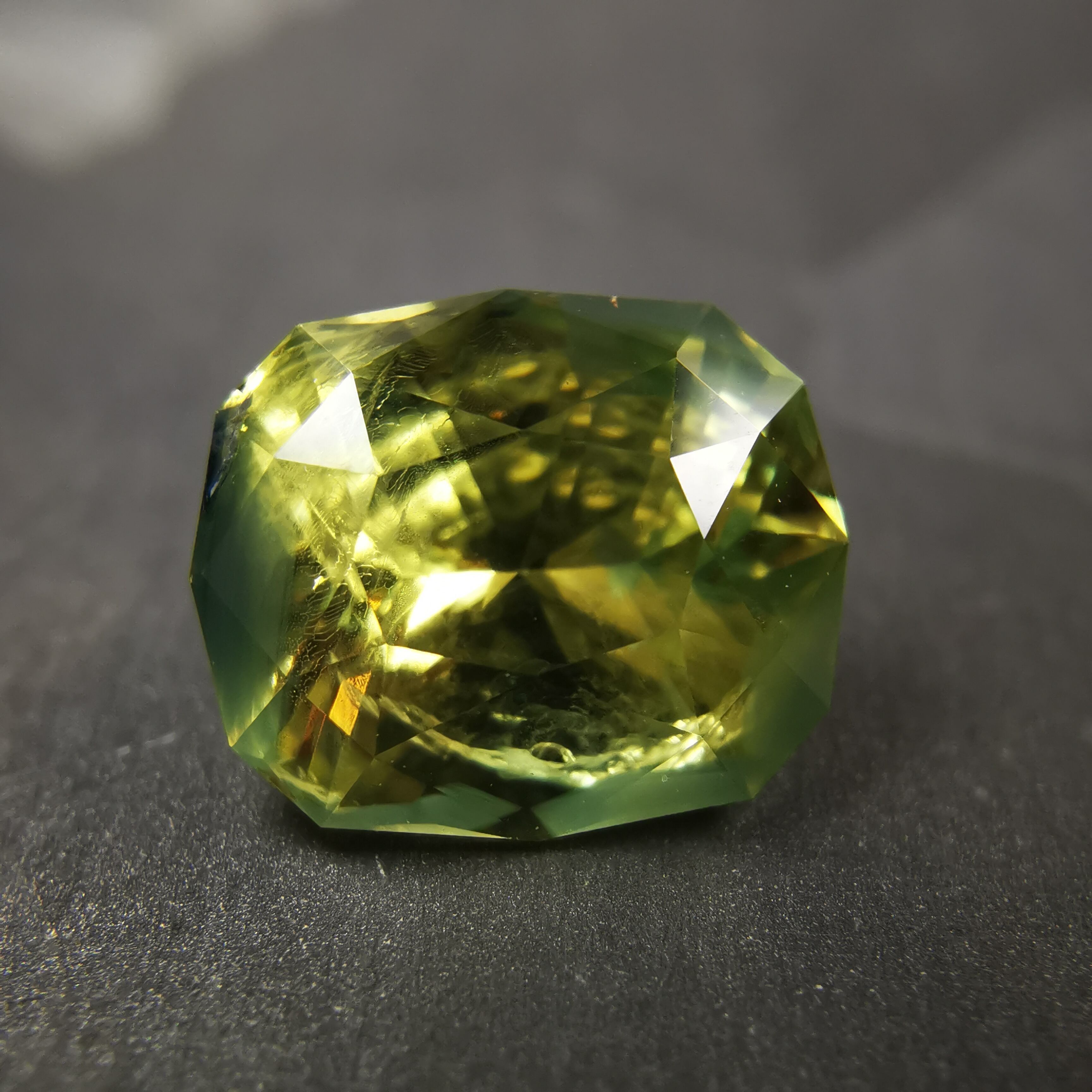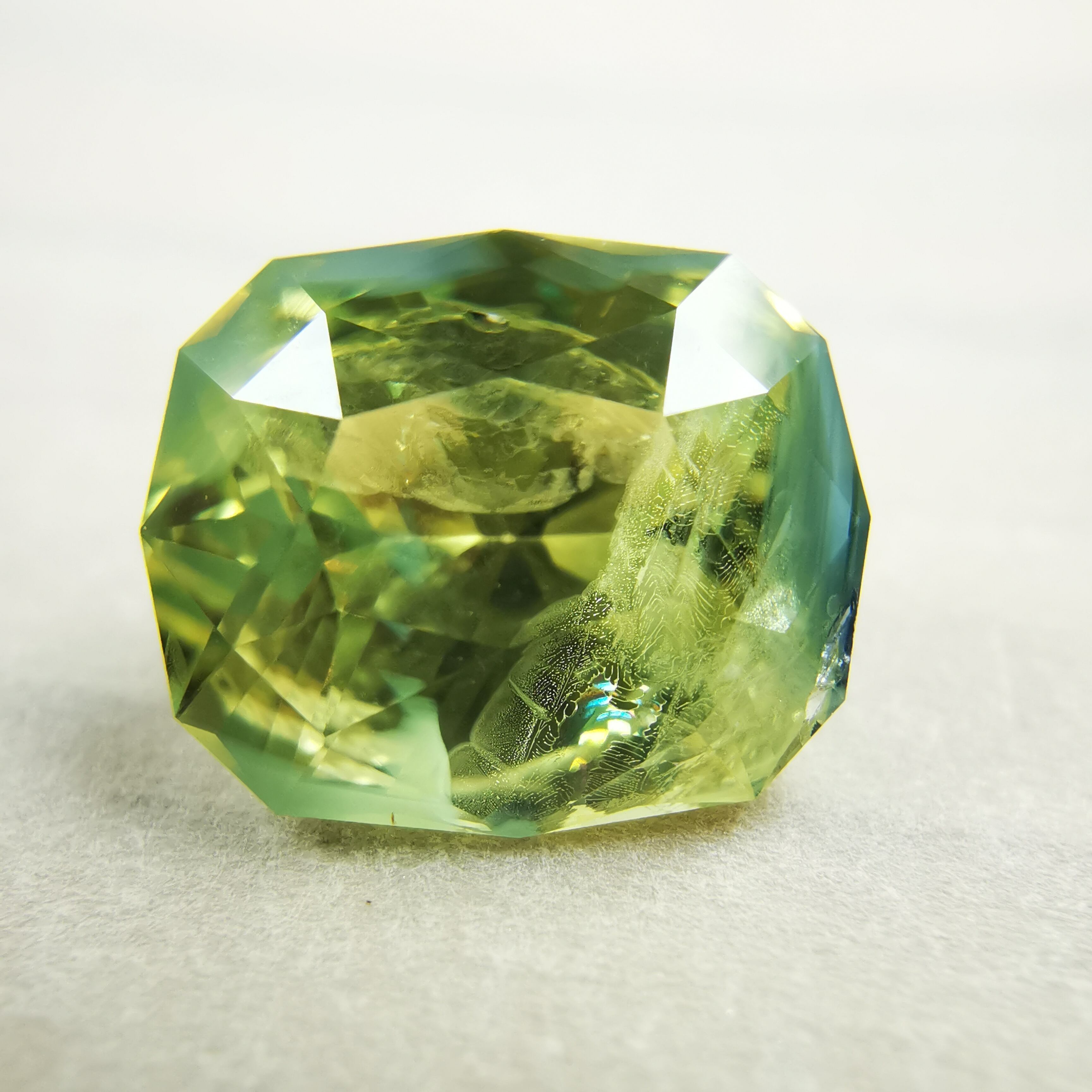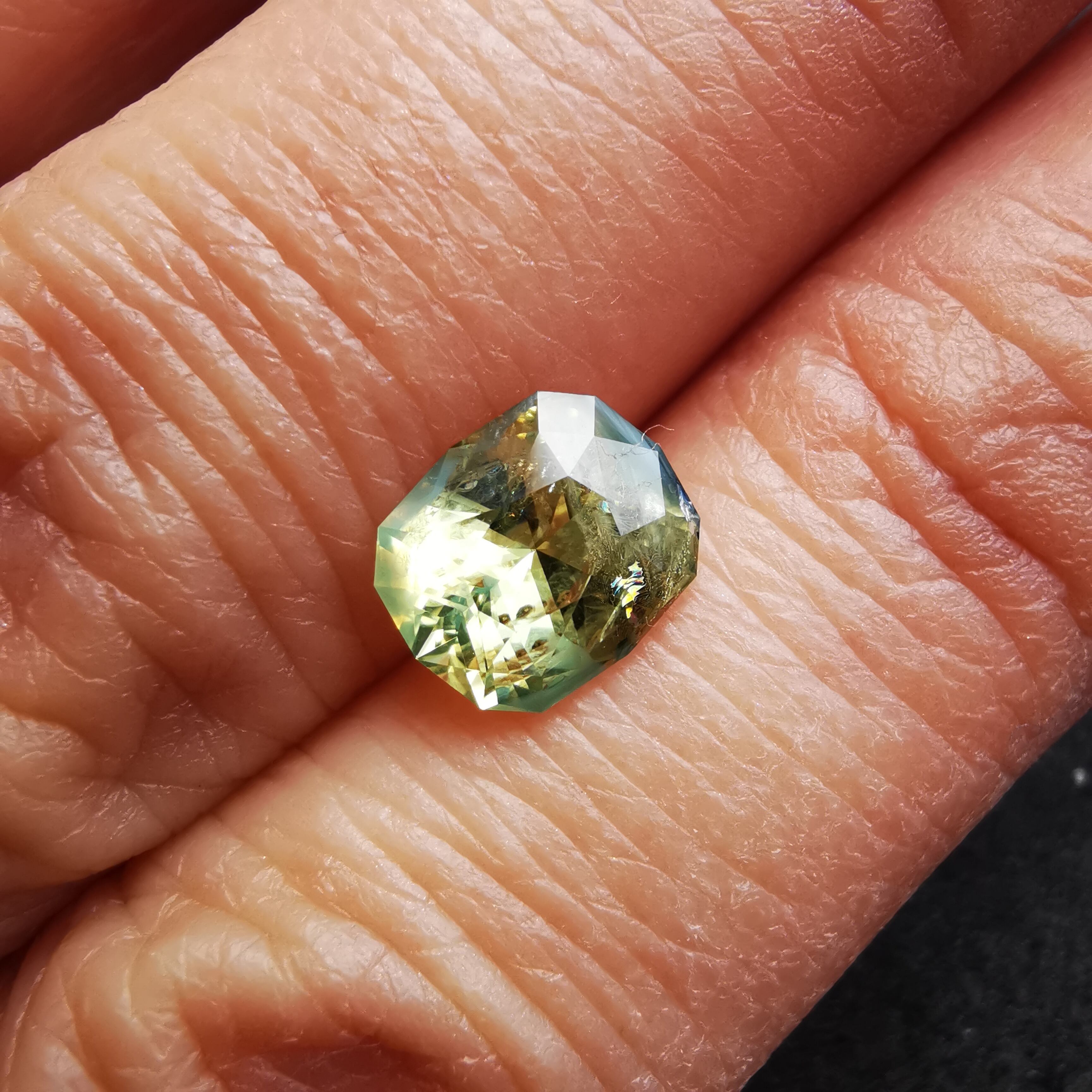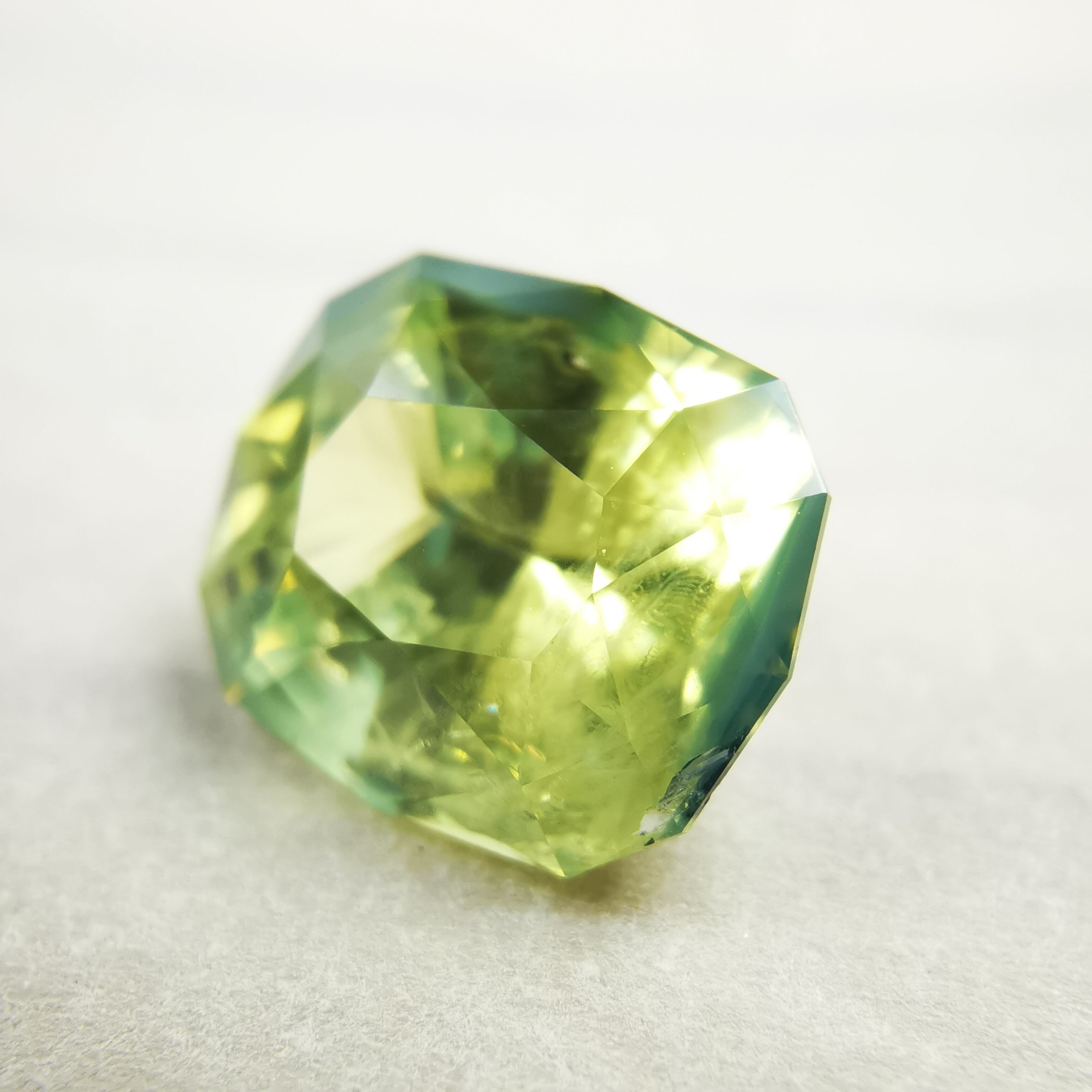クリソベリルのような黄色、ミルキーな青磁色もクリソベリルに見られる色ですが、その二つが同居して一石で楽しむことが出来るのは、サファイアならではの魅力です。