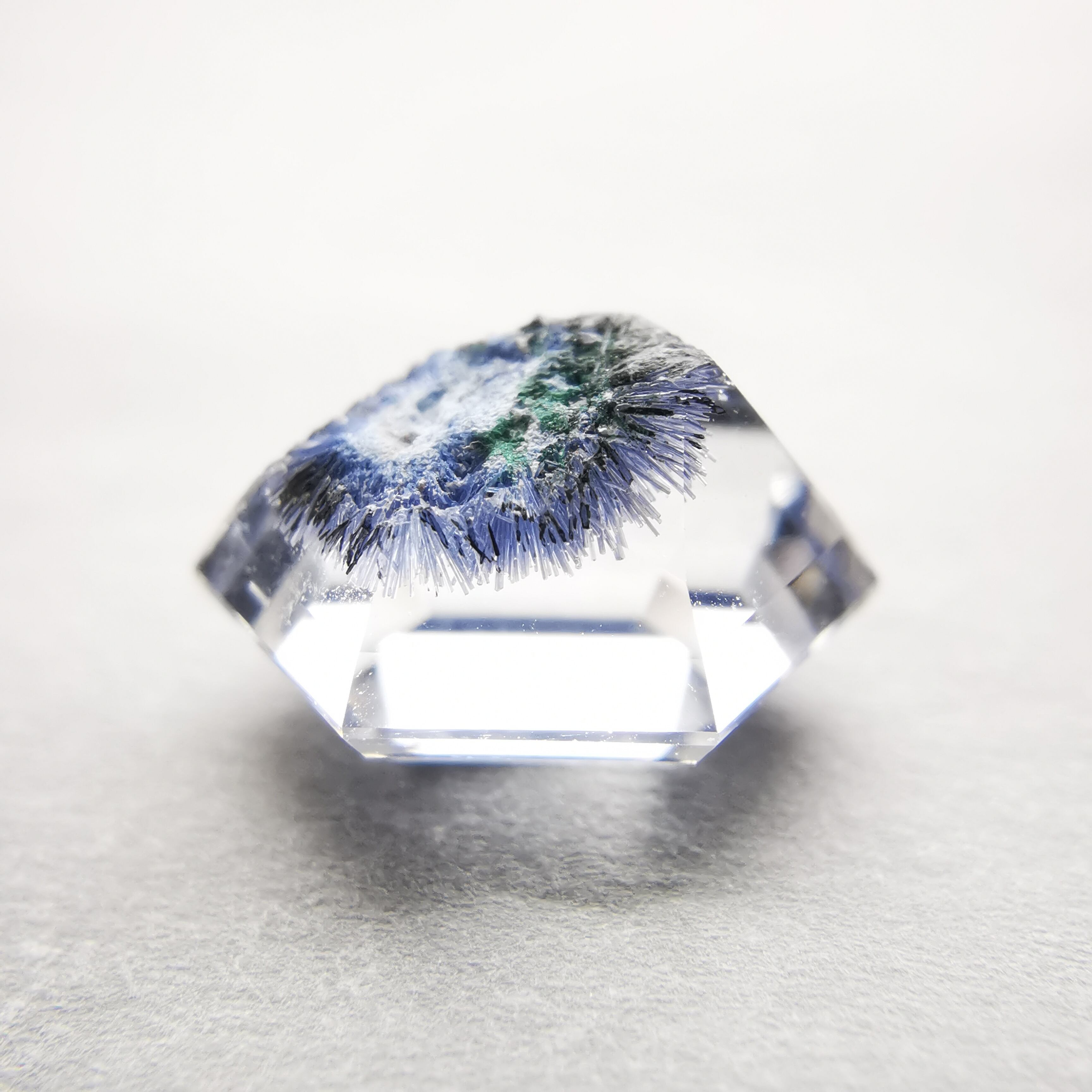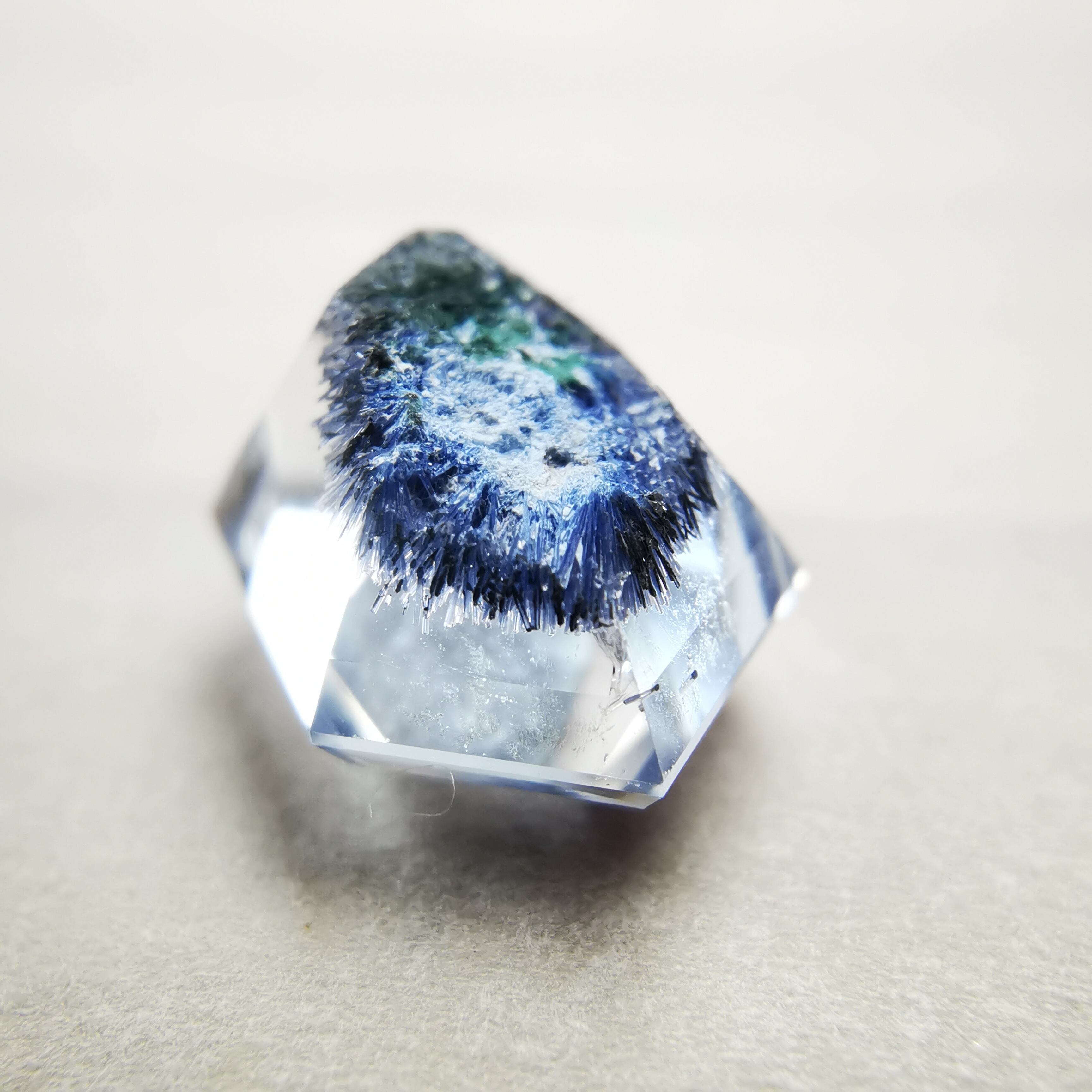 クォーツがとてもクリアなので、デュモルチェライトの結晶1本1本のきらめきと、わさわさとした質感、立体感、その美しいブルーを存分に楽しむことが出来ます。