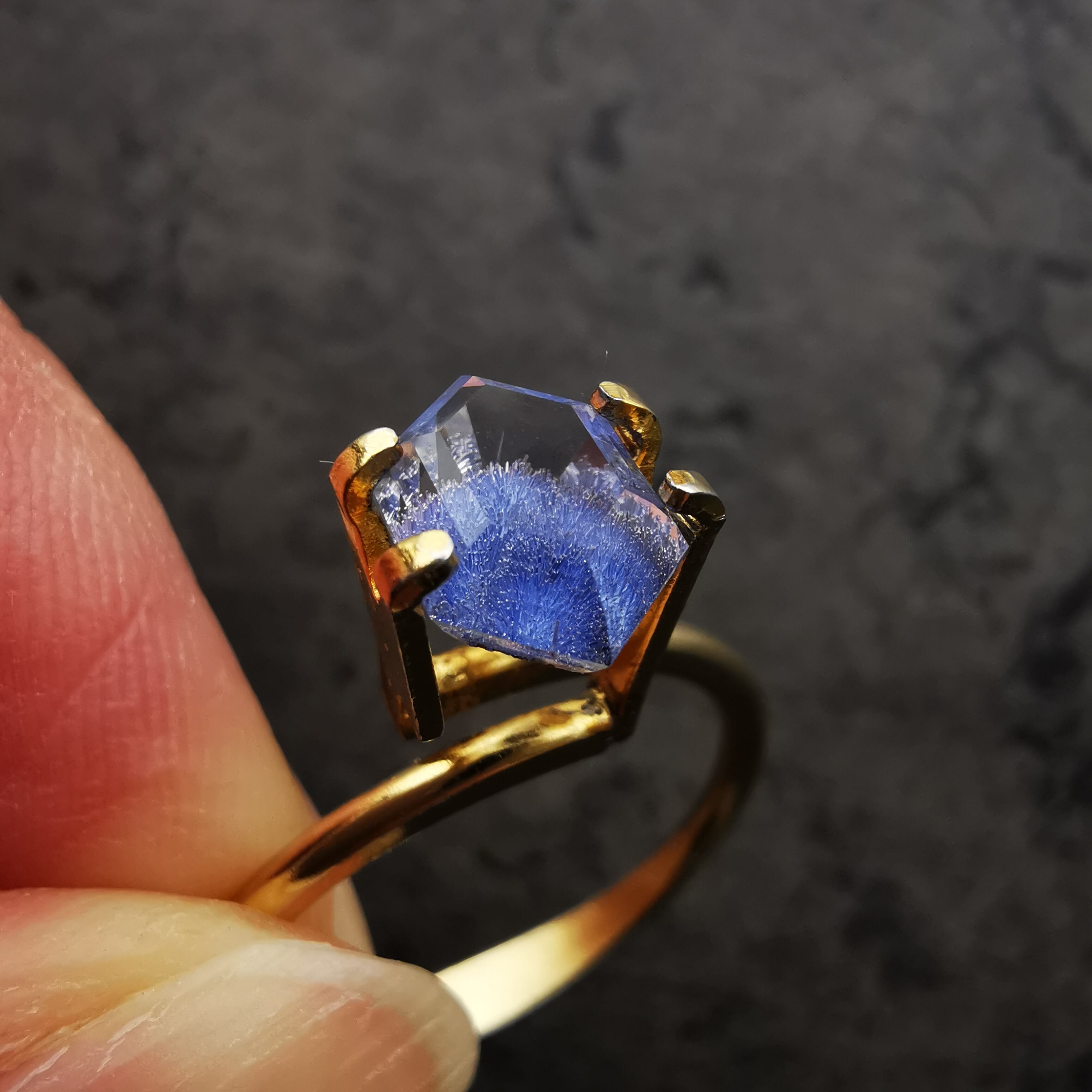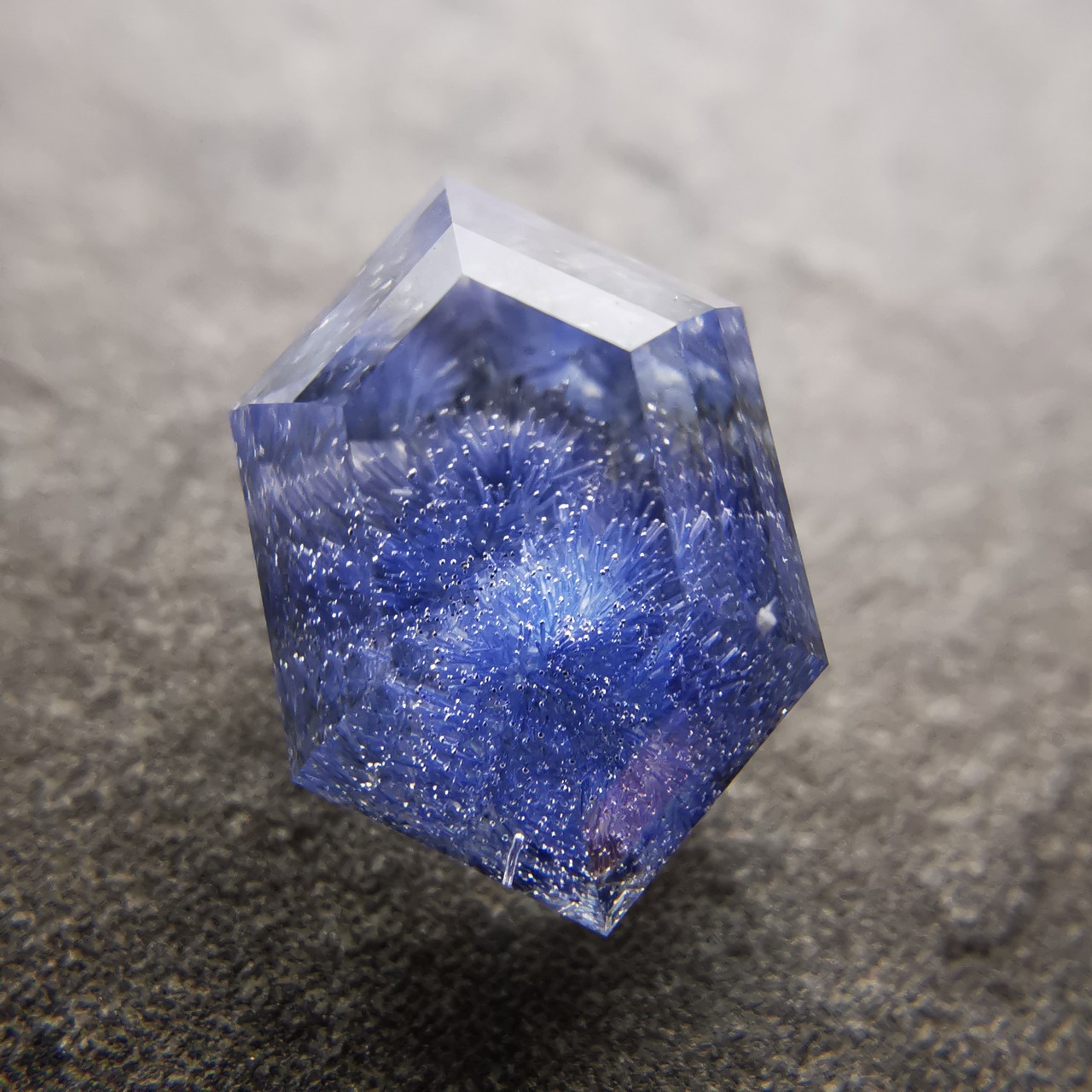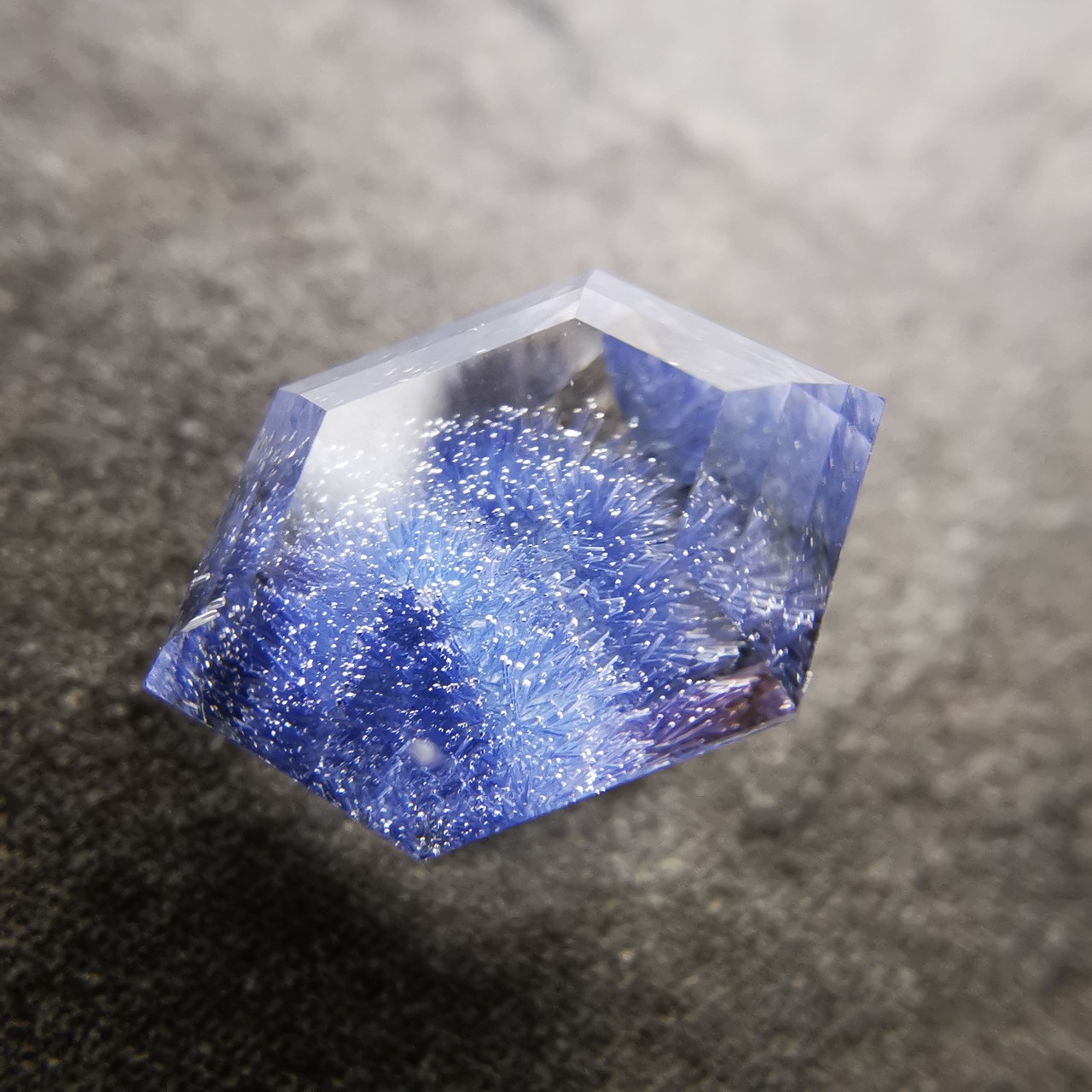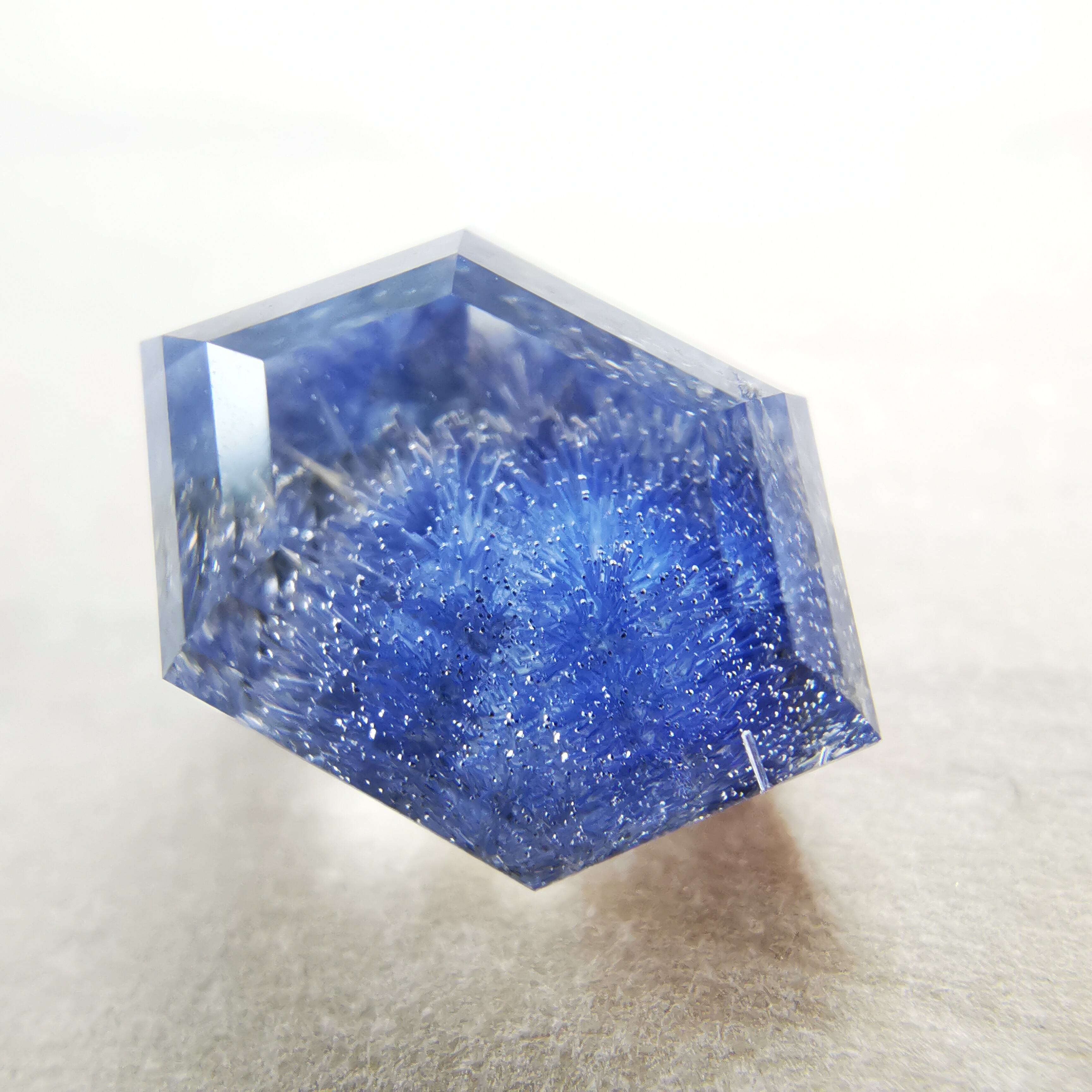石全体に青が広がって見えるように、計算されたカットを施されています。