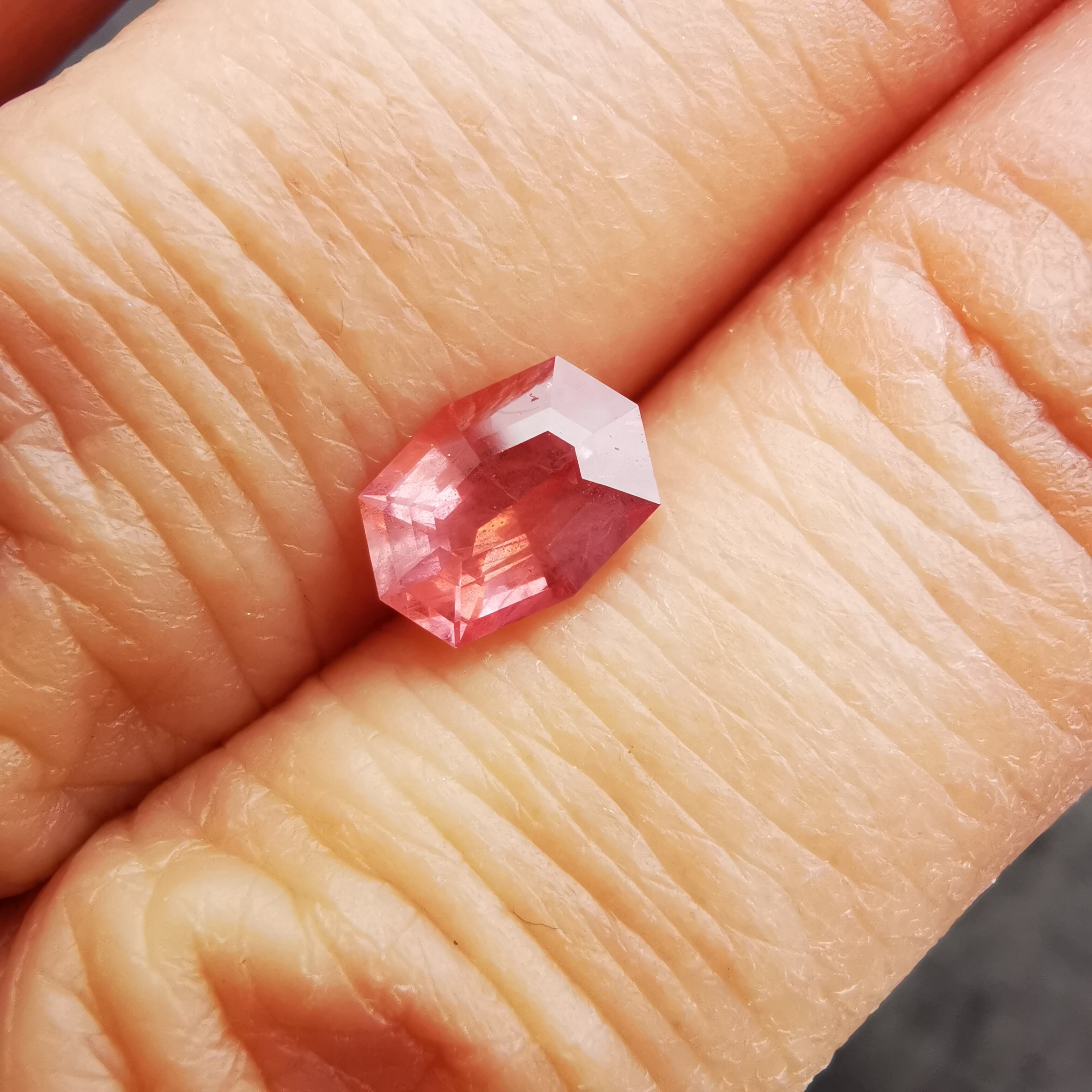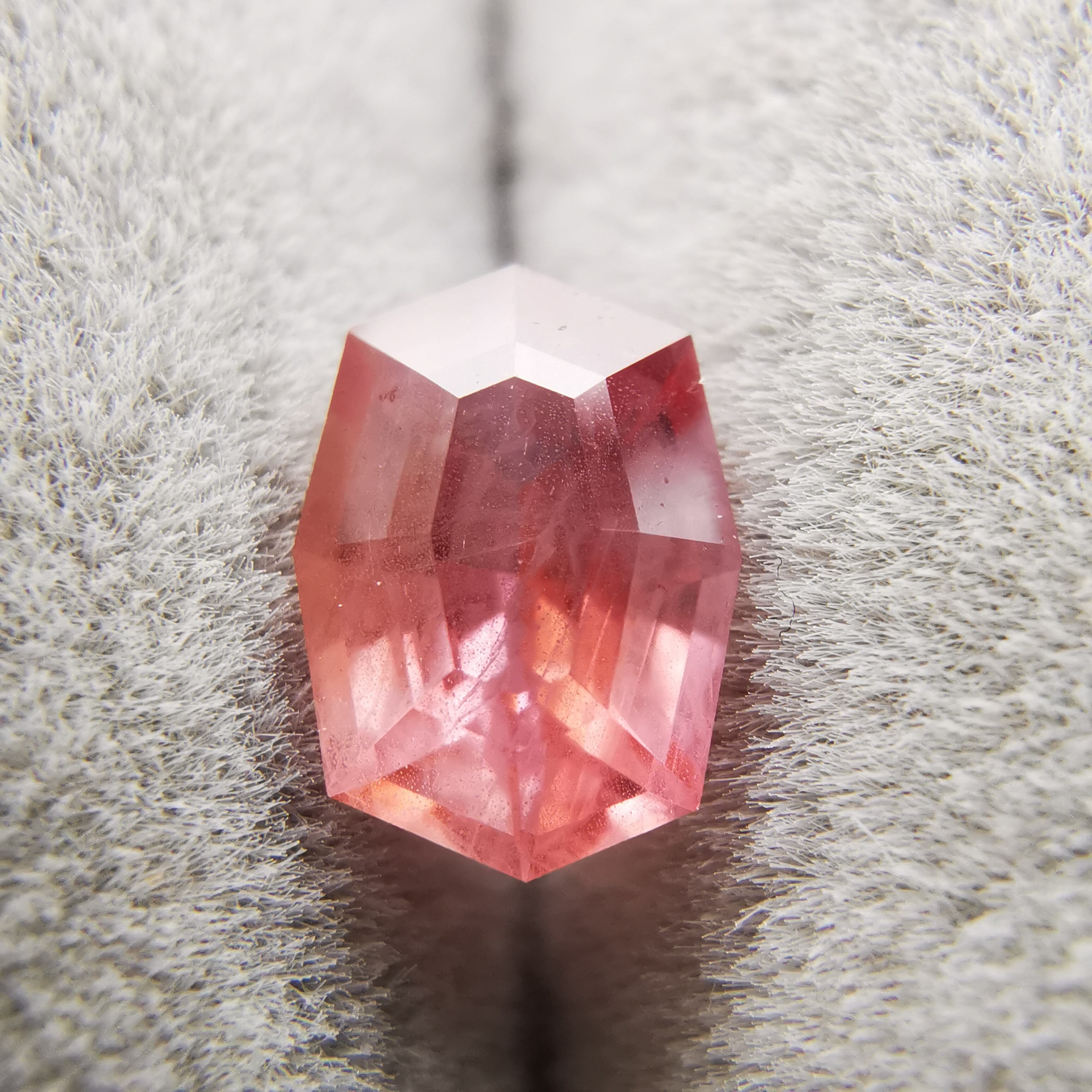 東雲色のサファイア、フィンガープリントインクルージョンがたっぷりと全体に散りばめられています。