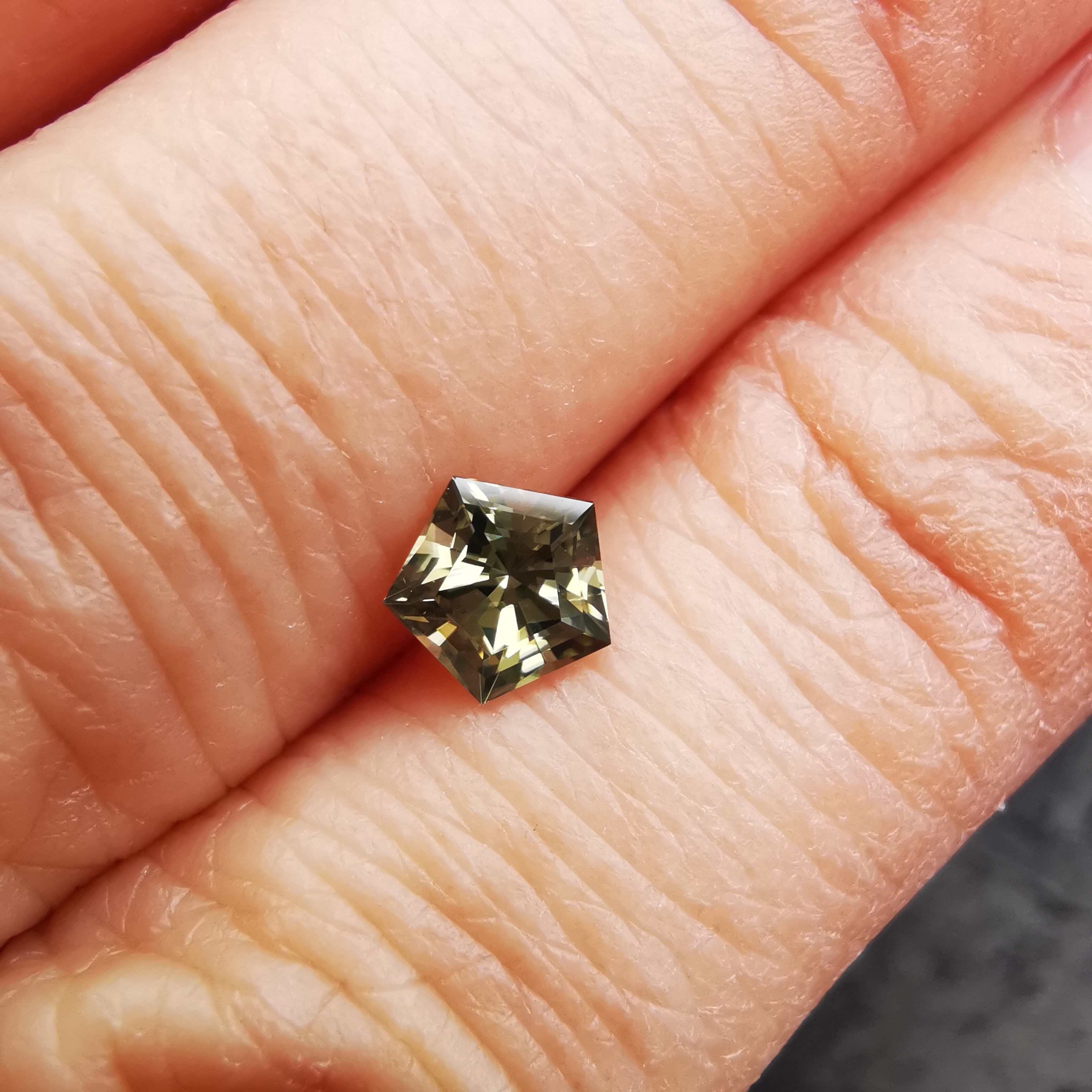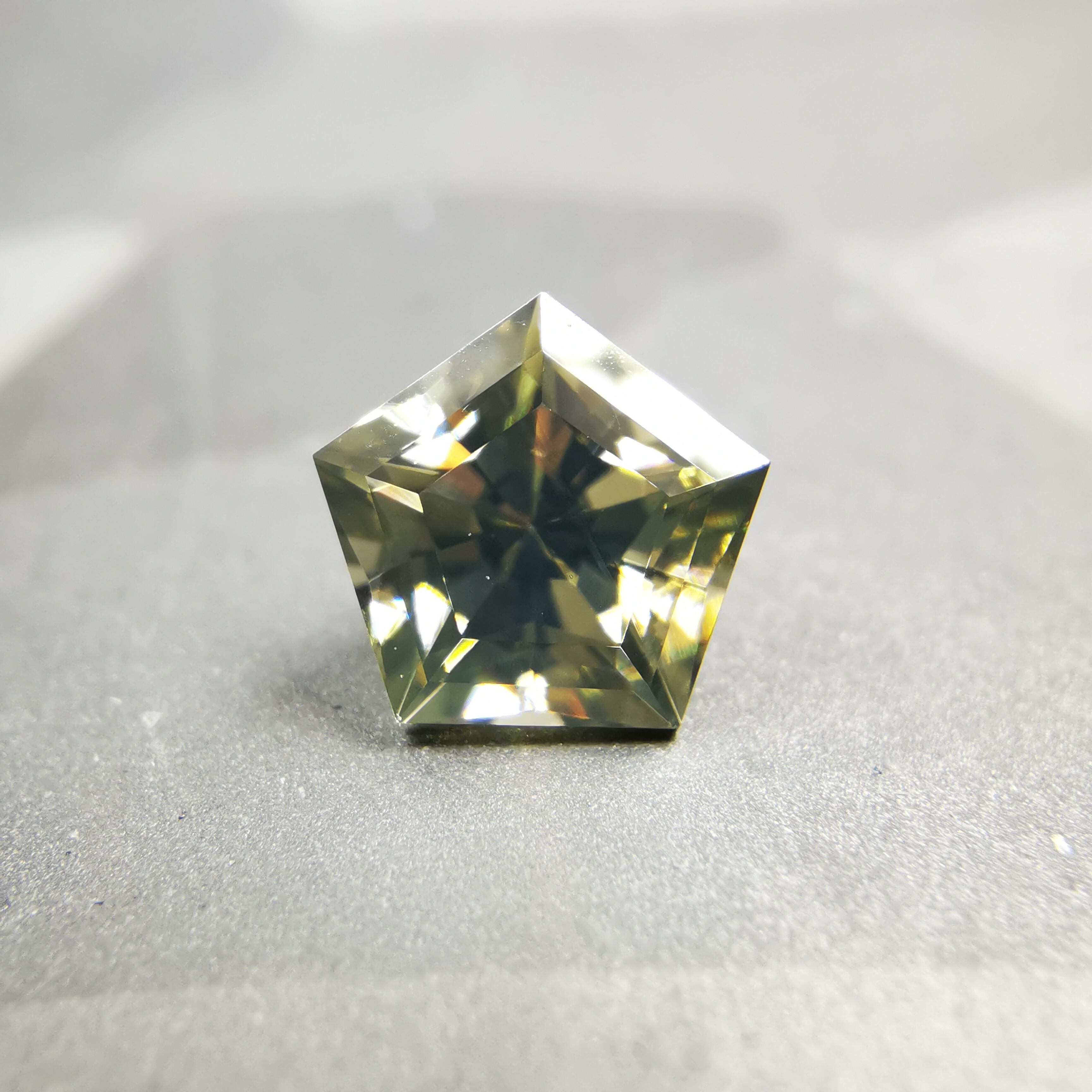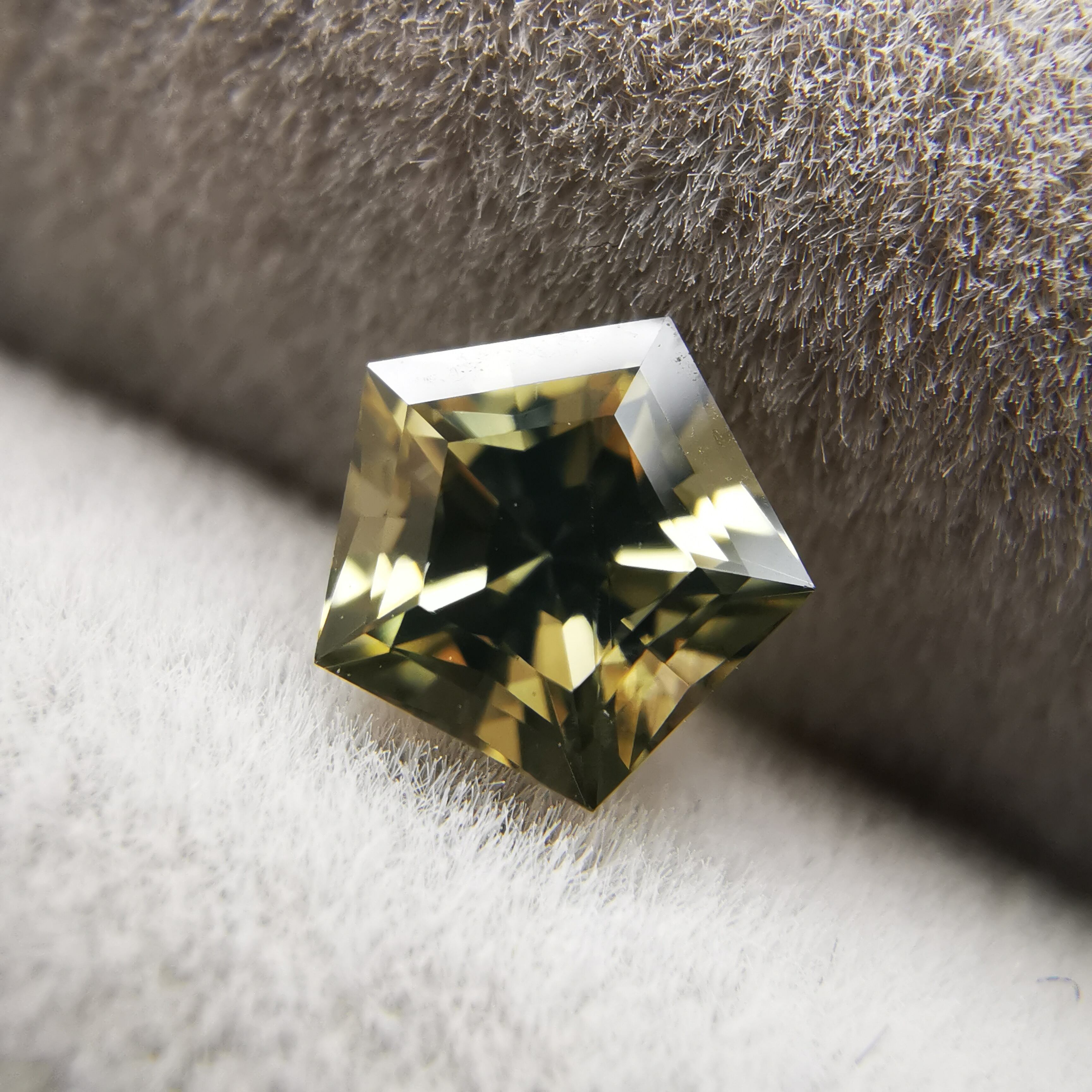やや暗めのグリーンですが、ジルコン特有の強い輝きにより、ダークなのによく煌めくクールなお星様です。