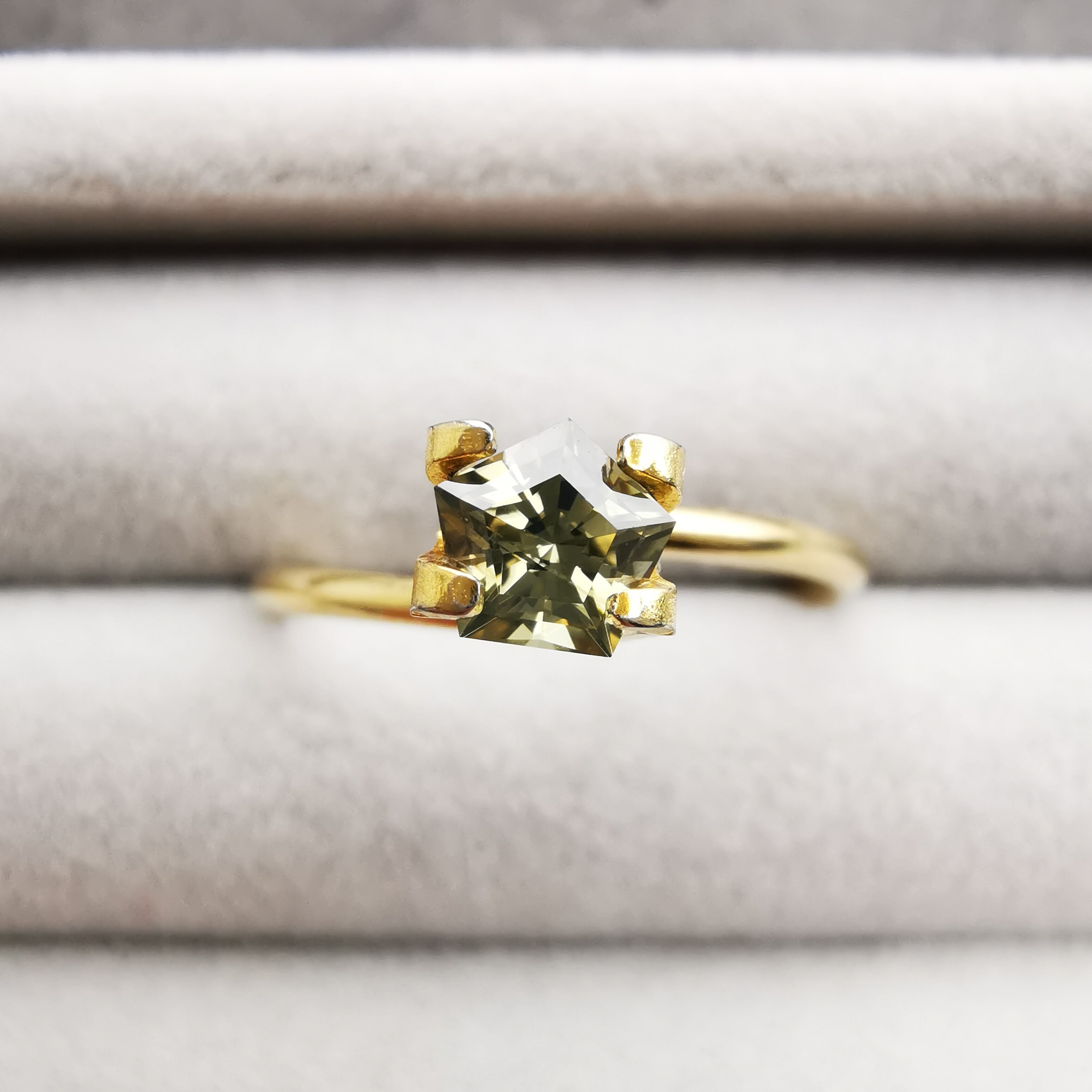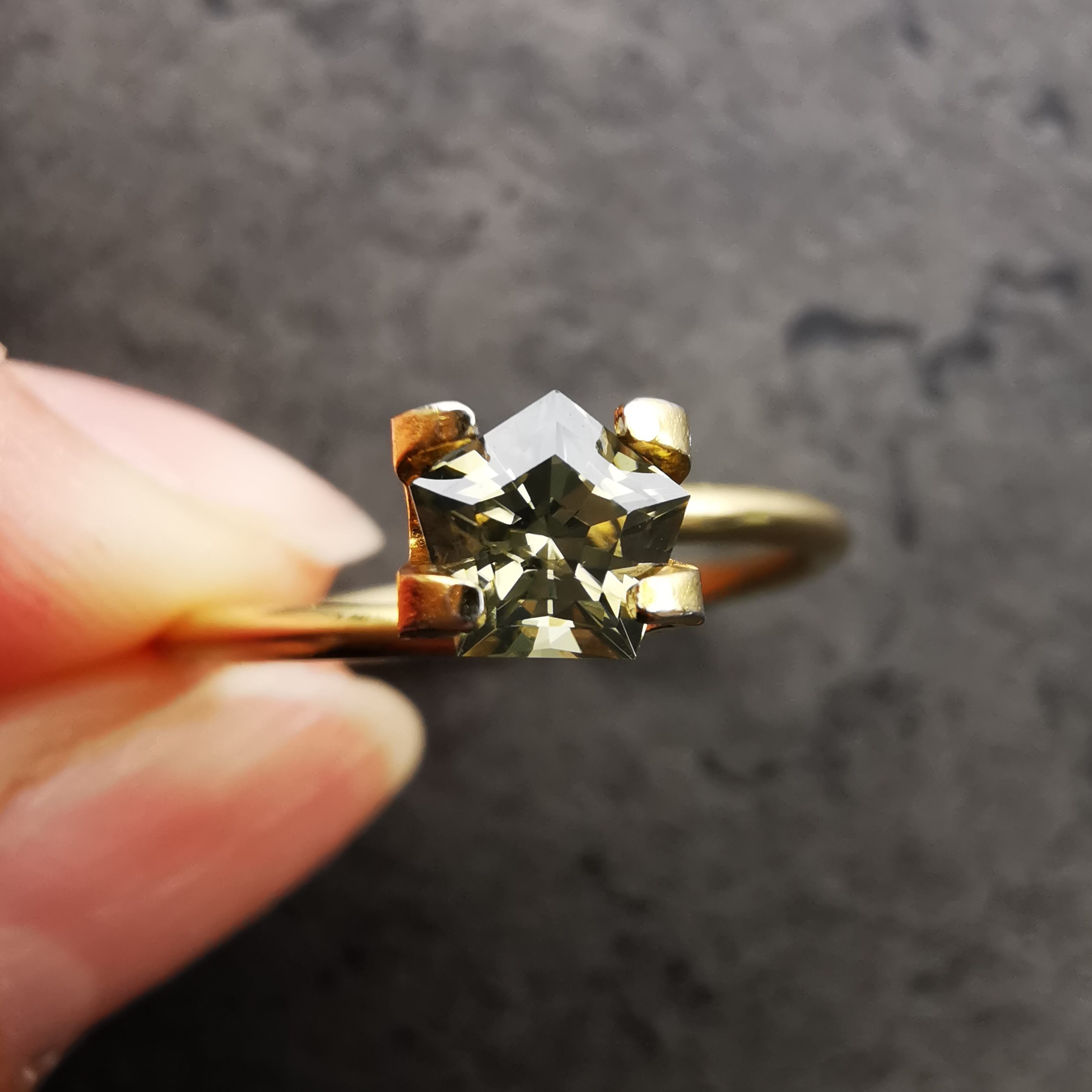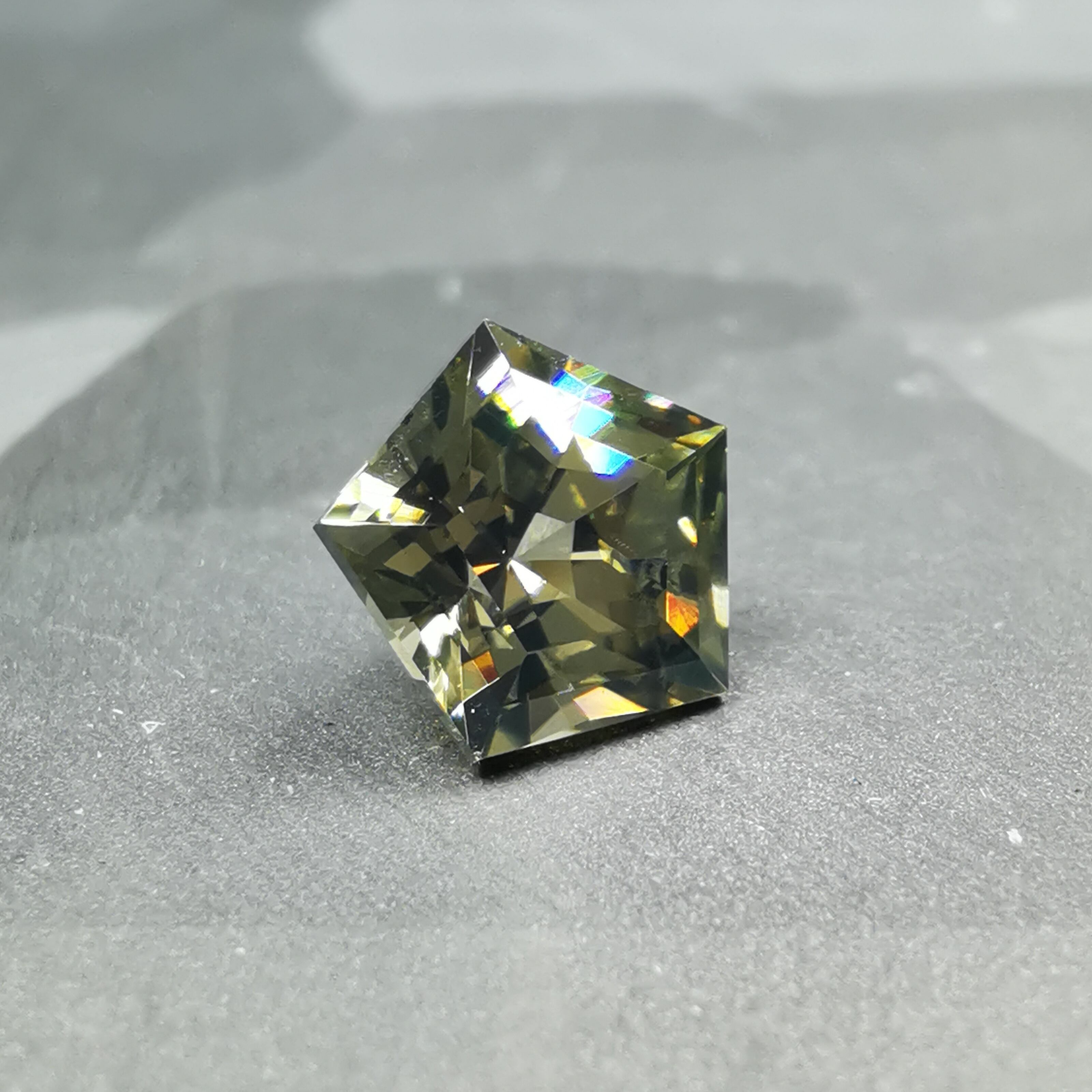 やや暗めのグリーンですが、ジルコン特有の強い輝きにより、ダークなのによく煌めくクールなお星様です。
