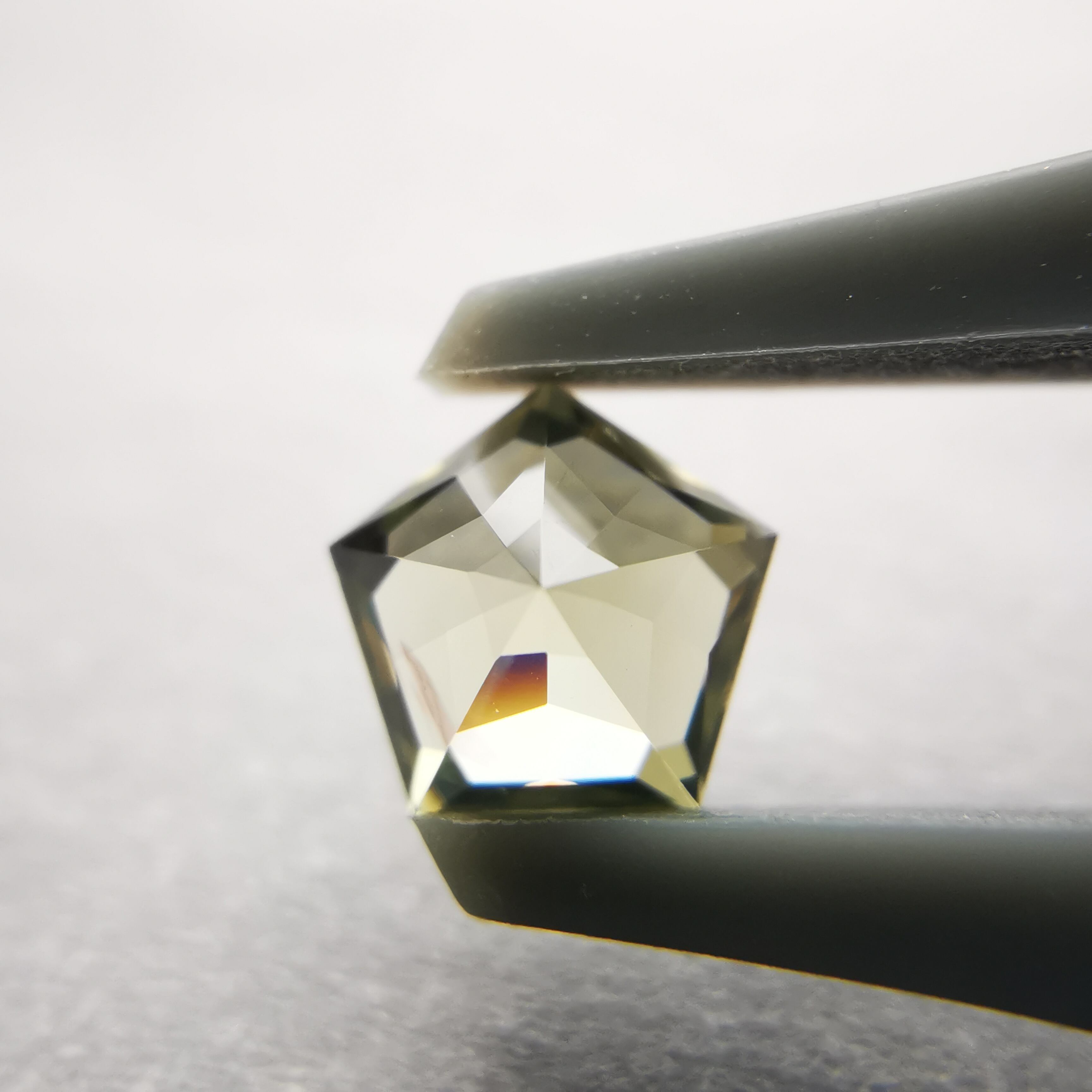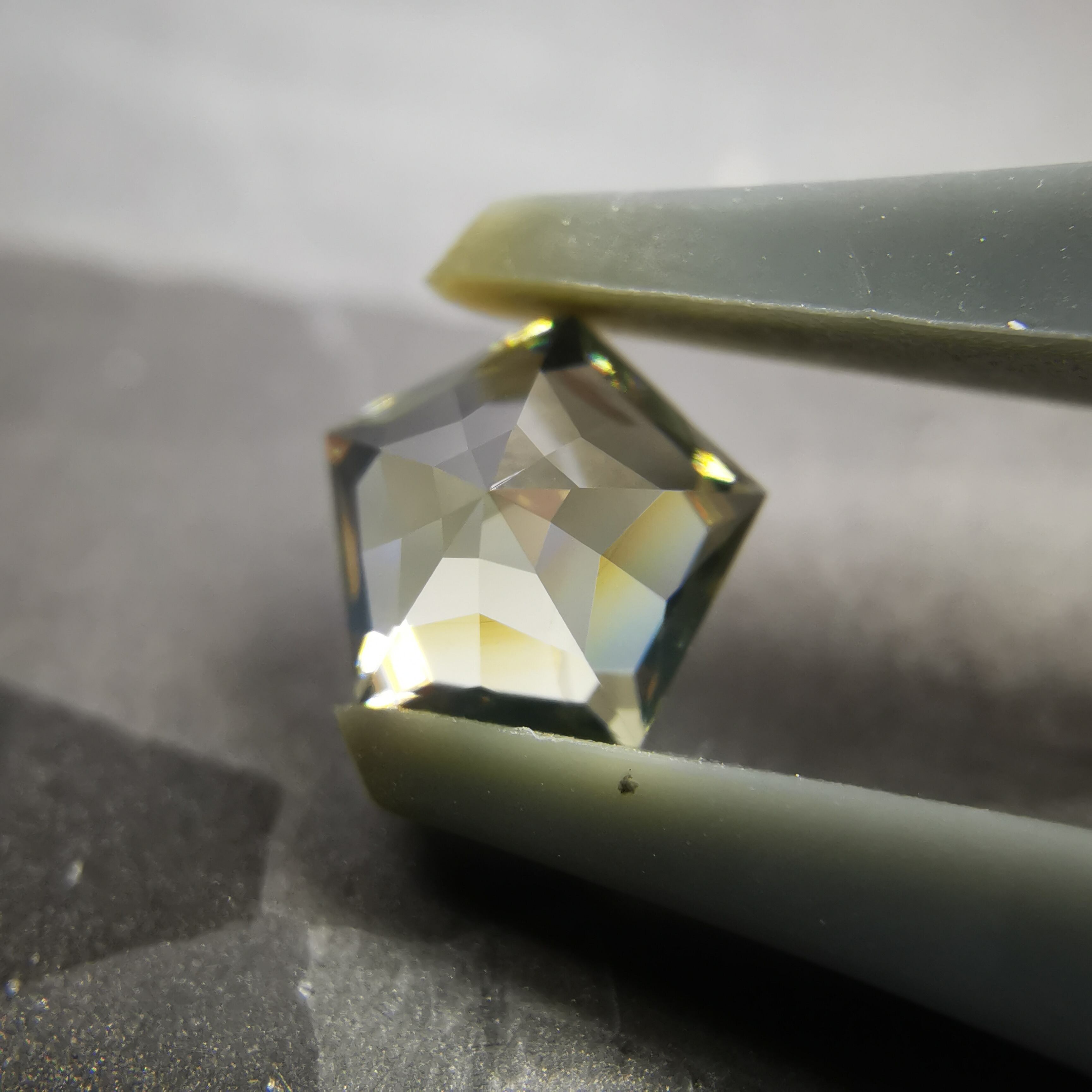 五角形にこだわり抜いたカットで、フェイスは3重に五角形、パビリオン側ももちろん五角形、ですが、辺の間にもうひとつカットを入れることで、フェイスからは星のように見せます。