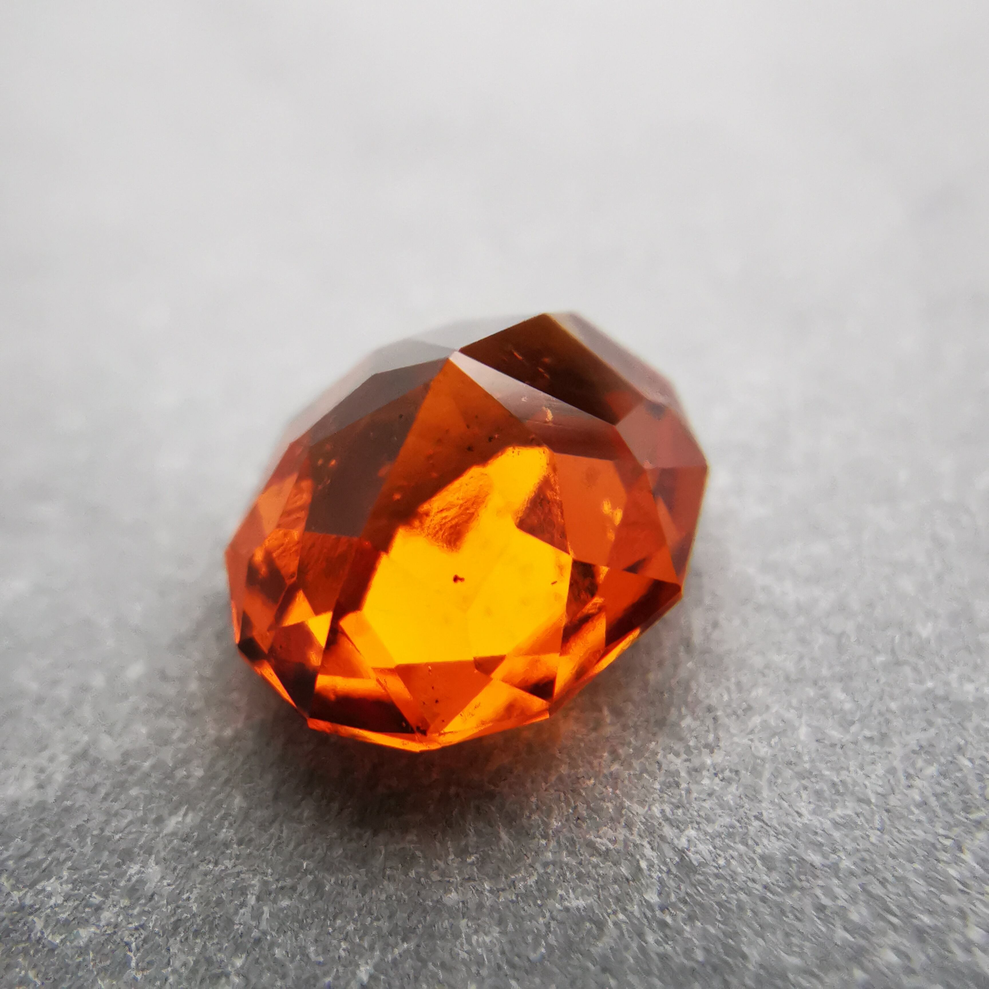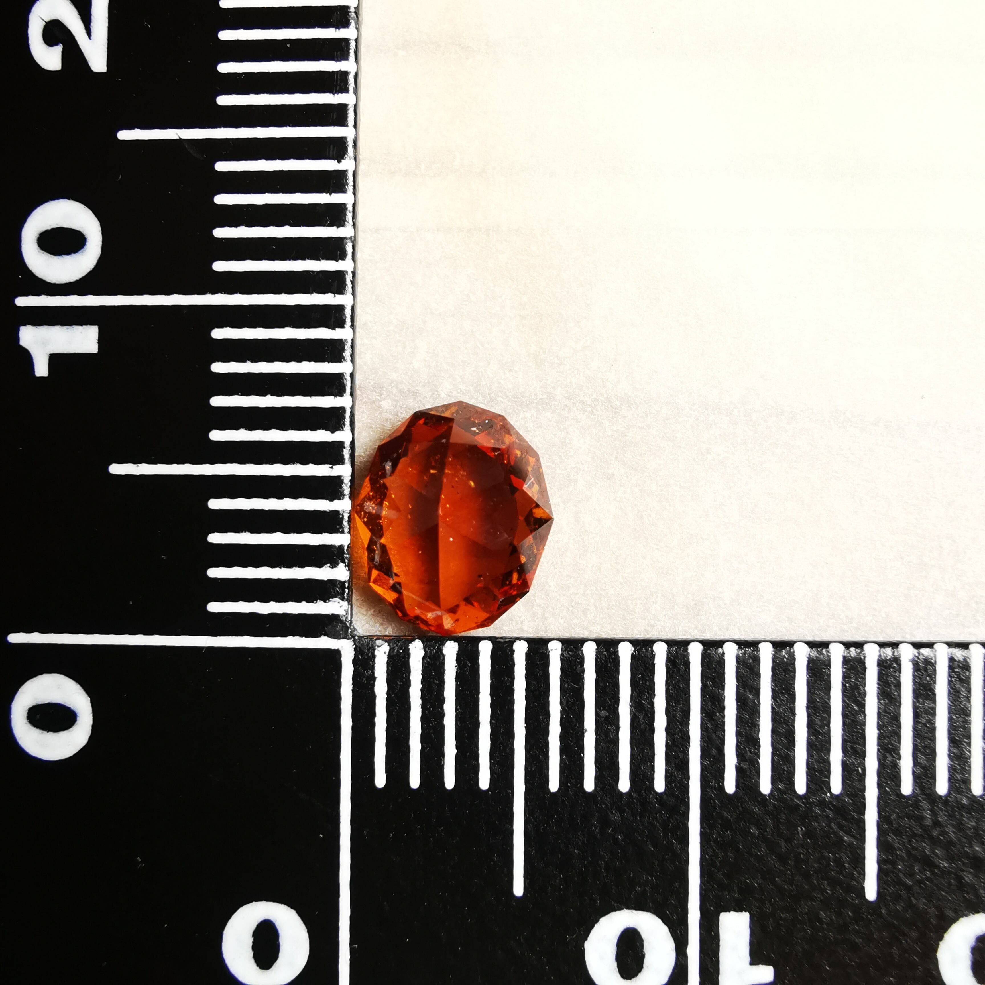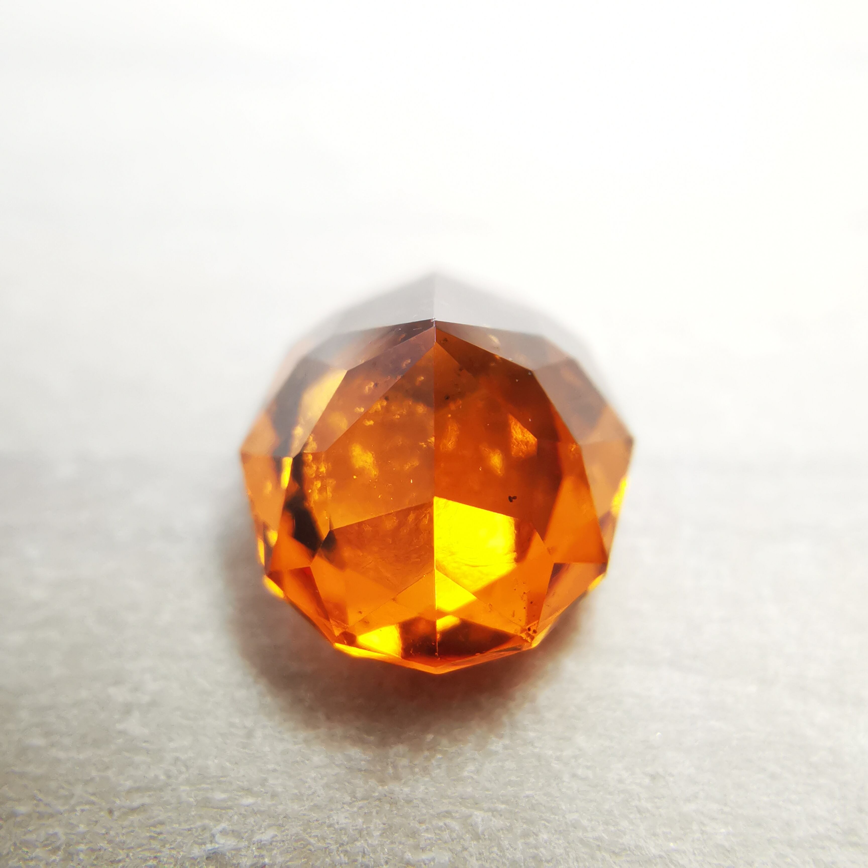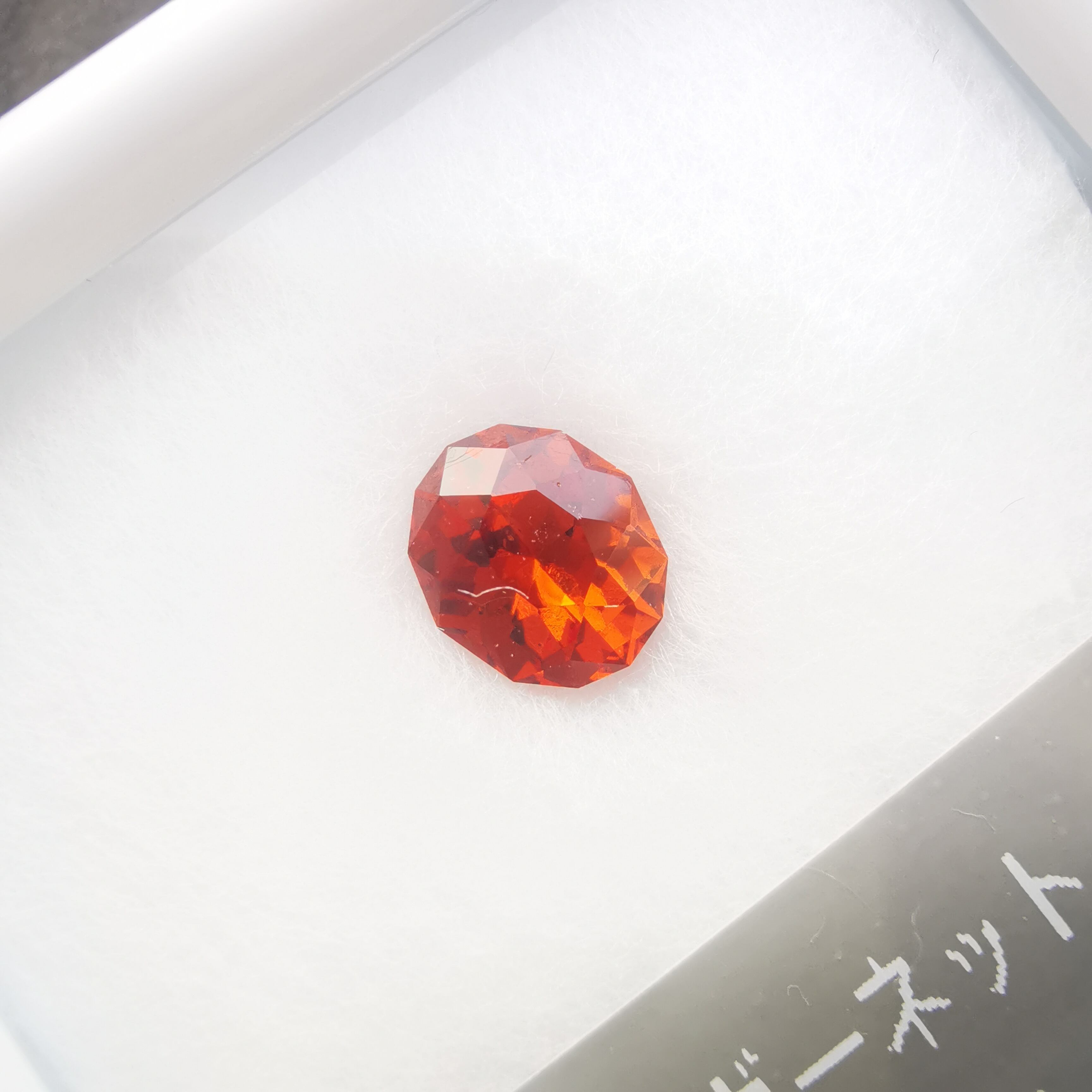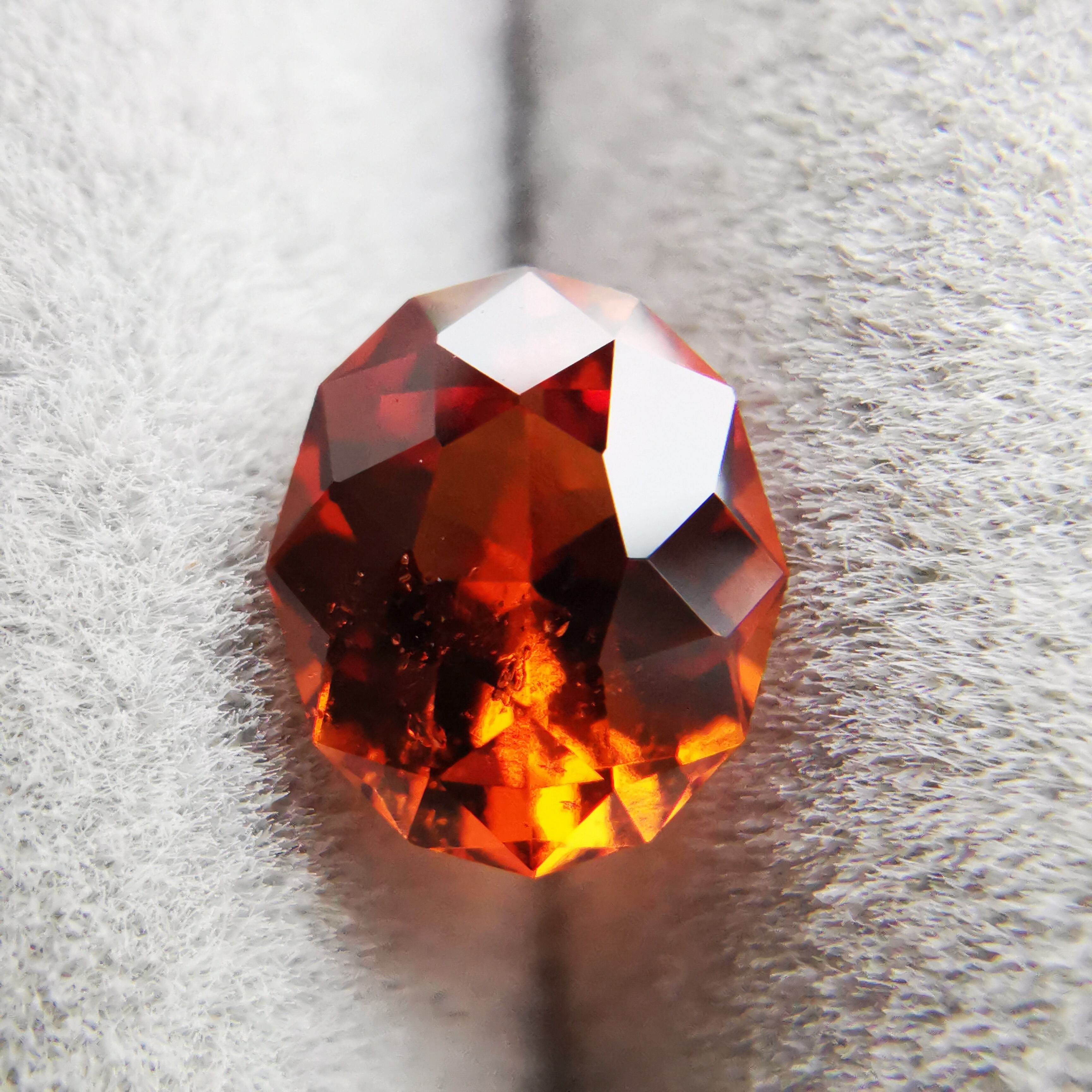 ヘソナイトガーネットと言えば、糖蜜状インクルージョンにより、きらめきは控えめなイメージでしたが、こちらはスペサルティンかと思うような強くきらめくフレッシュカラーです。
