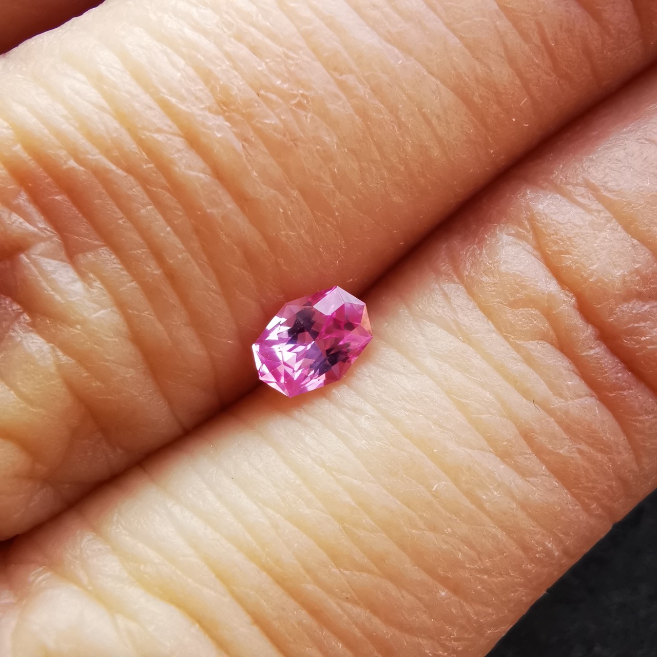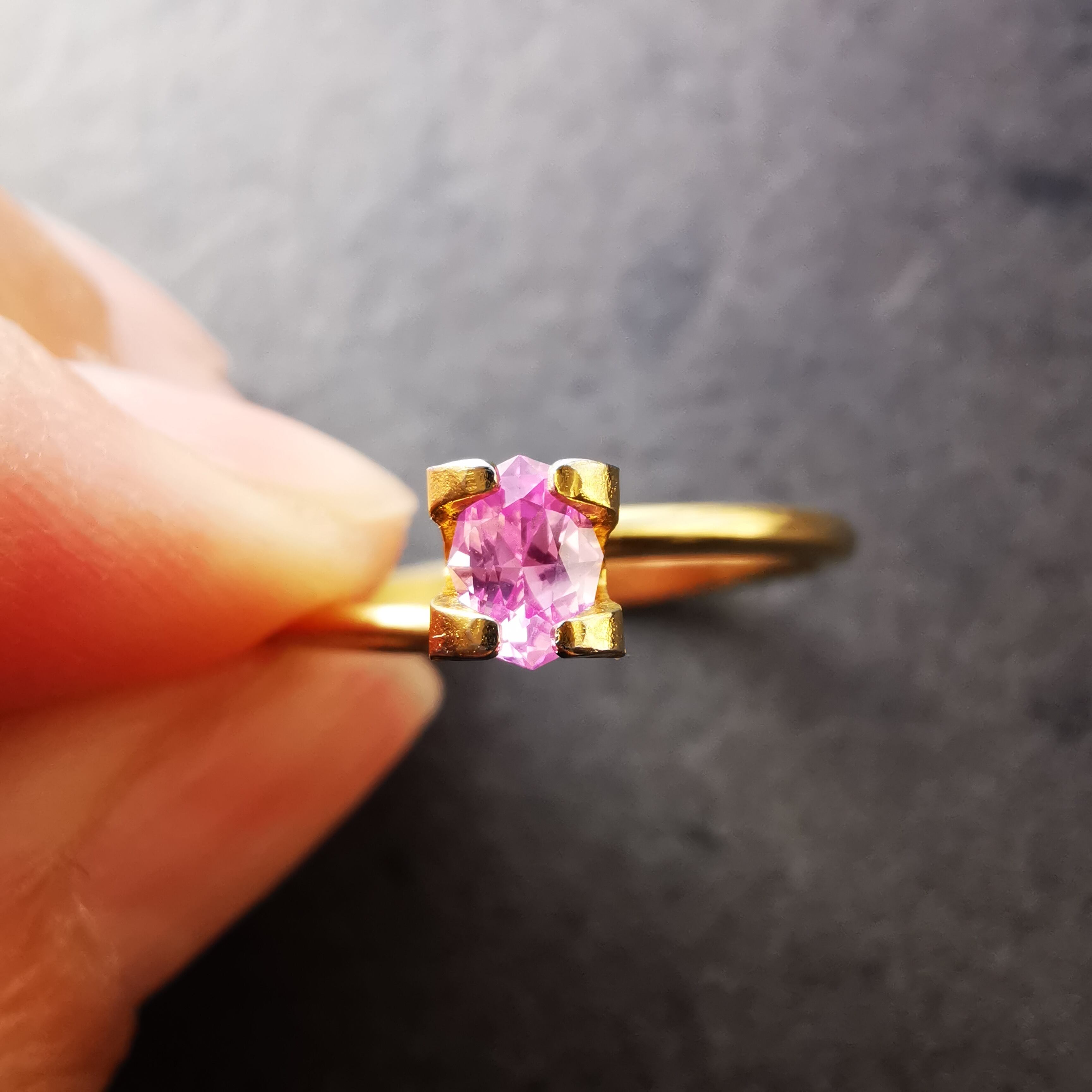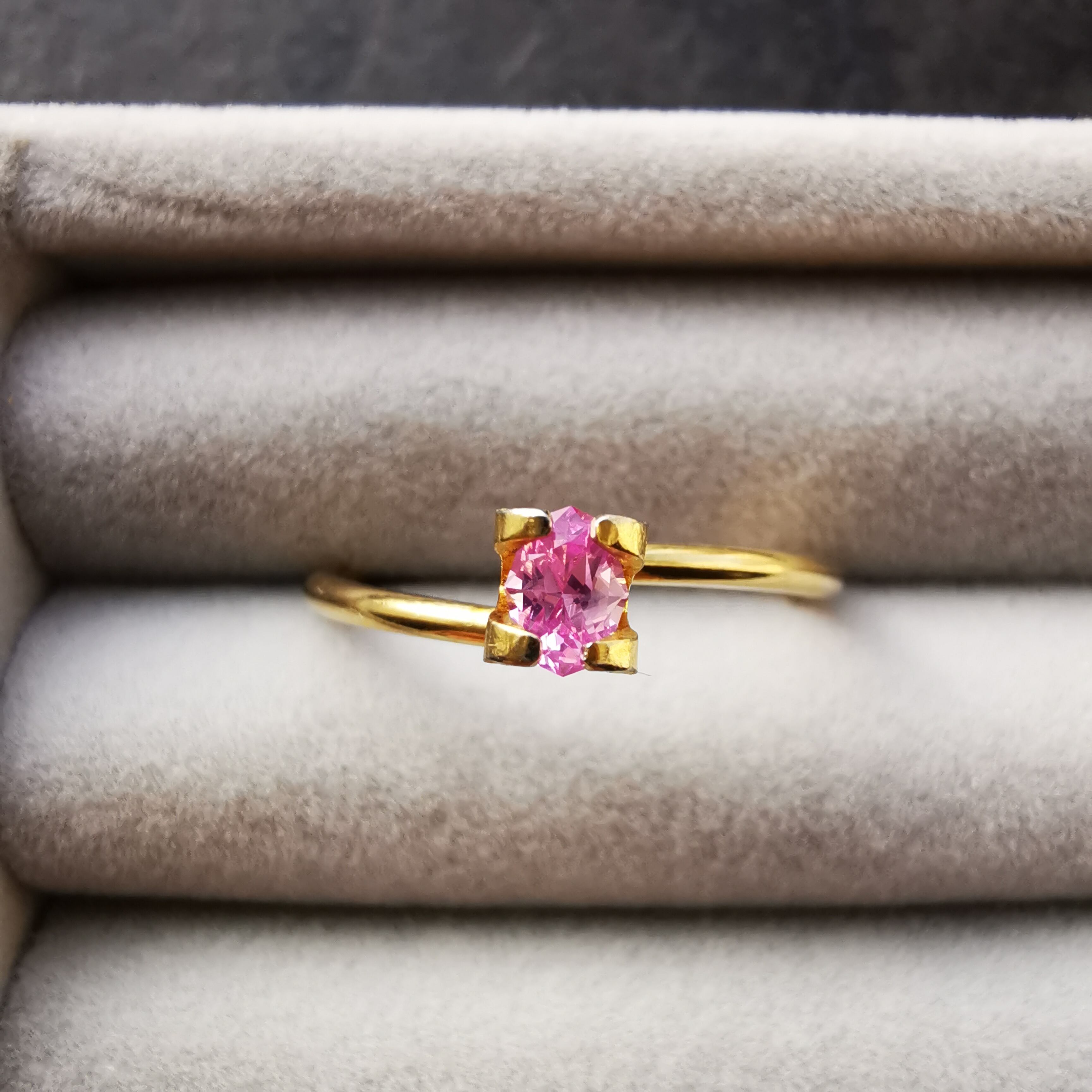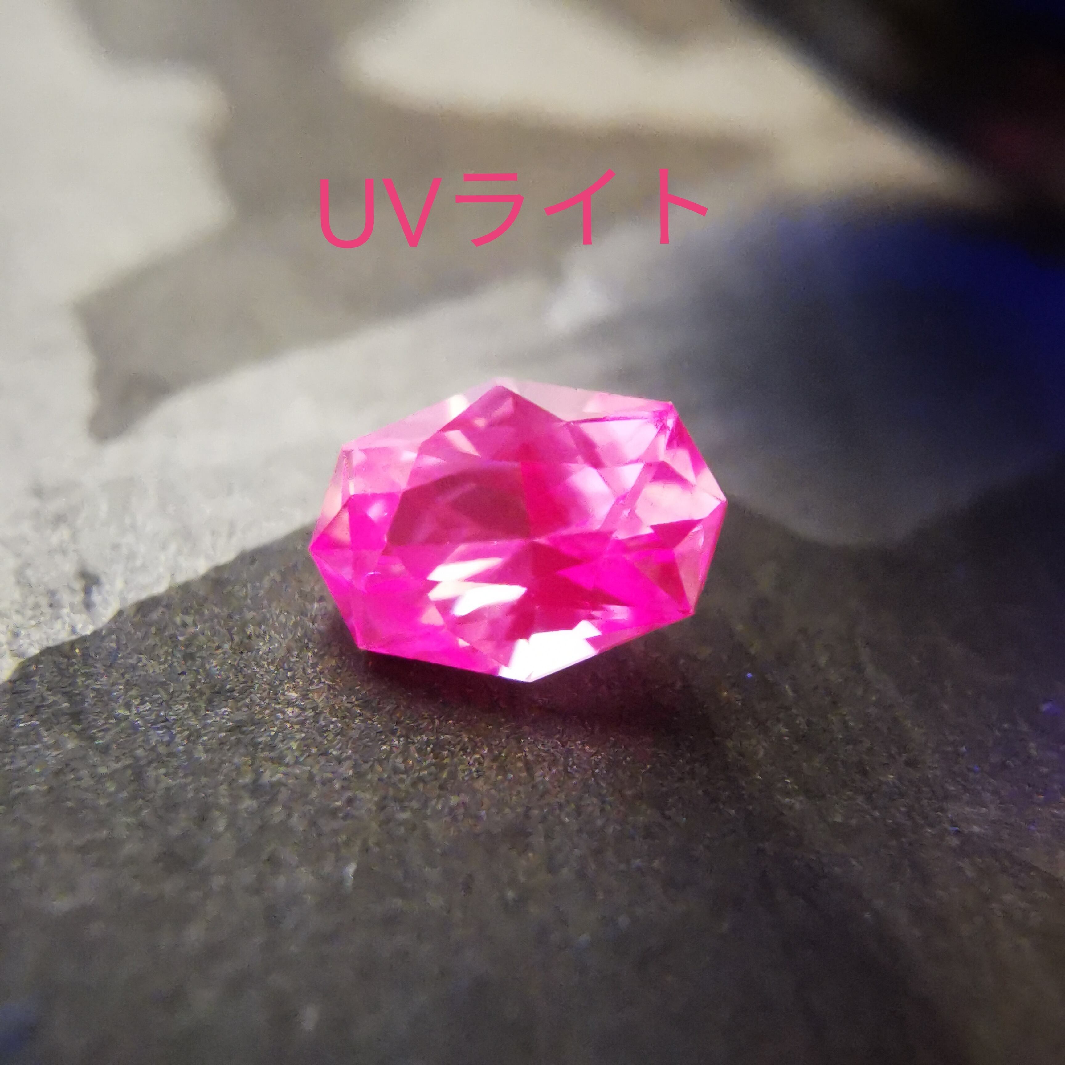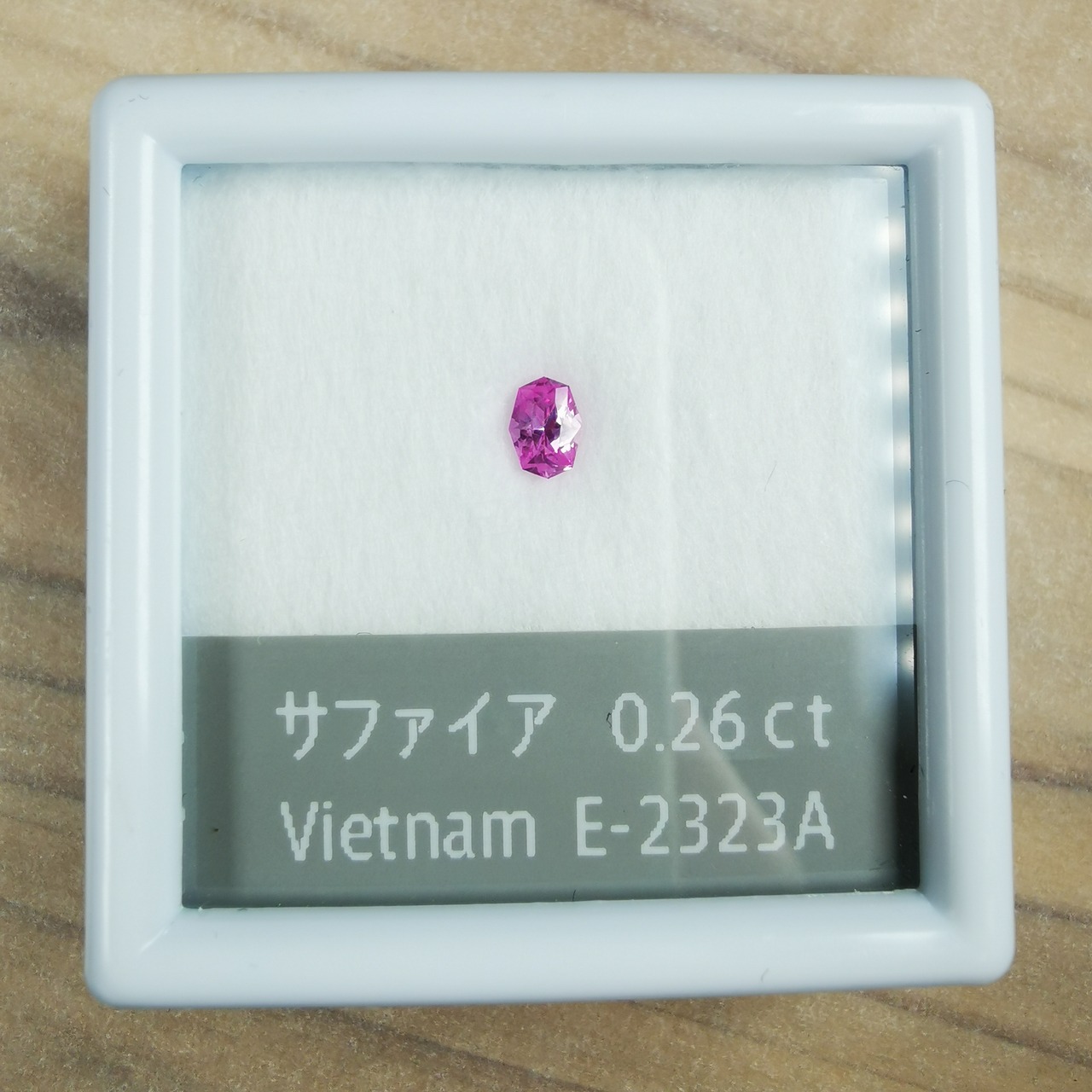 ベトナム産のピンクサファイアと言えば、ミルキーなものが人気ですが、こちらは一見すっきりとしたキラキラのピンク、ルーペでよく見るとシルクインクルージョンが幾筋かサッと走るように入っています。